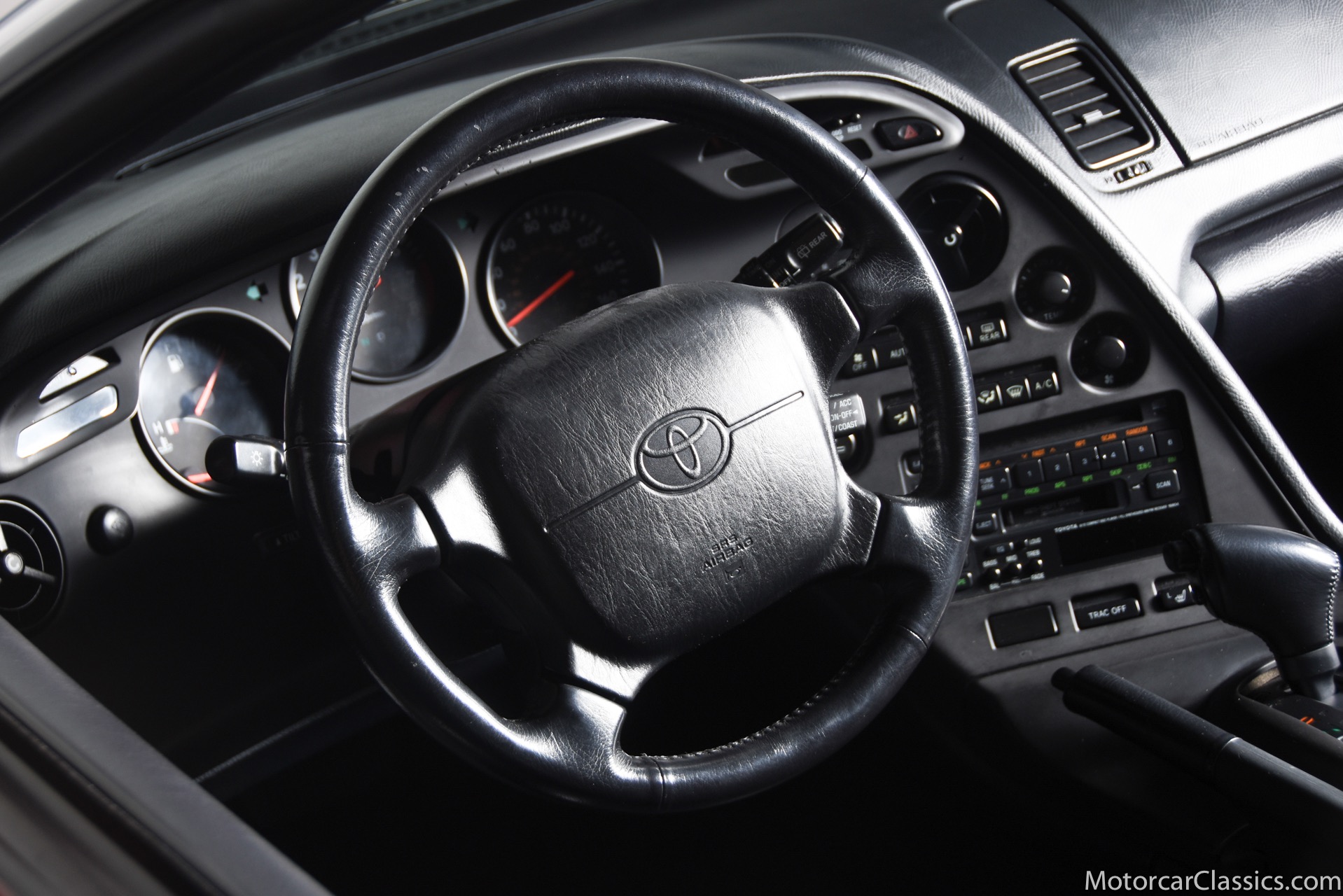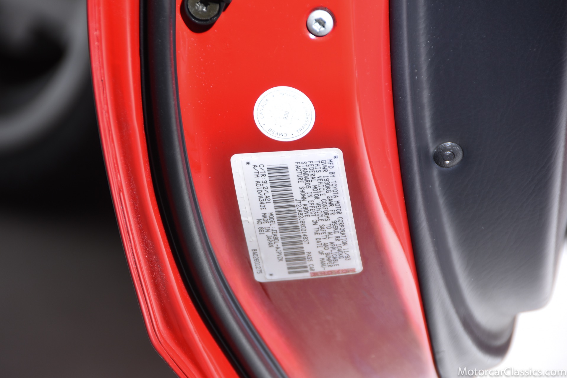 1994 Toyota Supra Turbo for sale! Motorcar Classics is pleased to present this 1995 Toyota Supra Turbo featured in Renaissance Red with black interior. This 1994 Toyota Supra Turbo is a Canadian-market example that was first registered in British Columbia, and it was brought to the US in 2020. Power is supplied by a twin-turbocharged 3.0-liter inline-six paired with a four-speed automatic transmission and a factory limited-slip differential. The car is equipped with a rear spoiler, a removable sport roof panel, automatic climate control, heated mirrors, and heated front seats with power adjustment for the driver. This Supra Turbo is reported to be one of approximately 200 MKIV examples produced for the Canadian market and now shows under 38k miles. Factory 17 wheels are wrapped in Michelin Pilot SX tires measuring 235/35 up front and 255/40 out back. The braking system features vented rotors and Supra-branded calipers at all four corners. The cockpit features heated front seats upholstered in black leather with a matching dashboard door panels, and carpets. Amenities include power adjustments for the driver, cruise control, automatic climate control, heated side mirrors, power windows and locks, and a factory stereo with CD and cassette players. The twin-turbocharged and intercooled 3.0L 2JZ-GTE inline-six was factory rated at 320 horsepower at 5,600 rpm and 315 lb-ft of torque at 4,000 rpm. Power is sent to the rear wheels via a four-speed automatic transmission and a Torsen limited-slip differential. Our Supra has an unblemished history and it can be considered an investment-grade example of this very collectible Japanese sports car.