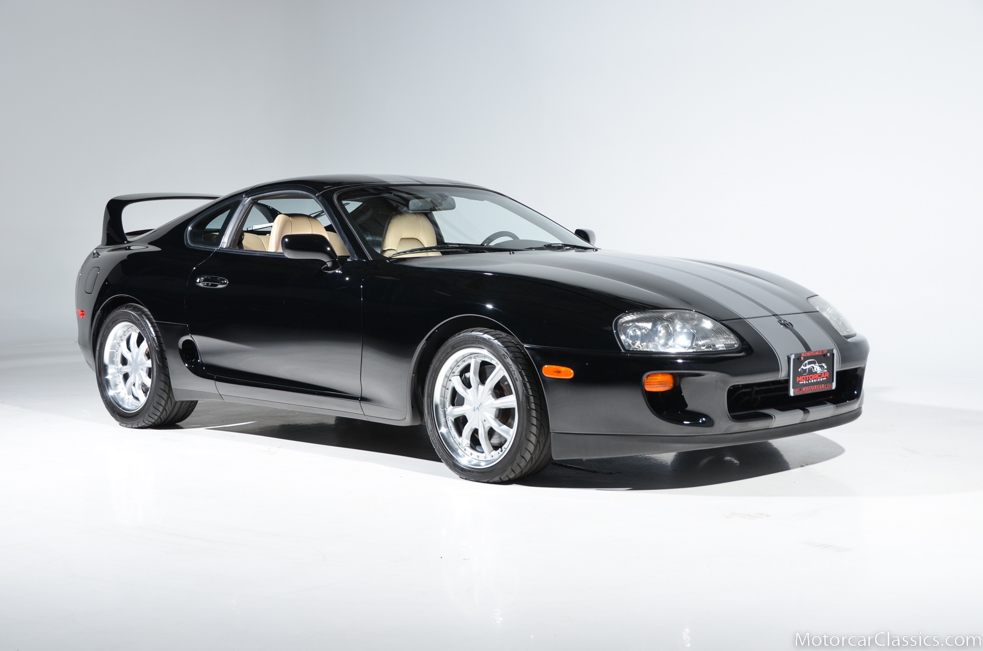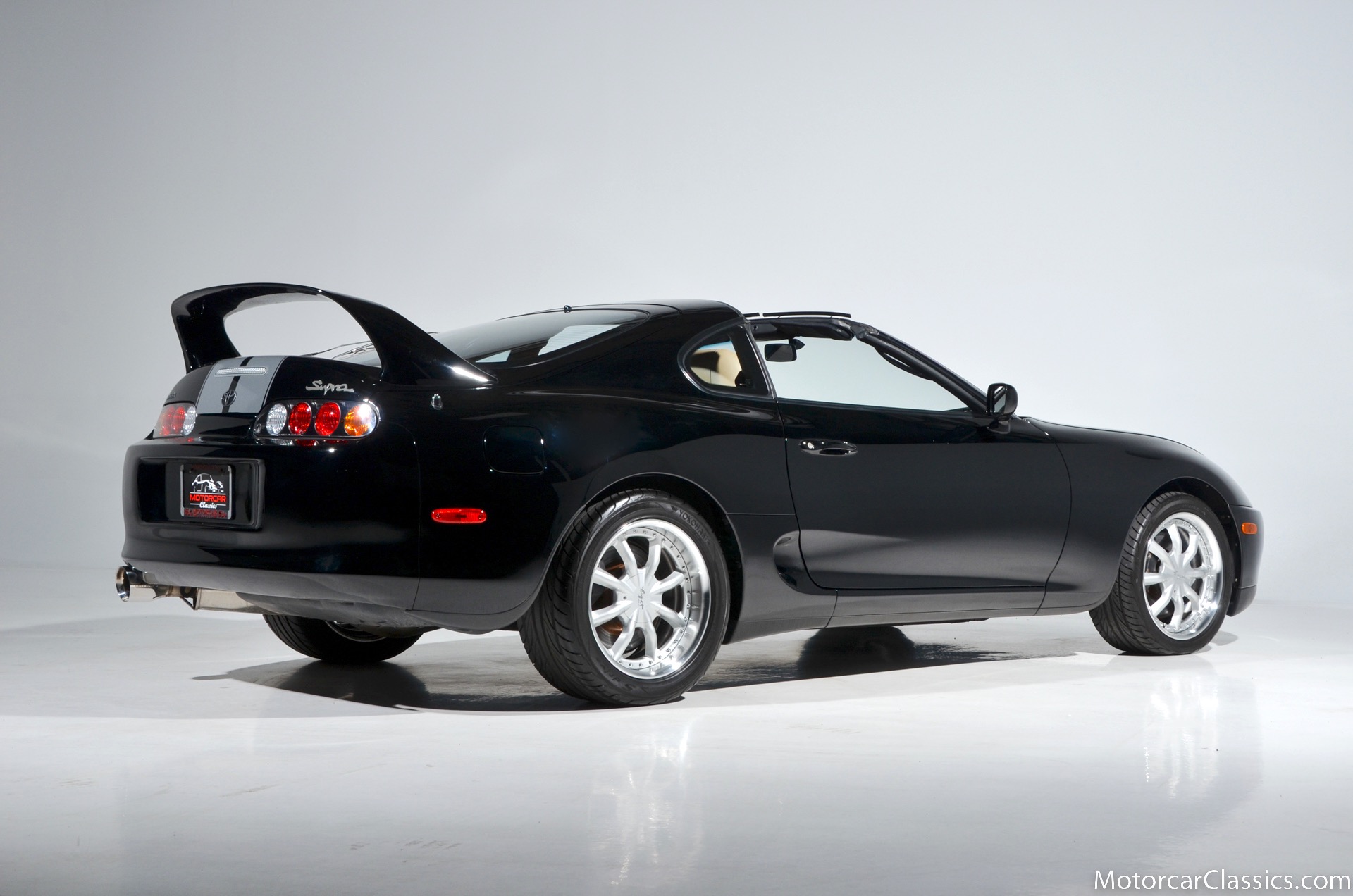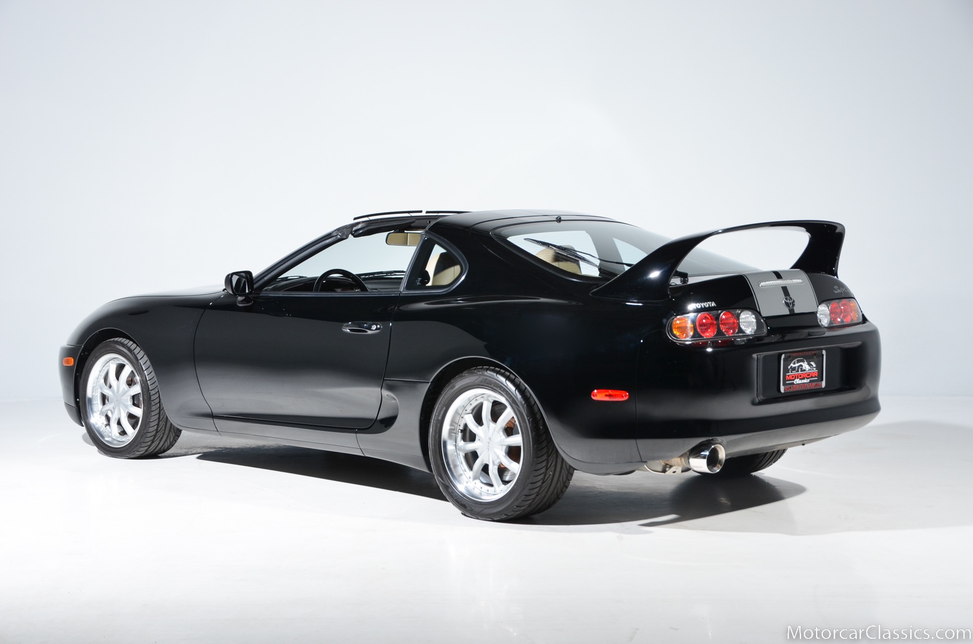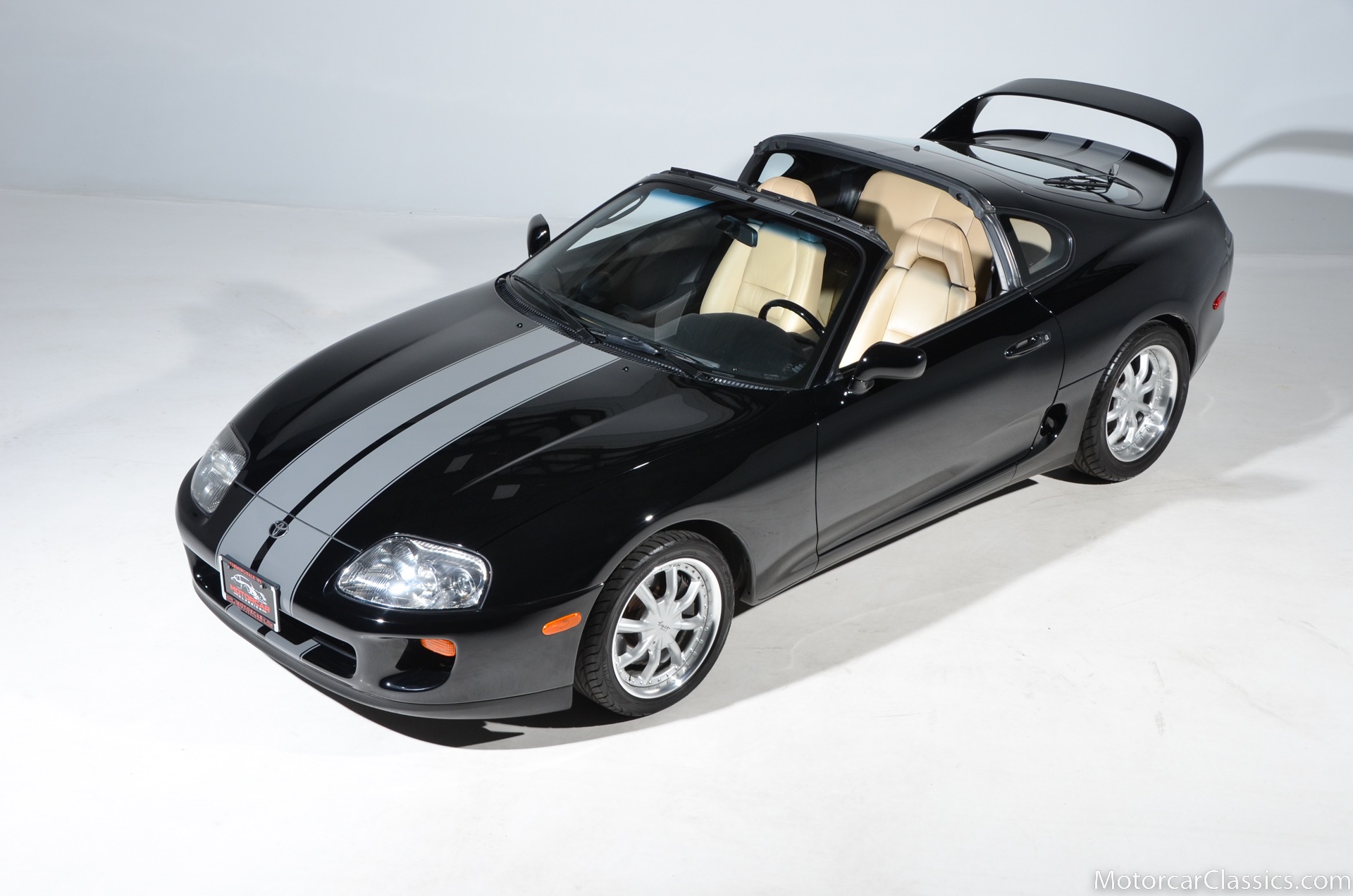 1995 Toyota Supra Turbo for sale. Motorcar Classics is proud to present this awesome 1995 Toyota Supra Turbo Sport-Roof Targa featured in Black with Ivory leather interior. The car is original with the exception of an Pioneer AVH-200EX Bluetooth Stereo (The original Toyota stereo is included) and Grey vinyl racing stripes. (Removable) It has covered only 15,430 miles in the hands of three owners. It has no history of damage or paintwork.