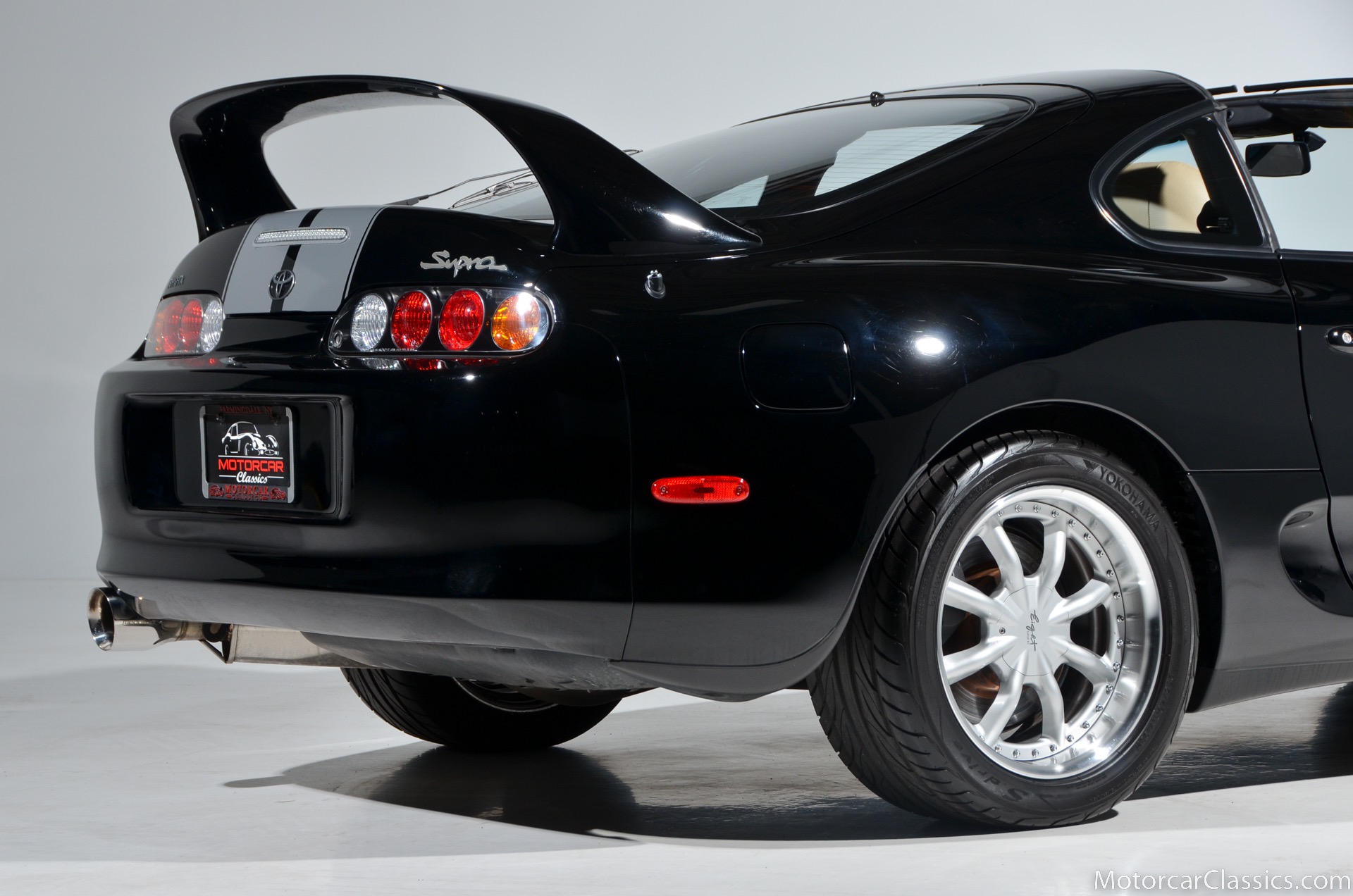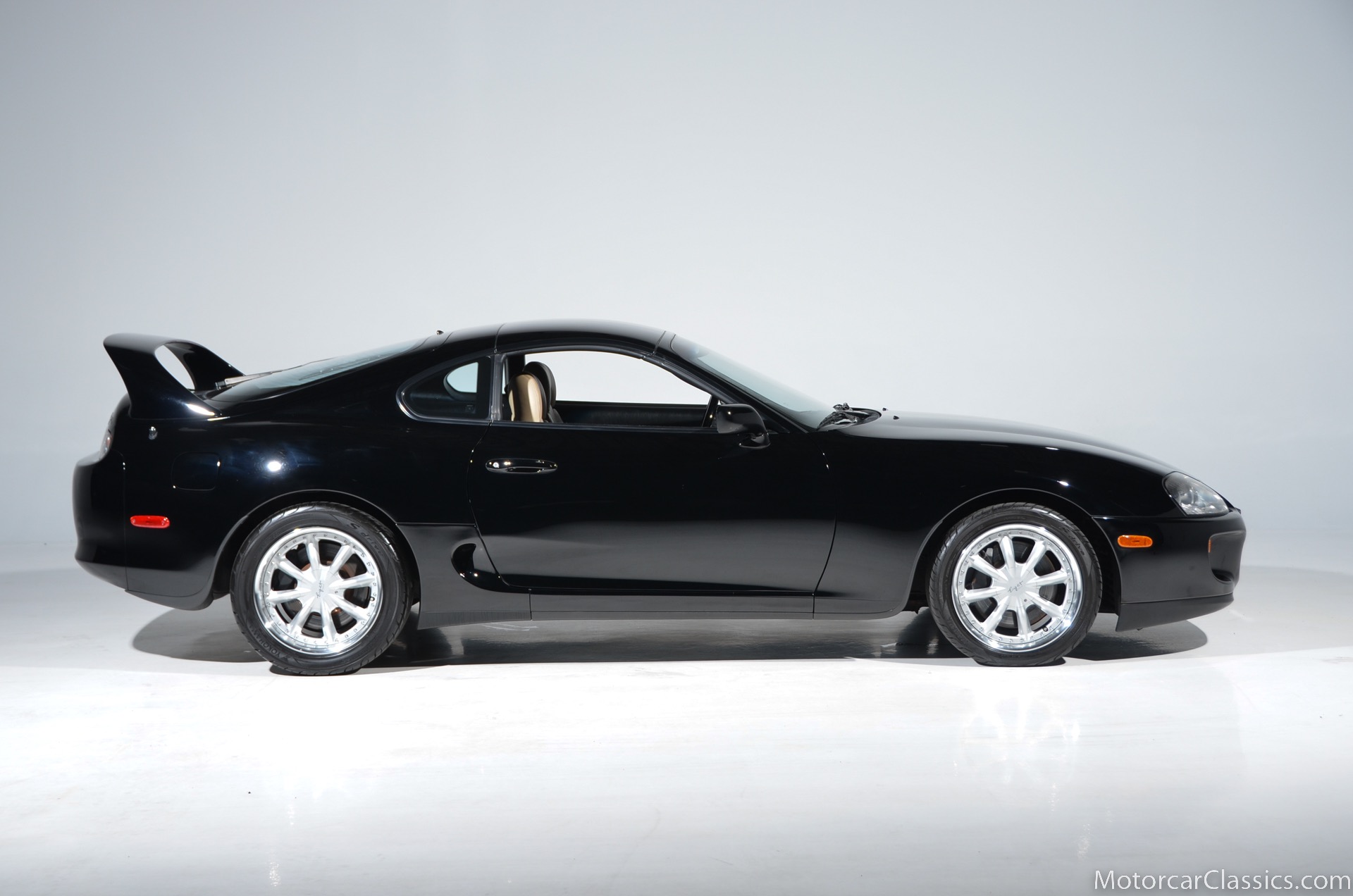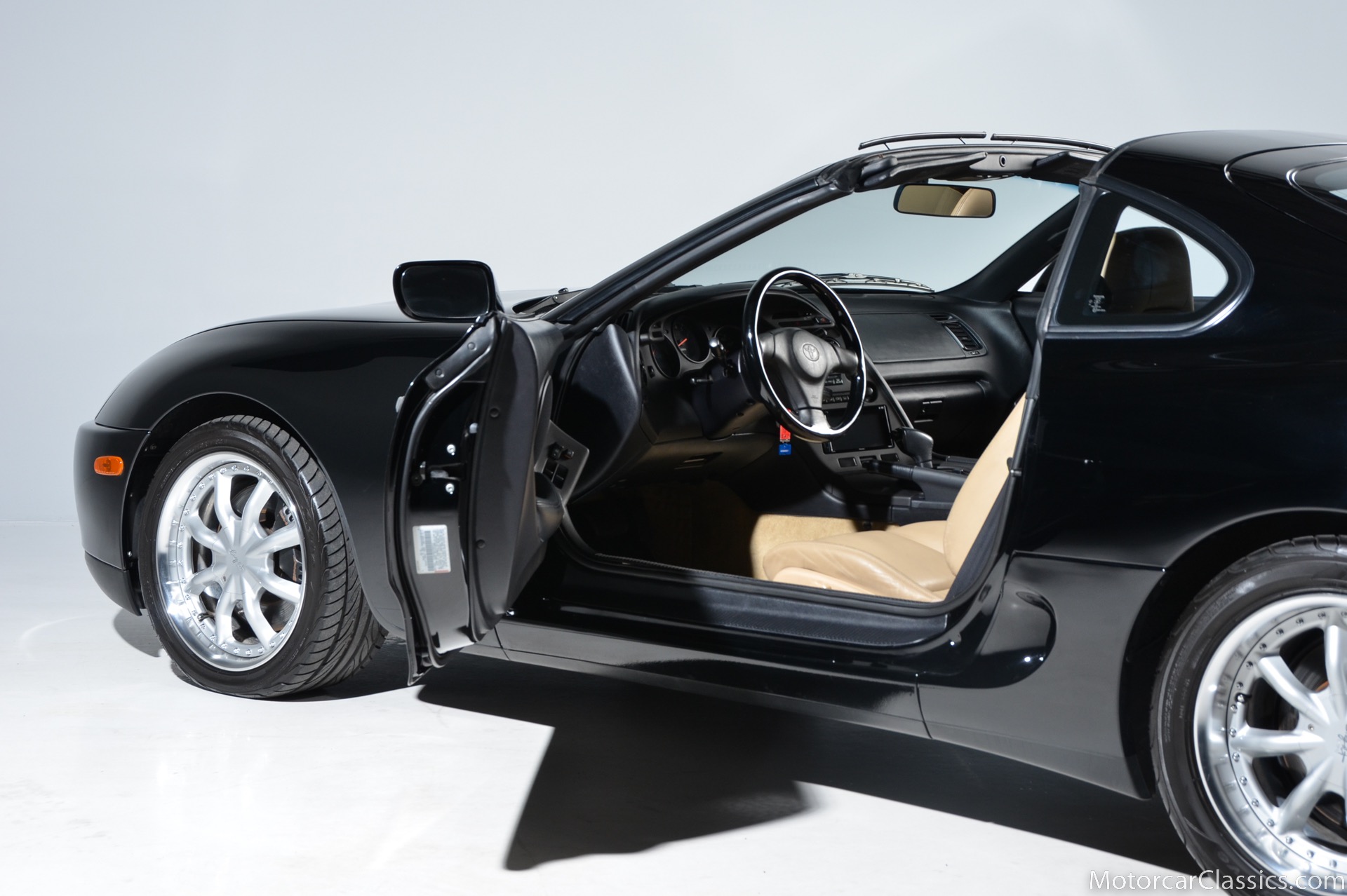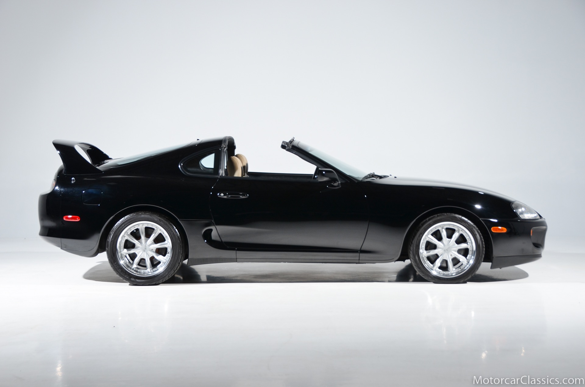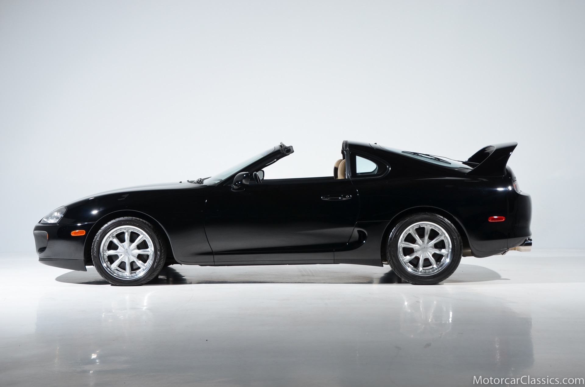 1995 Toyota Supra Turbo for sale. Motorcar Classics is proud to present this awesome 1995 Toyota Supra Turbo Sport-Roof Targa featured in Black with Ivory leather interior. The car is original with the exception of an Pioneer AVH-200EX Bluetooth Stereo (The original Toyota stereo is included) and Grey vinyl racing stripes. (Removable) It has covered only 15,430 miles in the hands of three owners. It has no history of damage or paintwork.