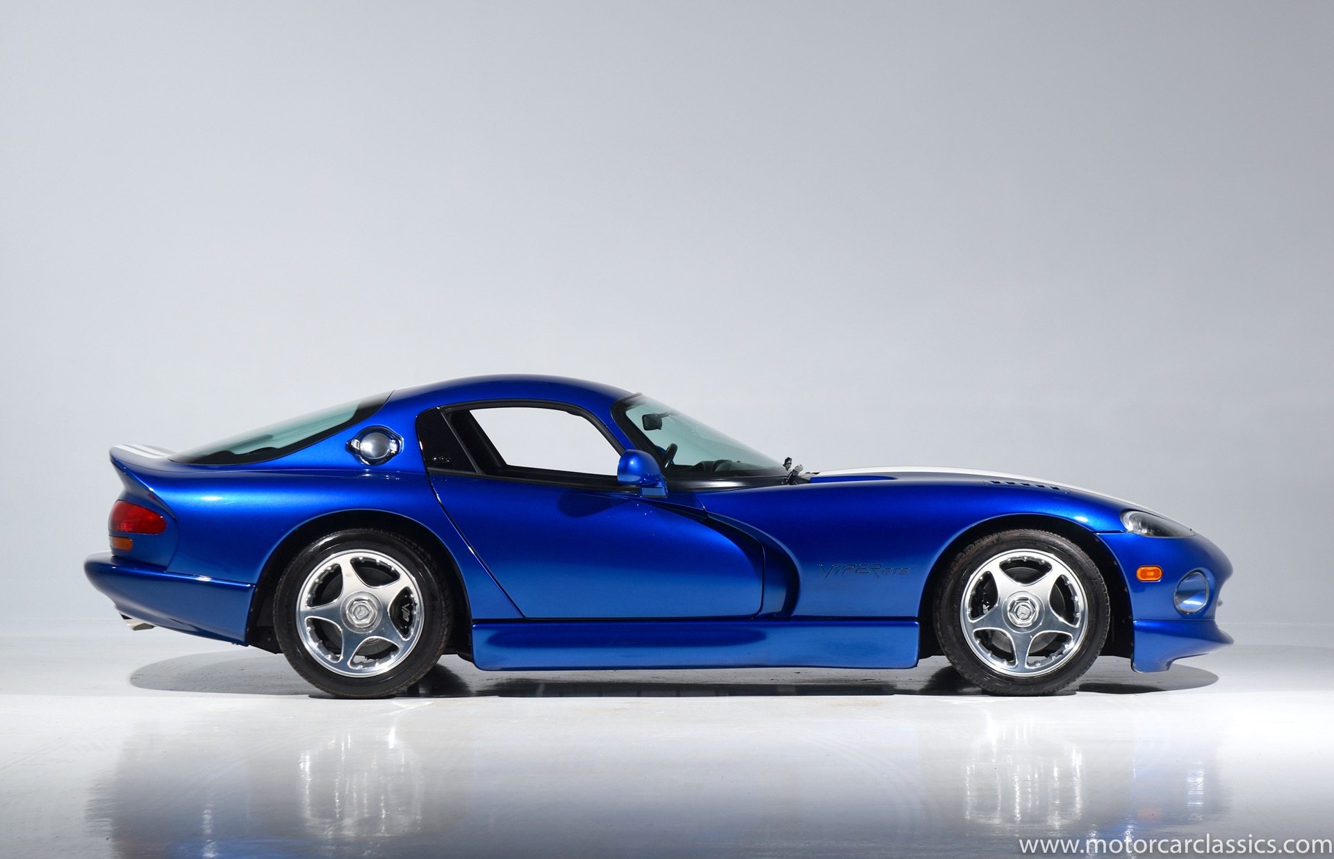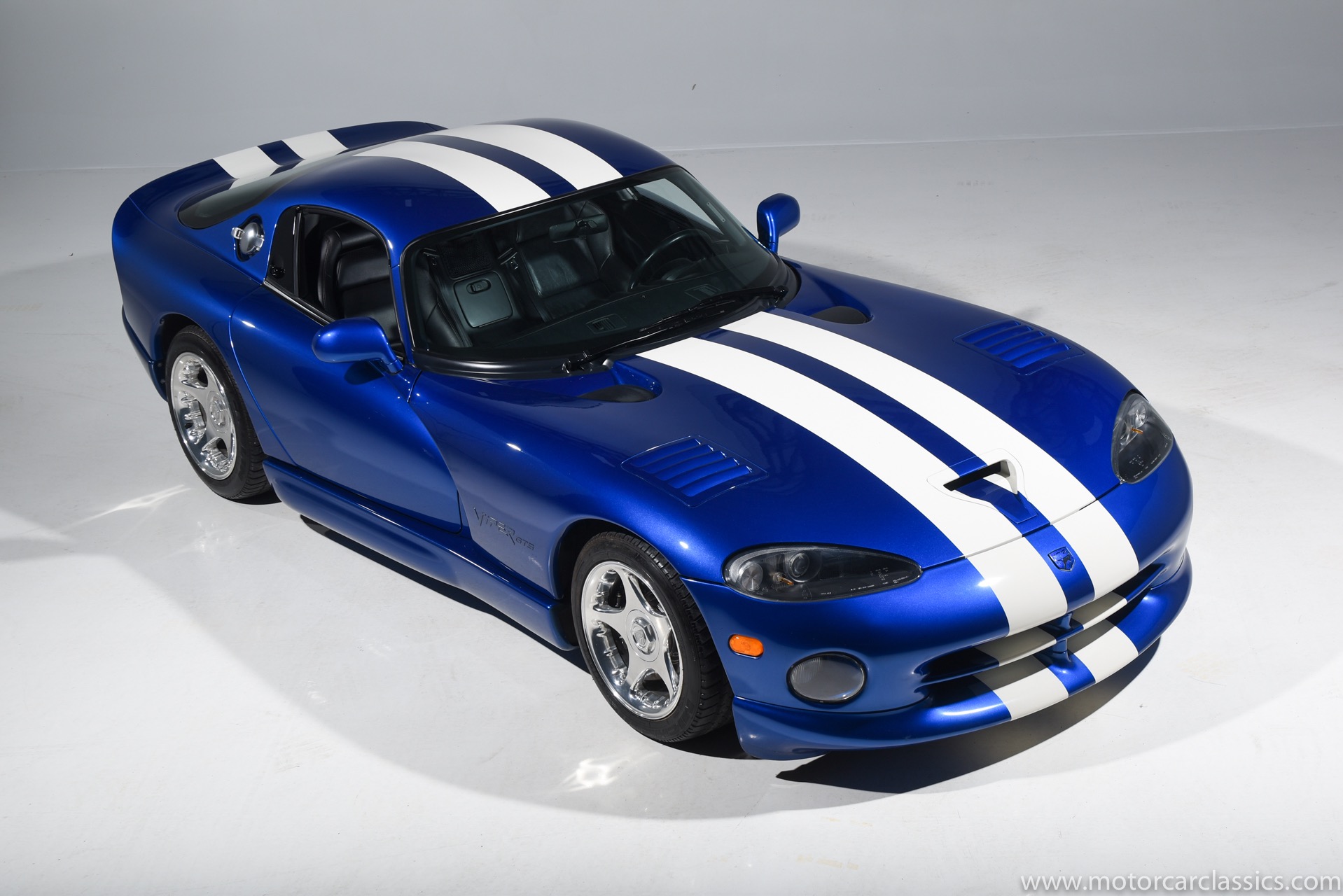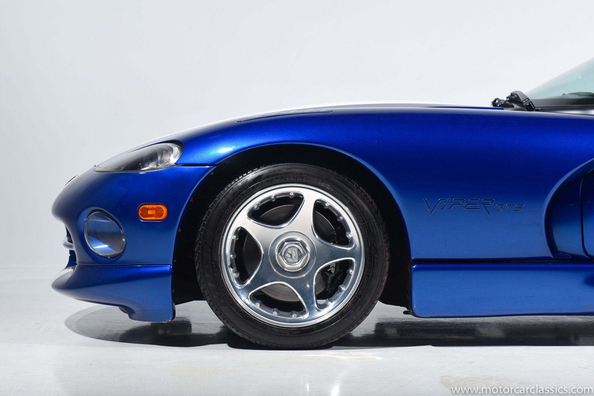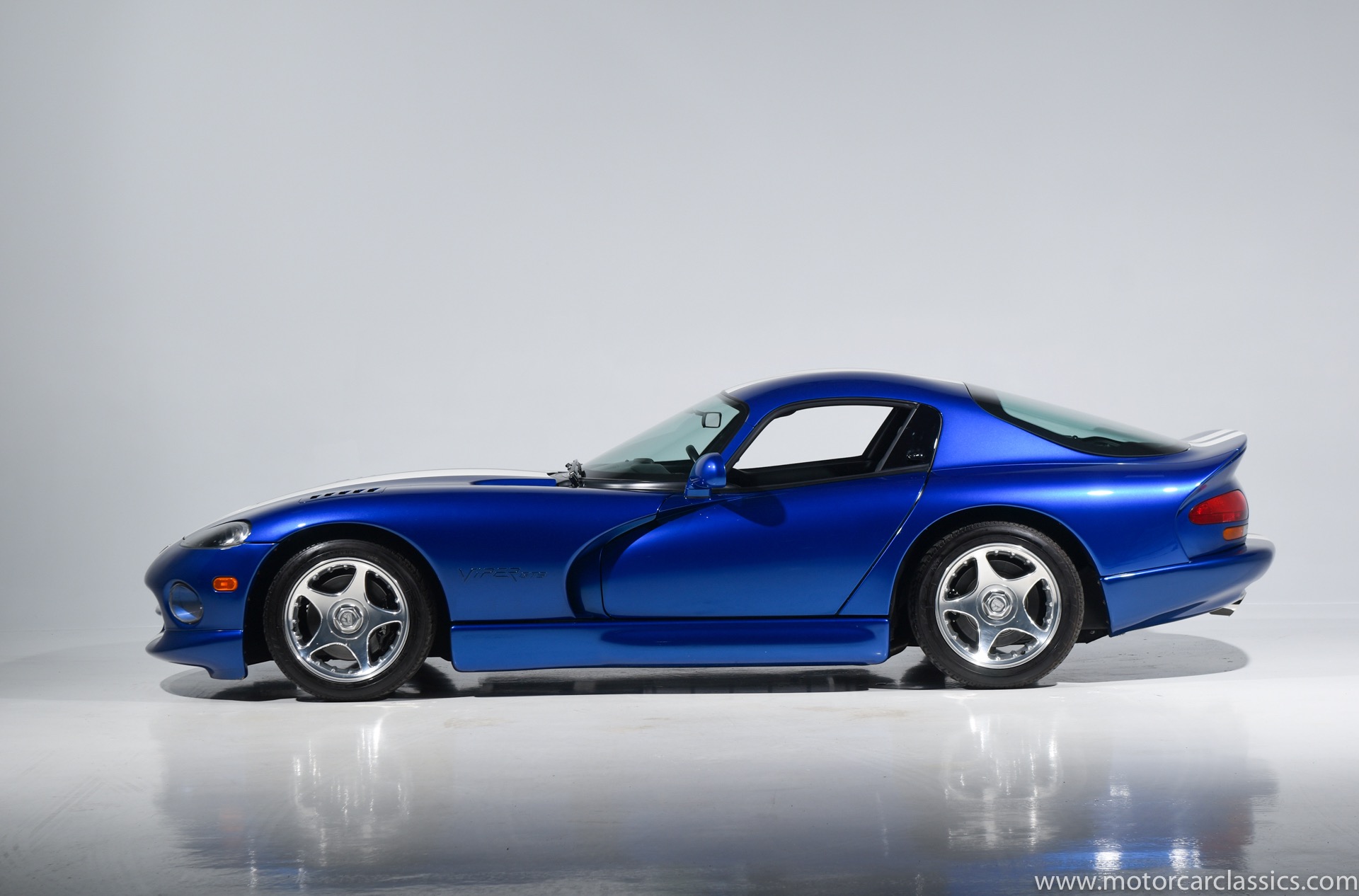 1997 Dodge Viper GTS for sale! Motorcar Classics is proud to present this stunning 1997 Dodge Viper GTS featured in Butane Blue Pearlcoat with black leather-trimmed seats and contrasting Stone White stripe. This awesome Viper has been cherished from new and covered only 9,786 miles. Power is by Dodge's iconic 8.0L V10 motor mated to a six-speed Tremec manual gearbox. Windows have been tinted. The car is loaded with all the desirable Viper features and is the best we have seen.