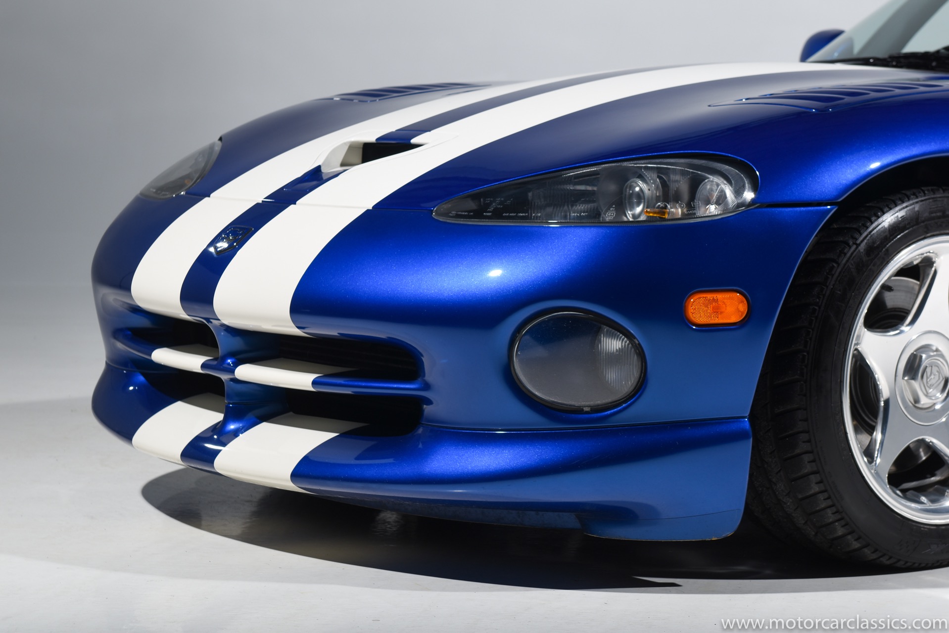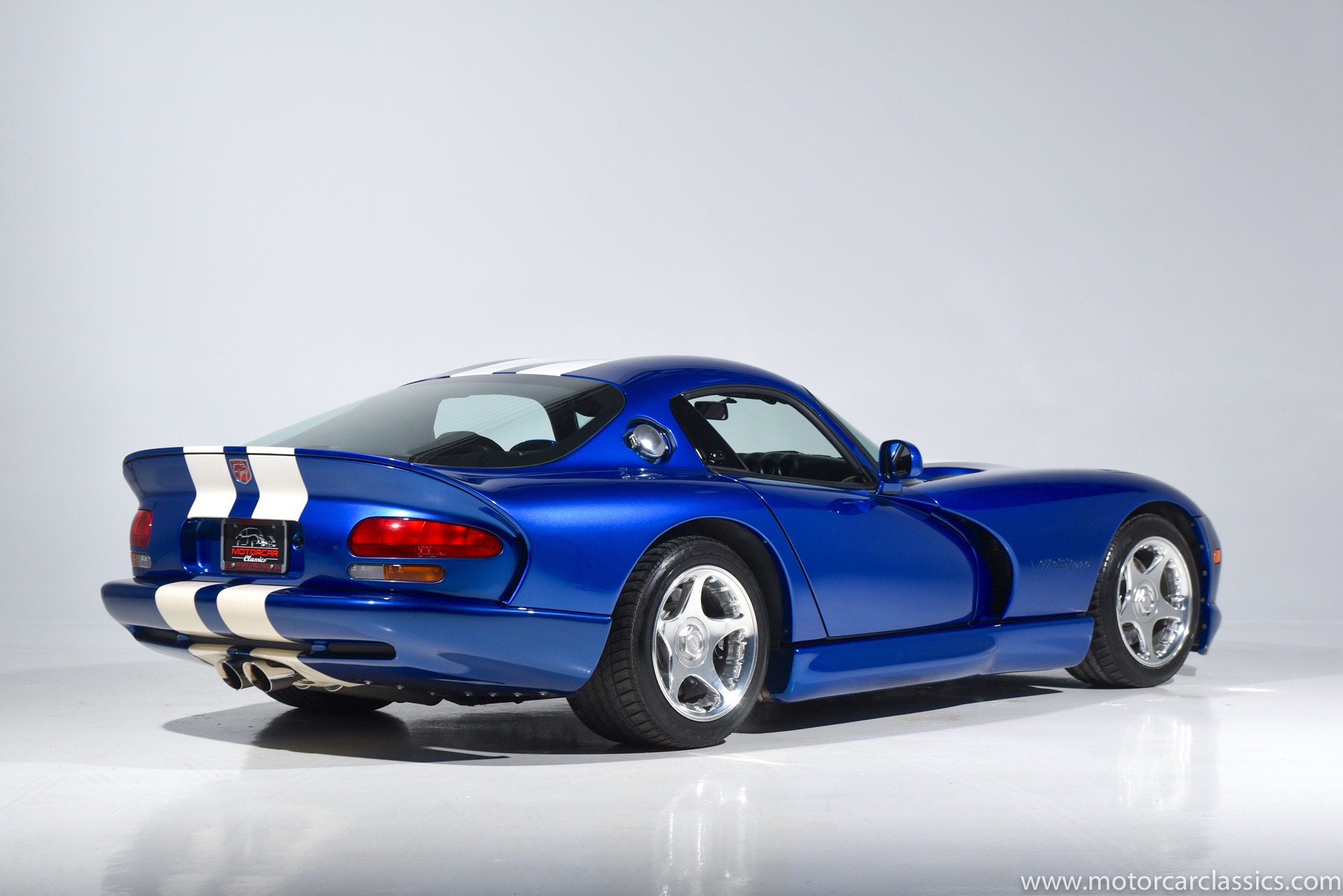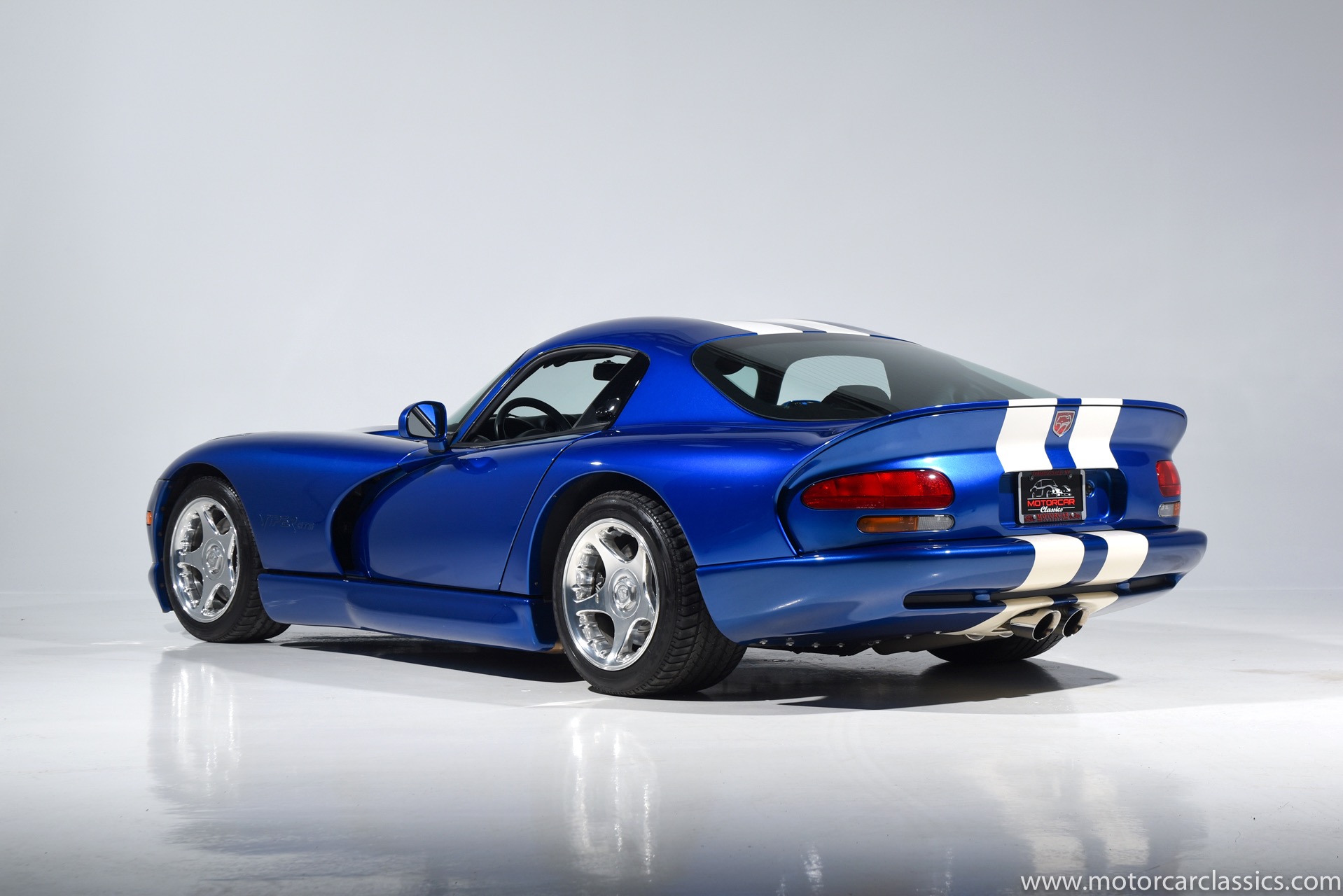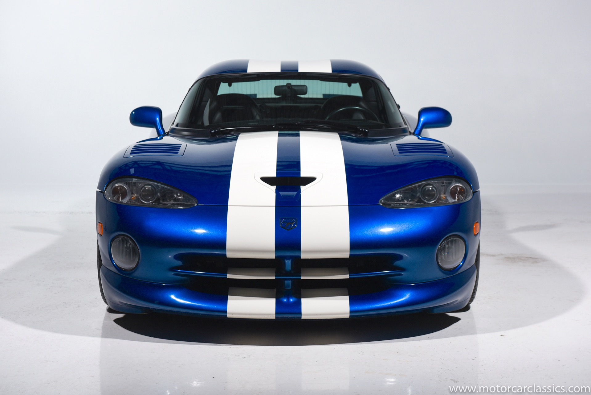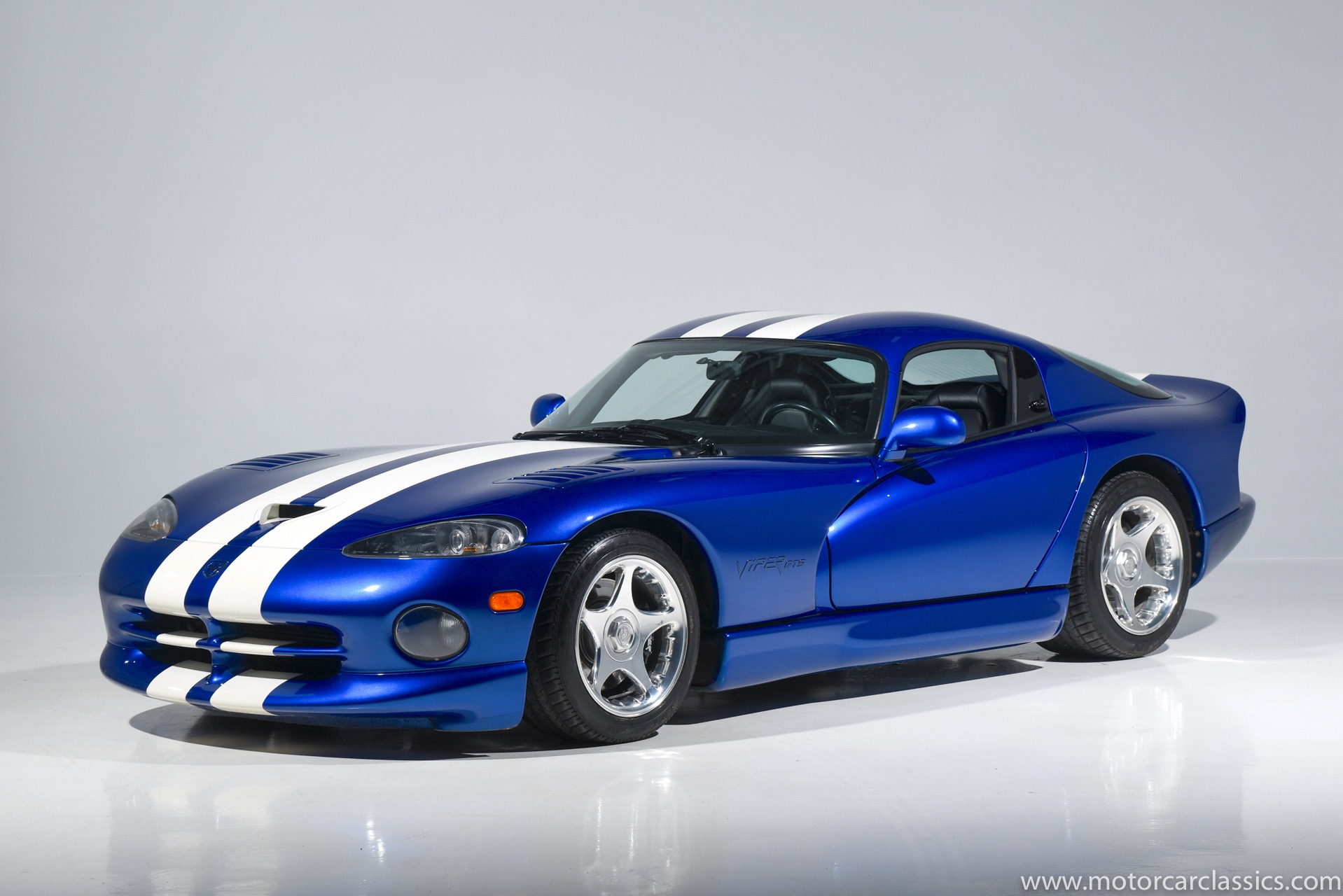 1997 Dodge Viper GTS for sale! Motorcar Classics is proud to present this stunning 1997 Dodge Viper GTS featured in Butane Blue Pearlcoat with black leather-trimmed seats and contrasting Stone White stripe. This awesome Viper has been cherished from new and covered only 9,786 miles. Power is by Dodge's iconic 8.0L V10 motor mated to a six-speed Tremec manual gearbox. Windows have been tinted. The car is loaded with all the desirable Viper features and is the best we have seen.