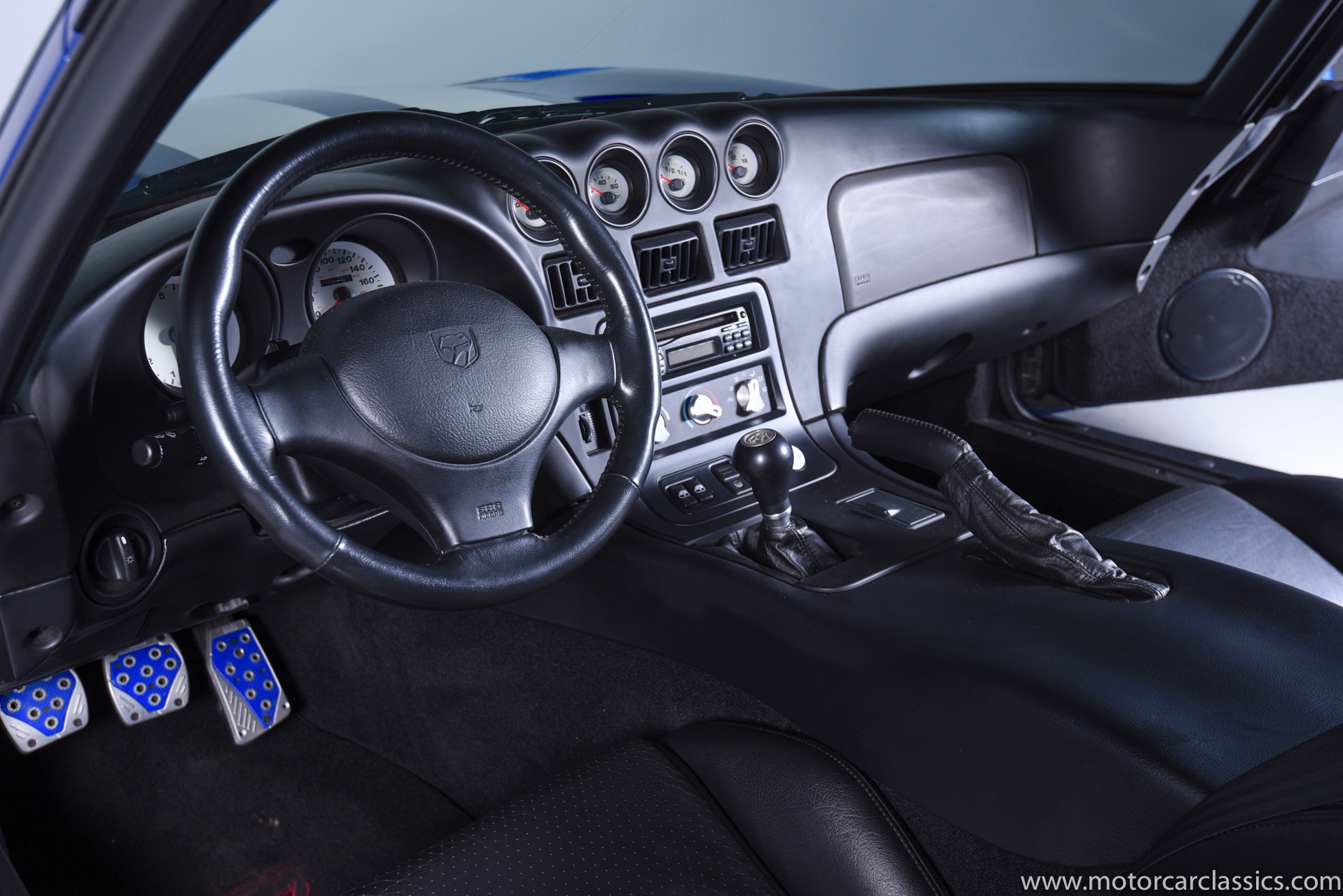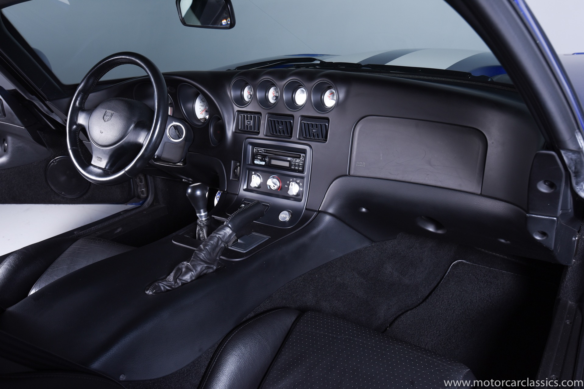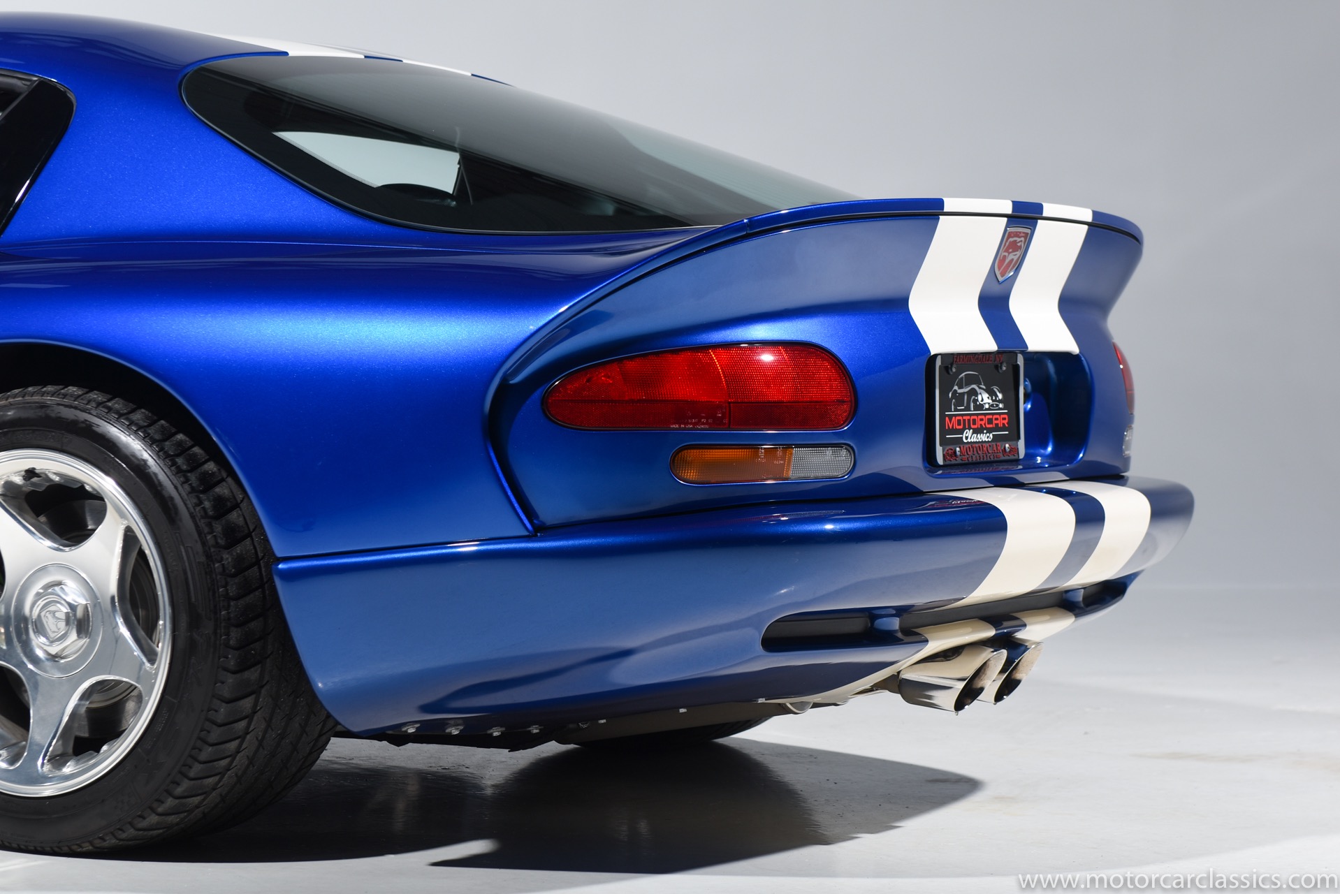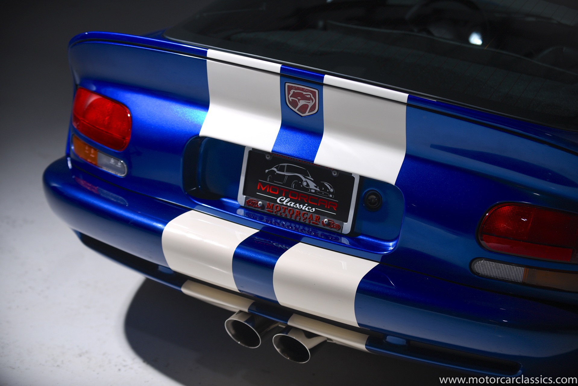 1997 Dodge Viper GTS for sale! Motorcar Classics is proud to present this stunning 1997 Dodge Viper GTS featured in Butane Blue Pearlcoat with black leather-trimmed seats and contrasting Stone White stripe. This awesome Viper has been cherished from new and covered only 9,786 miles. Power is by Dodge's iconic 8.0L V10 motor mated to a six-speed Tremec manual gearbox. Windows have been tinted. The car is loaded with all the desirable Viper features and is the best we have seen.