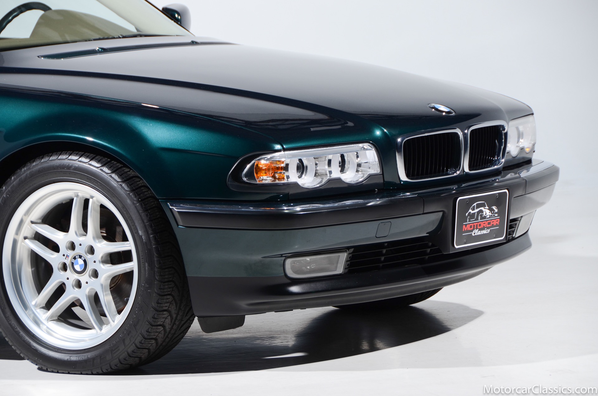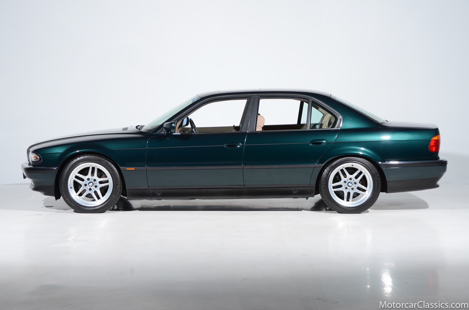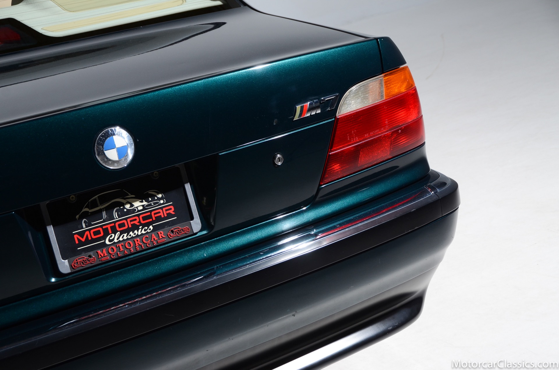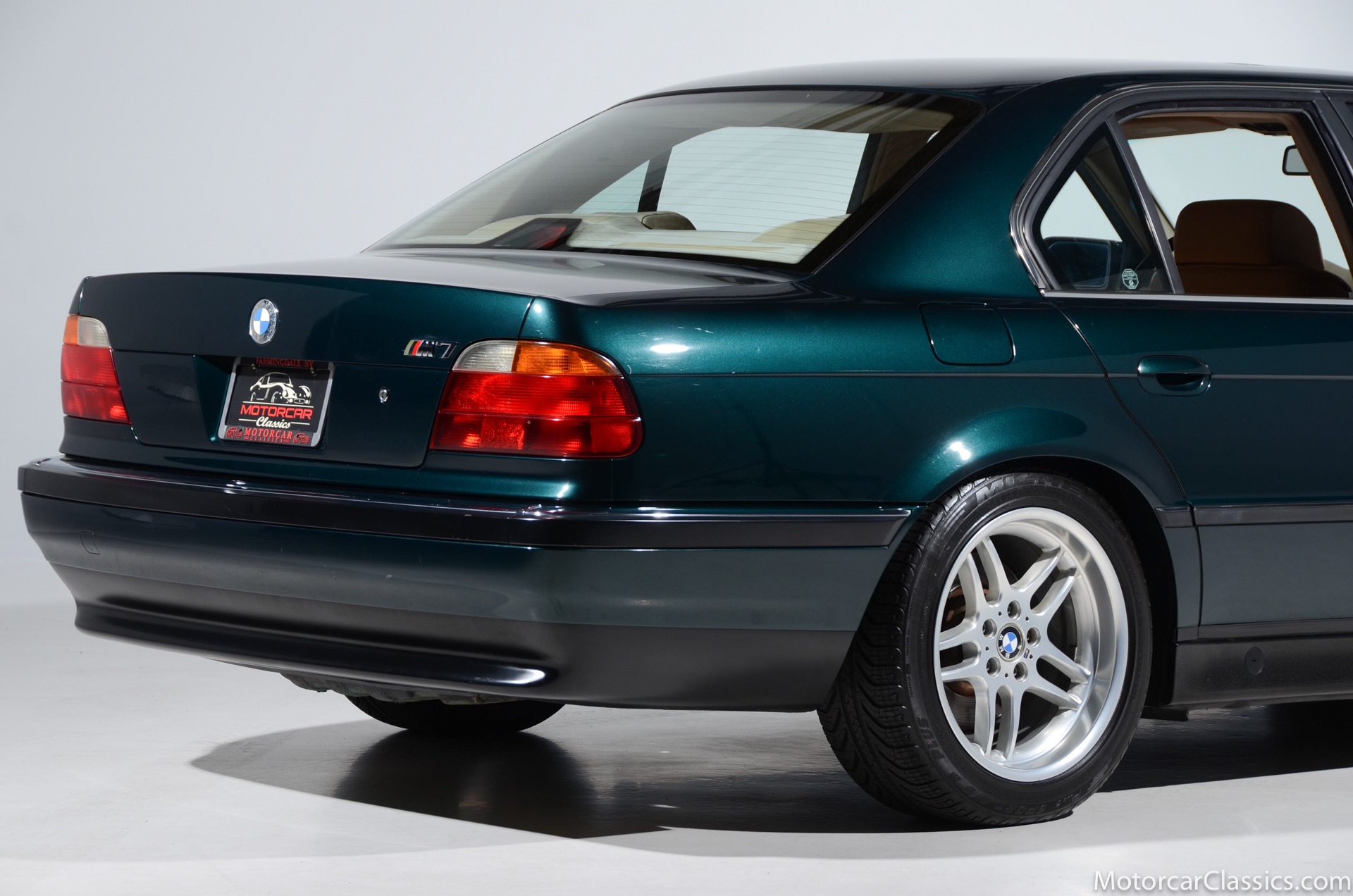 1998 BMW 740i M7 CUSTOM for sale! Motorcar Classics is proud to offer this professionally-built M7, an Ultimate Driving Machine that BMW never built. Based on a sound example of BMWs 1998 flagship 7-Series sedan, this awesome car has been upgraded with a E39 M5-sourced 4.9-liter V8 and six-speed manual transmission. The car is finished in Oxford Green (324) with a Sand Beige leather interior. The car has a clean Carfax report and shows no sign of ever having been damaged. The body was refinished in 2019 and features black Shadowline trim, black side skirts, integrated front fog lamps, and a tinted glass sunroof. Aftermarket LED projector headlights are fitted along with a custom M7 trunk badge. Additional equipment includes ventilated four-wheel disc brakes, 18 M-Parallel wheels, power-adjustable and heated front seats, dual-zone automatic climate control, a tinted glass power-operated sunroof, and a six-disc CD changer. The car is fitted with Michelin Pilot Sport A/S tires, 235/50 front and 255/45 rear. Four-wheel ventilated disc brakes were standard equipment, and the suspension was upgraded with Dinan Stage 1 components along with Bilstein dampers. The 4.9-liter S62 V8 was sourced from a 2001 E39 M5 and was serviced by a marque expert in 2018 before being installed. It features variable valve timing and was factory rated at 394 horsepower and 369 lb-ft of torque. Maintenance work prior to installation included a replacement intake manifold gasket, a new crankshaft seal, replacement water pump O-ring seals, a new accessory drive belt, and a replacement pilot bearing. Technical specifications aside, this M7 is fully-sorted and a delight to drive. Behind the wheel it feels like an M5 with the added space and luxury amenities of the 7-Series sedan. It is a most impressive creation.