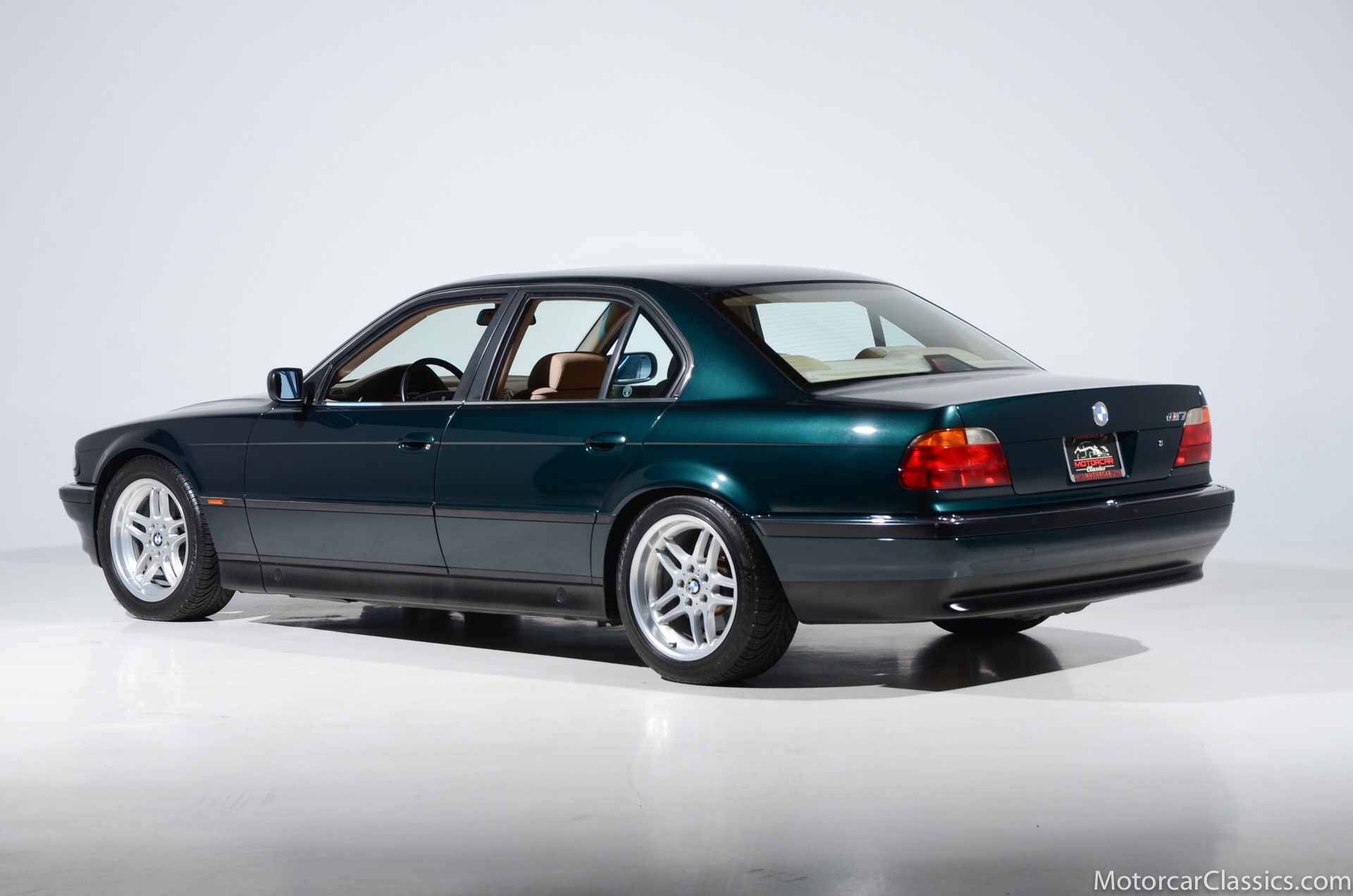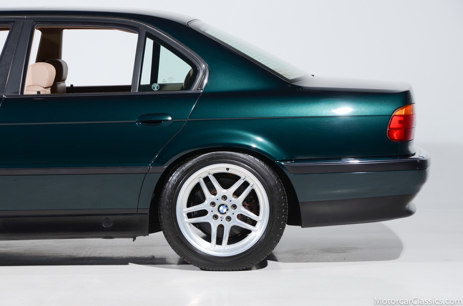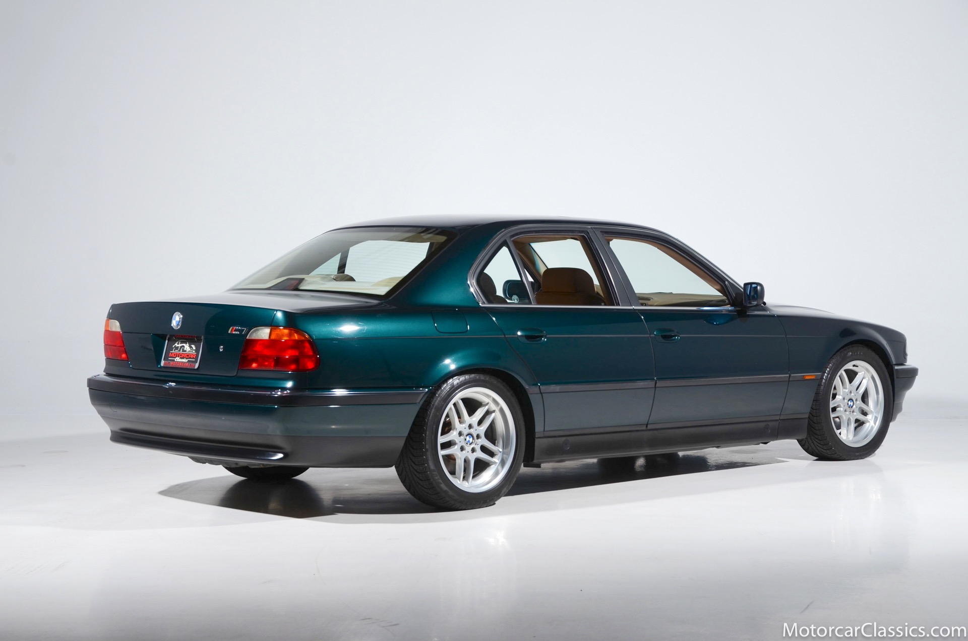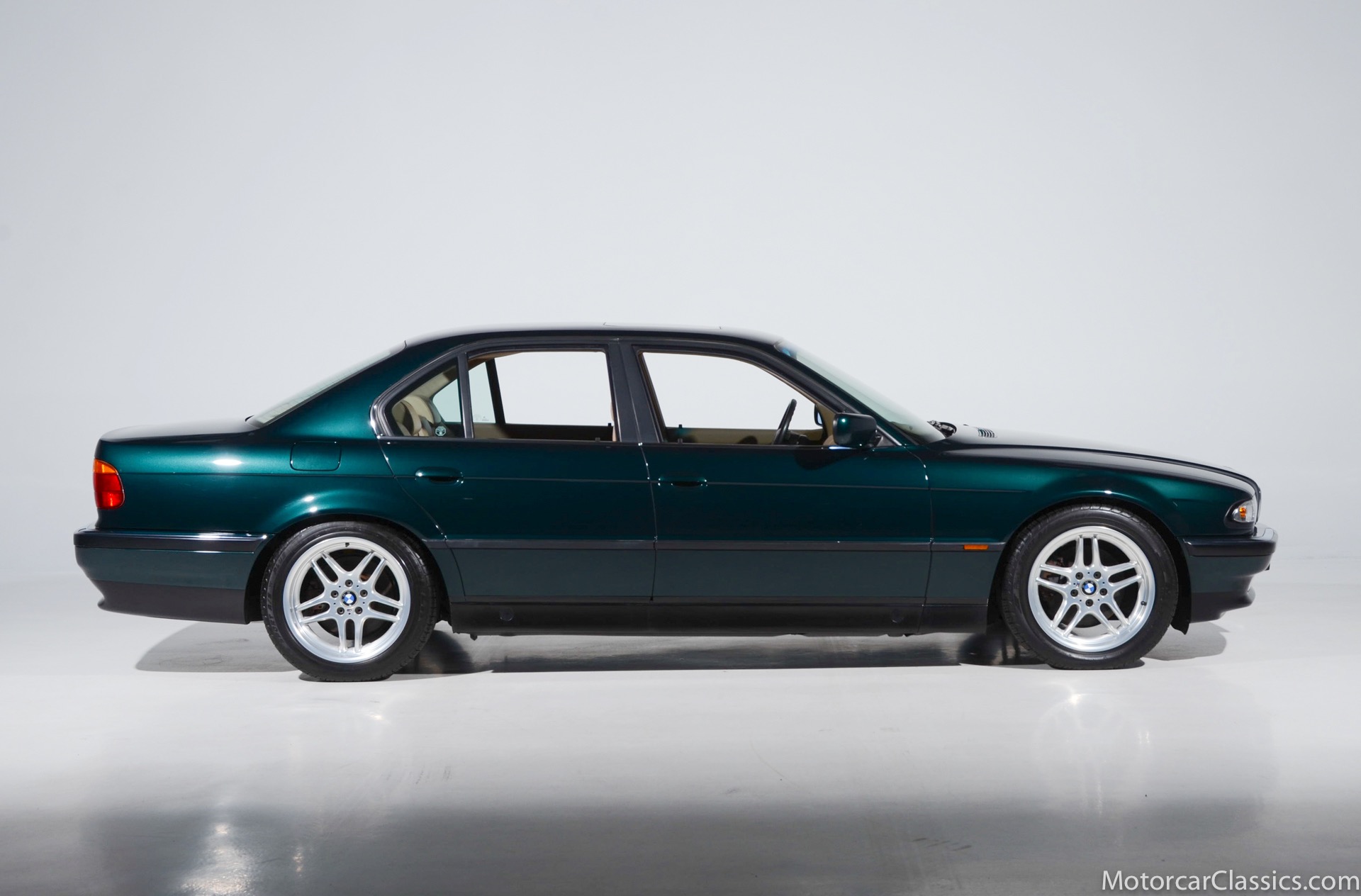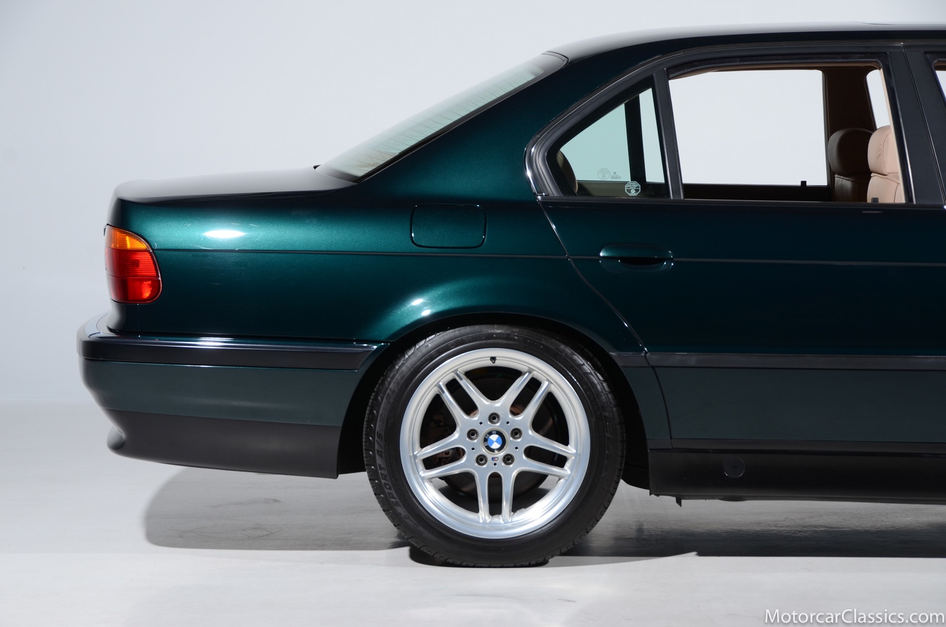 1998 BMW 740i M7 CUSTOM for sale! Motorcar Classics is proud to offer this professionally-built M7, an Ultimate Driving Machine that BMW never built. Based on a sound example of BMWs 1998 flagship 7-Series sedan, this awesome car has been upgraded with a E39 M5-sourced 4.9-liter V8 and six-speed manual transmission. The car is finished in Oxford Green (324) with a Sand Beige leather interior. The car has a clean Carfax report and shows no sign of ever having been damaged. The body was refinished in 2019 and features black Shadowline trim, black side skirts, integrated front fog lamps, and a tinted glass sunroof. Aftermarket LED projector headlights are fitted along with a custom M7 trunk badge. Additional equipment includes ventilated four-wheel disc brakes, 18 M-Parallel wheels, power-adjustable and heated front seats, dual-zone automatic climate control, a tinted glass power-operated sunroof, and a six-disc CD changer. The car is fitted with Michelin Pilot Sport A/S tires, 235/50 front and 255/45 rear. Four-wheel ventilated disc brakes were standard equipment, and the suspension was upgraded with Dinan Stage 1 components along with Bilstein dampers. The 4.9-liter S62 V8 was sourced from a 2001 E39 M5 and was serviced by a marque expert in 2018 before being installed. It features variable valve timing and was factory rated at 394 horsepower and 369 lb-ft of torque. Maintenance work prior to installation included a replacement intake manifold gasket, a new crankshaft seal, replacement water pump O-ring seals, a new accessory drive belt, and a replacement pilot bearing. Technical specifications aside, this M7 is fully-sorted and a delight to drive. Behind the wheel it feels like an M5 with the added space and luxury amenities of the 7-Series sedan. It is a most impressive creation.