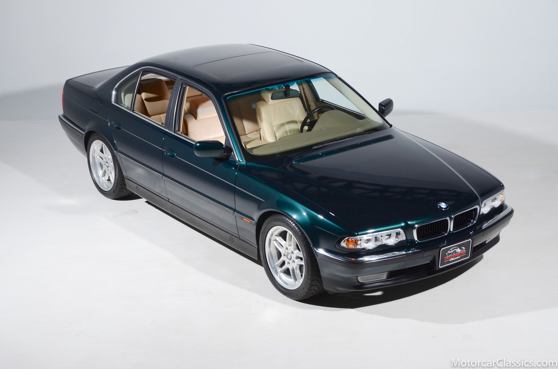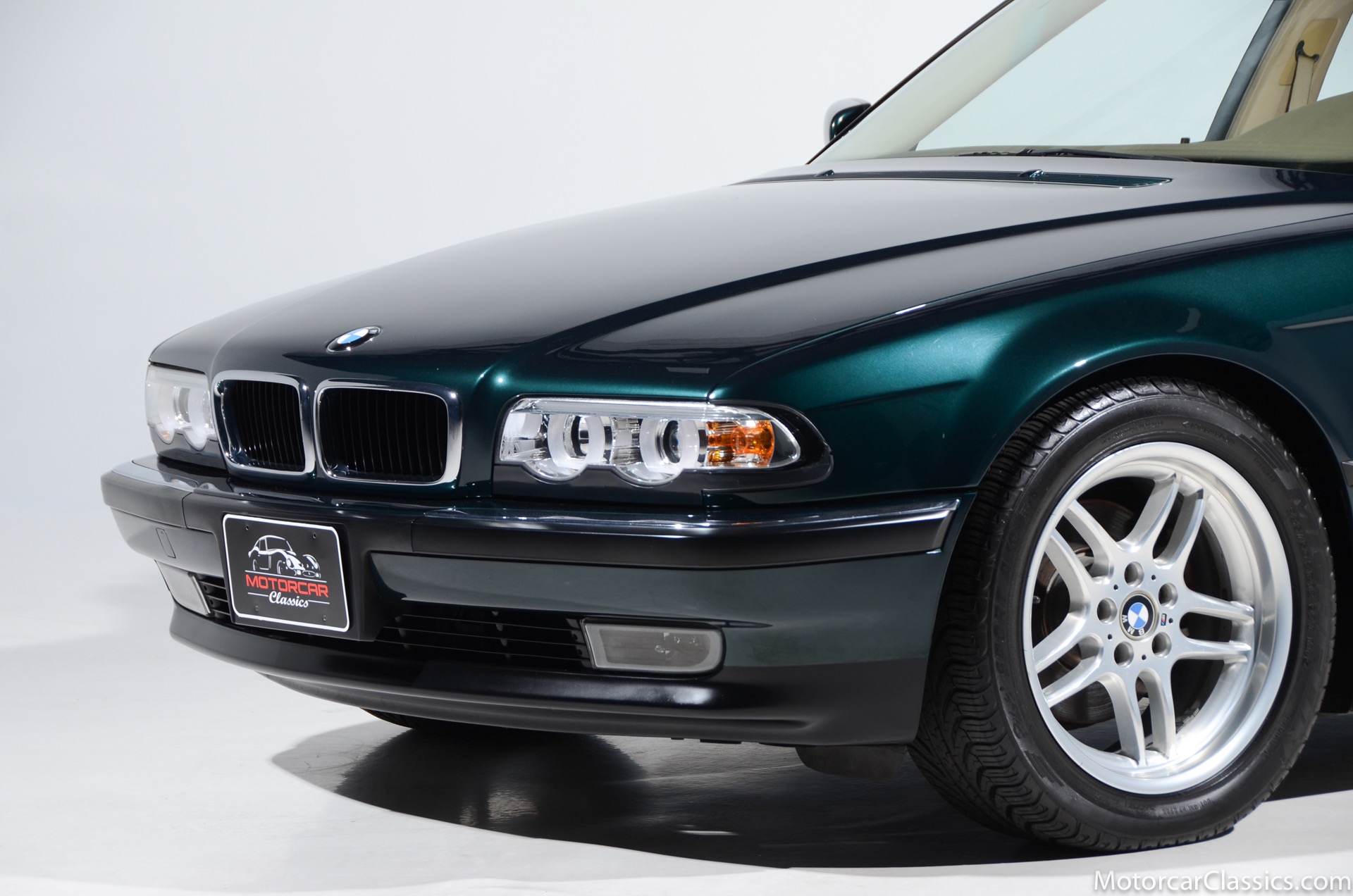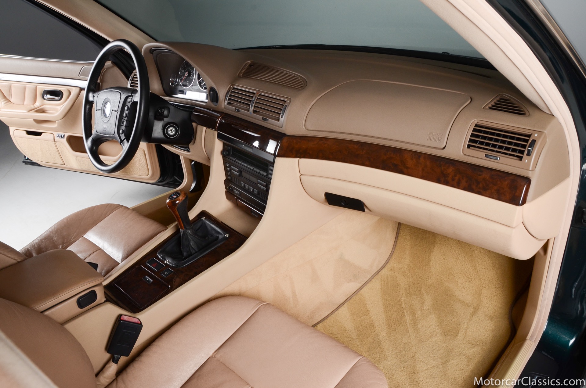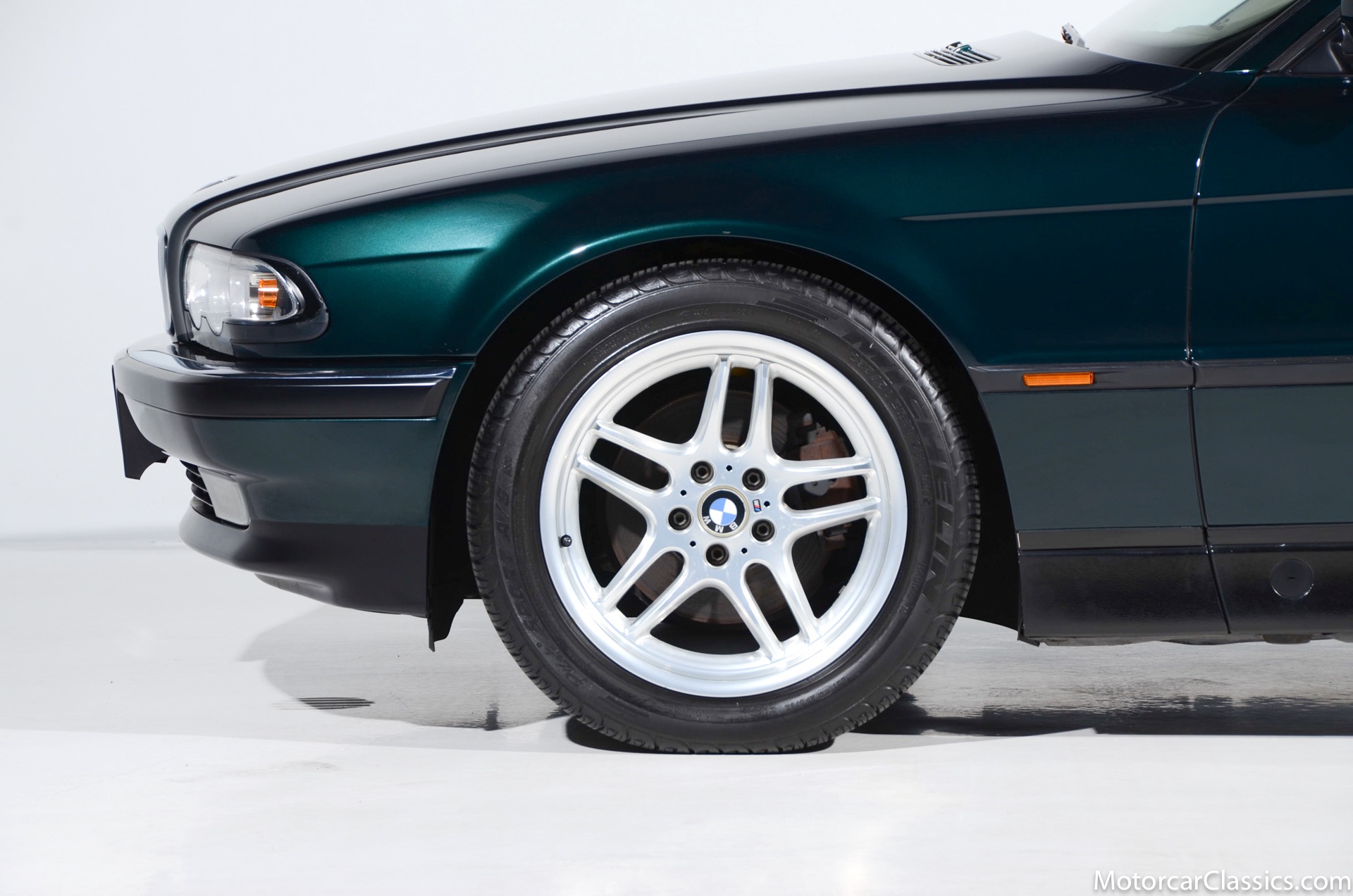 1998 BMW 740i M7 CUSTOM for sale! Motorcar Classics is proud to offer this professionally-built M7, an Ultimate Driving Machine that BMW never built. Based on a sound example of BMWs 1998 flagship 7-Series sedan, this awesome car has been upgraded with a E39 M5-sourced 4.9-liter V8 and six-speed manual transmission. The car is finished in Oxford Green (324) with a Sand Beige leather interior. The car has a clean Carfax report and shows no sign of ever having been damaged. The body was refinished in 2019 and features black Shadowline trim, black side skirts, integrated front fog lamps, and a tinted glass sunroof. Aftermarket LED projector headlights are fitted along with a custom M7 trunk badge. Additional equipment includes ventilated four-wheel disc brakes, 18 M-Parallel wheels, power-adjustable and heated front seats, dual-zone automatic climate control, a tinted glass power-operated sunroof, and a six-disc CD changer. The car is fitted with Michelin Pilot Sport A/S tires, 235/50 front and 255/45 rear. Four-wheel ventilated disc brakes were standard equipment, and the suspension was upgraded with Dinan Stage 1 components along with Bilstein dampers. The 4.9-liter S62 V8 was sourced from a 2001 E39 M5 and was serviced by a marque expert in 2018 before being installed. It features variable valve timing and was factory rated at 394 horsepower and 369 lb-ft of torque. Maintenance work prior to installation included a replacement intake manifold gasket, a new crankshaft seal, replacement water pump O-ring seals, a new accessory drive belt, and a replacement pilot bearing. Technical specifications aside, this M7 is fully-sorted and a delight to drive. Behind the wheel it feels like an M5 with the added space and luxury amenities of the 7-Series sedan. It is a most impressive creation.