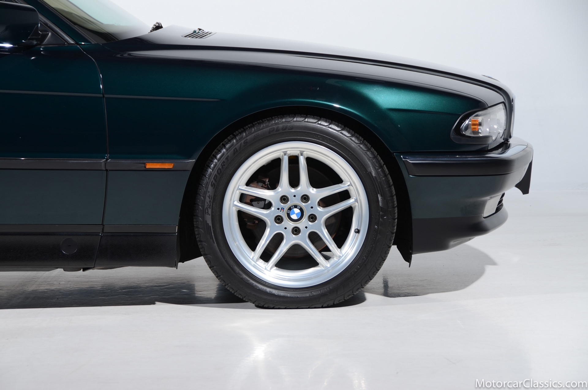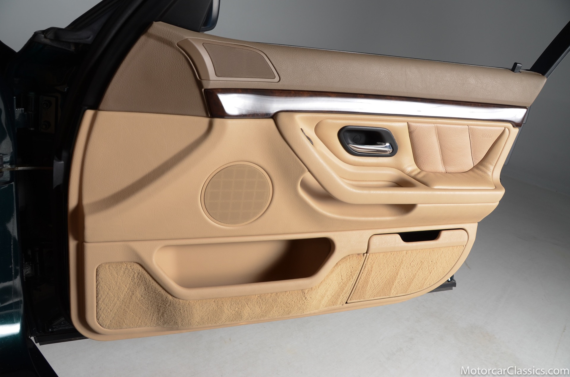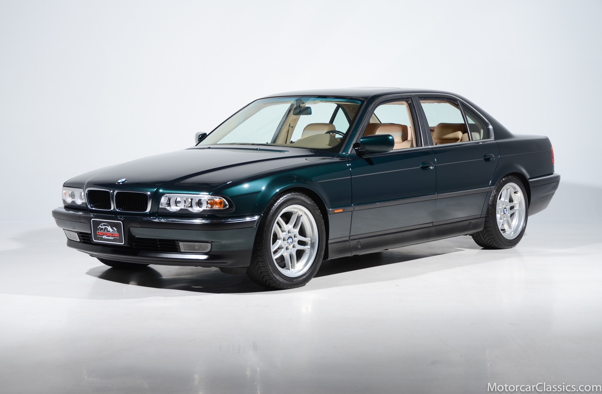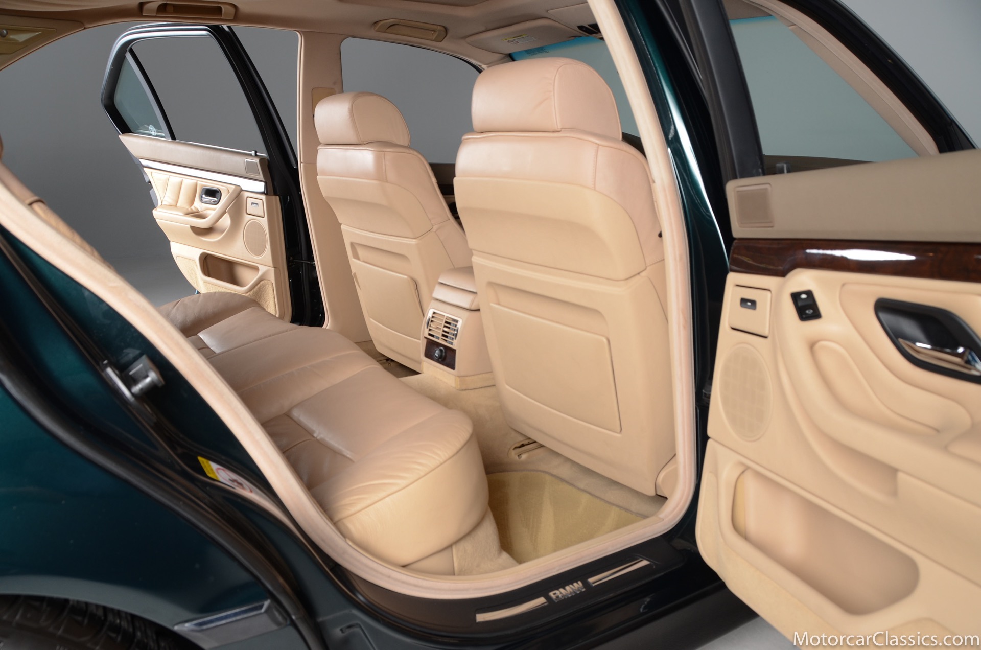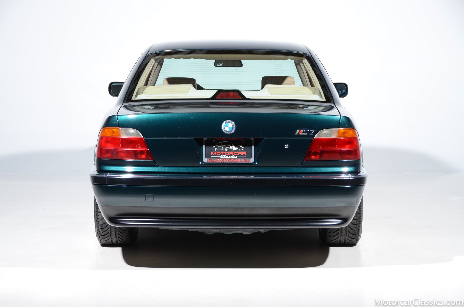 1998 BMW 740i M7 CUSTOM for sale! Motorcar Classics is proud to offer this professionally-built M7, an Ultimate Driving Machine that BMW never built. Based on a sound example of BMWs 1998 flagship 7-Series sedan, this awesome car has been upgraded with a E39 M5-sourced 4.9-liter V8 and six-speed manual transmission. The car is finished in Oxford Green (324) with a Sand Beige leather interior. The car has a clean Carfax report and shows no sign of ever having been damaged. The body was refinished in 2019 and features black Shadowline trim, black side skirts, integrated front fog lamps, and a tinted glass sunroof. Aftermarket LED projector headlights are fitted along with a custom M7 trunk badge. Additional equipment includes ventilated four-wheel disc brakes, 18 M-Parallel wheels, power-adjustable and heated front seats, dual-zone automatic climate control, a tinted glass power-operated sunroof, and a six-disc CD changer. The car is fitted with Michelin Pilot Sport A/S tires, 235/50 front and 255/45 rear. Four-wheel ventilated disc brakes were standard equipment, and the suspension was upgraded with Dinan Stage 1 components along with Bilstein dampers. The 4.9-liter S62 V8 was sourced from a 2001 E39 M5 and was serviced by a marque expert in 2018 before being installed. It features variable valve timing and was factory rated at 394 horsepower and 369 lb-ft of torque. Maintenance work prior to installation included a replacement intake manifold gasket, a new crankshaft seal, replacement water pump O-ring seals, a new accessory drive belt, and a replacement pilot bearing. Technical specifications aside, this M7 is fully-sorted and a delight to drive. Behind the wheel it feels like an M5 with the added space and luxury amenities of the 7-Series sedan. It is a most impressive creation.