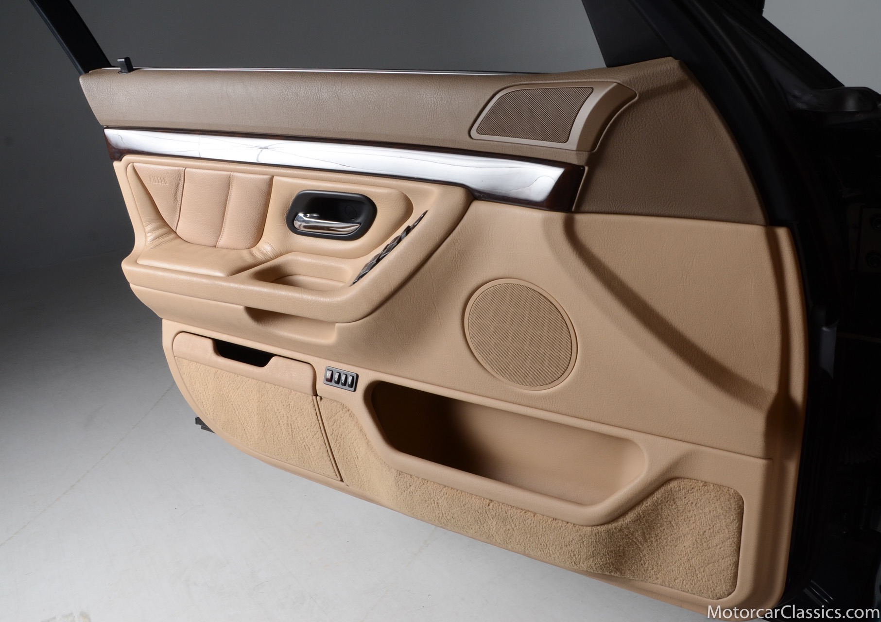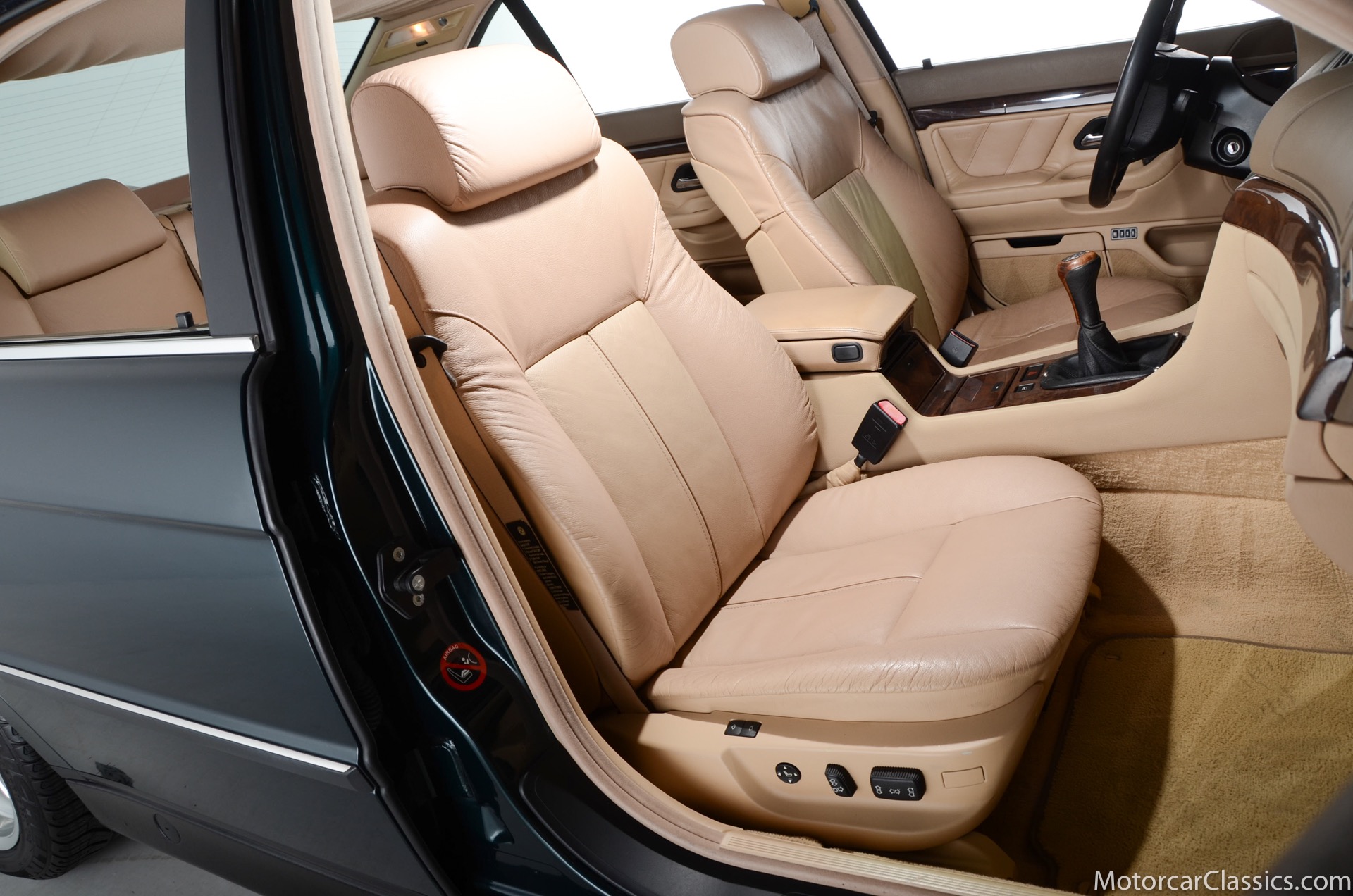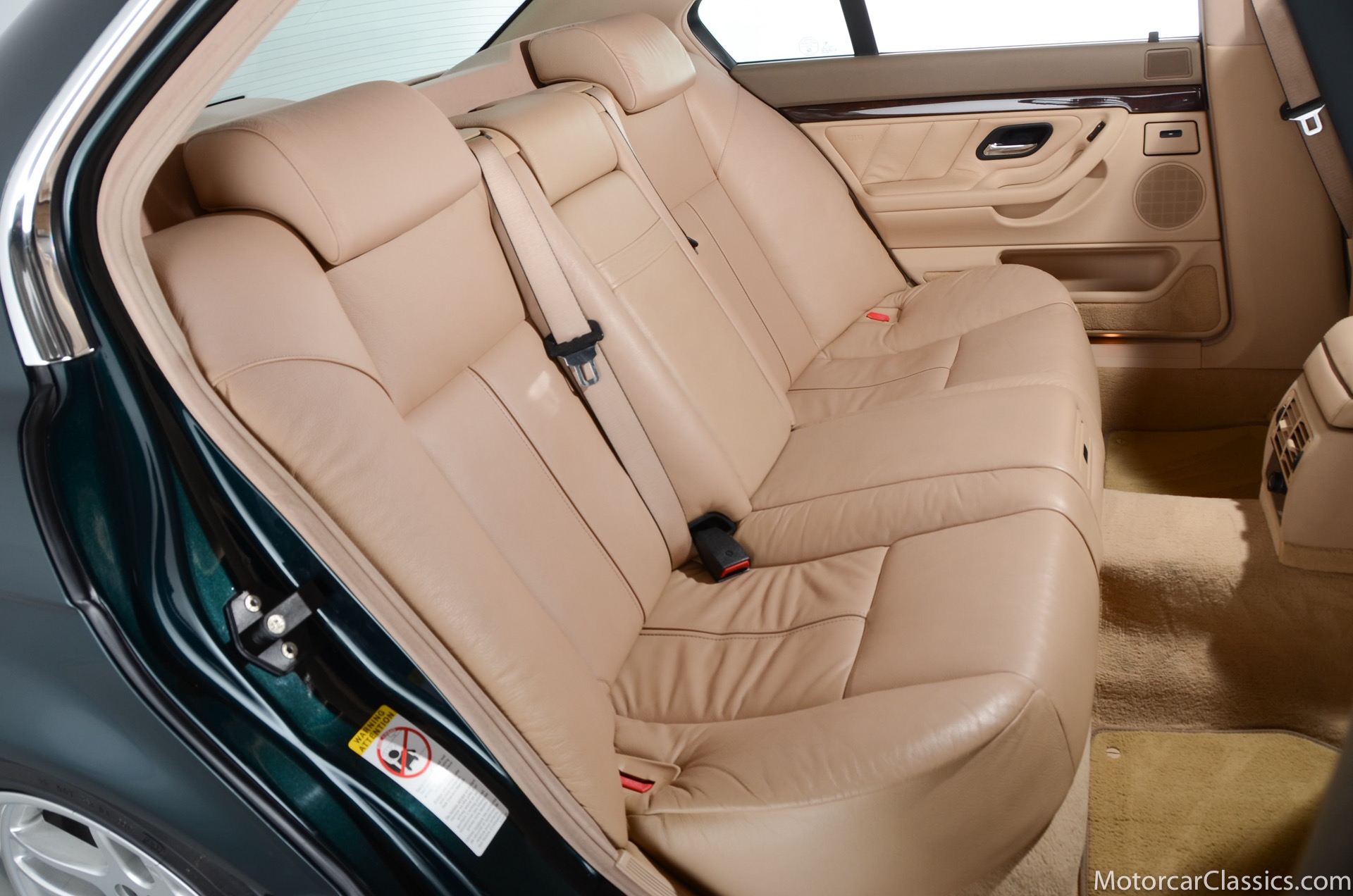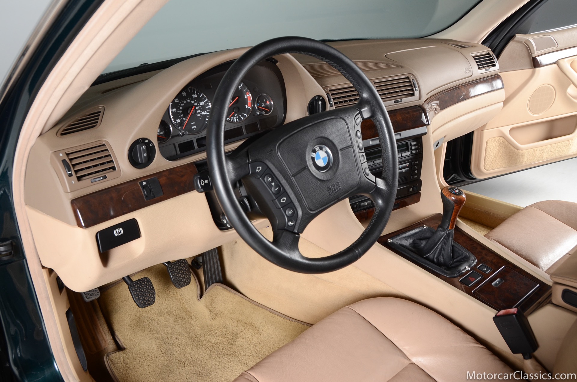 1998 BMW 740i M7 CUSTOM for sale! Motorcar Classics is proud to offer this professionally-built M7, an Ultimate Driving Machine that BMW never built. Based on a sound example of BMWs 1998 flagship 7-Series sedan, this awesome car has been upgraded with a E39 M5-sourced 4.9-liter V8 and six-speed manual transmission. The car is finished in Oxford Green (324) with a Sand Beige leather interior. The car has a clean Carfax report and shows no sign of ever having been damaged. The body was refinished in 2019 and features black Shadowline trim, black side skirts, integrated front fog lamps, and a tinted glass sunroof. Aftermarket LED projector headlights are fitted along with a custom M7 trunk badge. Additional equipment includes ventilated four-wheel disc brakes, 18 M-Parallel wheels, power-adjustable and heated front seats, dual-zone automatic climate control, a tinted glass power-operated sunroof, and a six-disc CD changer. The car is fitted with Michelin Pilot Sport A/S tires, 235/50 front and 255/45 rear. Four-wheel ventilated disc brakes were standard equipment, and the suspension was upgraded with Dinan Stage 1 components along with Bilstein dampers. The 4.9-liter S62 V8 was sourced from a 2001 E39 M5 and was serviced by a marque expert in 2018 before being installed. It features variable valve timing and was factory rated at 394 horsepower and 369 lb-ft of torque. Maintenance work prior to installation included a replacement intake manifold gasket, a new crankshaft seal, replacement water pump O-ring seals, a new accessory drive belt, and a replacement pilot bearing. Technical specifications aside, this M7 is fully-sorted and a delight to drive. Behind the wheel it feels like an M5 with the added space and luxury amenities of the 7-Series sedan. It is a most impressive creation.