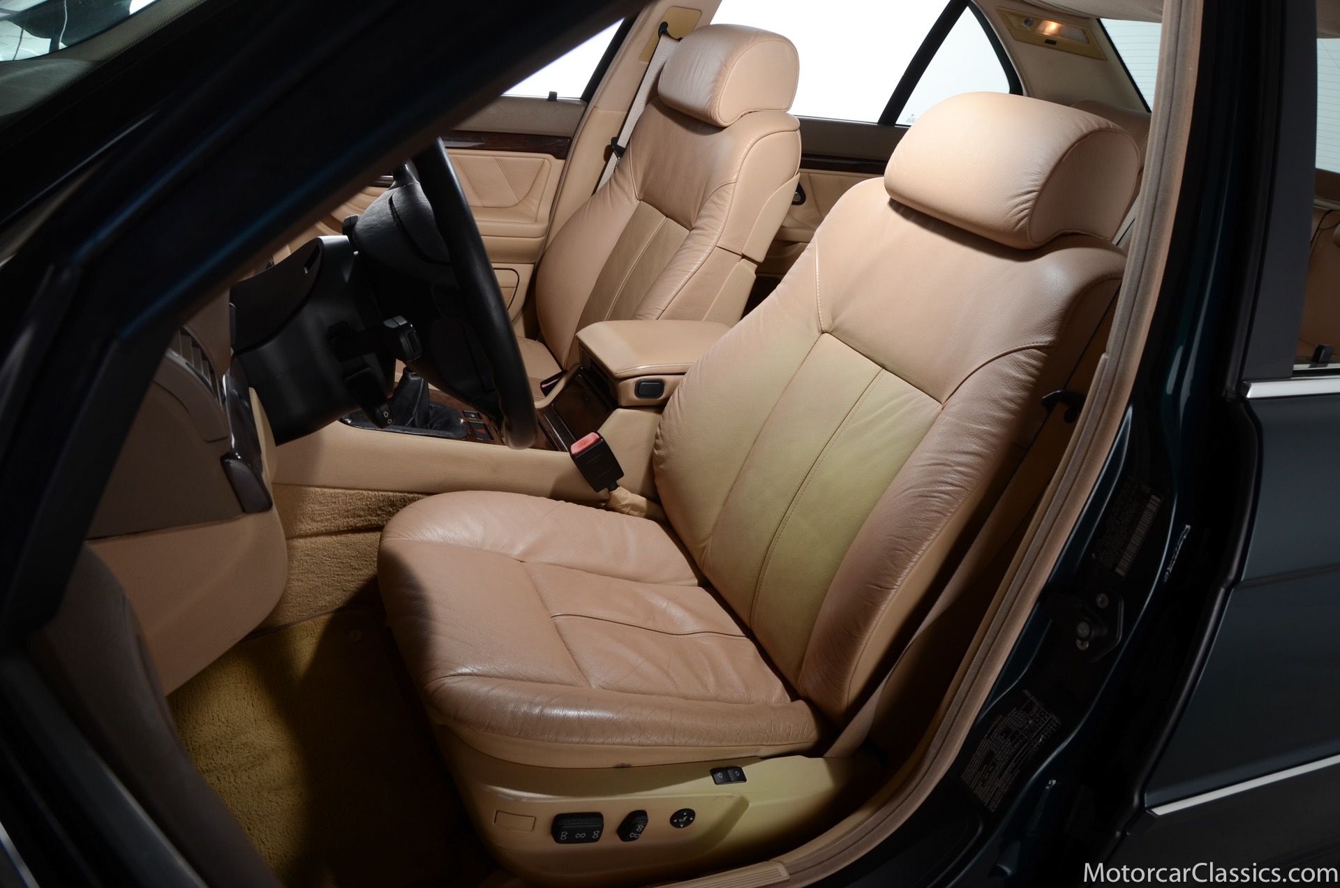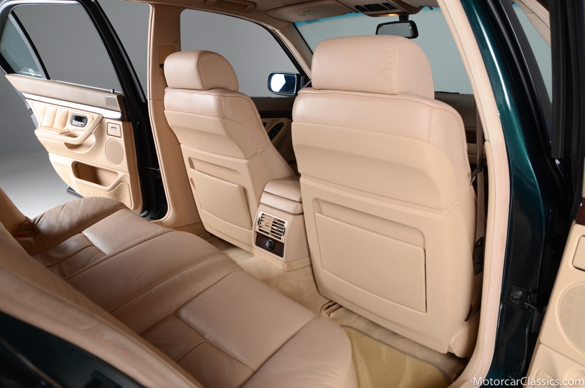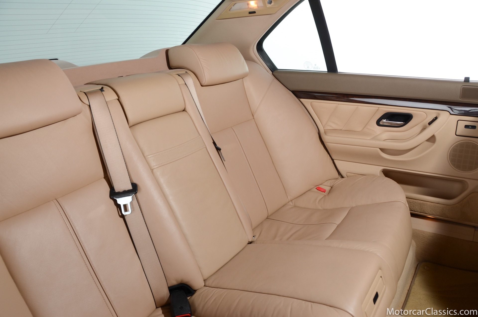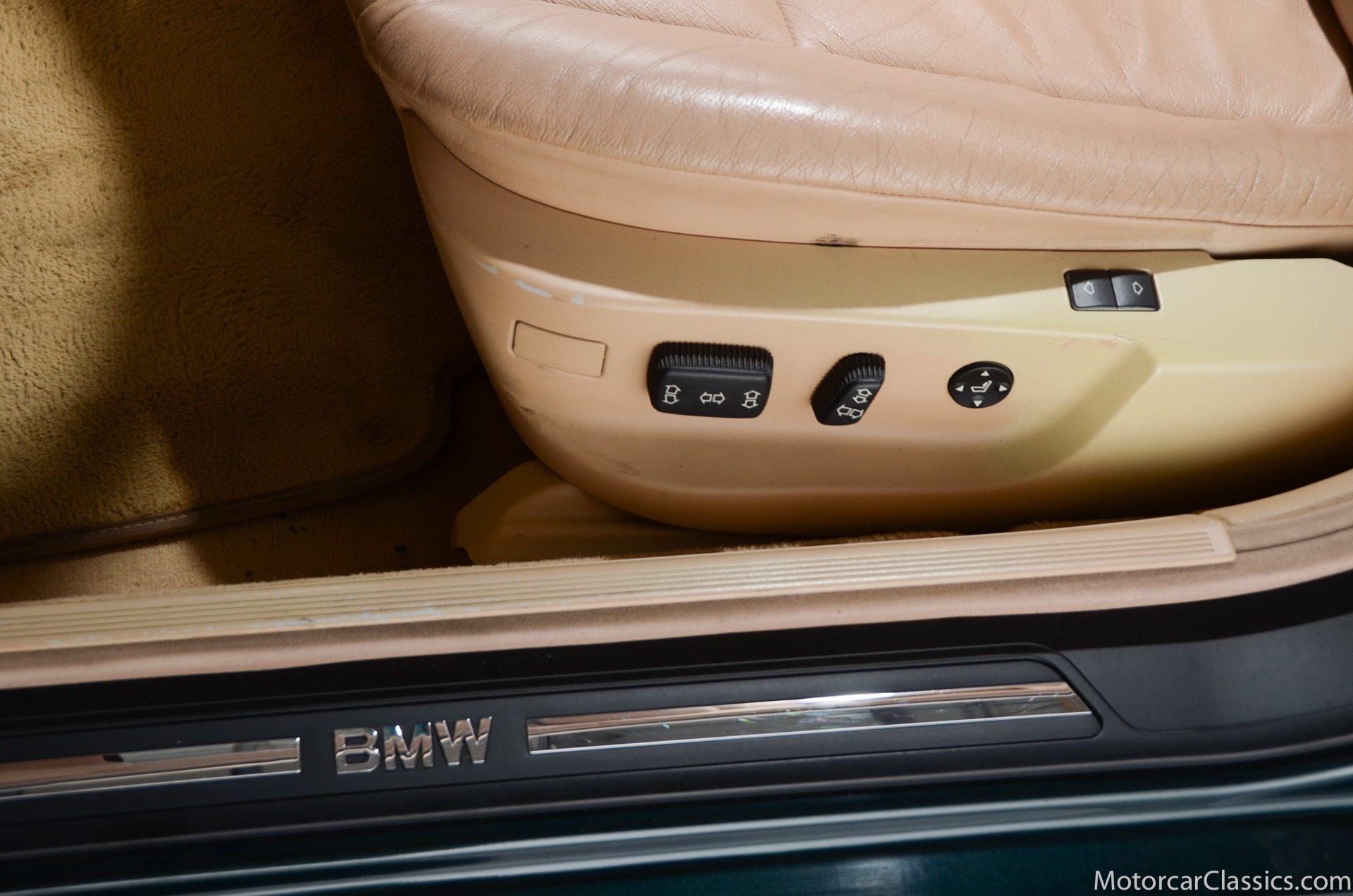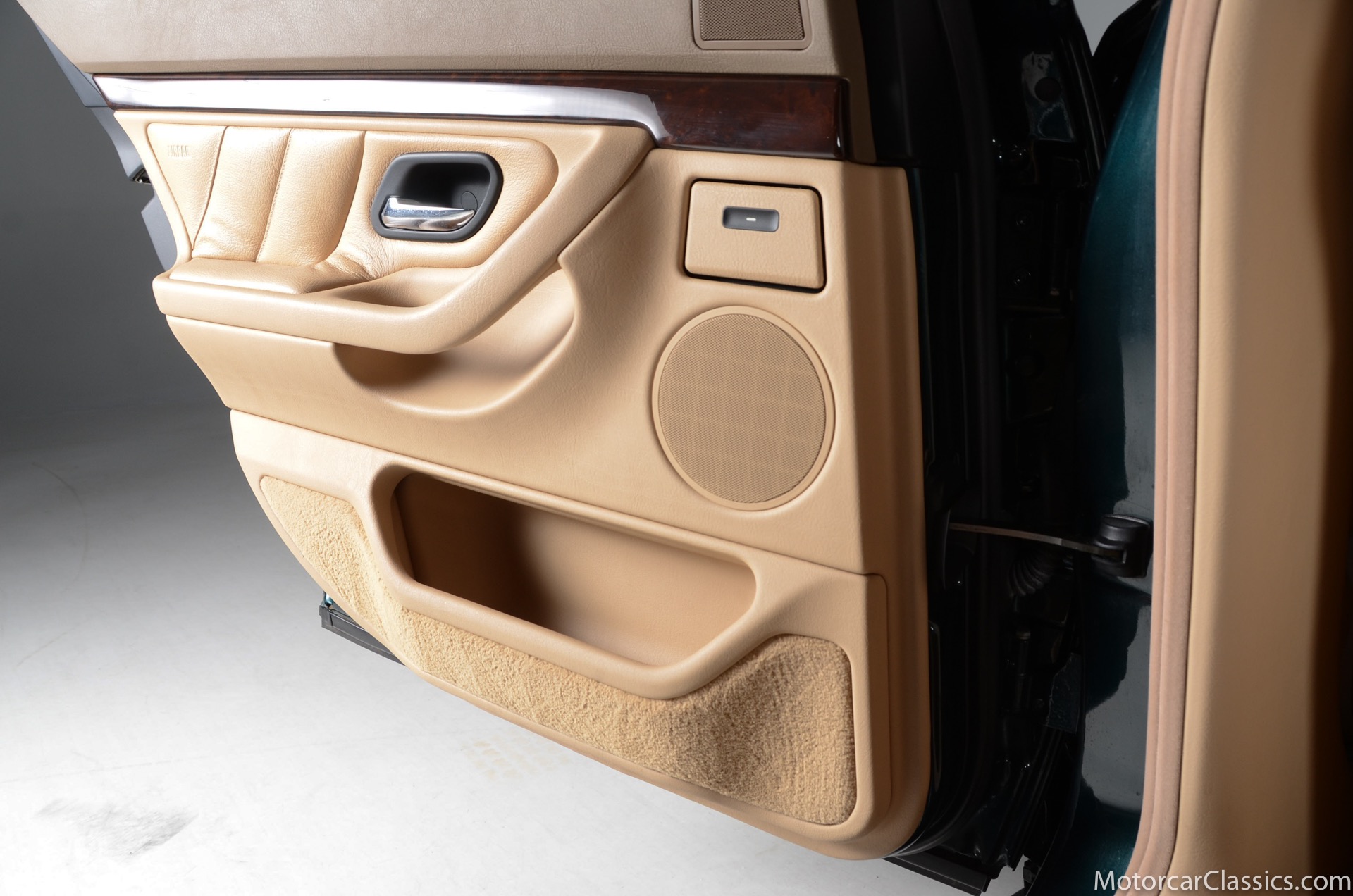 1998 BMW 740i M7 CUSTOM for sale! Motorcar Classics is proud to offer this professionally-built M7, an Ultimate Driving Machine that BMW never built. Based on a sound example of BMWs 1998 flagship 7-Series sedan, this awesome car has been upgraded with a E39 M5-sourced 4.9-liter V8 and six-speed manual transmission. The car is finished in Oxford Green (324) with a Sand Beige leather interior. The car has a clean Carfax report and shows no sign of ever having been damaged. The body was refinished in 2019 and features black Shadowline trim, black side skirts, integrated front fog lamps, and a tinted glass sunroof. Aftermarket LED projector headlights are fitted along with a custom M7 trunk badge. Additional equipment includes ventilated four-wheel disc brakes, 18 M-Parallel wheels, power-adjustable and heated front seats, dual-zone automatic climate control, a tinted glass power-operated sunroof, and a six-disc CD changer. The car is fitted with Michelin Pilot Sport A/S tires, 235/50 front and 255/45 rear. Four-wheel ventilated disc brakes were standard equipment, and the suspension was upgraded with Dinan Stage 1 components along with Bilstein dampers. The 4.9-liter S62 V8 was sourced from a 2001 E39 M5 and was serviced by a marque expert in 2018 before being installed. It features variable valve timing and was factory rated at 394 horsepower and 369 lb-ft of torque. Maintenance work prior to installation included a replacement intake manifold gasket, a new crankshaft seal, replacement water pump O-ring seals, a new accessory drive belt, and a replacement pilot bearing. Technical specifications aside, this M7 is fully-sorted and a delight to drive. Behind the wheel it feels like an M5 with the added space and luxury amenities of the 7-Series sedan. It is a most impressive creation.