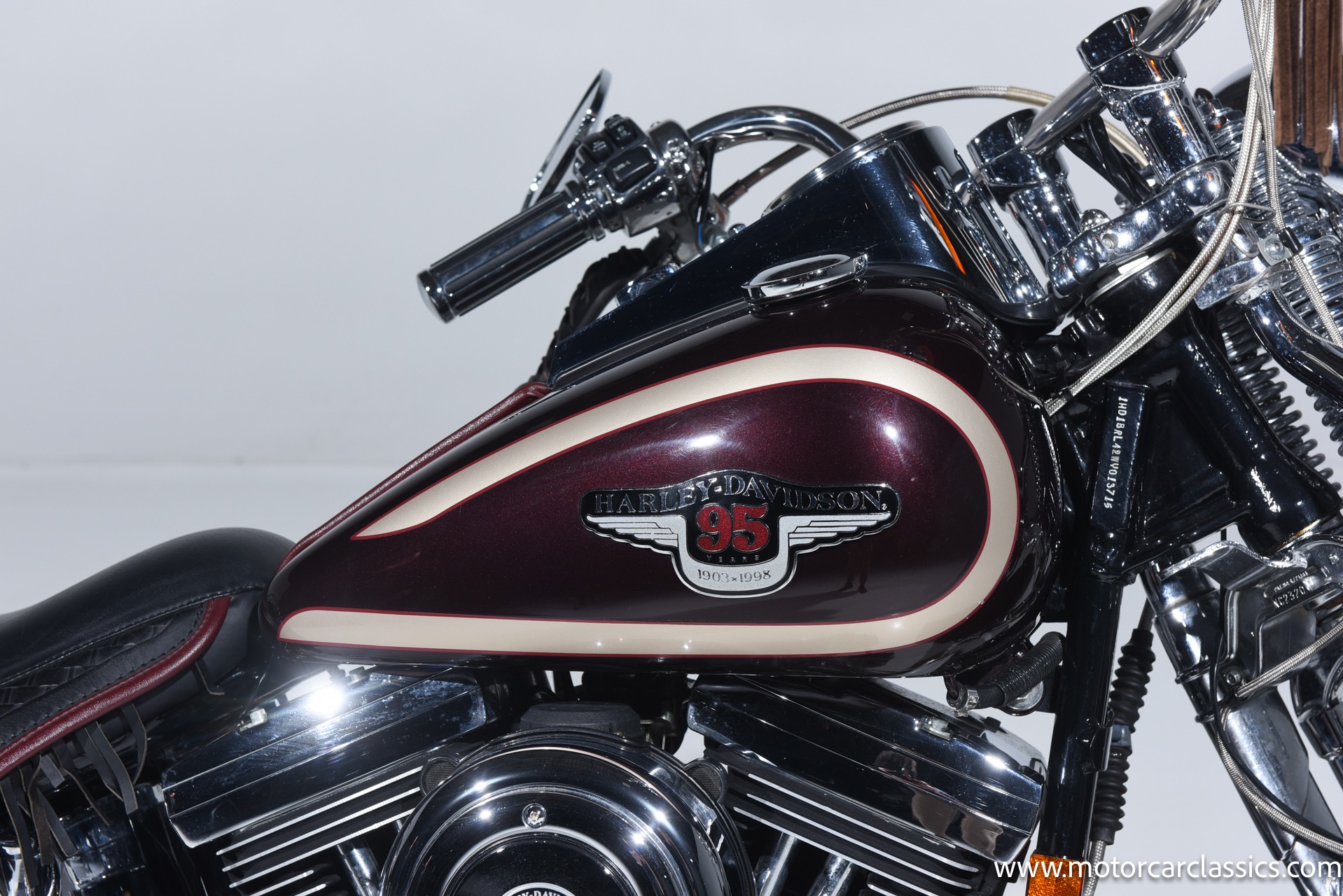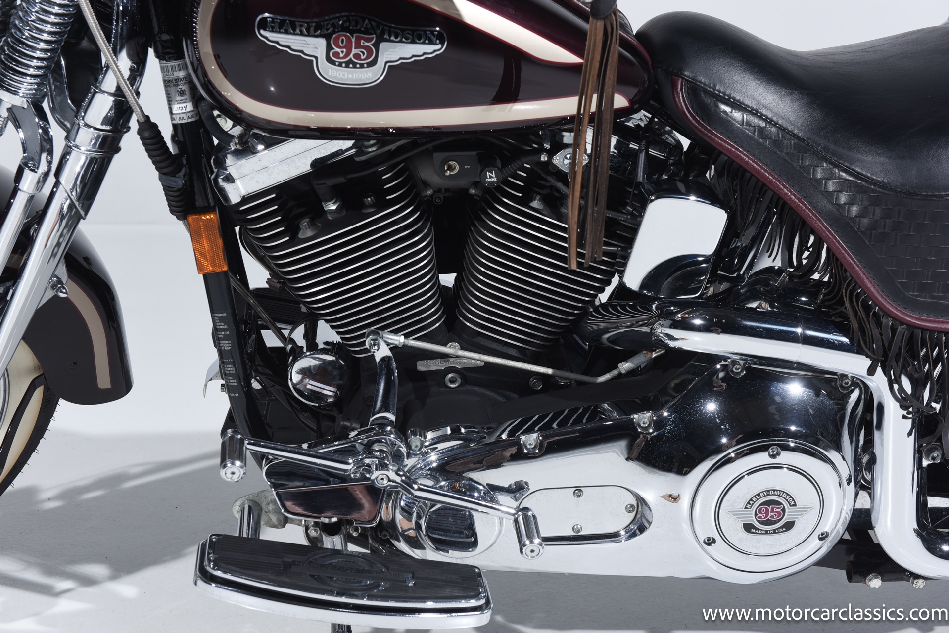 1998 Harley-Davidson Softail for sale! Motorcar Classics is proud to present this 1998 Harley-Davidson Heritage Softail Springer 95th Anniversary Edition. This is a highly sought-after collector's motorcycle, celebrated for its unique design and historical significance. Our bike has been cherished from new and covered only 1,137 miles in the hands of its original owner. It is unblemished.