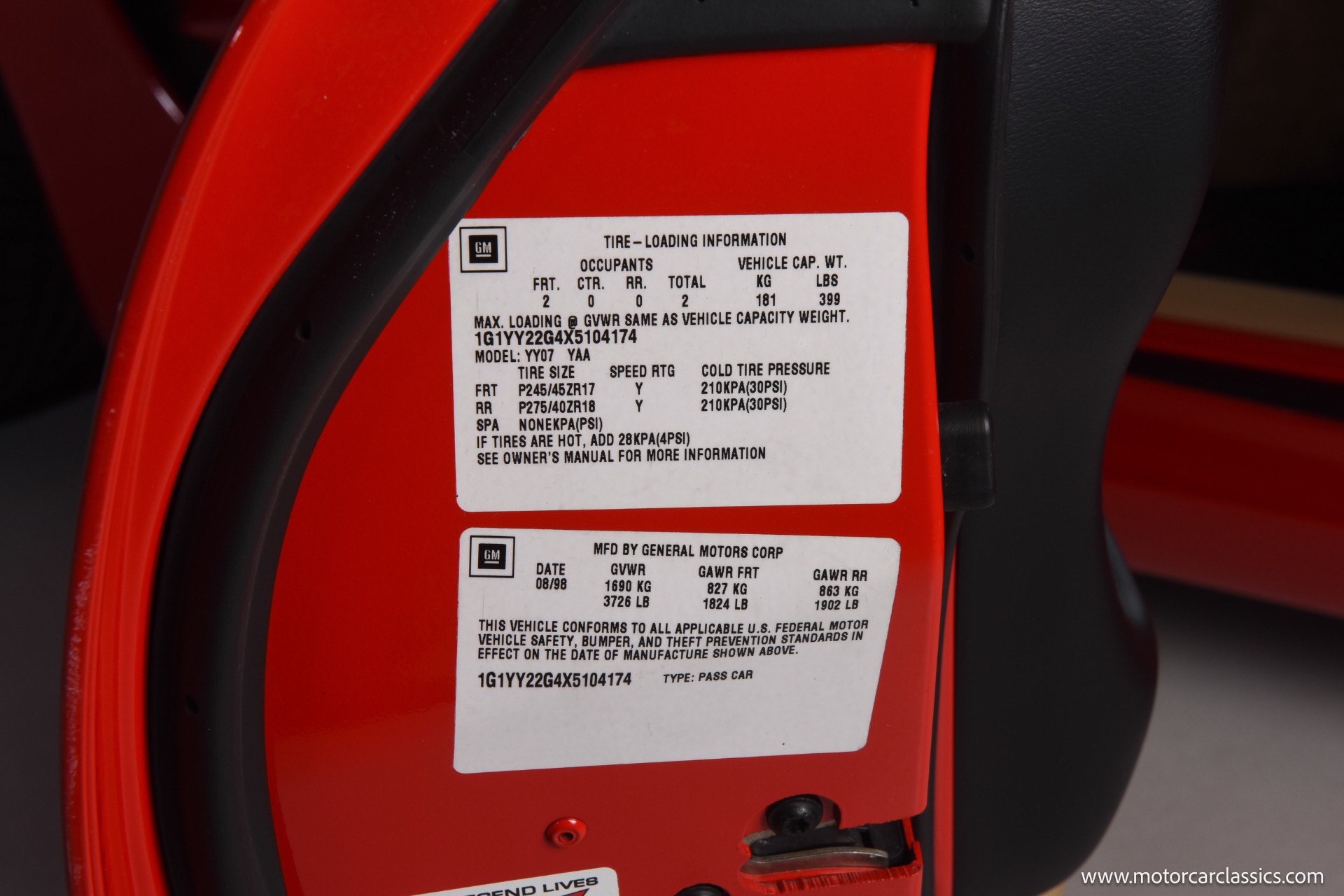 1999 Chevrolet Corvette for sale! Motorcar Classics is pleased to offer this impressive Corvette Coupe presented in Torch Red with Light Oak leather interior. 5.7L V8 345HP. 6-speed Manual transmission 47,386 miles. Options include: Preferred Equipment Group, Adjustable Sport Bucket seats,Electronic Dual Zone A/C,Active Handling System , Memory Package, Performance Handling Package, Roof Package, Heads Up Display,Power Telescoping Steering Column and more! $45,179.00 MSRP! Recent service includes: Oil Change and new tires and brakes!