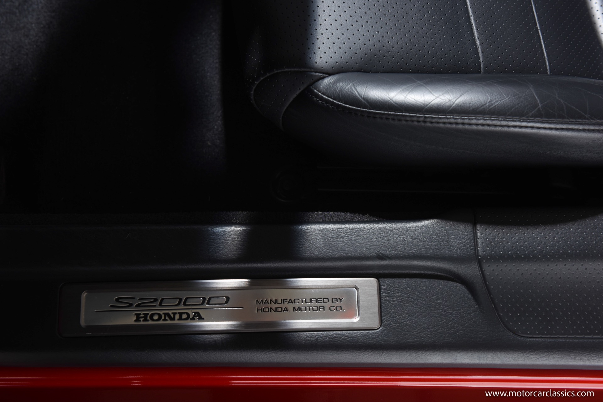 2000 Honda S2000 for sale. Motorcar Classics is pleased to present this 2000 Honda S2000 featured in New Formula Red with a black interior. This convertible has had one owner making it a vehicle with 6,082 miles. Honda's S2000 was built with one purpose: driving fun. It has the stuff sports-car fantasies are made of: a front-engine, rear-drive layout; a six-speed, close-ratio manual transmission; disc brakes; and supportive, firm bucket seatsall in a package that weighs less than 2800 pounds. The S2000s most unique feature is its high-revving 2.0-liter four-cylinder engine pumping out an incredible 240 horsepower at 8300 rpm with an 8900-rpm redline. The chassis tuning is nearly perfect with an ideal 50/50 weight distribution. The tires always feel precisely planted. As your would expect from Honda, they eliminated some traditional sports-car vices. You will find plenty of legroom, even for six-footers. There's a dead pedal for your left foot and enough room in the pedal box to allow unhampered footwork. The power soft top lowers in six seconds. And the car is built with Hondas legendary quality. Our Honda S2000 in an investment-grade example that has been cherished from new and presented in unblemished and totally original condition.