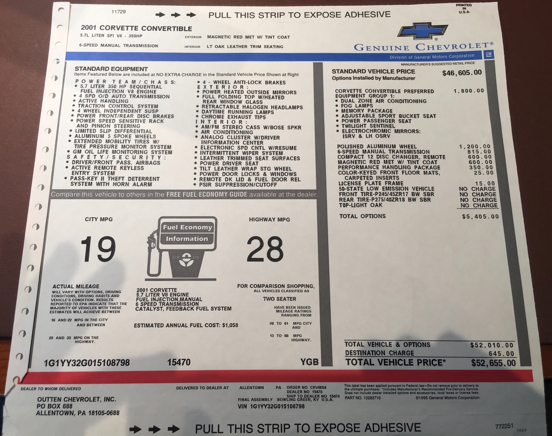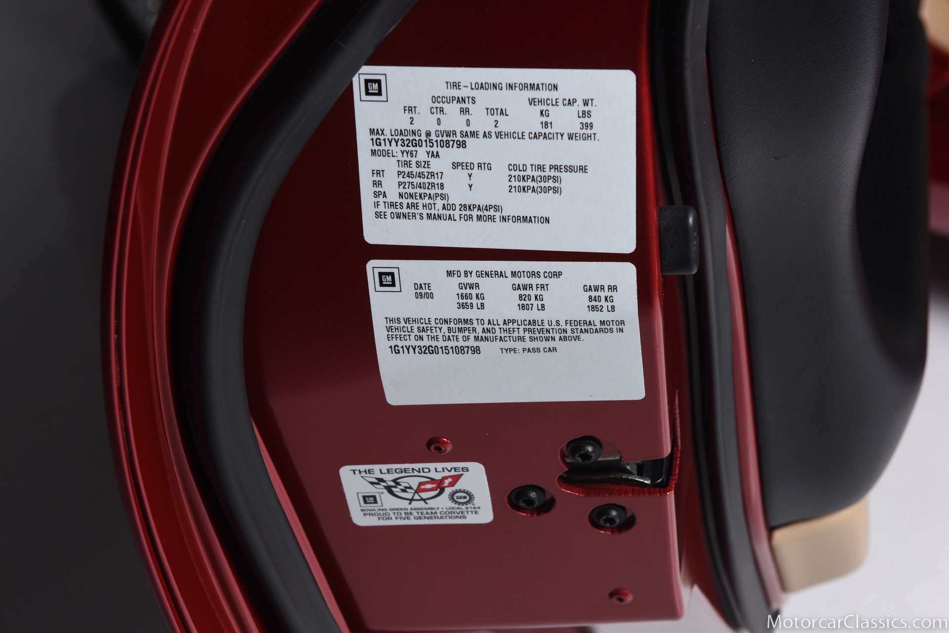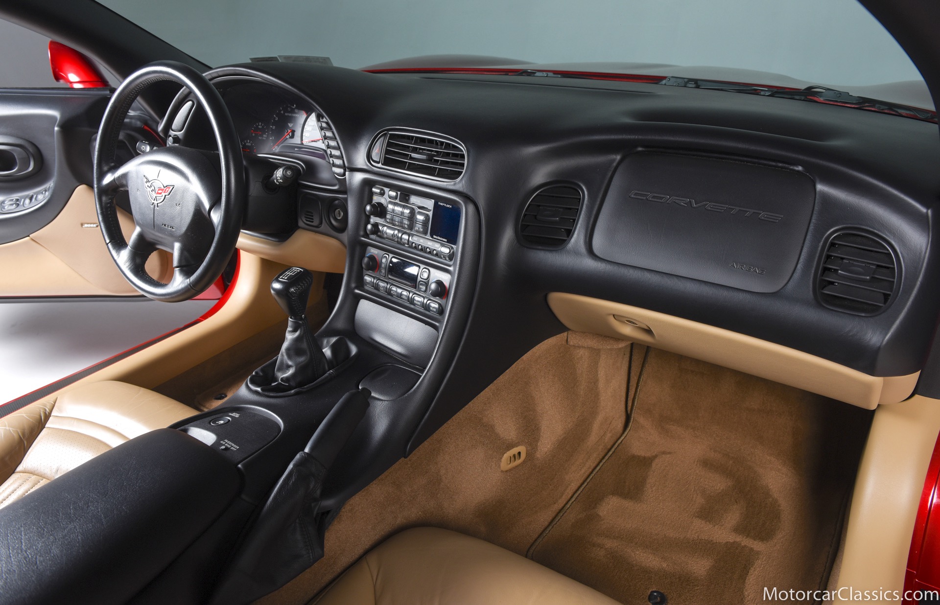 2001 Chevrolet Corvette C5 for sale! Motorcar Classics is pleased to offer this exceptional 2001 C5 Corvette presented in Magnetic Red with Light Oak interior and matching soft top. This 1-owner car has only 5,919 original miles and is equipped with a 5.7L V8 engine and desirable 6 speed manual transmission. This C5 has always been well maintained and heated garage kept and is all original. Recent service includes: replacement of alternator with new belts, new battery, coolant flush and oil/filter change. This Corvette also has the upgraded polished aluminum wheels. Your inspection is invite!