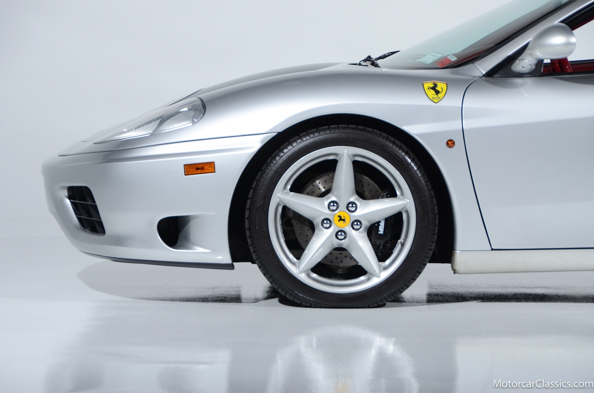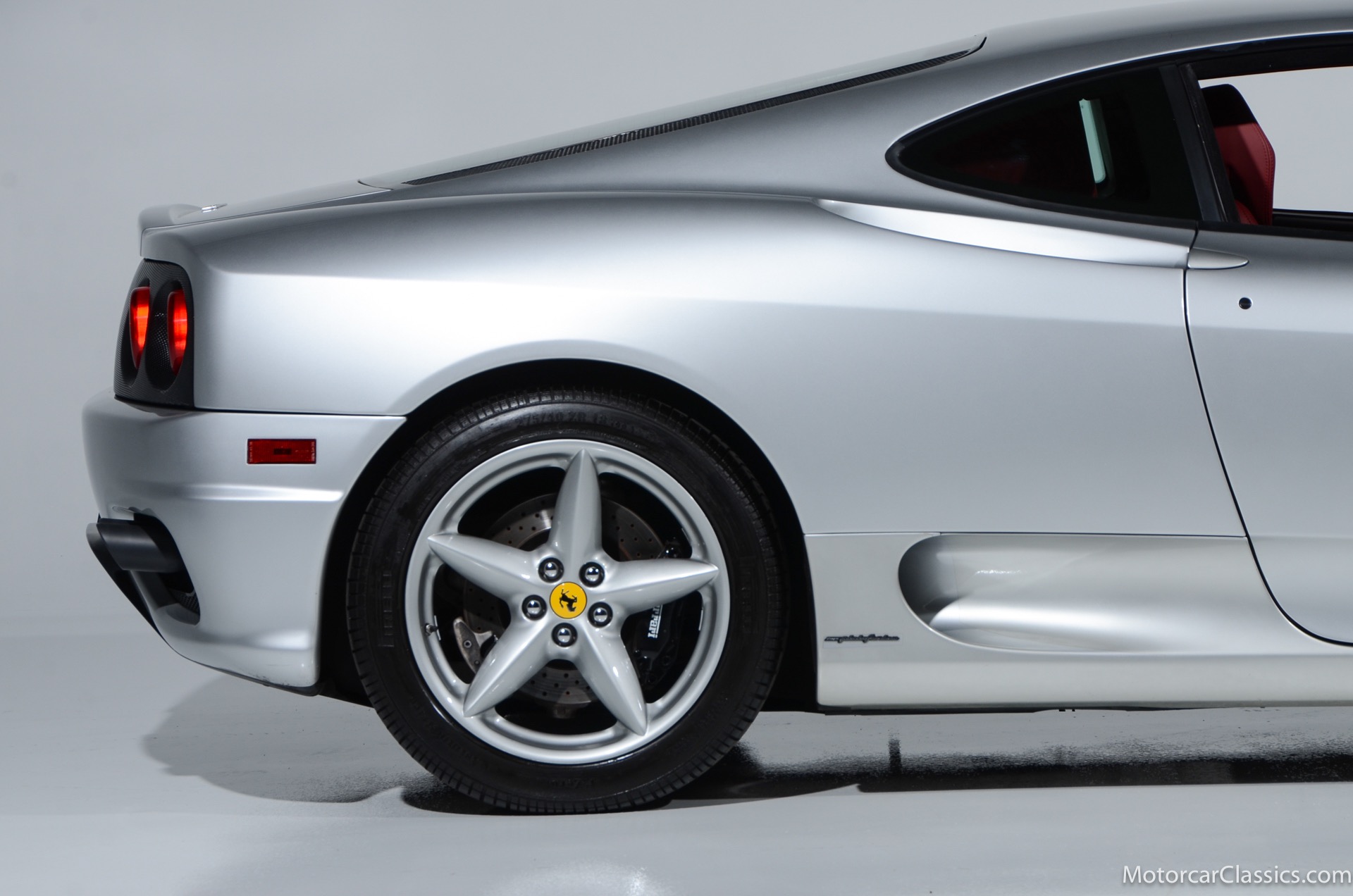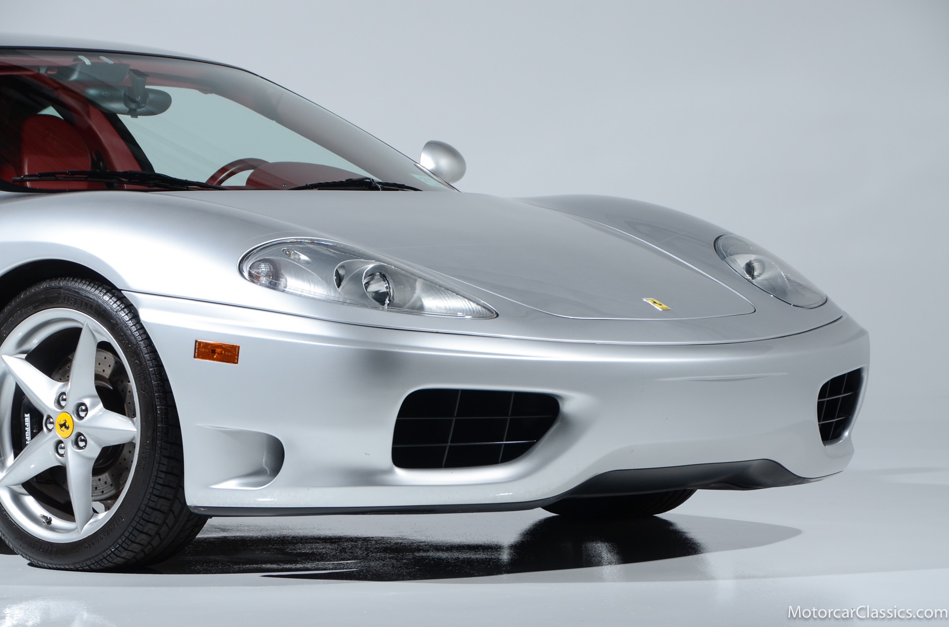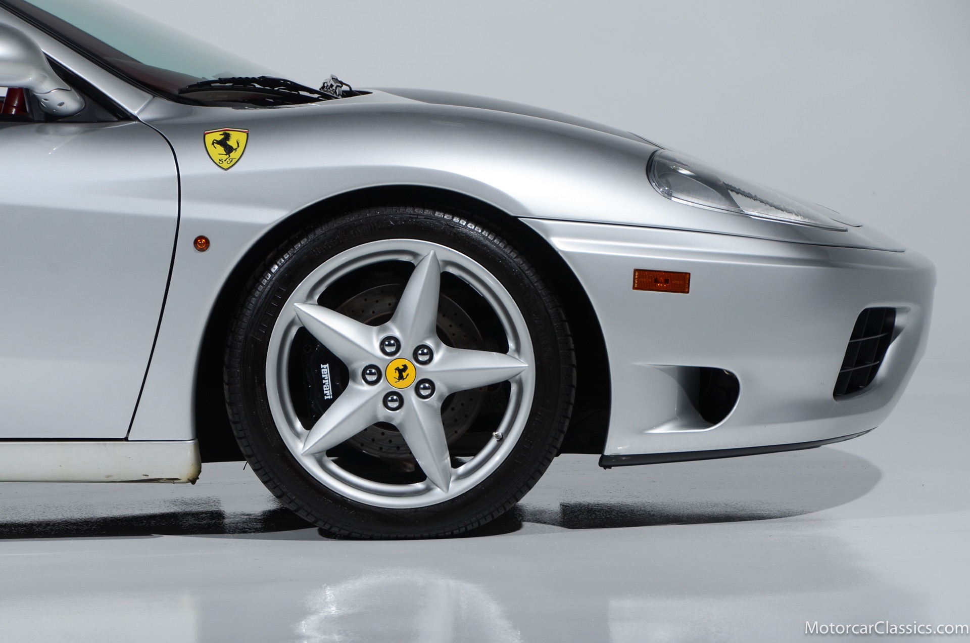 2001 Ferrari 360 Modena for sale! Motorcar Classics is pleased to offer this stunning Modena, featuring Ferrari's first all aluminum monocoque chassis, the 360 brought Ferrari into the new millennia with a big leap from its predecessors. The amazing 3.6 liter V8 produces 400 horsepower screaming its way to a 8500 RPM redline, coupled with the incredible F1 transmission it truly is one of the all time great road car experiences you can have. This exceptional example is finished in Argento Nurburgring over Bordeaux interior, covering just 14,070 miles from new; this modern classic would be a perfect addition to any collection. The service history is just as stunning as the car itself, with the last major service being completed in November 2020 at 12,256 miles, there are many years of enjoyment to be had before the next major service is required. Well documented service history is available and will go with the car. Don't miss your opportunity to own this modern classic supercar!