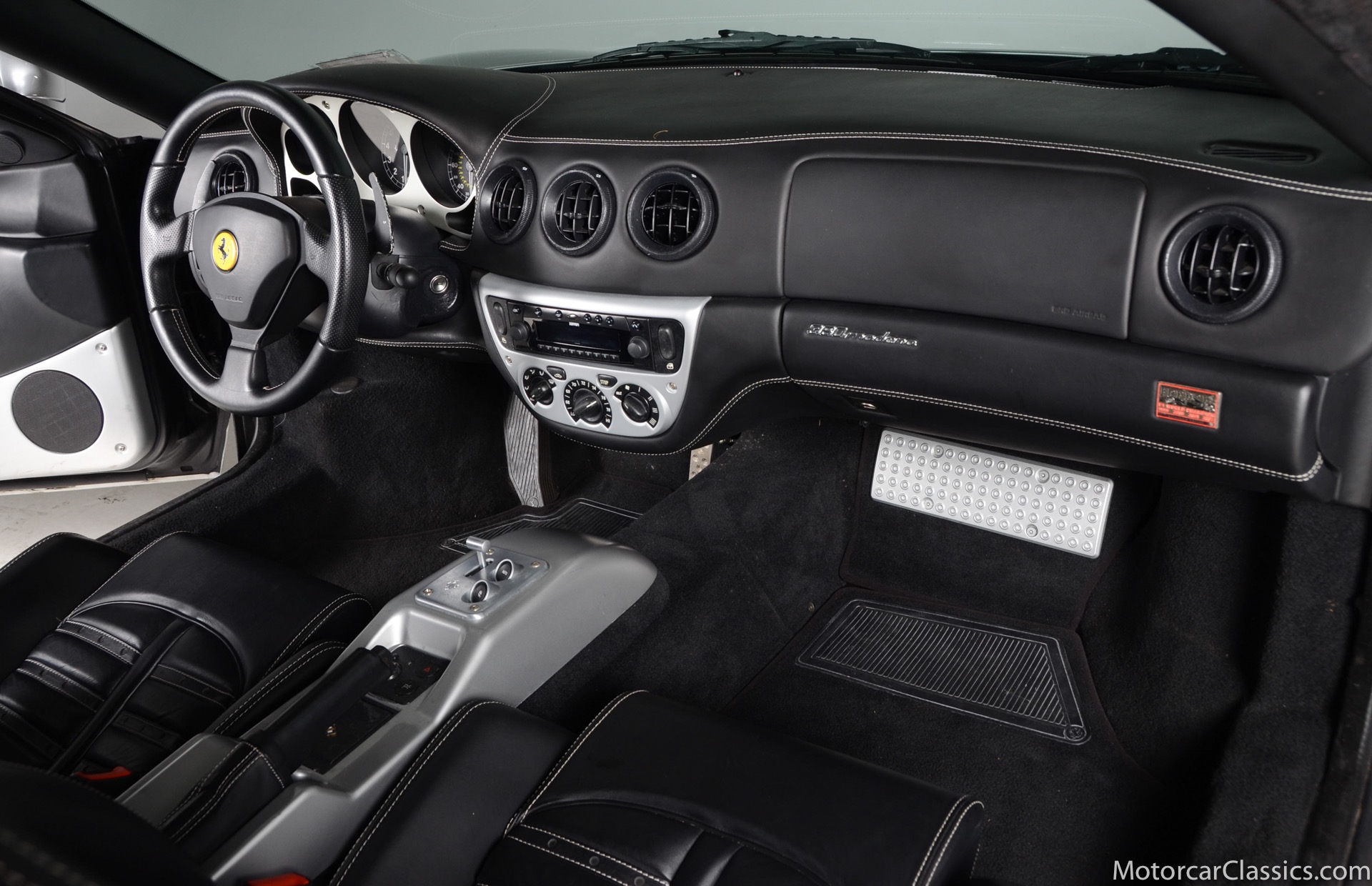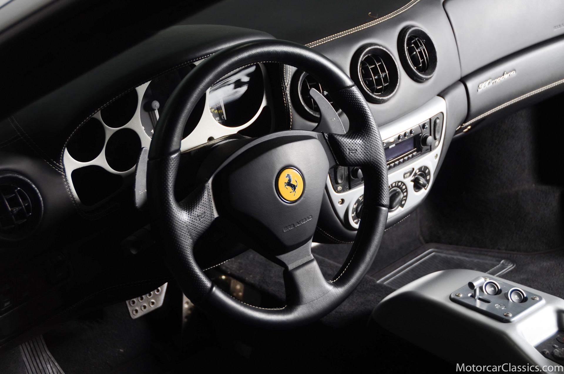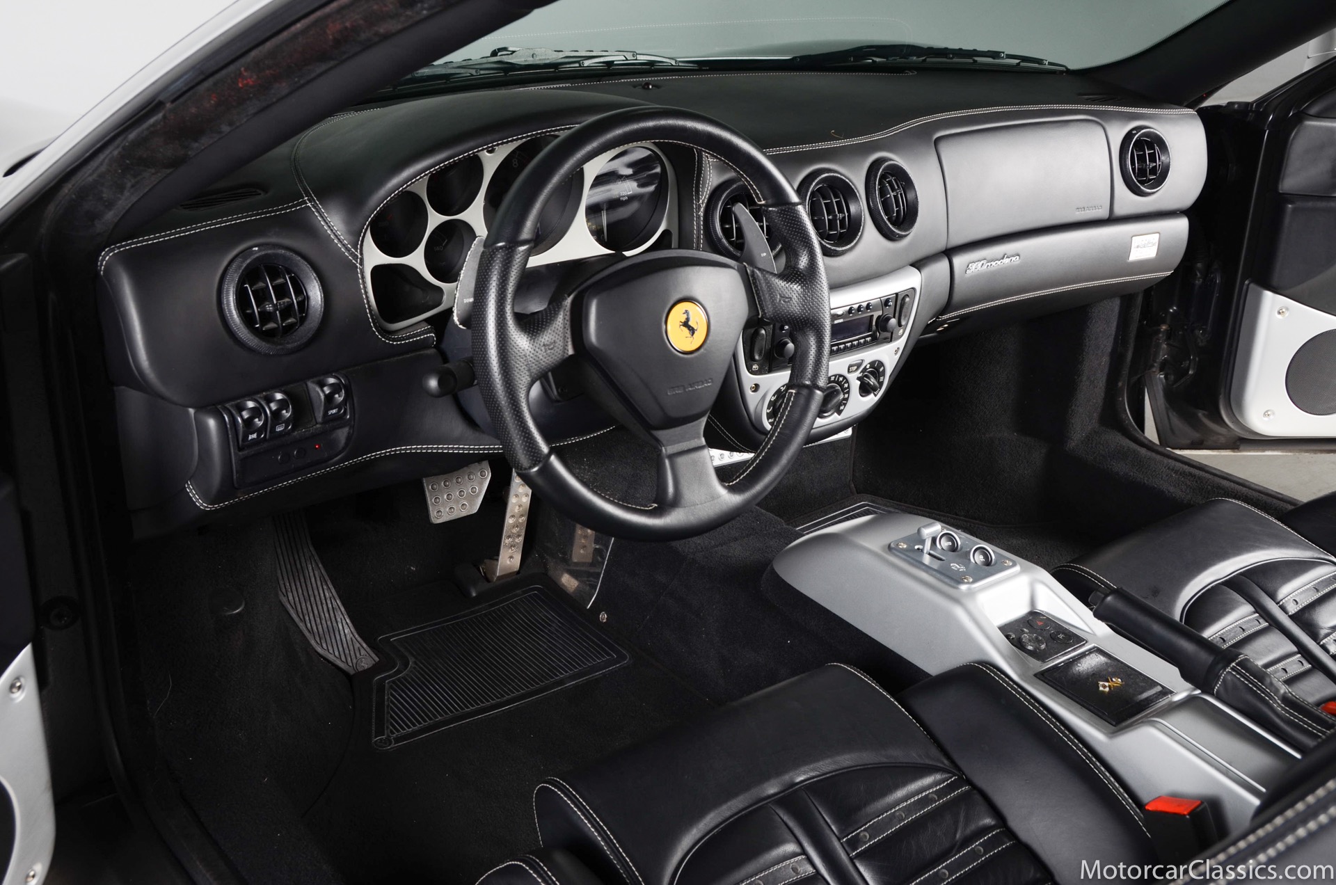 2003 Ferrari 360 Modena for sale! Motorcar Classics is please to offer this 360 Modena presented in Argento Nurburghing with Nero interior and Grigio Chiaro stitching. 1-owner car! Clean title and Carfax. This car was just serviced at Ferrari Long Island on 7/19/23, they performed major service including new timing belt service change. Only 6,819 miles. All original paint in excellent condition. Options include: Nero carpets, red brake calipers 6 CD charger, Daytona seats, rear challenge grill, front challenge grill, scuderia Ferrari shields and leather headliner. Your inspection is invited.