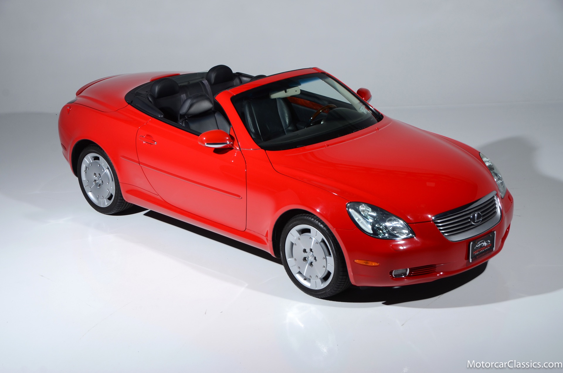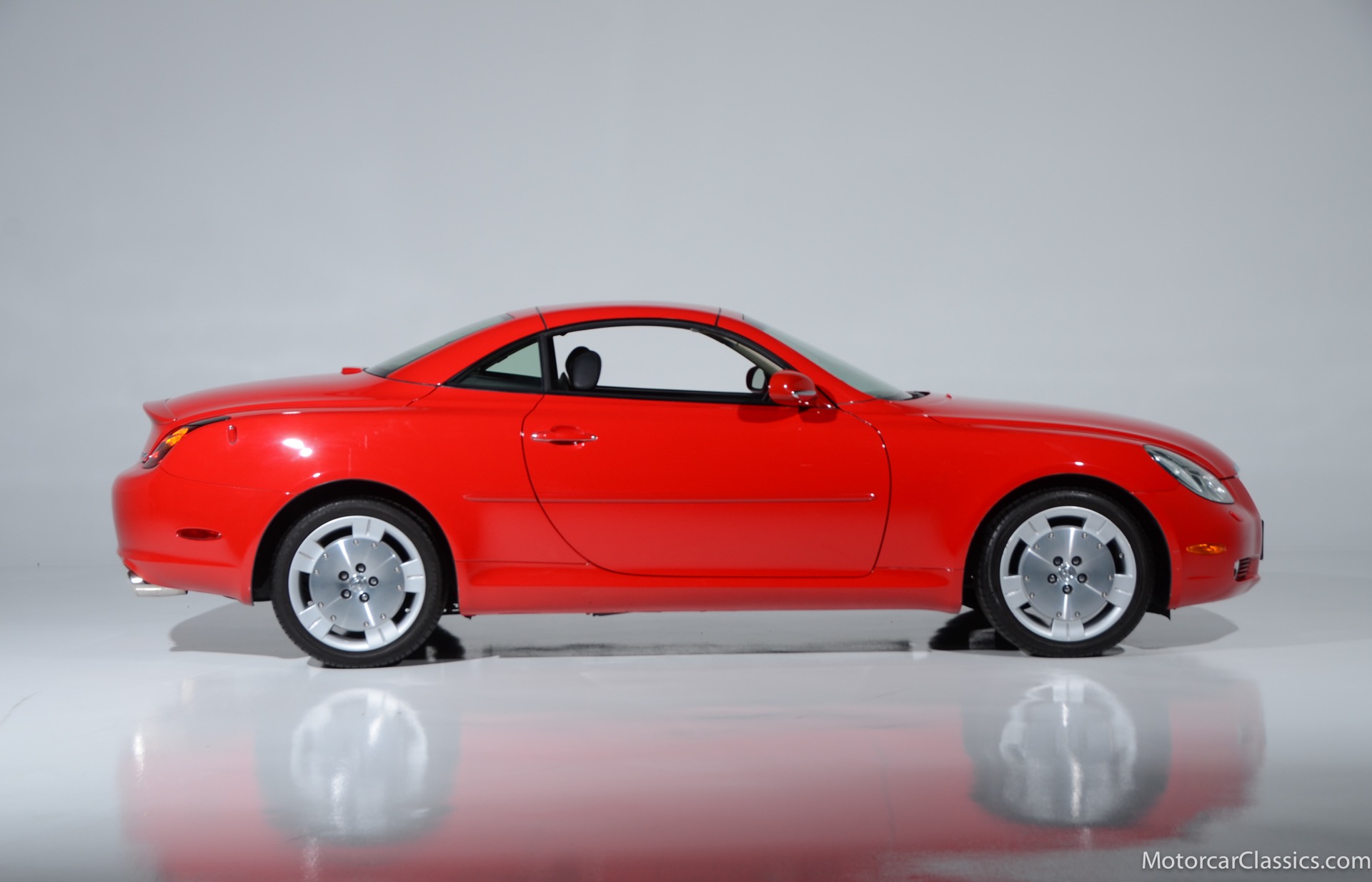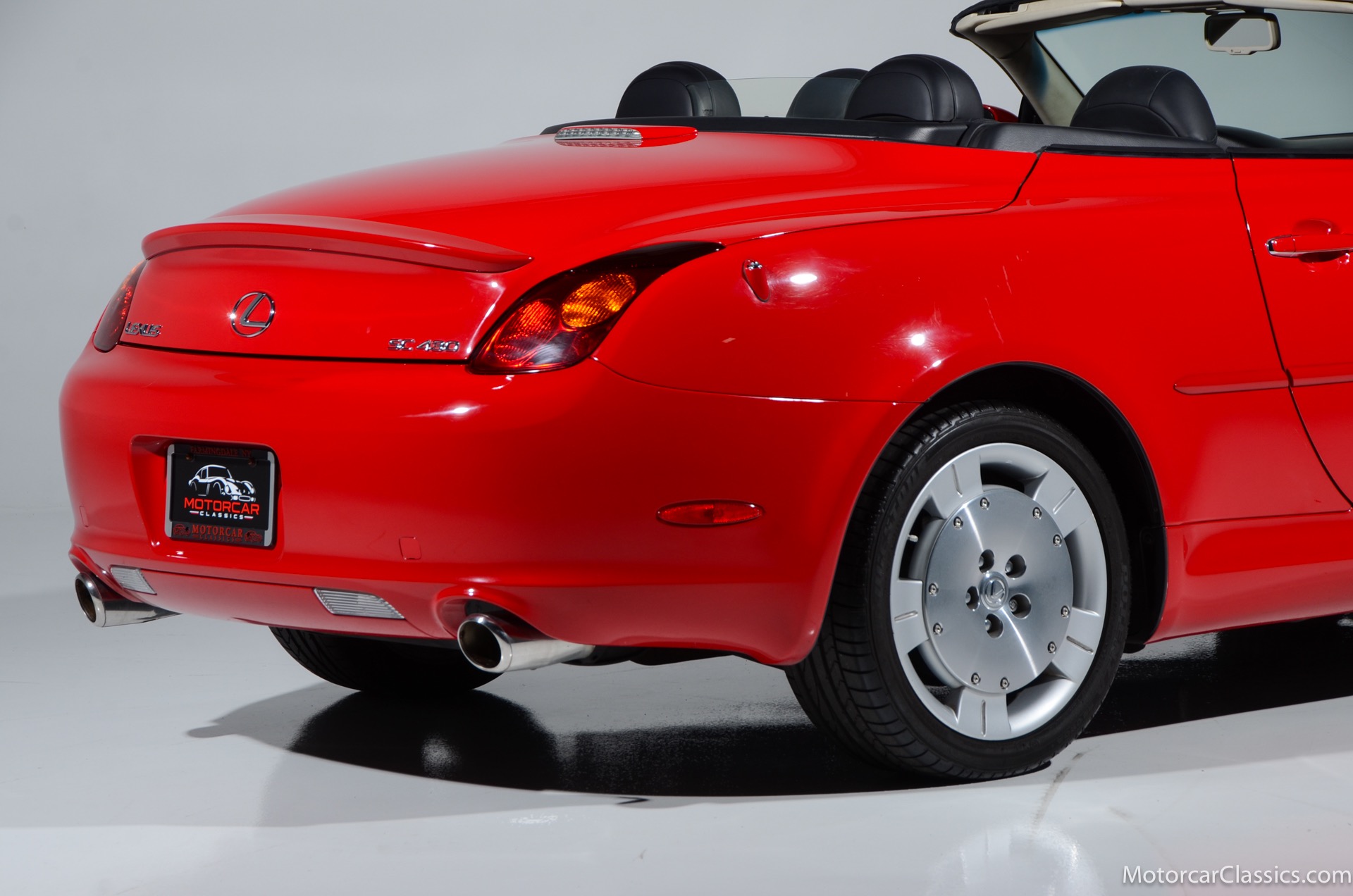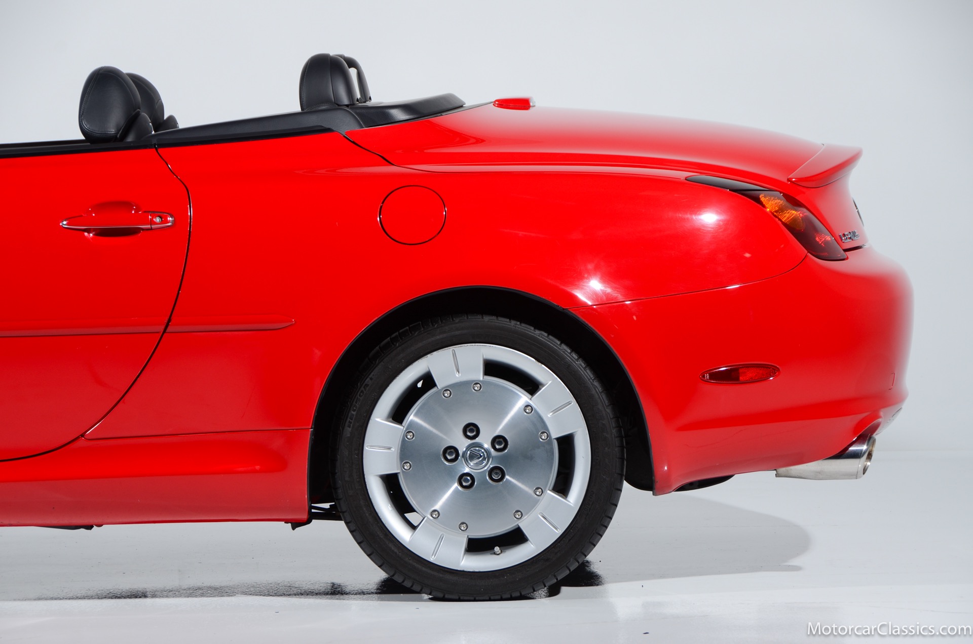 2003 Lexus SC 430 for sale! This stunning 2003 Lexus SC430 is featured in Absolutely Red with black leather and dark walnut wood interior accents. The SC 430 features a slick retractable hardtop that goes from closed coupe to open roadster in 25 seconds. The 4.3-liter V8 is backed by a five-speed automatic transmission, and a long list of luxury features. The SC 430 is trimmed in buttery soft leather with beautiful wood and chrome accents. Additional features are a navigation system and a Mark Levinson audio system with nine speakers. With only 22,724 miles, our SC430 is among the lowest mile examples on the road. It has been cherished from new, dealer-serviced, and has never been damaged.