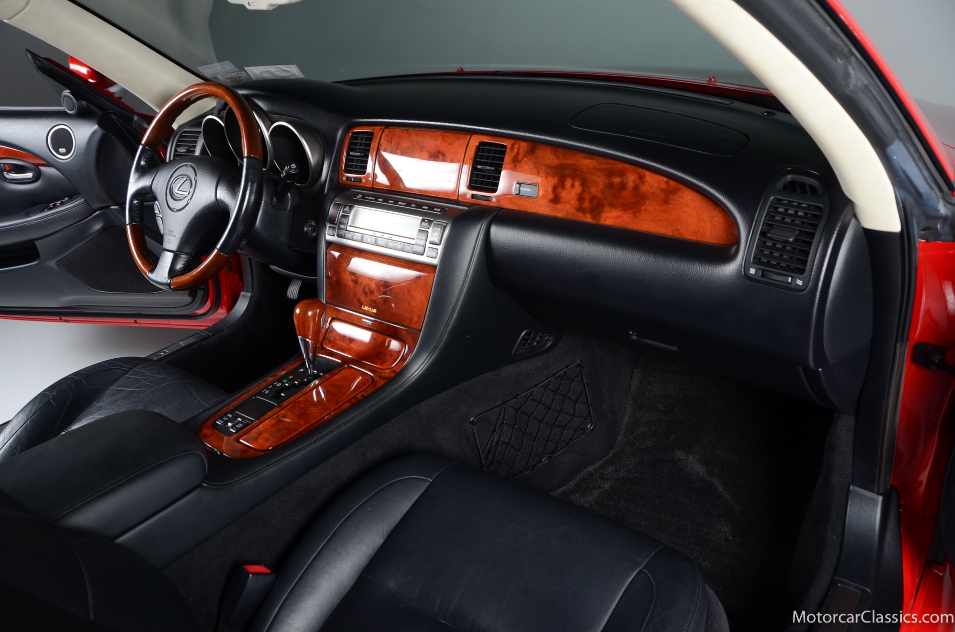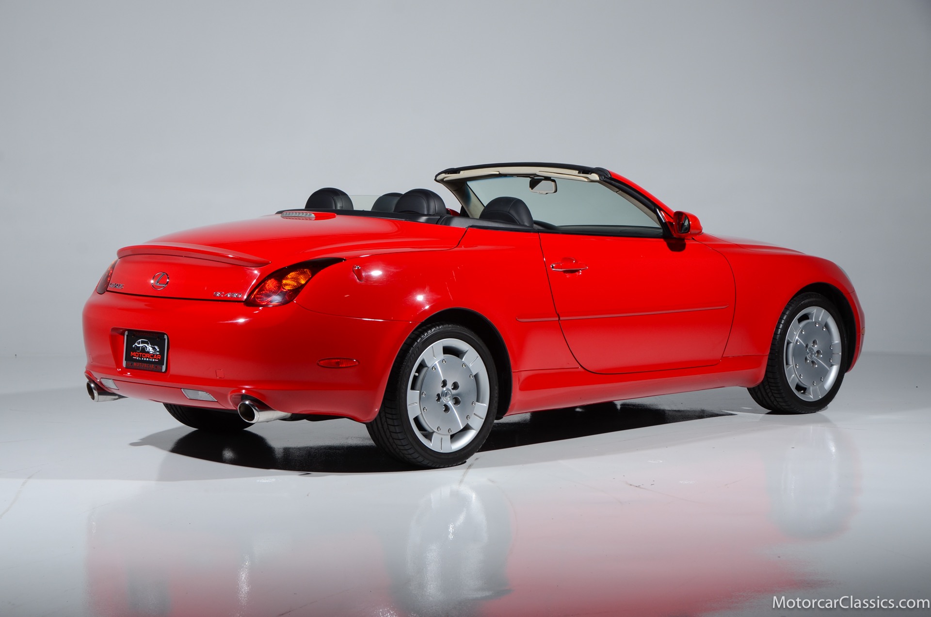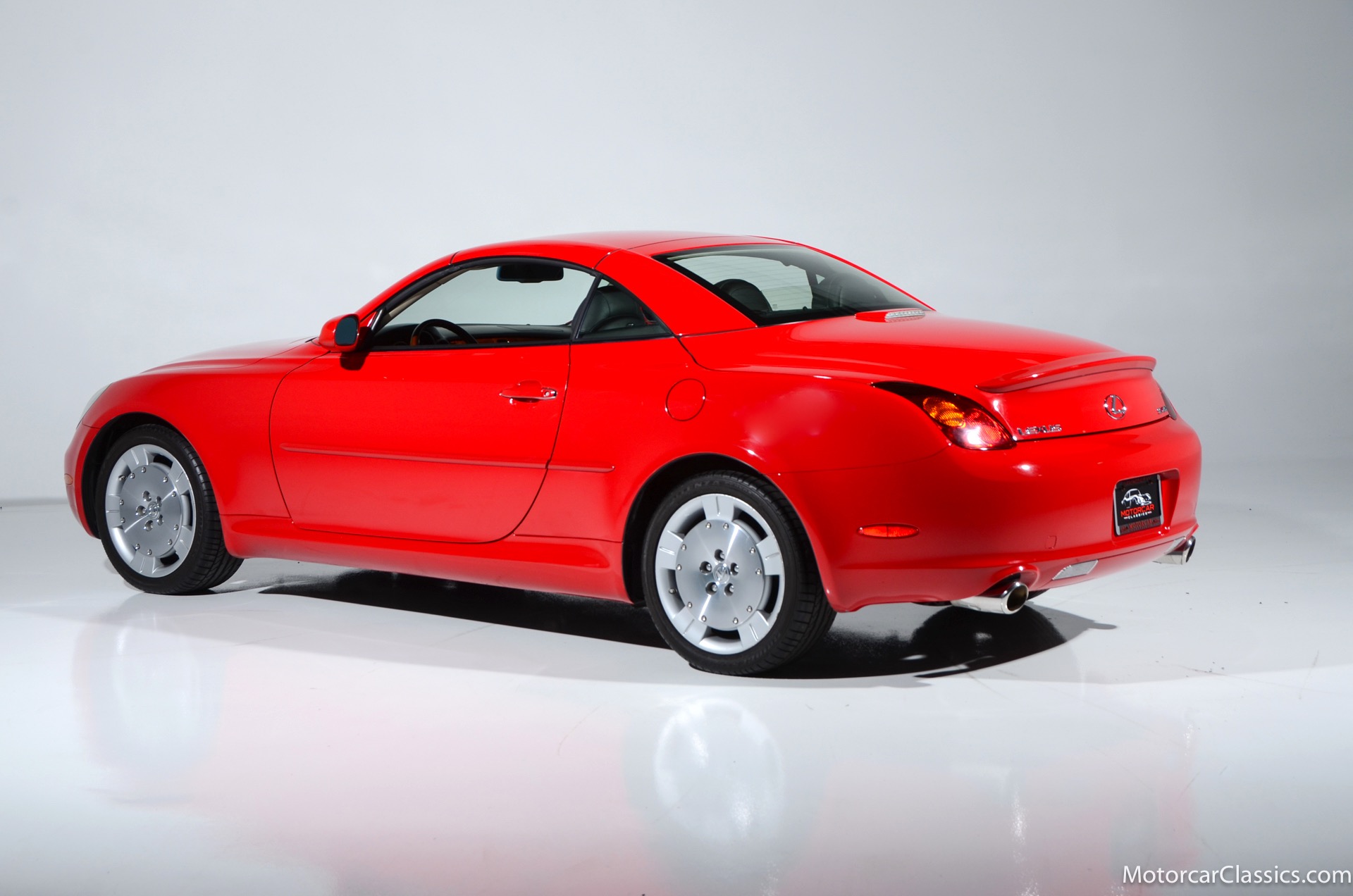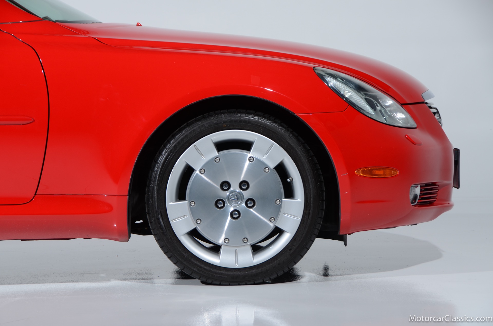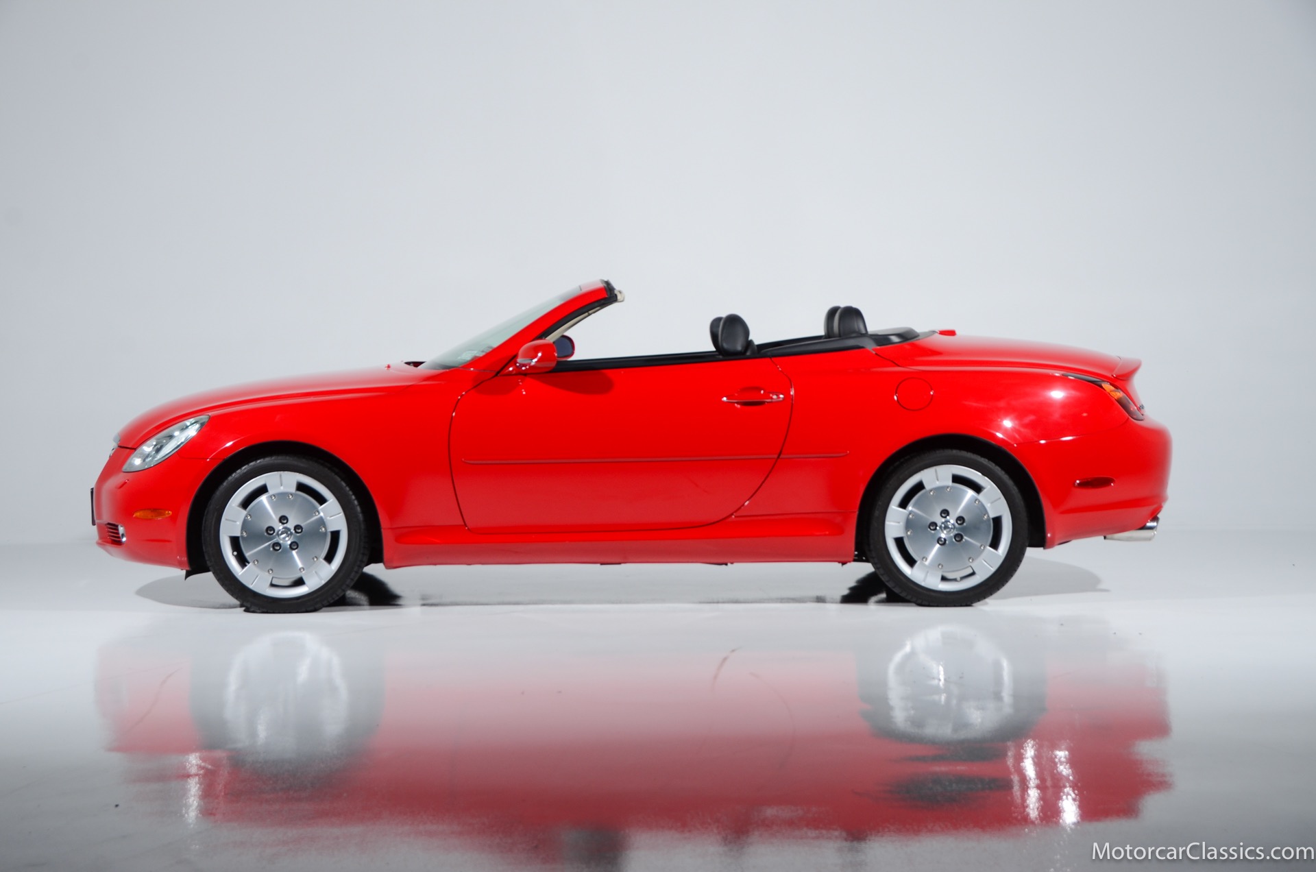 2003 Lexus SC 430 for sale! This stunning 2003 Lexus SC430 is featured in Absolutely Red with black leather and dark walnut wood interior accents. The SC 430 features a slick retractable hardtop that goes from closed coupe to open roadster in 25 seconds. The 4.3-liter V8 is backed by a five-speed automatic transmission, and a long list of luxury features. The SC 430 is trimmed in buttery soft leather with beautiful wood and chrome accents. Additional features are a navigation system and a Mark Levinson audio system with nine speakers. With only 22,724 miles, our SC430 is among the lowest mile examples on the road. It has been cherished from new, dealer-serviced, and has never been damaged.