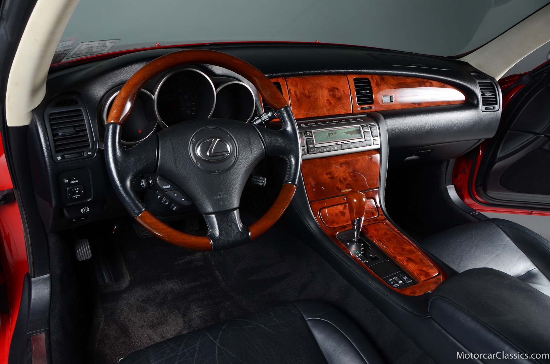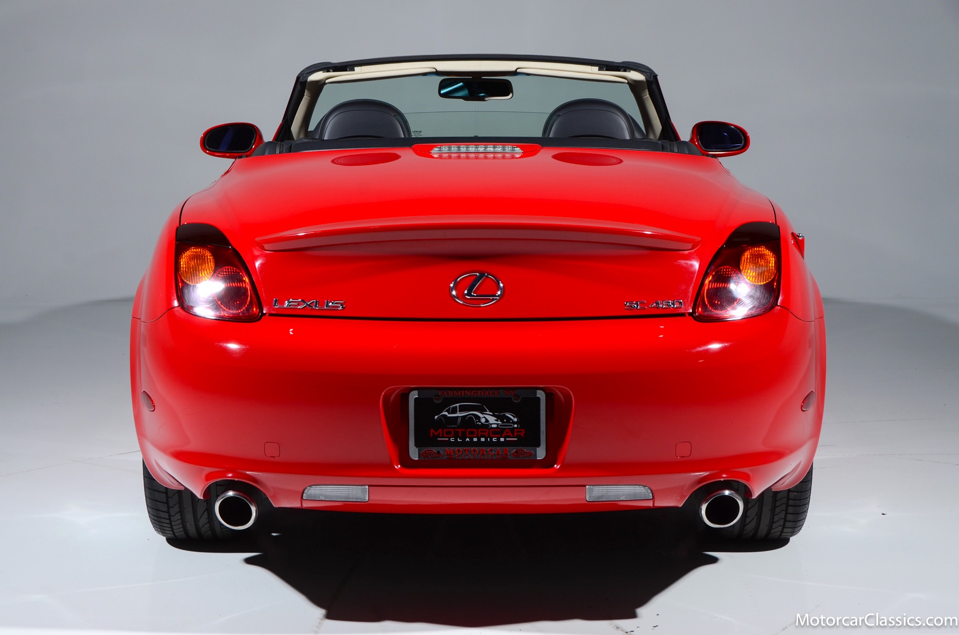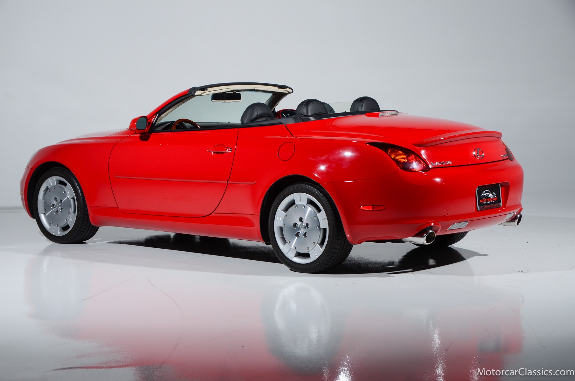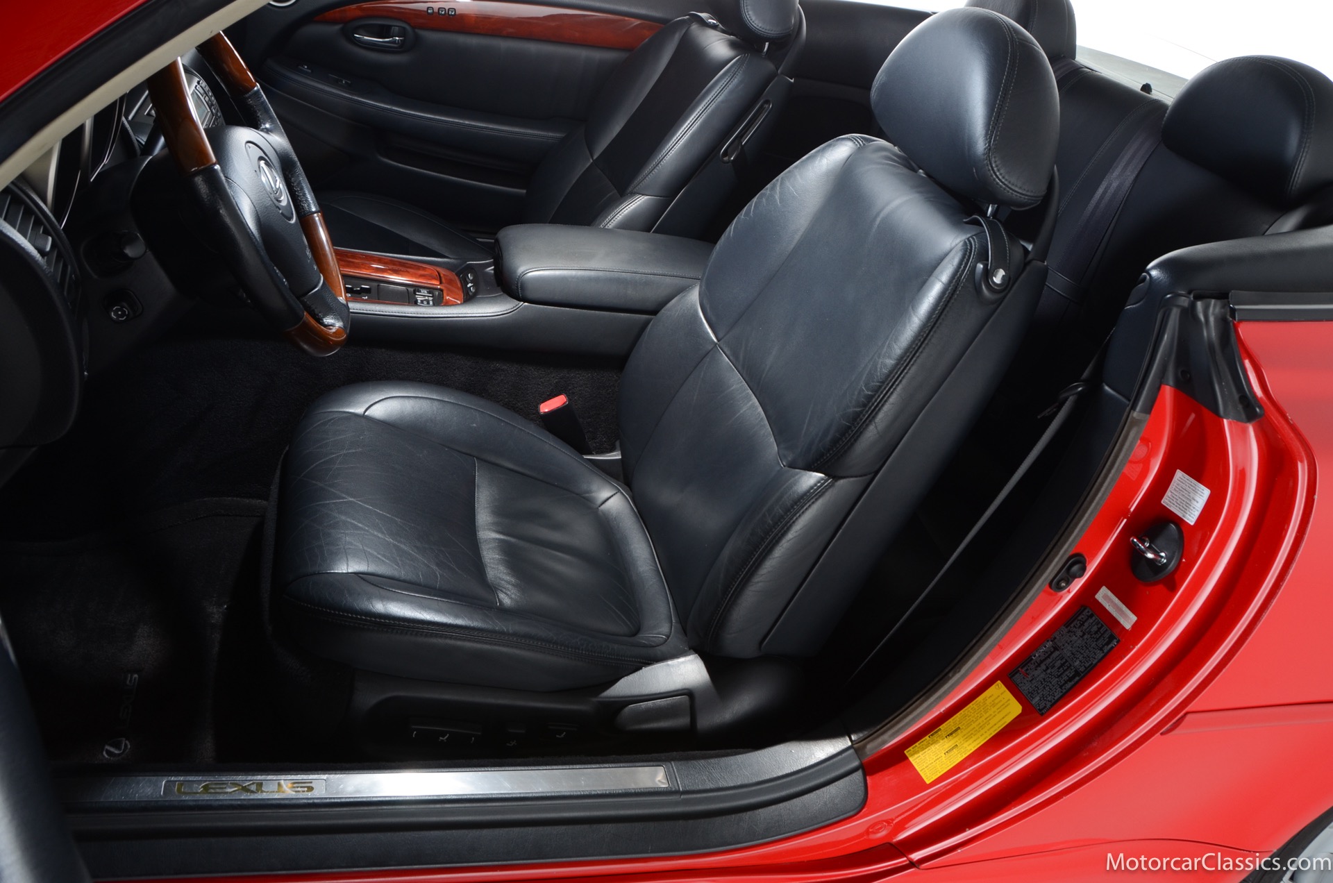 2003 Lexus SC 430 for sale! This stunning 2003 Lexus SC430 is featured in Absolutely Red with black leather and dark walnut wood interior accents. The SC 430 features a slick retractable hardtop that goes from closed coupe to open roadster in 25 seconds. The 4.3-liter V8 is backed by a five-speed automatic transmission, and a long list of luxury features. The SC 430 is trimmed in buttery soft leather with beautiful wood and chrome accents. Additional features are a navigation system and a Mark Levinson audio system with nine speakers. With only 22,724 miles, our SC430 is among the lowest mile examples on the road. It has been cherished from new, dealer-serviced, and has never been damaged.