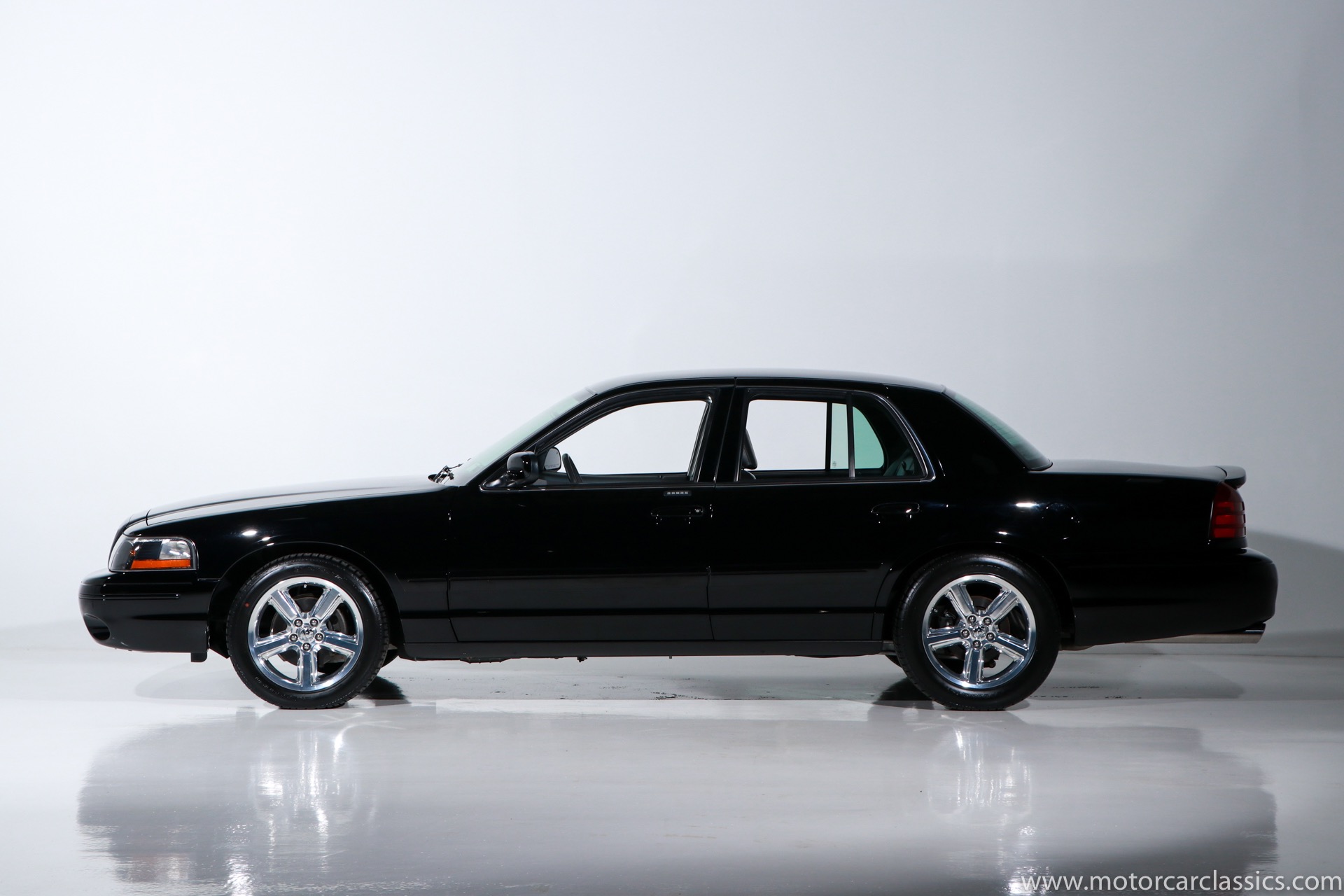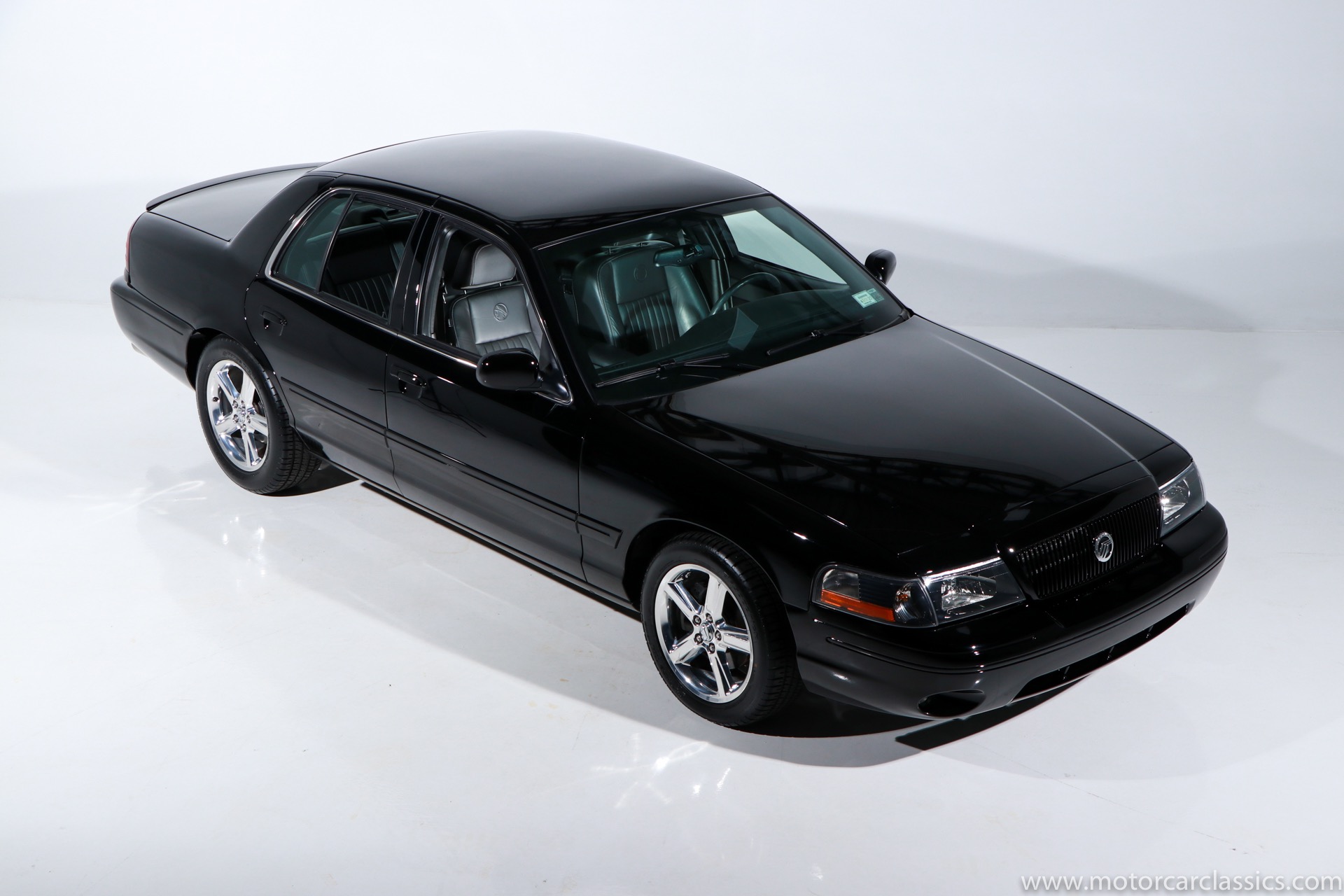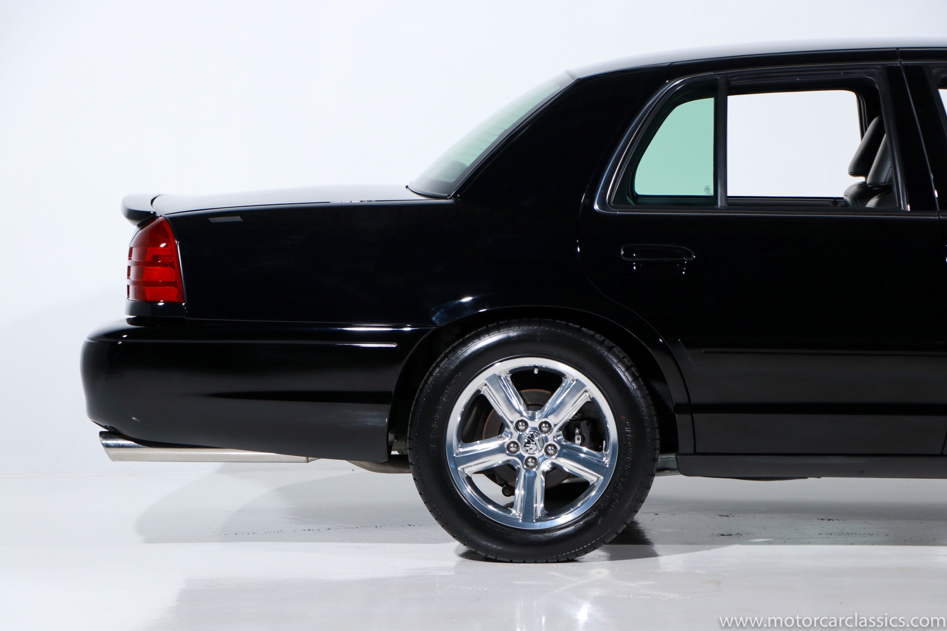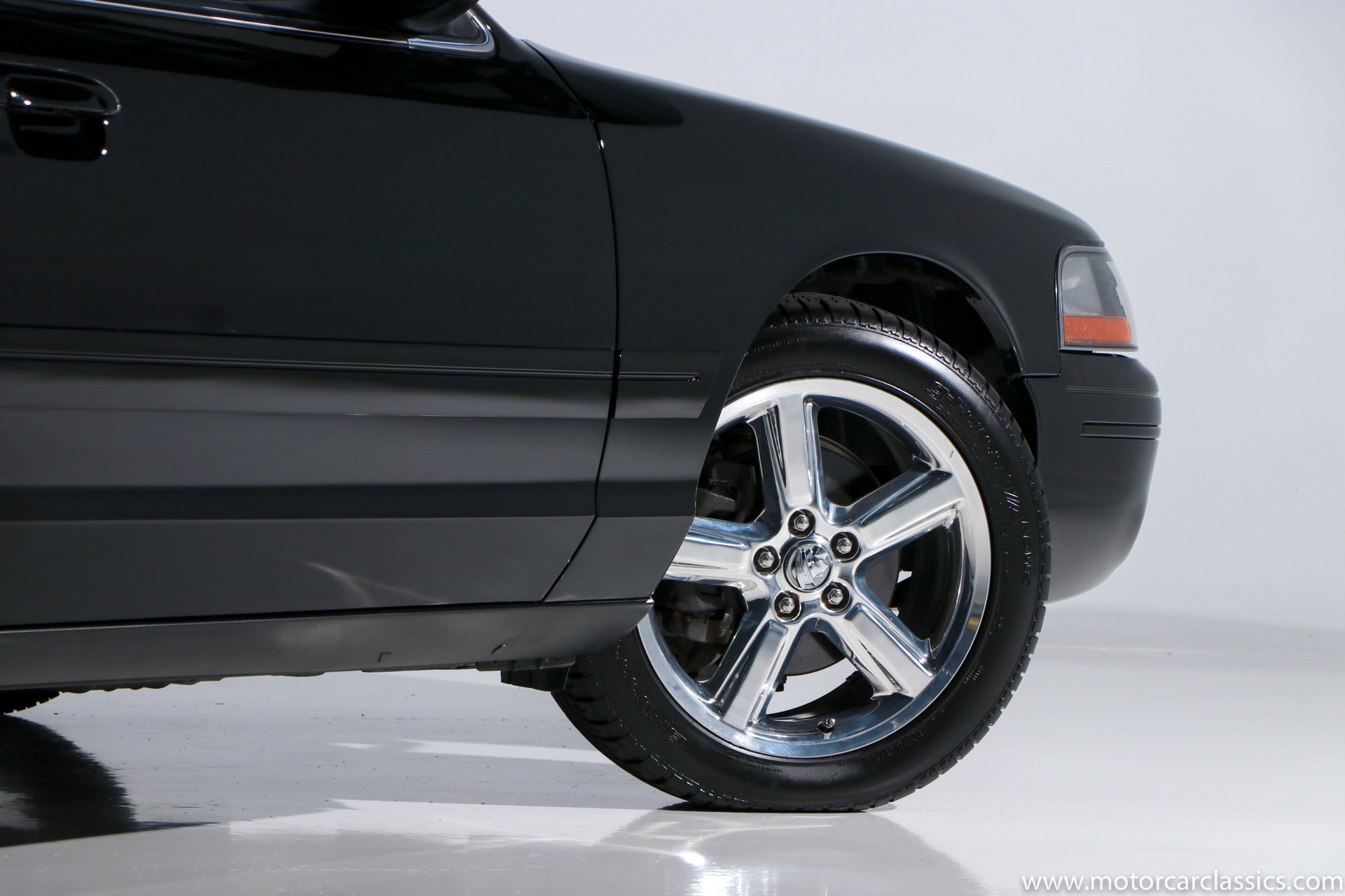 2004 Mercury Marauder for sale! Motorcar Classics is proud to present this pristine 2003 Mercury Marauder featured in Jet Black with black leather interior. Built on Ford™s venerable Panther platform that lasted from 1978 all the way to 2011, the Mercury Marauder received high-performance equipment from Ford™s police models, in this case the Crown Victoria Police Interceptor. Steering was by variable assist rack-and-pinion, a 3.55 limited-slip differential was standard, and the driveshaft was aluminum. Under the hood was the 4.6-liter DOHC Modular V-8 built to the same specs as the Mach 1 Mustang, which meant 302 hp and 318 lb-ft of torque. The Marauder could be visually distinguished from the normal Grand Marquis by its twin Cibie fog lamps, 1960s-style Mercury logo on the wheels, aluminum interior trim, 140 mph speedometer, and oil pressure and voltmeter gauges. Our Marauder is certified through Ford as # 7007 of 7093 built in Black built for 2003. This car has been cherished by collectors from new, and is among few remaining investment-grade examples.