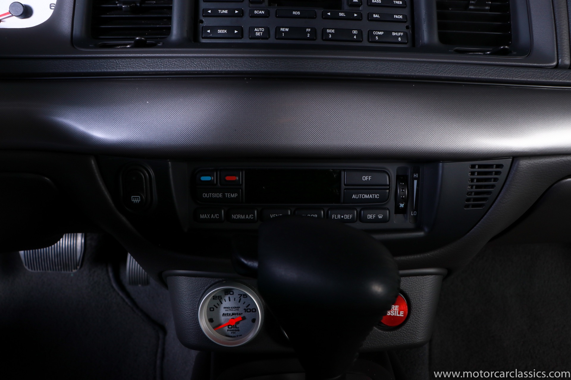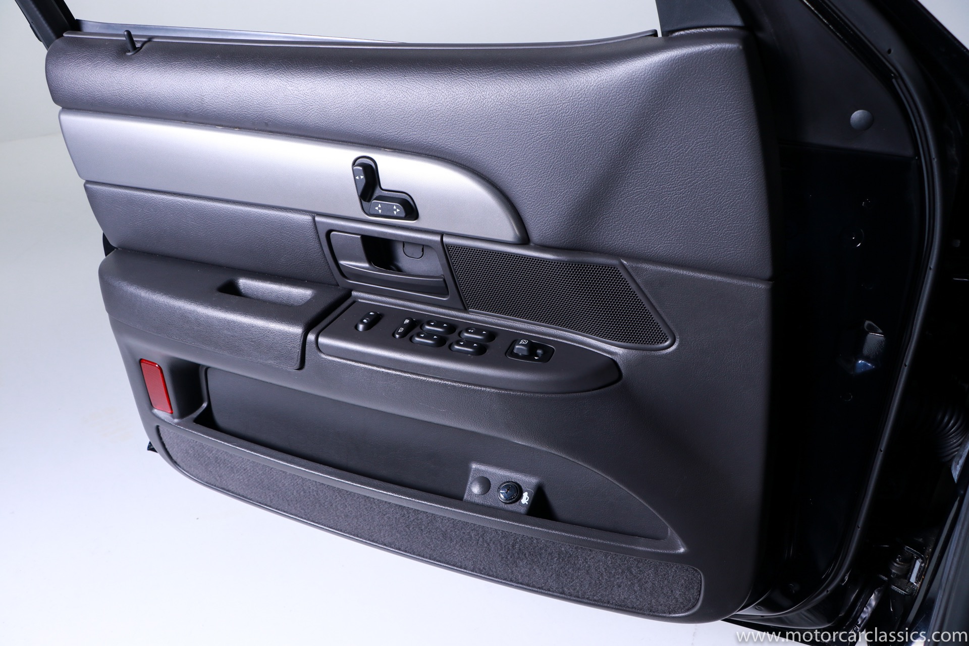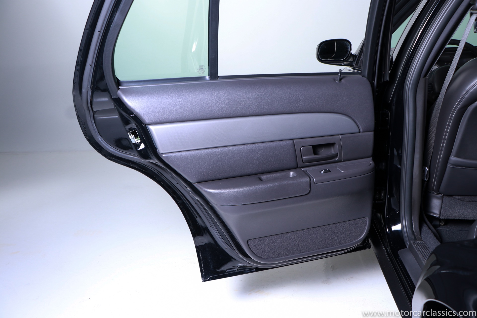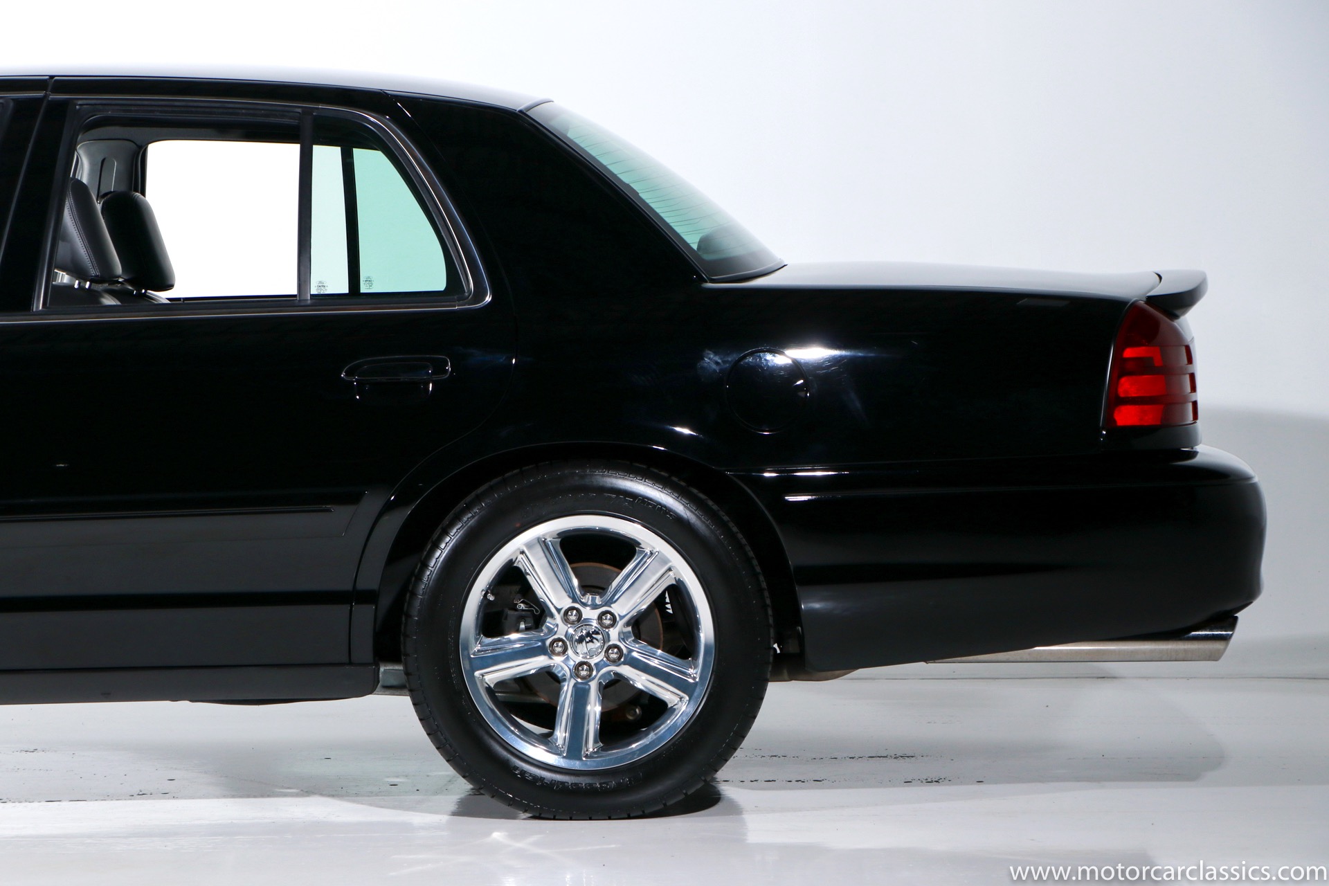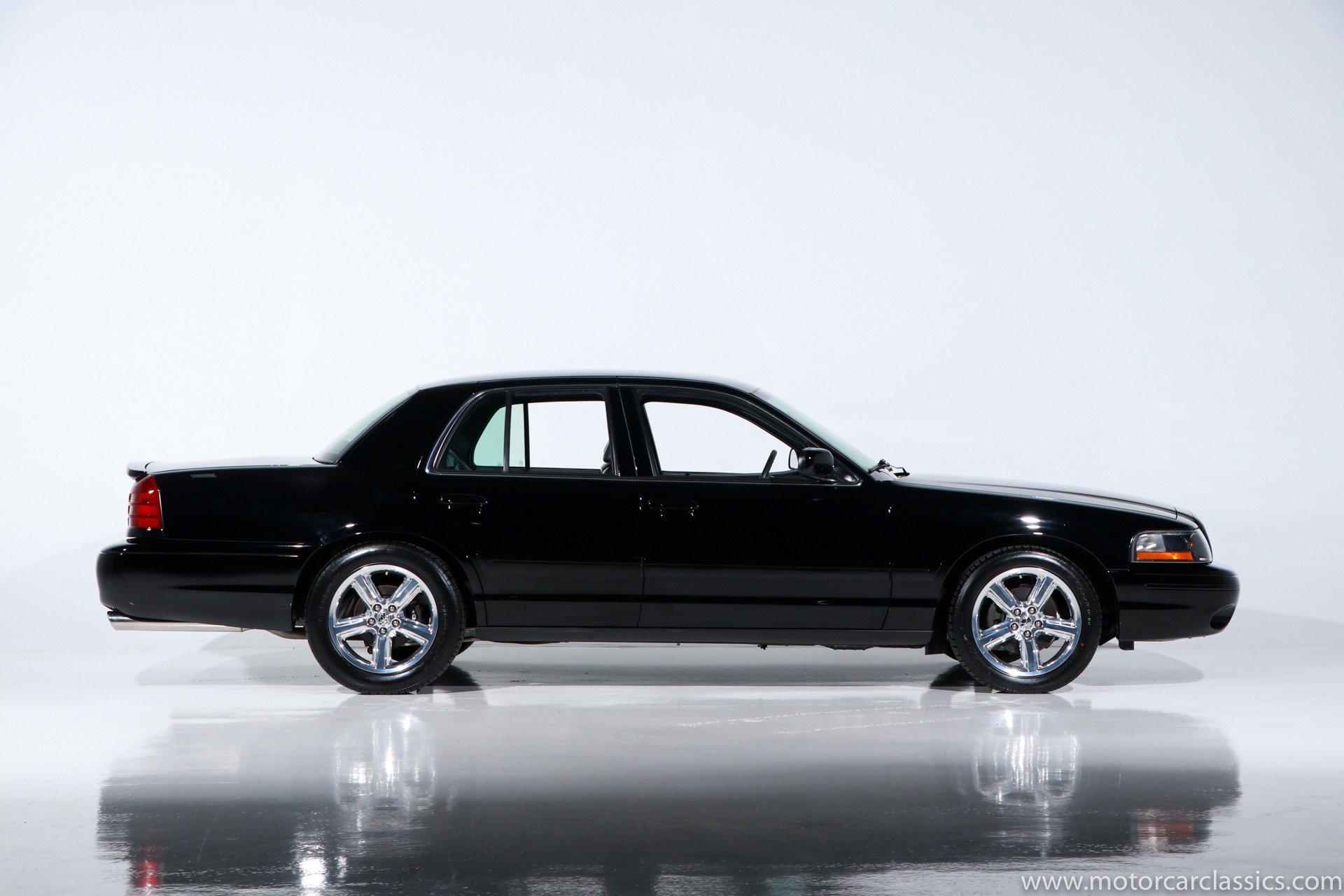 2004 Mercury Marauder for sale! Motorcar Classics is proud to present this pristine 2003 Mercury Marauder featured in Jet Black with black leather interior. Built on Ford™s venerable Panther platform that lasted from 1978 all the way to 2011, the Mercury Marauder received high-performance equipment from Ford™s police models, in this case the Crown Victoria Police Interceptor. Steering was by variable assist rack-and-pinion, a 3.55 limited-slip differential was standard, and the driveshaft was aluminum. Under the hood was the 4.6-liter DOHC Modular V-8 built to the same specs as the Mach 1 Mustang, which meant 302 hp and 318 lb-ft of torque. The Marauder could be visually distinguished from the normal Grand Marquis by its twin Cibie fog lamps, 1960s-style Mercury logo on the wheels, aluminum interior trim, 140 mph speedometer, and oil pressure and voltmeter gauges. Our Marauder is certified through Ford as # 7007 of 7093 built in Black built for 2003. This car has been cherished by collectors from new, and is among few remaining investment-grade examples.