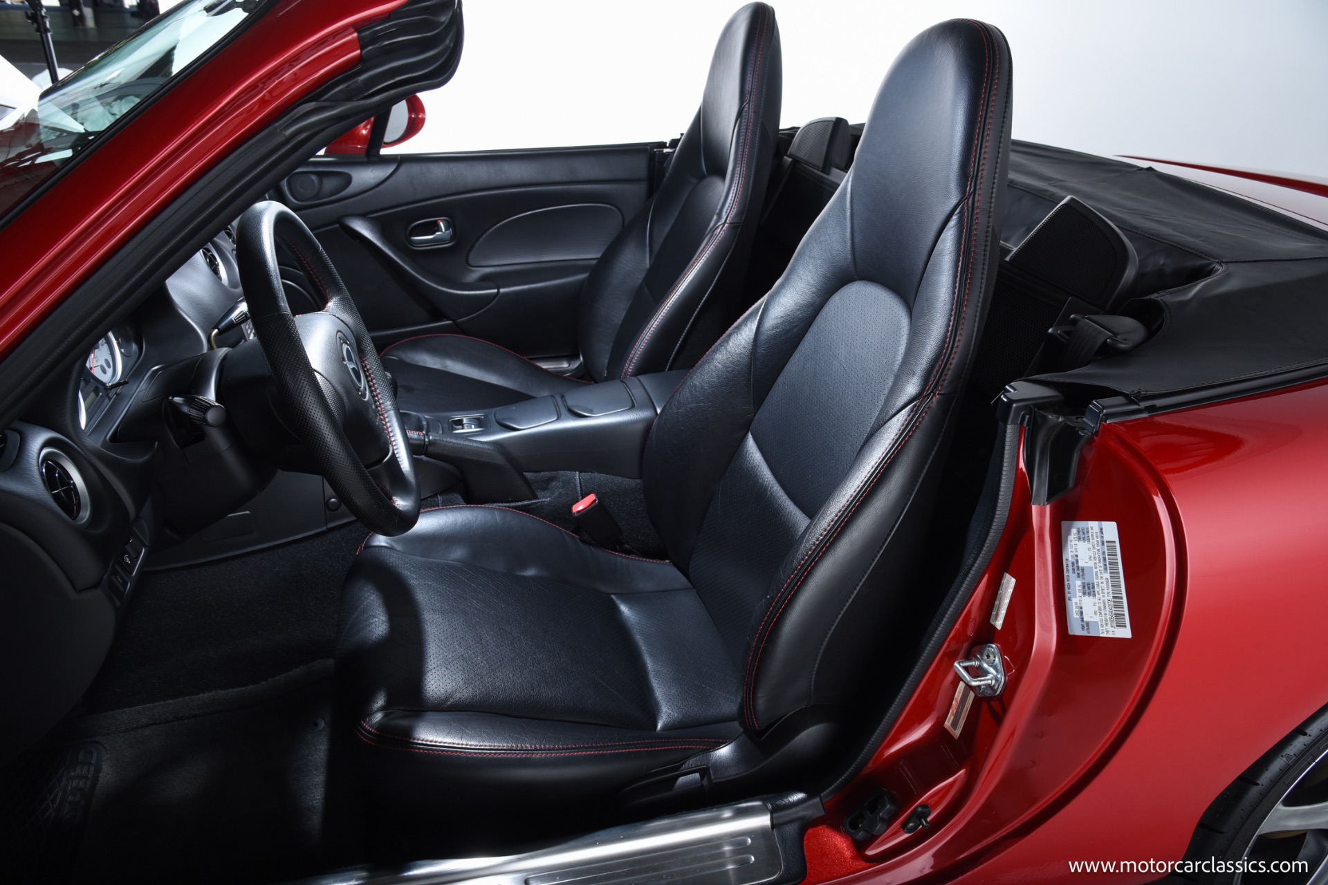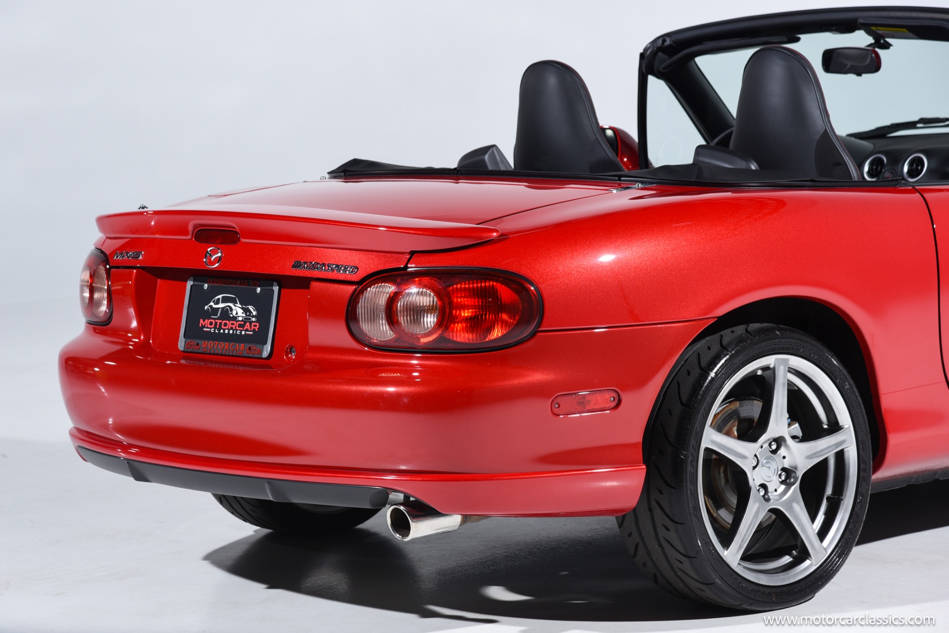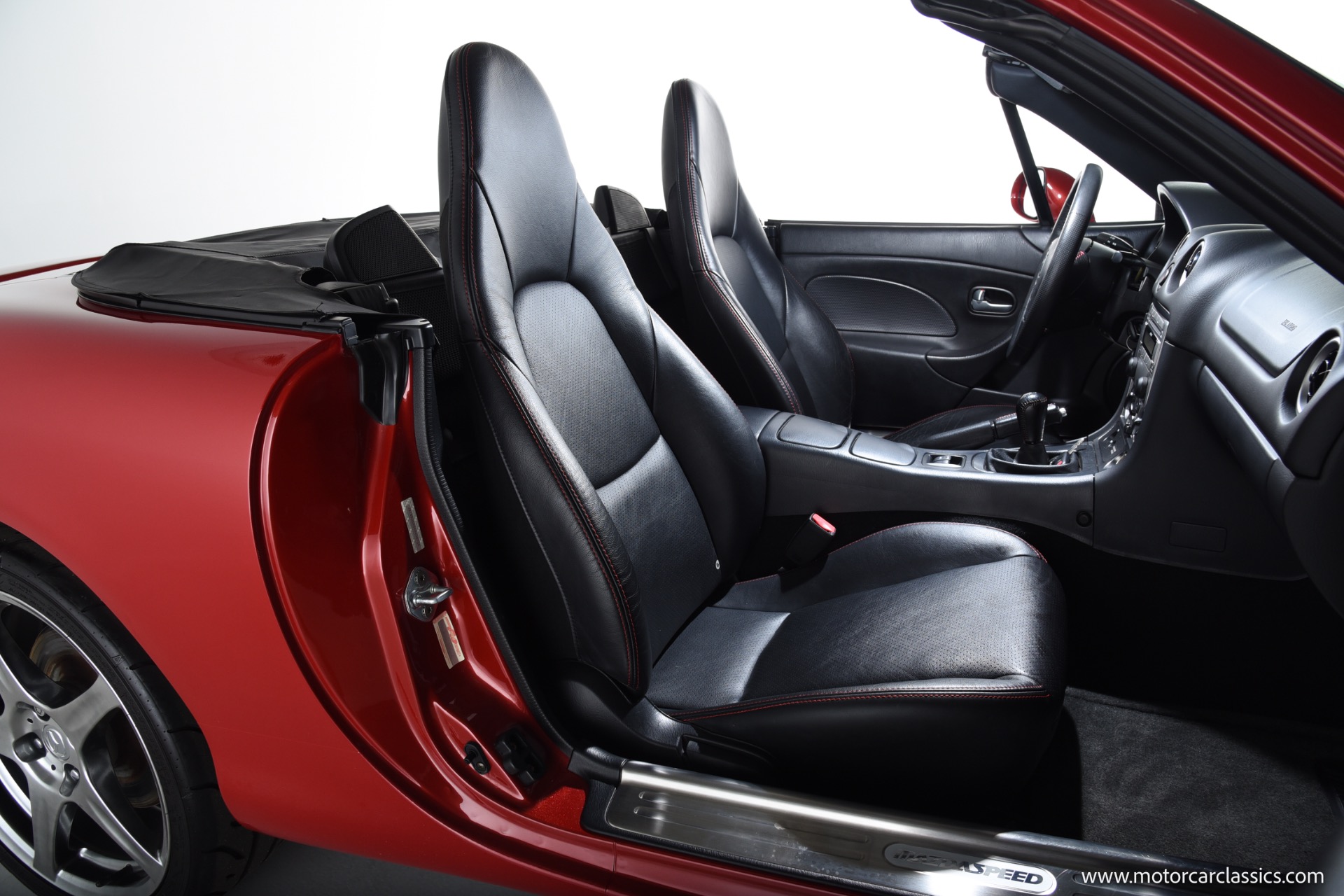 2004 Mazda Mazdaspeed MX-5 for sale! Motorcar Classics is pleased to present an exceptional 2004 Mazda Mazdaspeed MX-5, finished in the striking Velocity Red Mica and complemented by an immaculate black and red interior. With just 7,749 miles from new and a pristine, unblemished history, this cherished example stands as a true collector's piece. The Mazdaspeed MX-5, a rare, factory-turbocharged iteration of Mazda's legendary roadster, boasts a 1.8-liter DOHC inline-four engine producing 178hp and 166 lb-ft of torque, paired to a close-ratio 6-speed manual transmission for pure driving engagement. Key Mazdaspeed features include a limited-slip differential, 17-inch Racing Hart alloy wheels, Bilstein dampers, unique front and rear bumper covers, under spoilers, color-matched rear lip spoiler, and premium touches such as a Bose sound system and air conditioning, all contributing to its status as the most performance-focused Miata built.