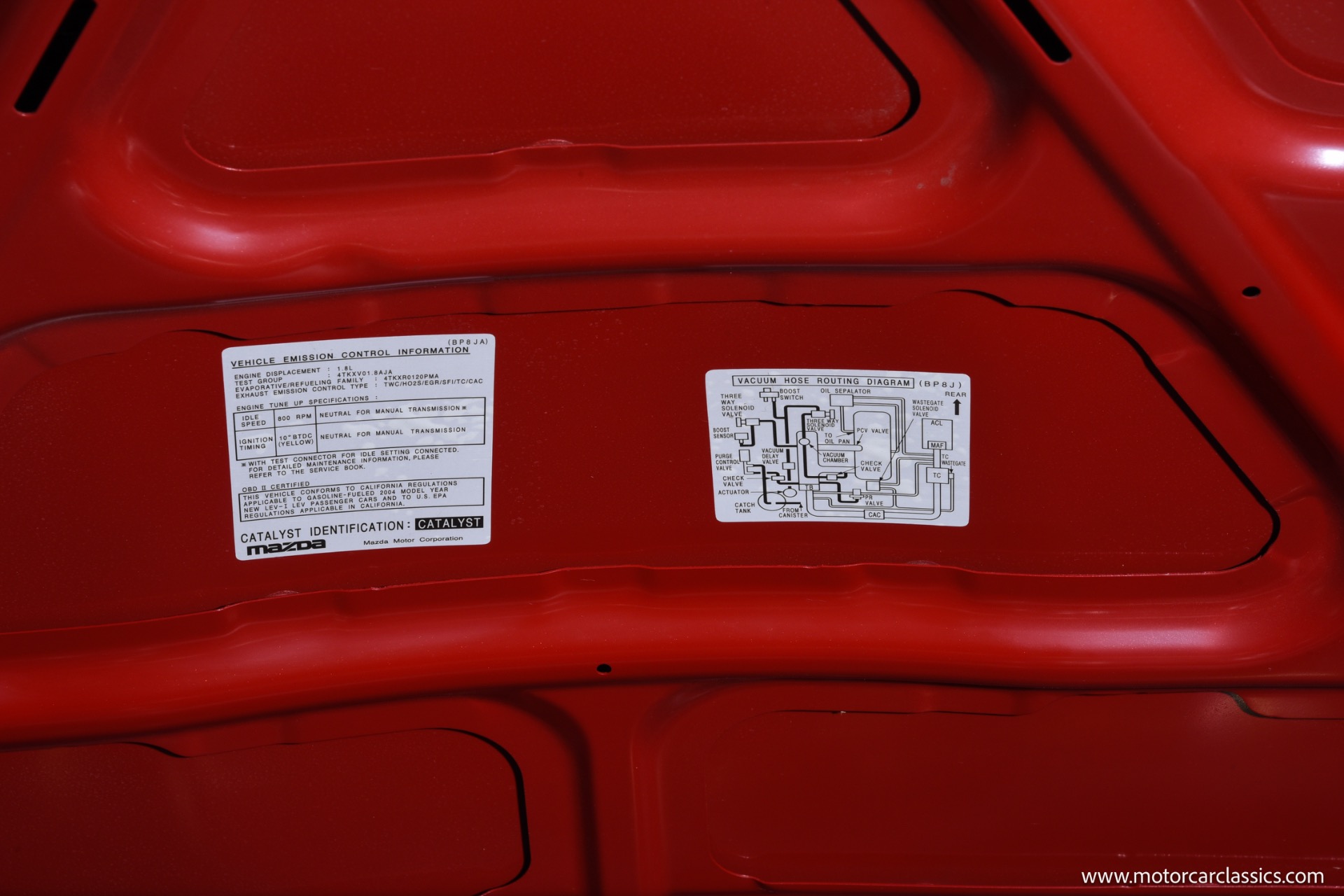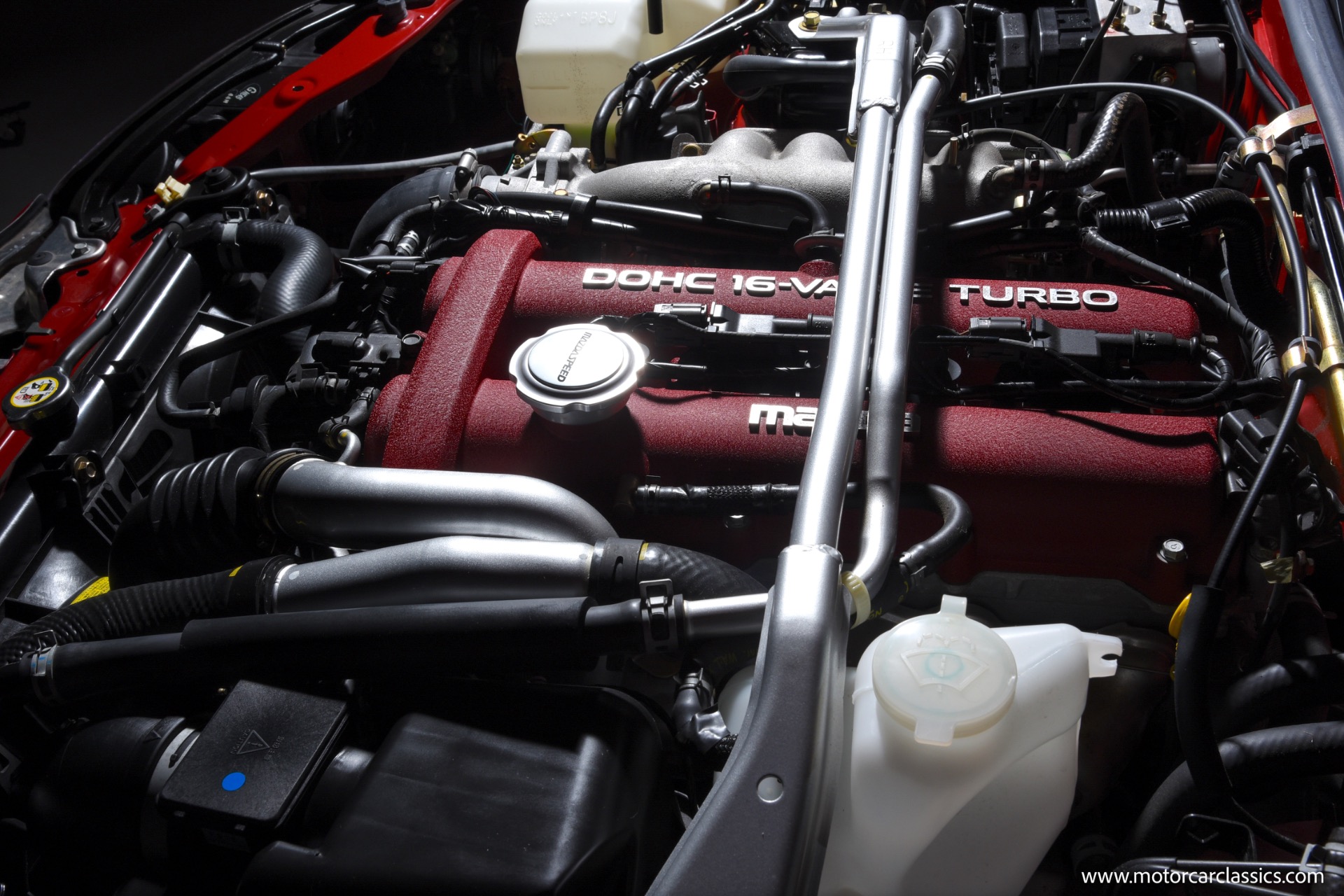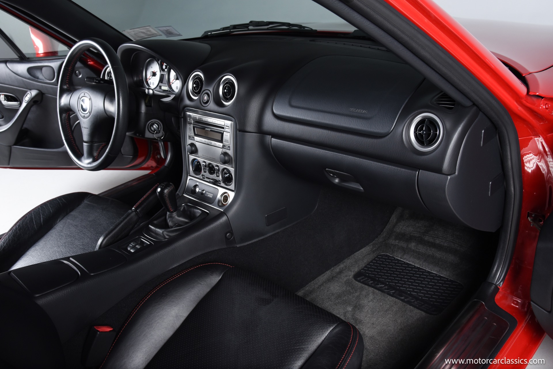 2004 Mazda Mazdaspeed MX-5 for sale! Motorcar Classics is pleased to present an exceptional 2004 Mazda Mazdaspeed MX-5, finished in the striking Velocity Red Mica and complemented by an immaculate black and red interior. With just 7,749 miles from new and a pristine, unblemished history, this cherished example stands as a true collector's piece. The Mazdaspeed MX-5, a rare, factory-turbocharged iteration of Mazda's legendary roadster, boasts a 1.8-liter DOHC inline-four engine producing 178hp and 166 lb-ft of torque, paired to a close-ratio 6-speed manual transmission for pure driving engagement. Key Mazdaspeed features include a limited-slip differential, 17-inch Racing Hart alloy wheels, Bilstein dampers, unique front and rear bumper covers, under spoilers, color-matched rear lip spoiler, and premium touches such as a Bose sound system and air conditioning, all contributing to its status as the most performance-focused Miata built.