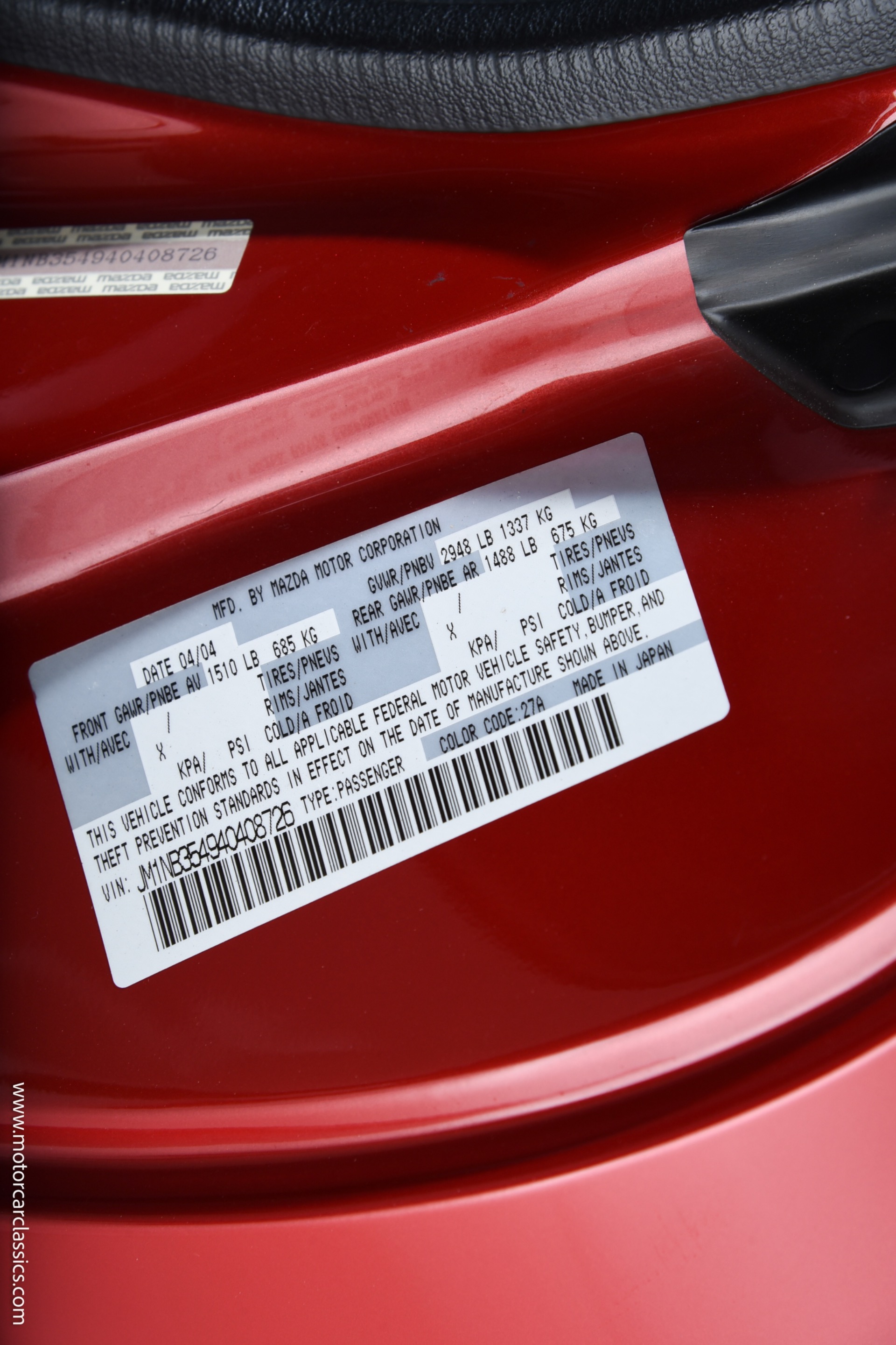 | VIN: | JM1NB354940408726 |