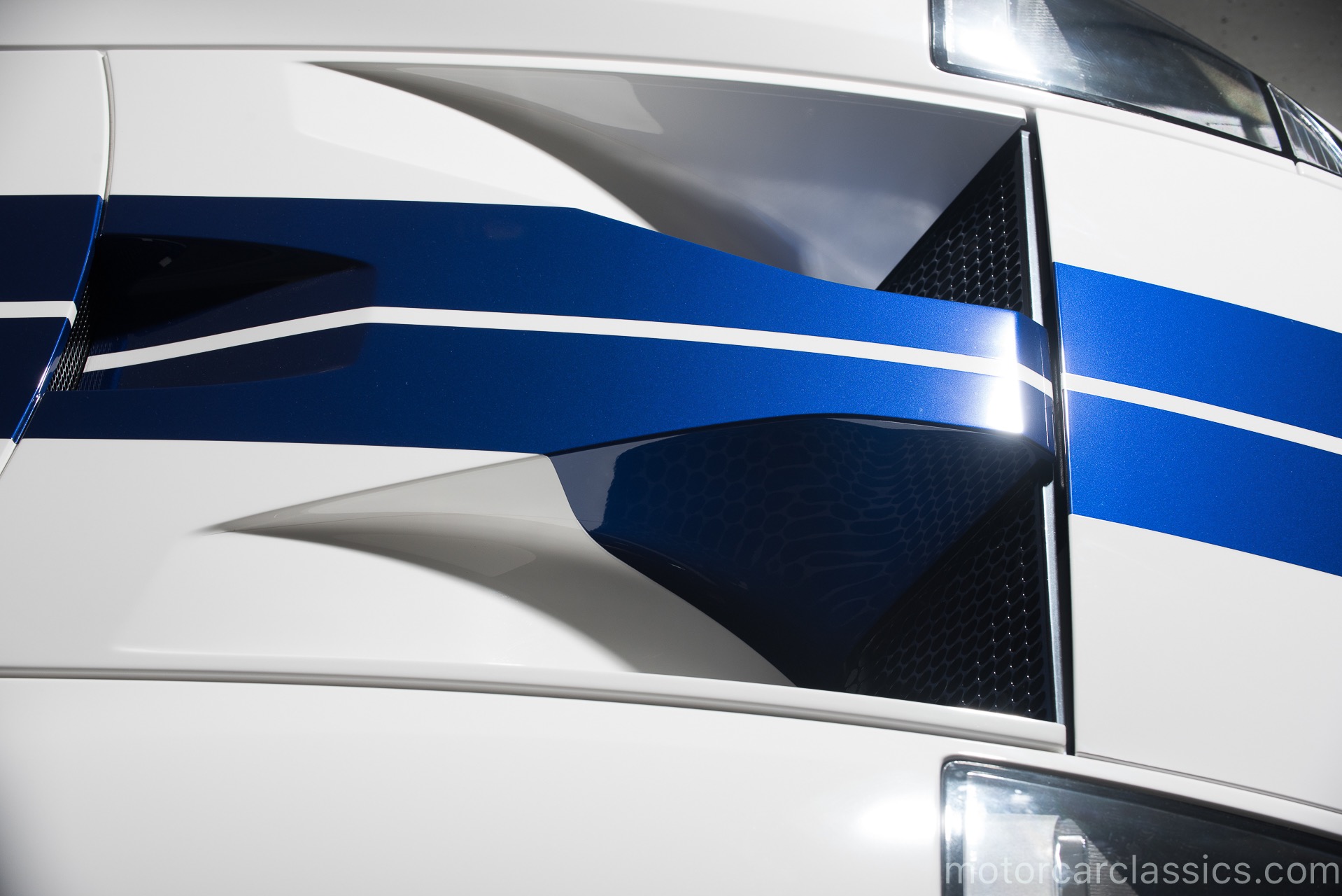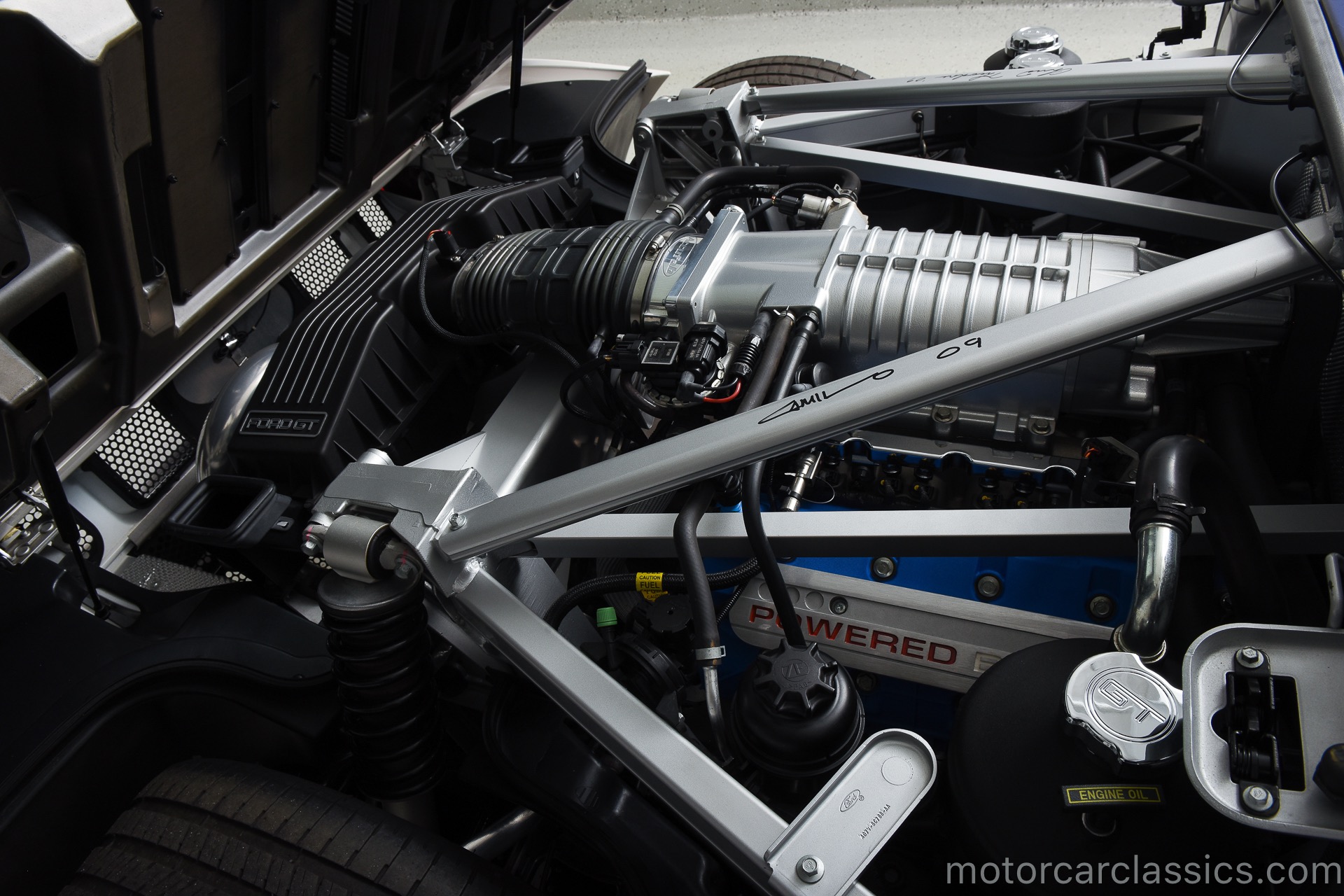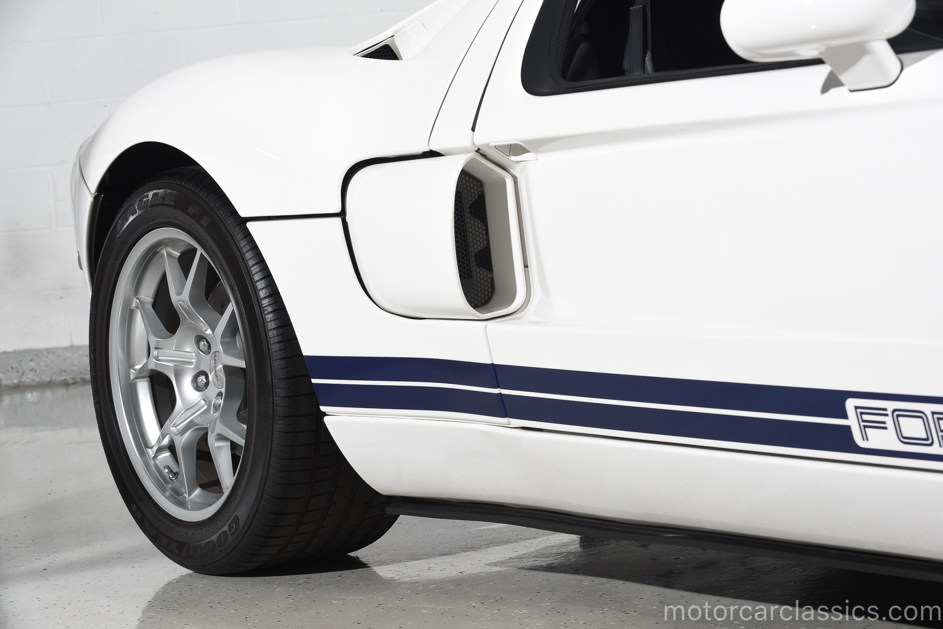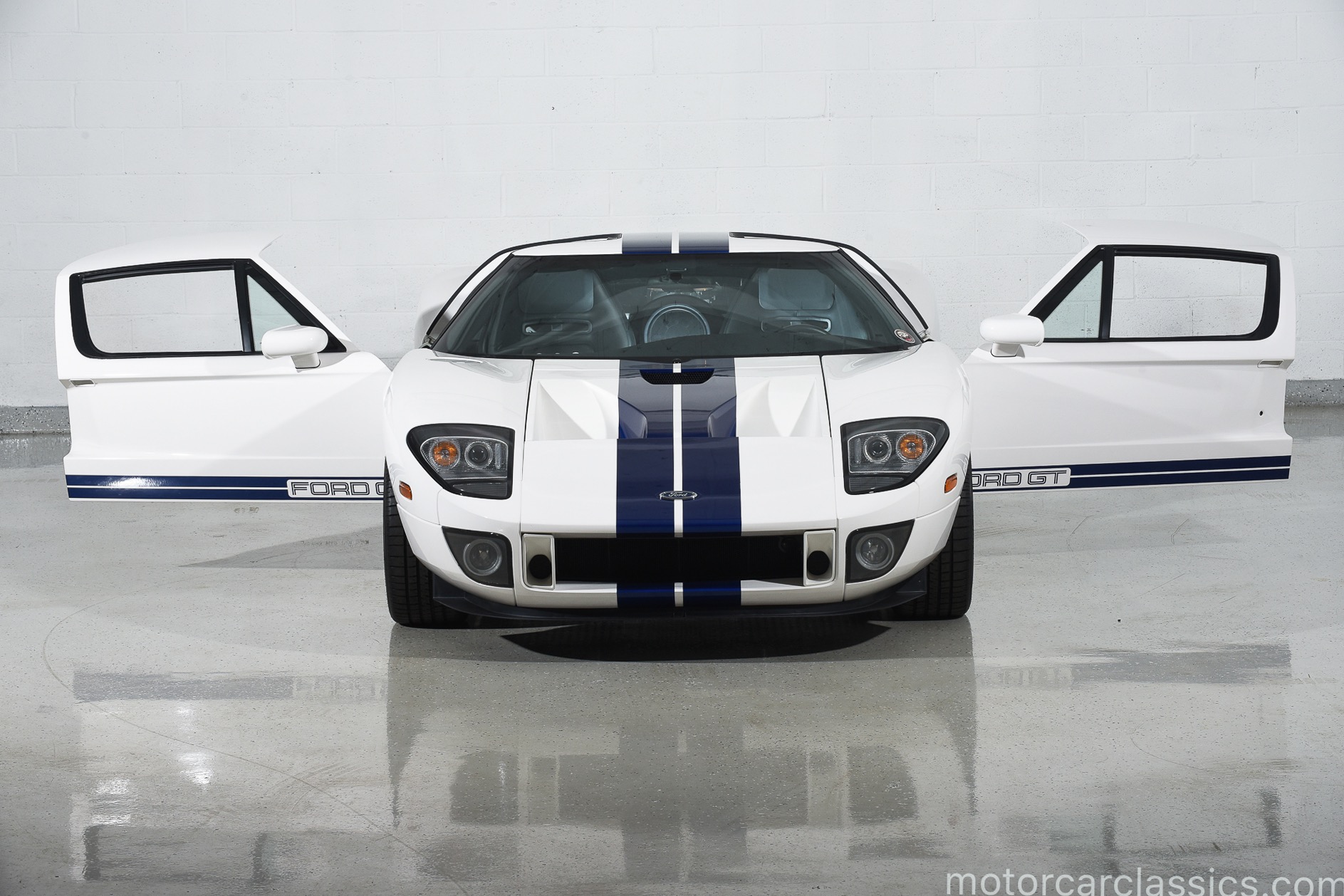2005 Ford GT for sale. Motorcar Classics is proud to offer this 2005 Ford GT presented in Centennial White with Sonic Blue stripes. This 3-owner GT has only 4675 original miles. The engine is a 5.4L supercharged V8 engine with dry sump lubrication producing 550HP mated with a 6 speed manual gearbox. Equipped with a Macintosh stereo and BBS forged wheels this GT has won several awards in east coast shows and most notably at the All Ford Nationals. This particular GT is one of the very few with billet aluminum control arms. This fitment during a production flaw in the original control arms cost Ford over $20,000 to have them produced by Saleen to keep production on schedule. While under the present ownership the car has been exclusively maintained by Rick Brooks and Dennis Breitenbach (The GT Guys, LLC) in Detroit. Rich and Dennis were both on the design & development team and car construction while at Ford. All maintenance records are available. The GT Guys installed their exclusive pulley & tune, OEM Ford Trans cooler, exclusive performance exhaust and quick release hood latch on the rear bonnet. The car has been fitted with OEM replica gauges as the original gauges were prone to constant malfunction. All original parts will come with purchase to new owner. The present owner had the pleasure to spend time on many occasions with the car designer, Camilo Pardo and the VP in charge of production, Chris Theodore. Both have signed the engine frame rails. The most unique piece of nostalgia is that this car is highly featured throughout the Ford approved GT Owners Experience Book. This GT was selected as the vehicle over all other GTs to be placed on the inside front and back pages of the book. The series numbered first edition book with metal plaque identifying the VIN is being given to the new owner. And finally, the car has Expel clear film applied to the front, hood and key body panels since new and has been changed every 4 years. There are numerous other accessories such as custom 1966 style seat covers, custom mats, leather shift boot and much more. Over the past 12 years Motorcar Classics has sold many Ford GTs. Having been the previous owner of one of the original prototypes CP-1 we know the difference between a good Ford GT and a great one. The Ford GT you are looking at is one of the best weve ever seen. Its a true investment grade magnificent example with many rare options and features. Chassis #0986 was delivered new to its first owner in Florida who kept it only a few months before selling it to its second owner who also sold it quickly after that to the current owner who has owned it now for over 9 years. It has been driven less than 300 miles a year and always stored in a temperature controlled facility. The Ford GT was built for only 2 years (2005-2006). They were built to commemorate the 1960s Ford GT40 wins at Le Mans. This is truly a rare opportunity to own such a unique piece of Ford heritage racing history. VIN: 1FAFP90S75Y400986