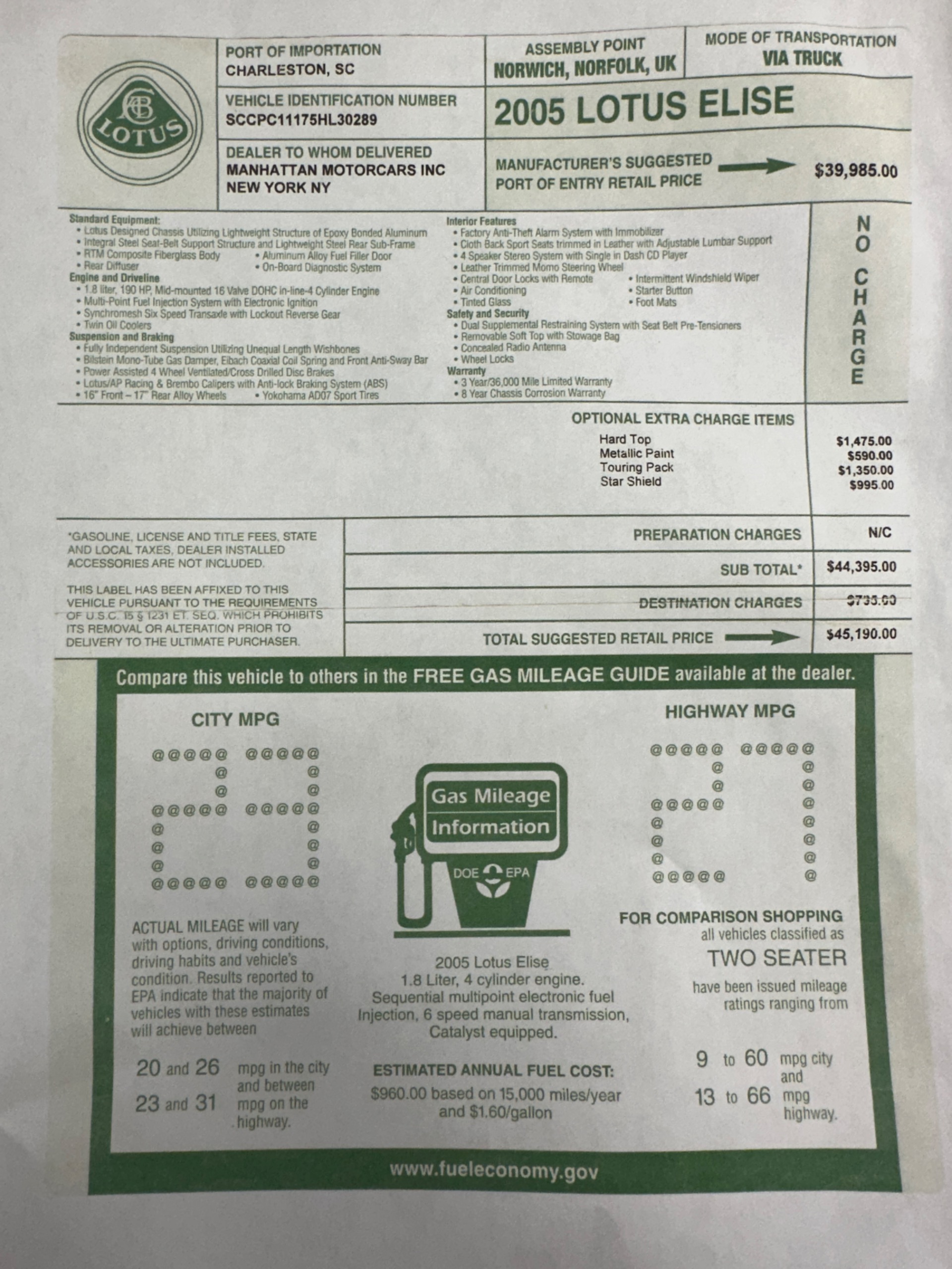 2005 Lotus Elise for sale! Motorcar Classics is proud to present this exceptional 2005 Lotus Elise which has been meticulously maintained and thoughtfully upgraded for both driving enthusiasts and collectors. This Elise features the rare factory hard top highly desirable option, in addition to the standard soft top. With only 17,029 miles the car remains in pristine condition.