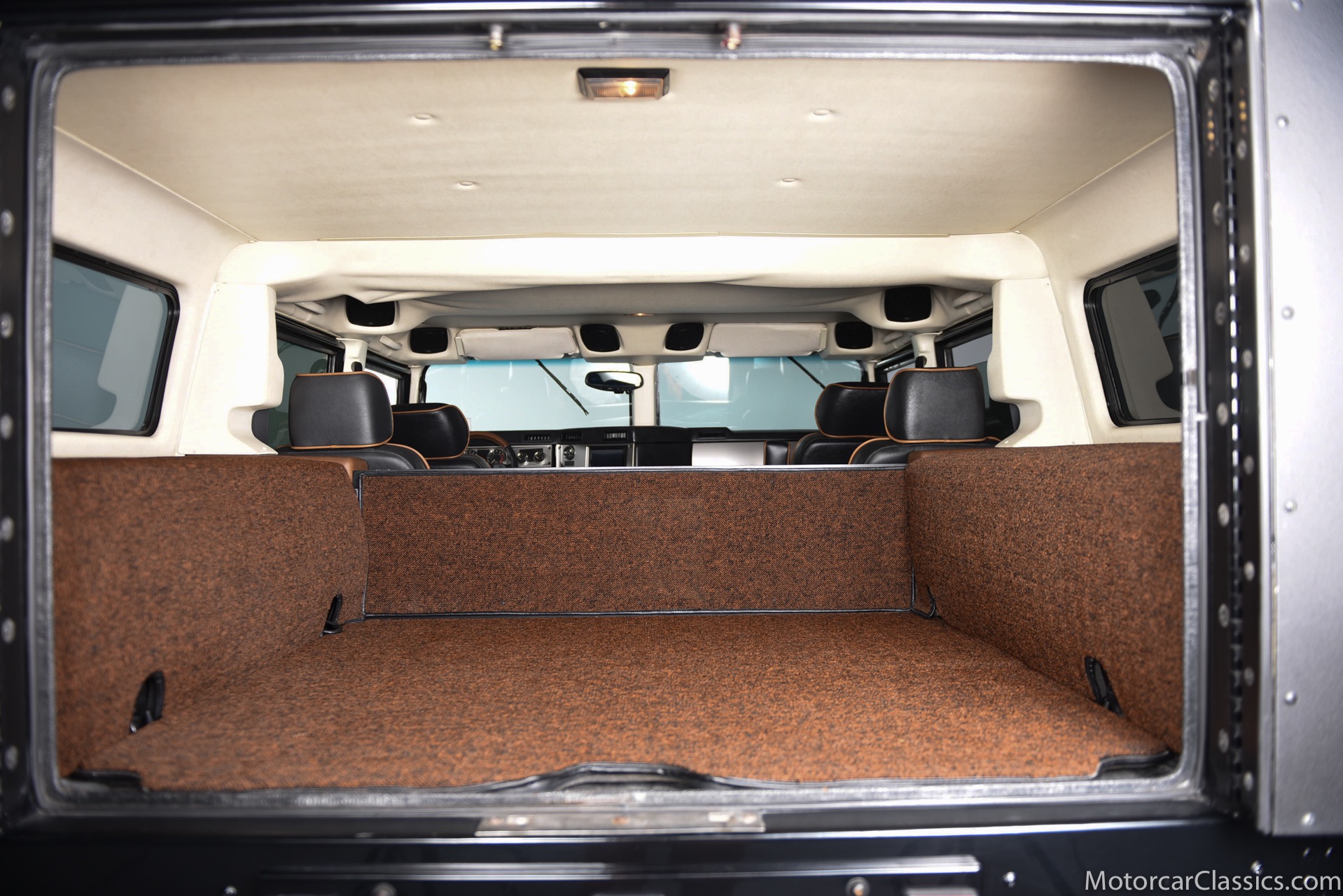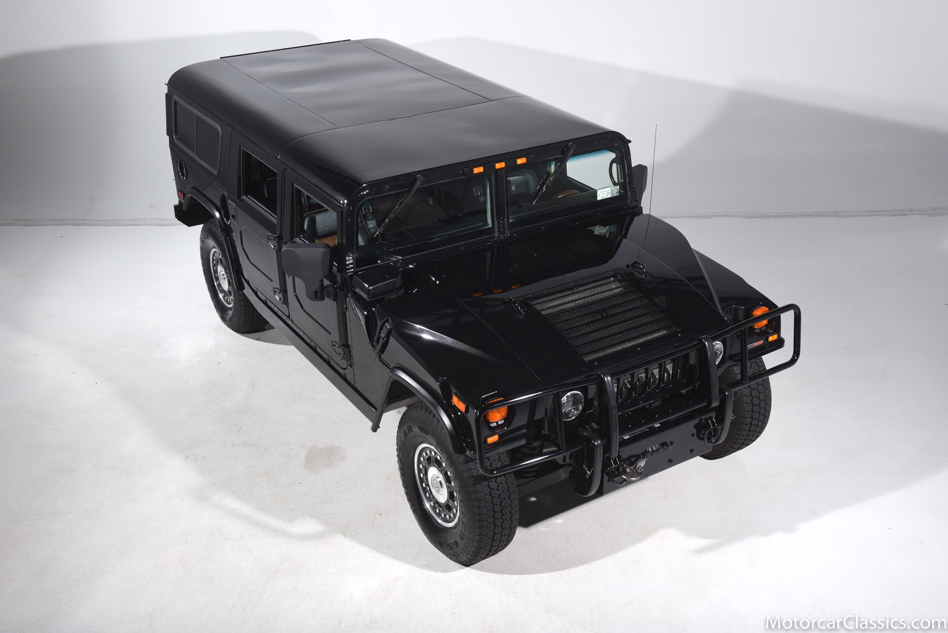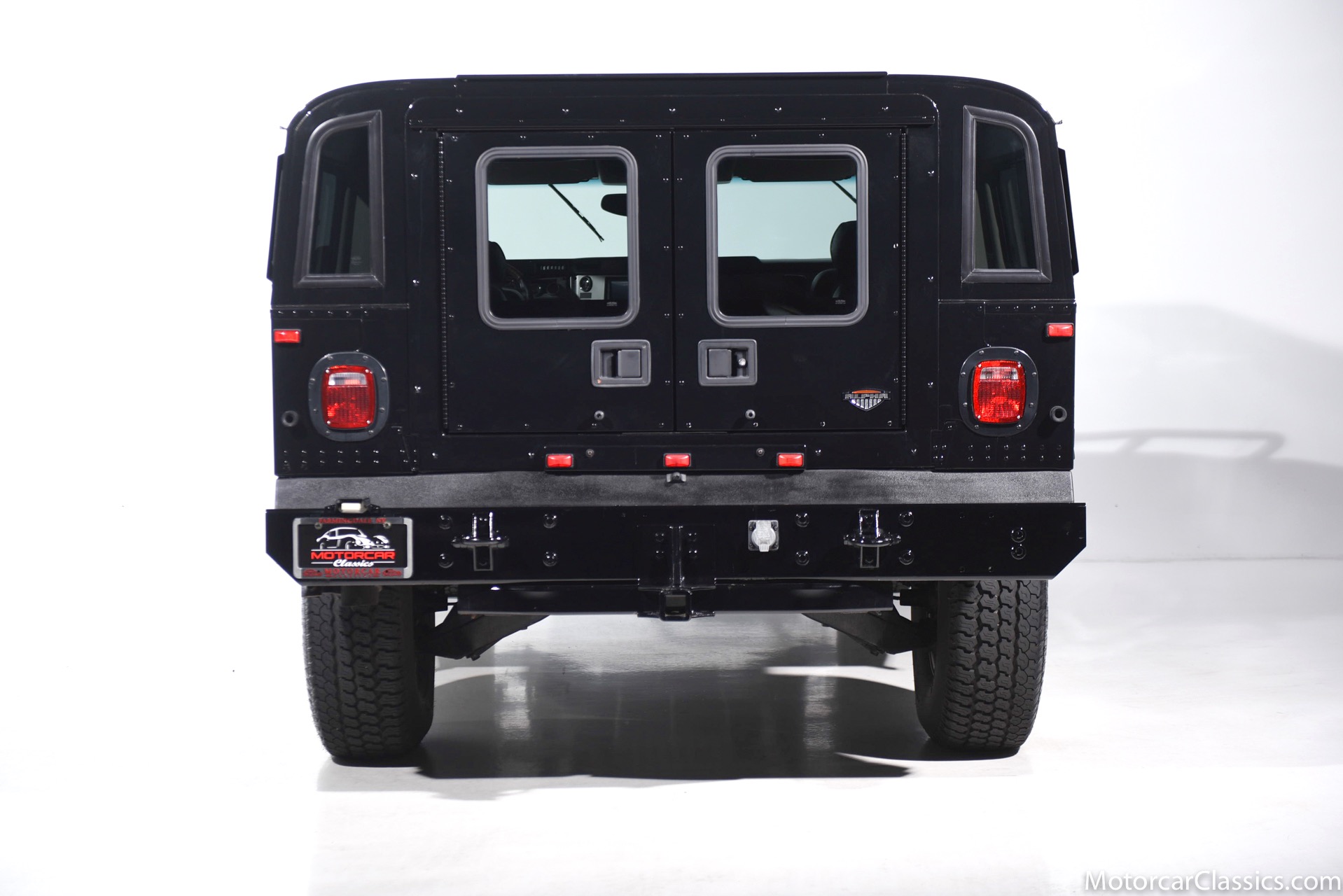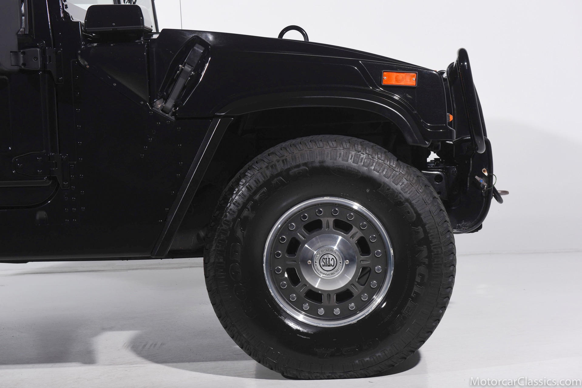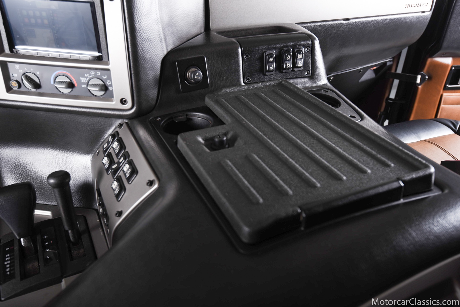 Power-assisted steering makes driving easy. Power-assisted HMMWV discs are mounted inboard for the sake of durability. And at the corners, two-piece alloys are wrapped with 37x12.50R17 OEM Goodyear Wrangler GS-A's around connected to a standard Central Tire Inflation System. In the cabin, Saddle-trimmed leather buckets feature heat for the front passengers and audio for the rear passengers. A chunky, two-tone dash mounts intricate telemetry next to factory climate control and modern Kenwood audio.