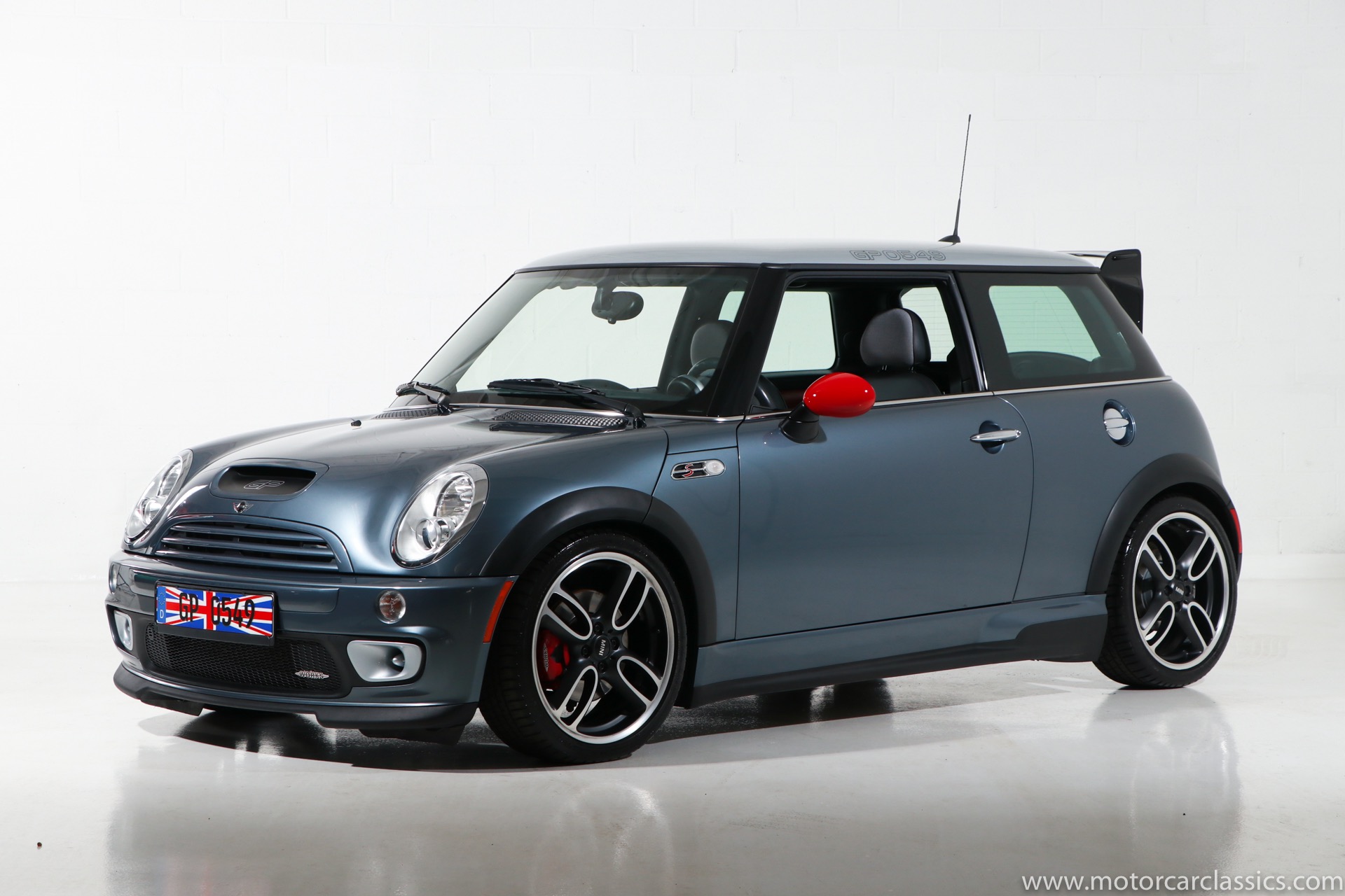2006 MINI Cooper S JCW for sale! Motorcar Classics is proud to present this stunning 2006 MINI Cooper S John Cooper Works Edition. This rare and collectible Mini, finished in Thunder Blue Metallic, has been meticulously maintained and has only 22,418 miles on the odometer. It features a powerful 1.6-liter supercharged inline-4 engine paired with a 6-speed manual transmission, delivering an exhilarating driving experience with 214 horsepower thanks to the John Cooper Works GP Kit. Only 3,000 JCW Editions were made. They are distinguished by their unique car number in graphics on the roof. Our car is GP0549.