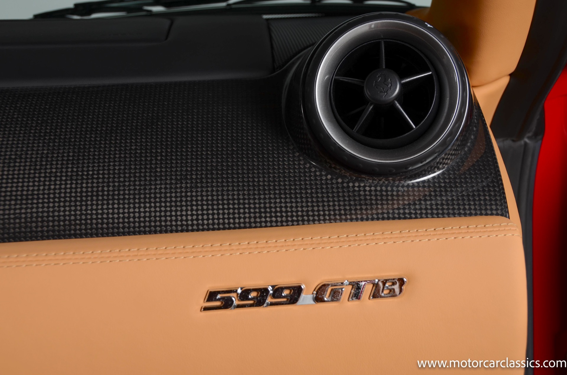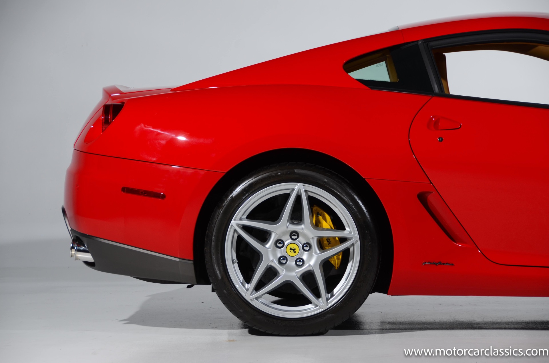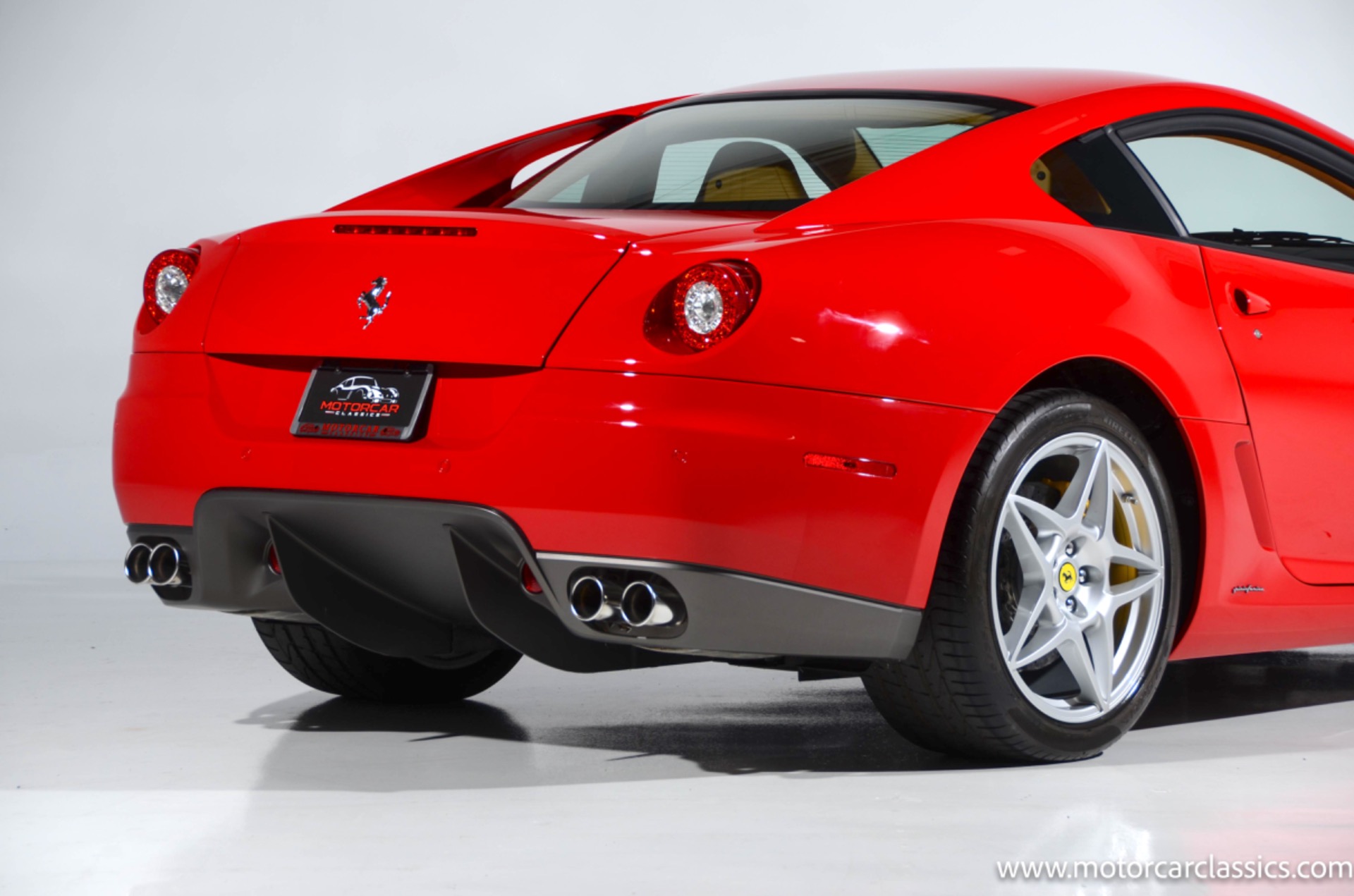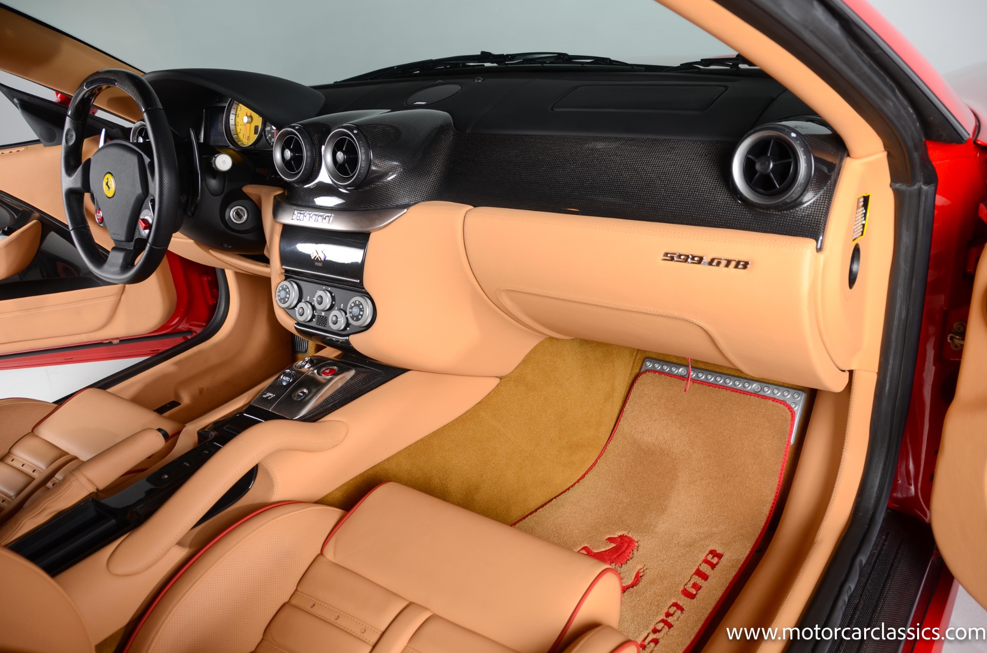2007 Ferrari 599 for sale! Motorcar Classics is proud to present the quintessence of Italian excellence with this stunning 2007 Ferrari 599 GTB Fiorano, meticulously crafted in the iconic Rosso Corsa red hue and complemented by an elegant tan leather interior. The exterior boasts impressive features such as yellow brake callipers, adding a sporty touch to its aggressive stance, while the interior showcases luxurious amenities like leather upholstery seat backrests, carbon fibre driving and lower cabin zones, and Daytona-style seats inspired by Ferrari's rich racing heritage.