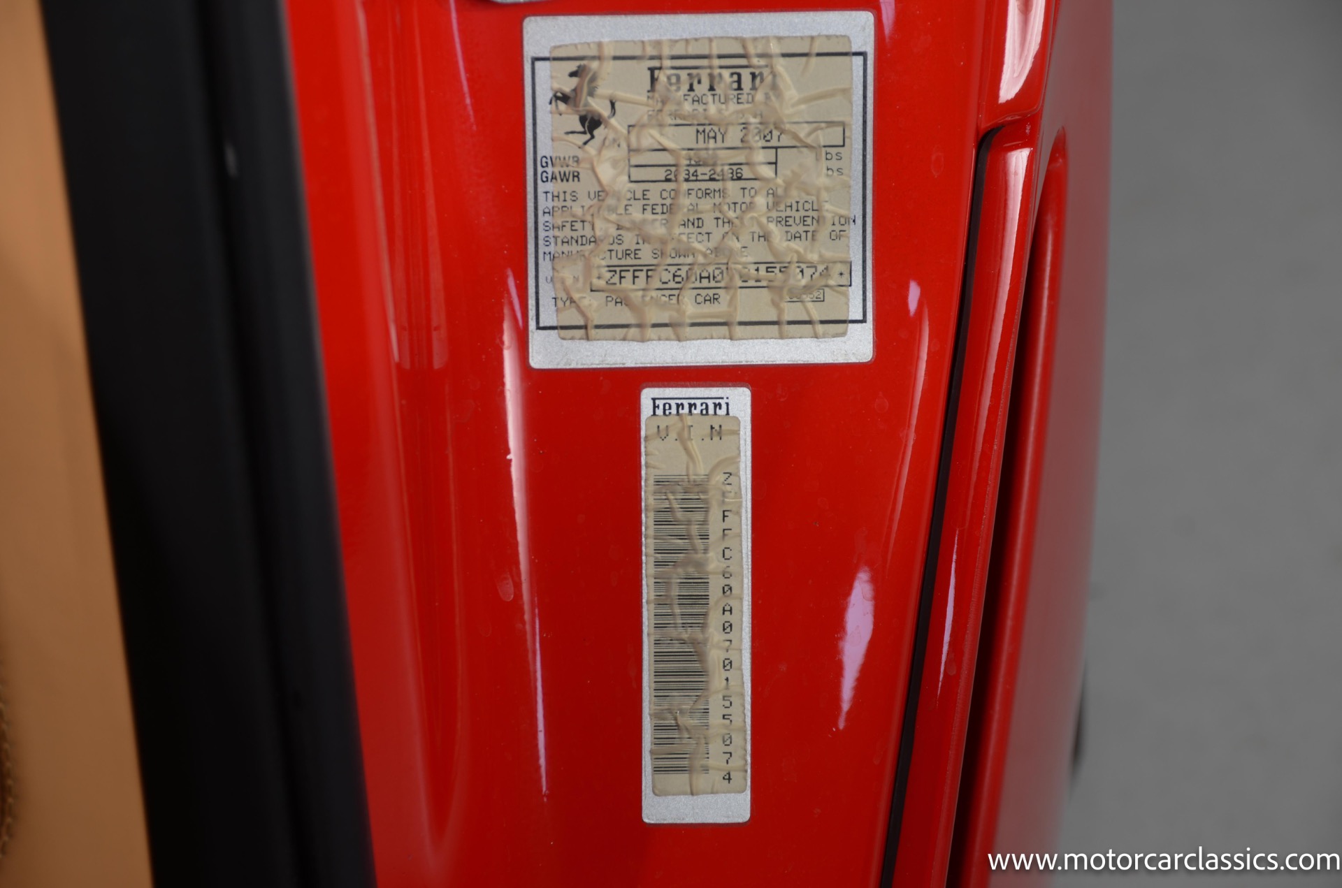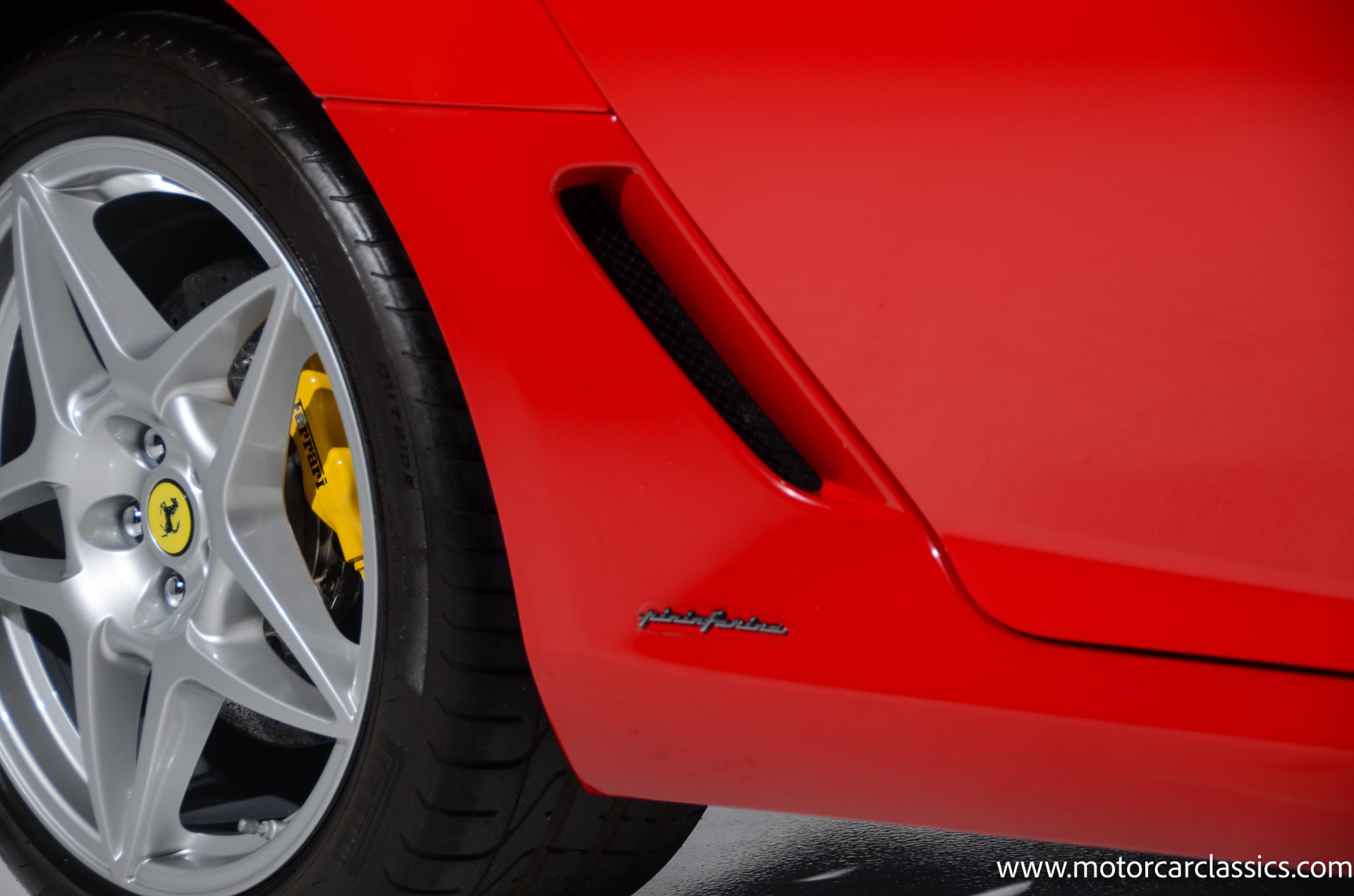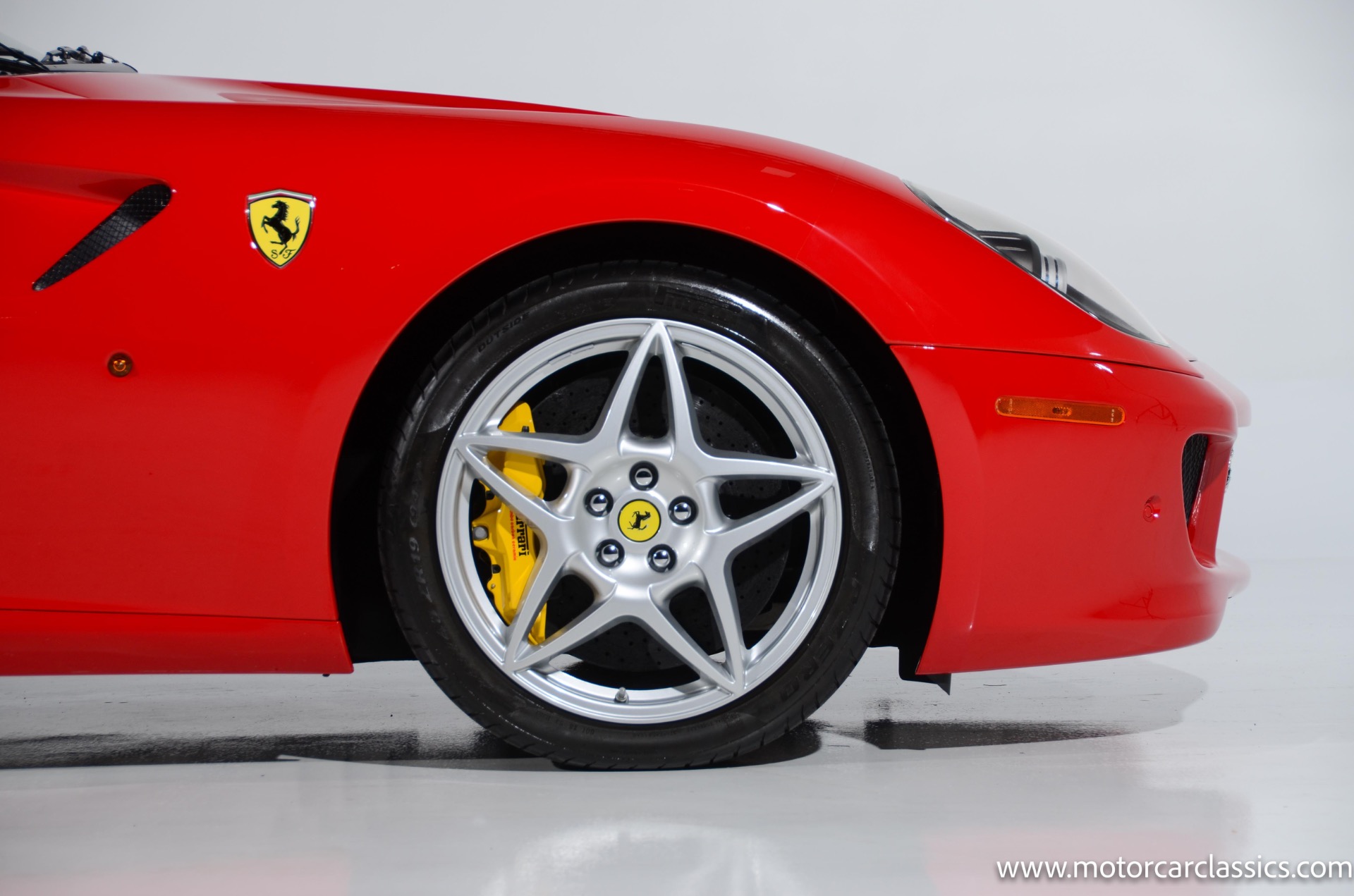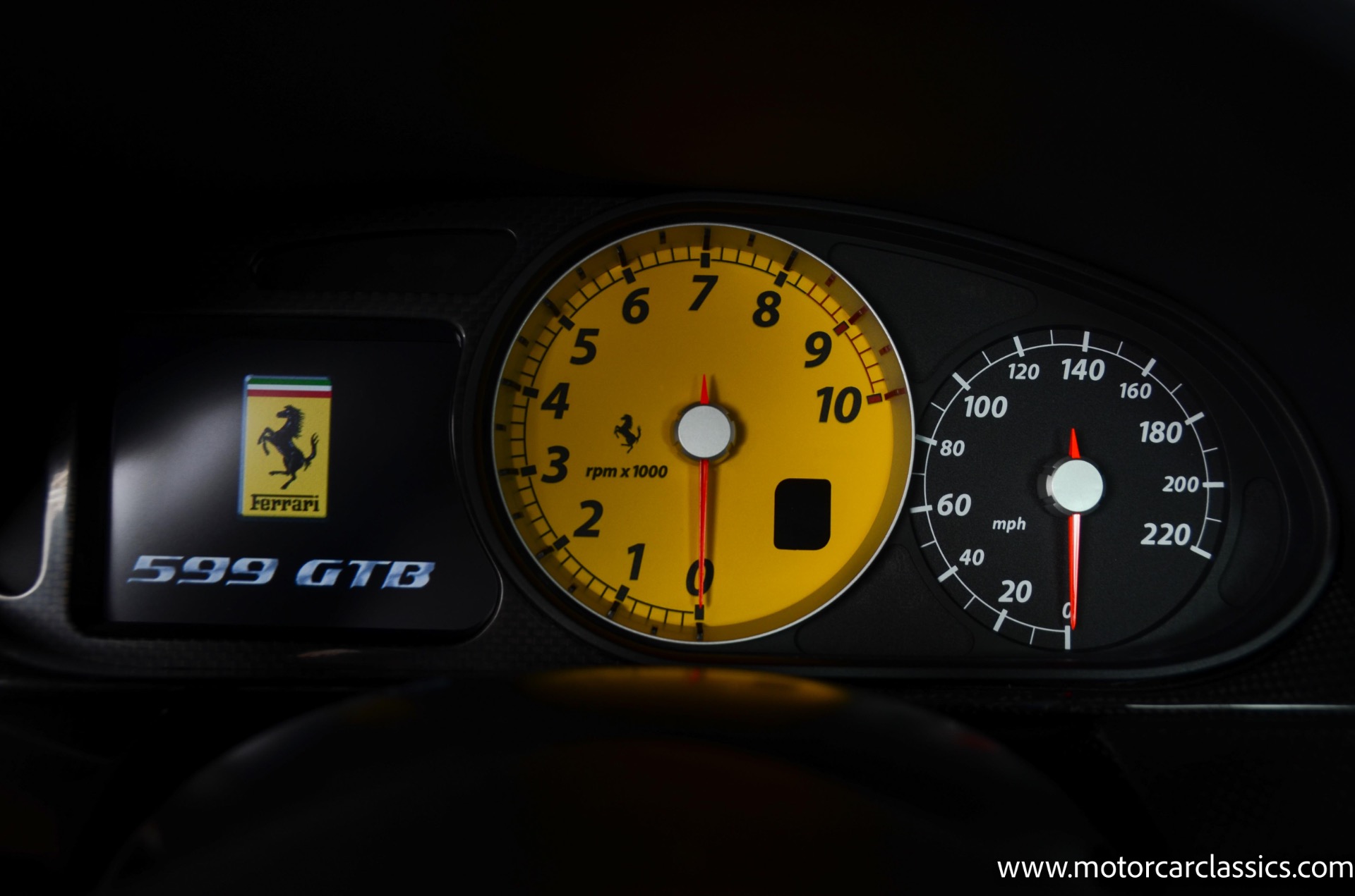 2007 Ferrari 599 for sale! Motorcar Classics is proud to present the quintessence of Italian excellence with this stunning 2007 Ferrari 599 GTB Fiorano, meticulously crafted in the iconic Rosso Corsa red hue and complemented by an elegant tan leather interior. The exterior boasts impressive features such as yellow brake callipers, adding a sporty touch to its aggressive stance, while the interior showcases luxurious amenities like leather upholstery seat backrests, carbon fibre driving and lower cabin zones, and Daytona-style seats inspired by Ferrari's rich racing heritage.