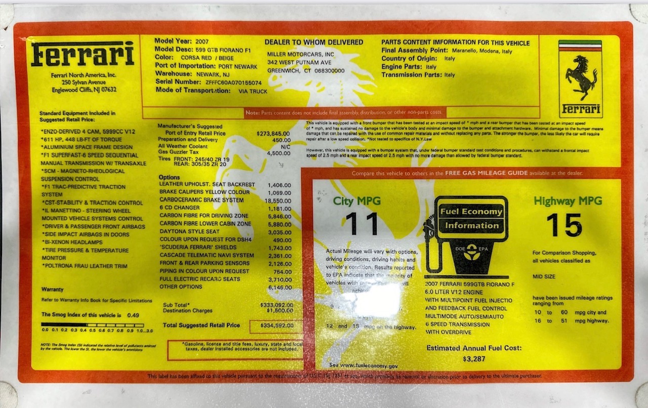 With a clean Carfax report, two keys, and full manuals, this rare find offers a unique opportunity to own a meticulously maintained piece of automotive history. Whether you're a seasoned collector or an enthusiast, this 2007 Ferrari 599 GTB Fiorano promises an unparalleled driving experience. Your inspection is invited!