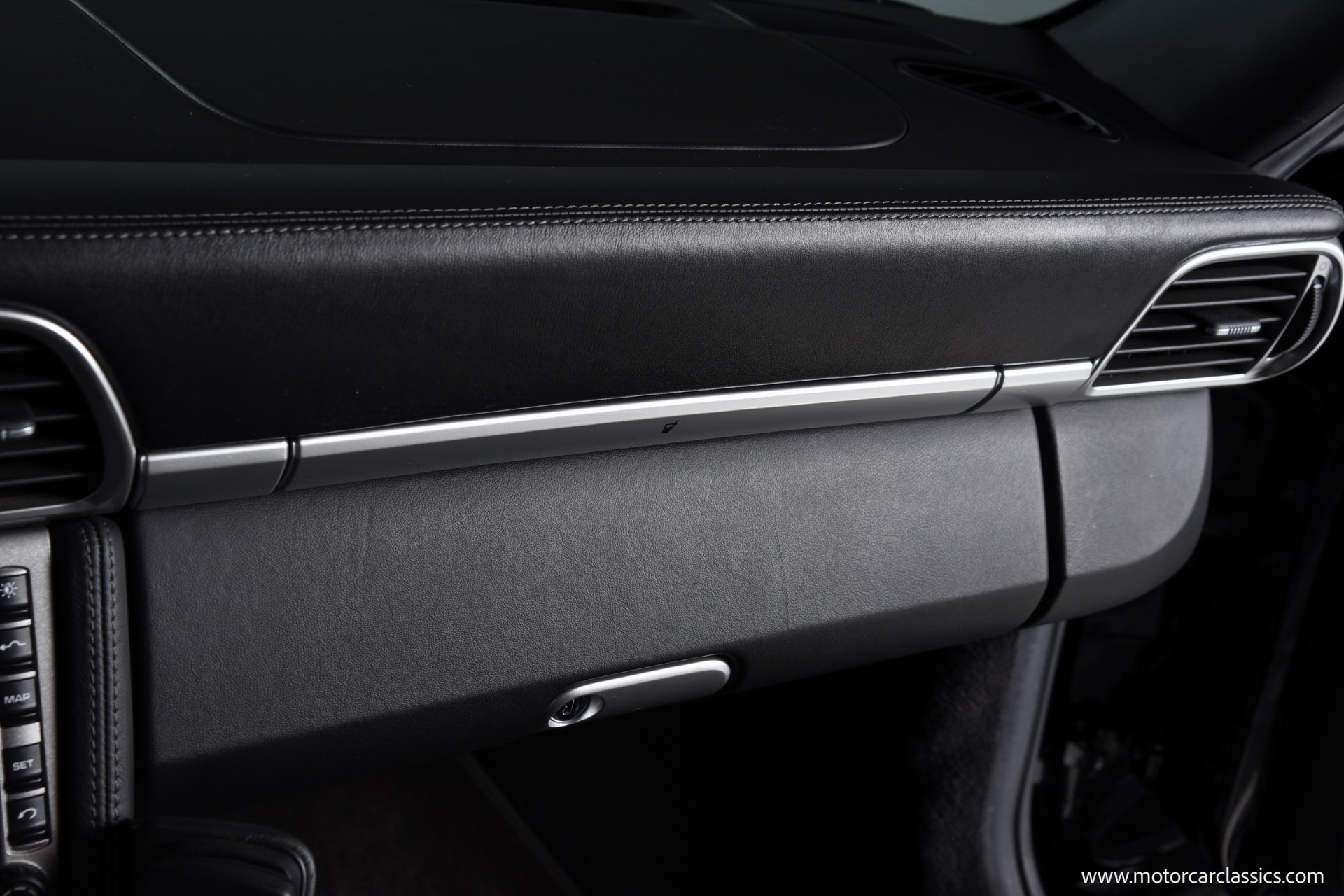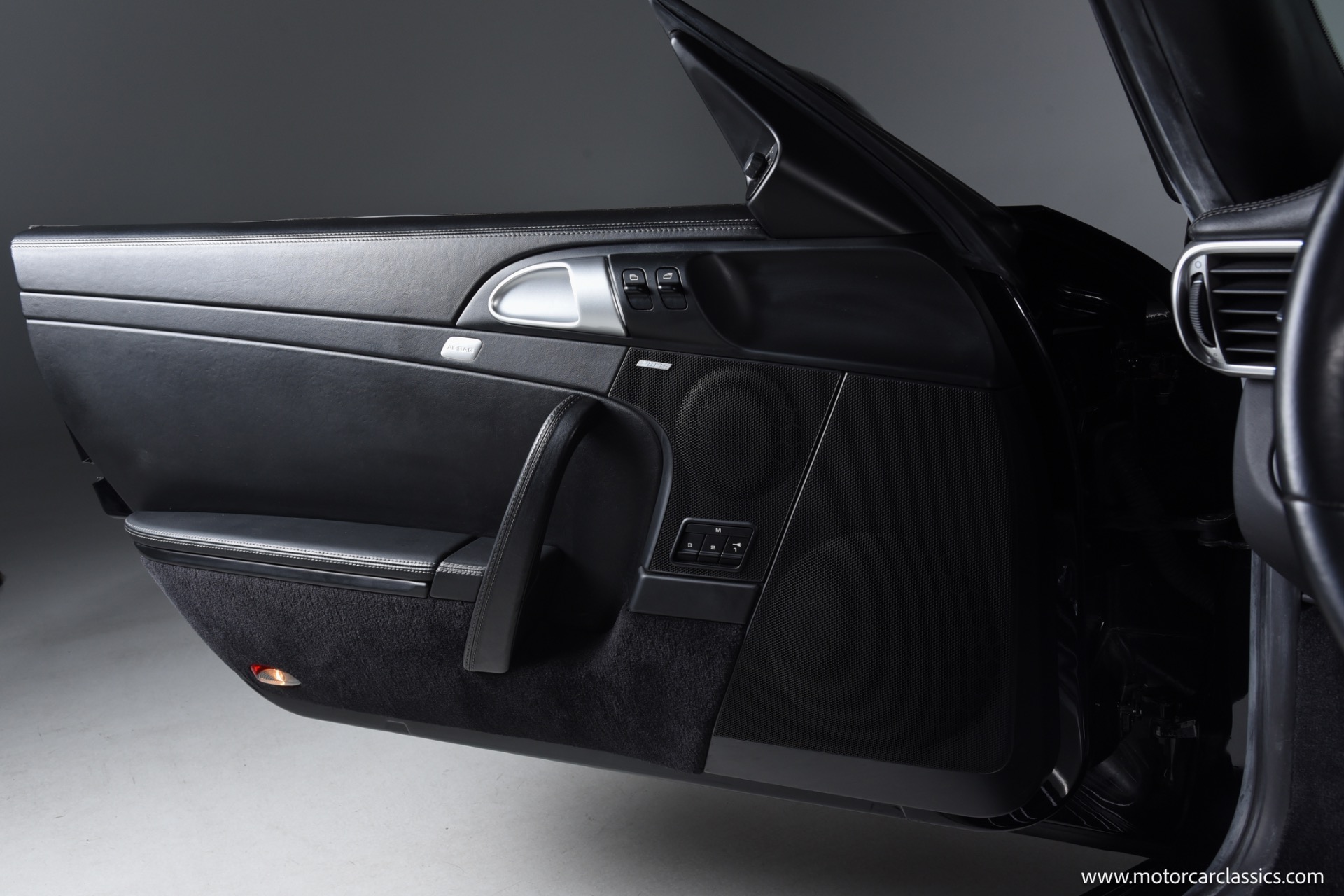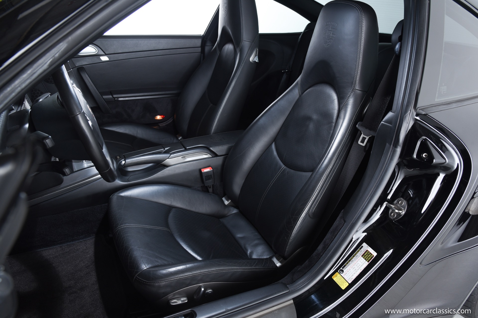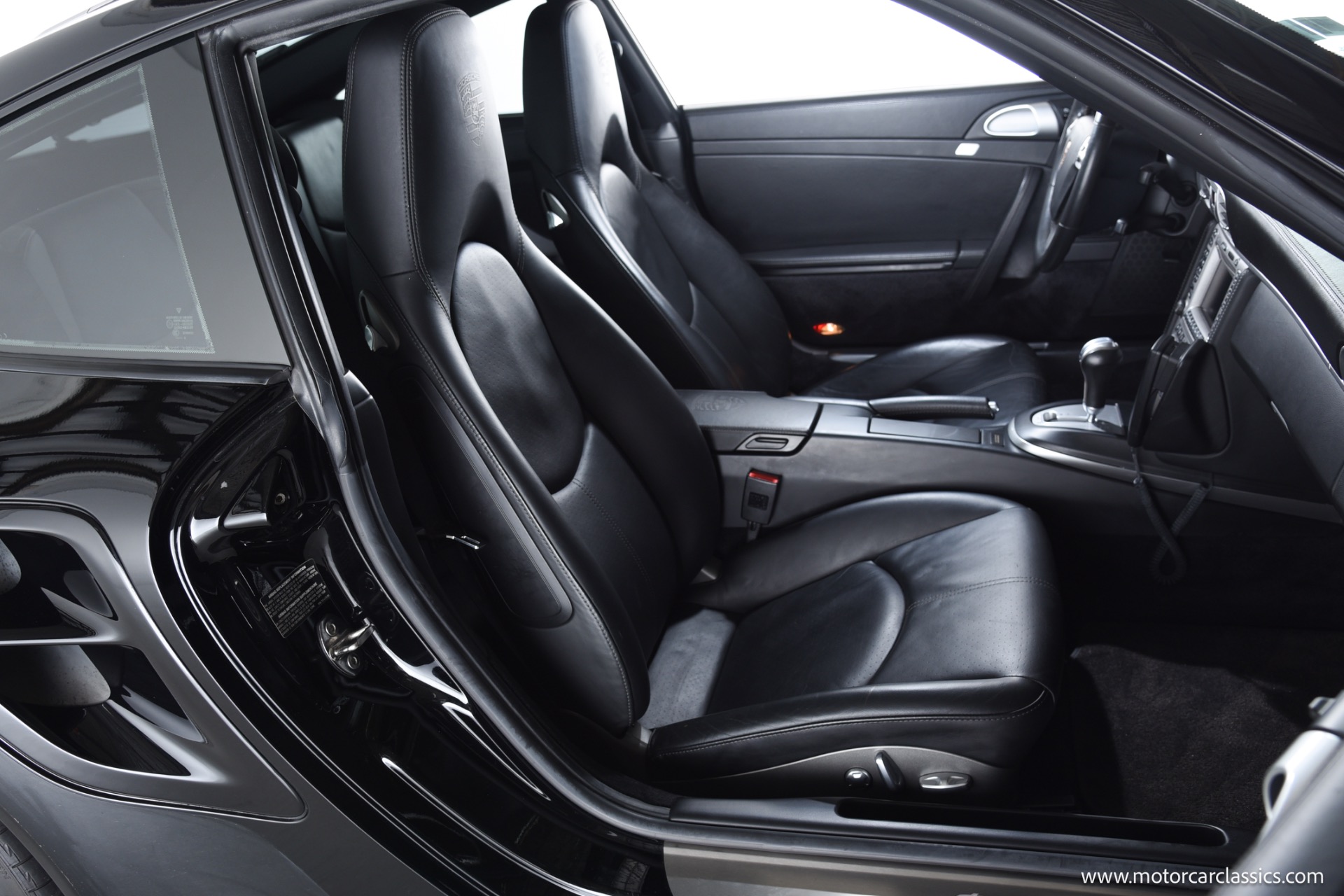 This Turbo is finished in Black (code A1) with a matching full black leather interior, both ordered from the factory. Noteworthy features and significant factory options include the Tiptronic S transmission, which makes this one of the most approachable and user-friendly Turbos for everyday driving or spirited runs. Major options include the Sport Chrono Package Plus, Porsche Active Suspension Management (PASM), heated seats, Park Assist, navigation, BOSE High-End Sound Package, xenon headlights, sunroof, three-spoke multifunction steering wheel, rear window wiper, and illuminated stainless door entry guards. The car also features comfort seats with memory, 19" Turbo wheels, and several luxury touches such as floor mats in interior color, Porsche crests in the headrests, and an Alcantara roofliner. All original electronics and entertainment features, including a remote 6-disc CD changer and telephone module, remain installed.