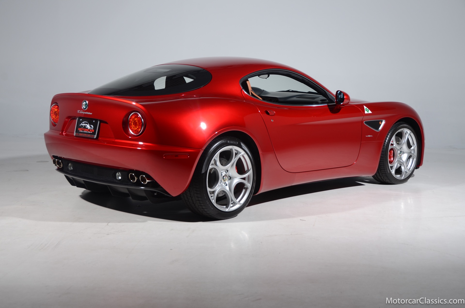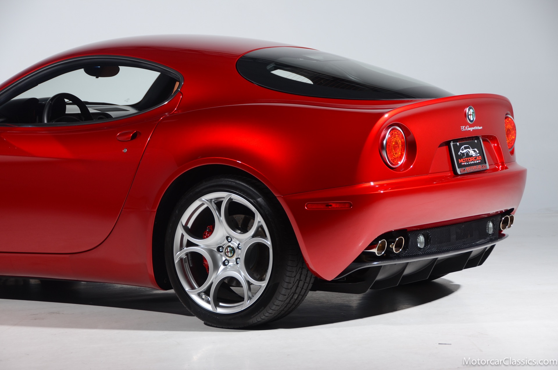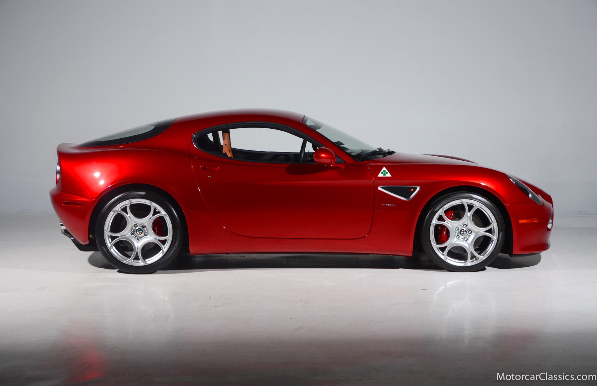2008 Alfa Romeo 8C Competizione for sale! Motorcar Classics is proud to present this 2008 Alfa Romeo 8C Competizione, one of approximately 90 examples that were designated for the US market, and was delivered new to Ferrari of Long Island. It is a one-owner car that has been in a prominent collection since new and it has covered only 1,220 miles. The car is finished in Rosso 8C Competizione over Tan Alfa leather upholstery with Poltrona Frau basketweave accents, and power comes from a 4.7-liter F136 V8 mated to a six-speed semi-automatic transaxle with a limited-slip differential. Features include bi-xenon headlights, the Full Carbon kit, dual-zone climate control, navigation, a leather headliner, and a Bose Premium GT sound system with an iPod connection.The 8C Competizione was introduced at the 2006 Paris Motor Show and revived the 8C name originally used for Alfa Romeo's eight-cylinder racing cars of the 1930s. Styling cues from the company's post-war sporting cars can be seen in the carbon-fiber body panels, which are supported by a steel space frame.Designed by Ferrari and Maserati, the 4.7-liter F136 YC V8 featured a 90 bank angle and a cross-plane crankshaft. It produced 444 horsepower at 7,000 rpm and 354 lb-ft of torque at 4,750 rpm when new. This Alfa is pristine and unmarked in every respect.