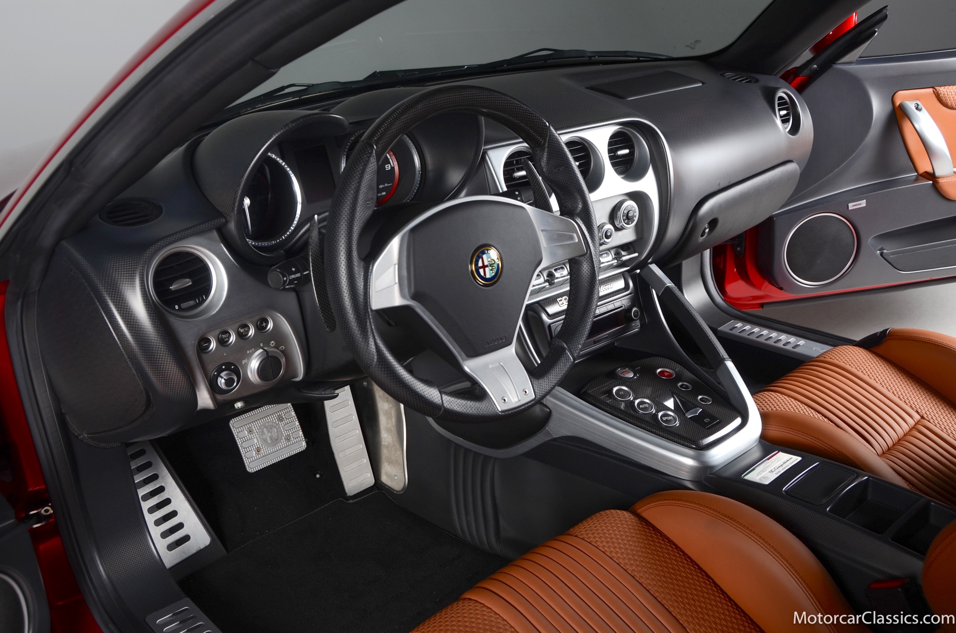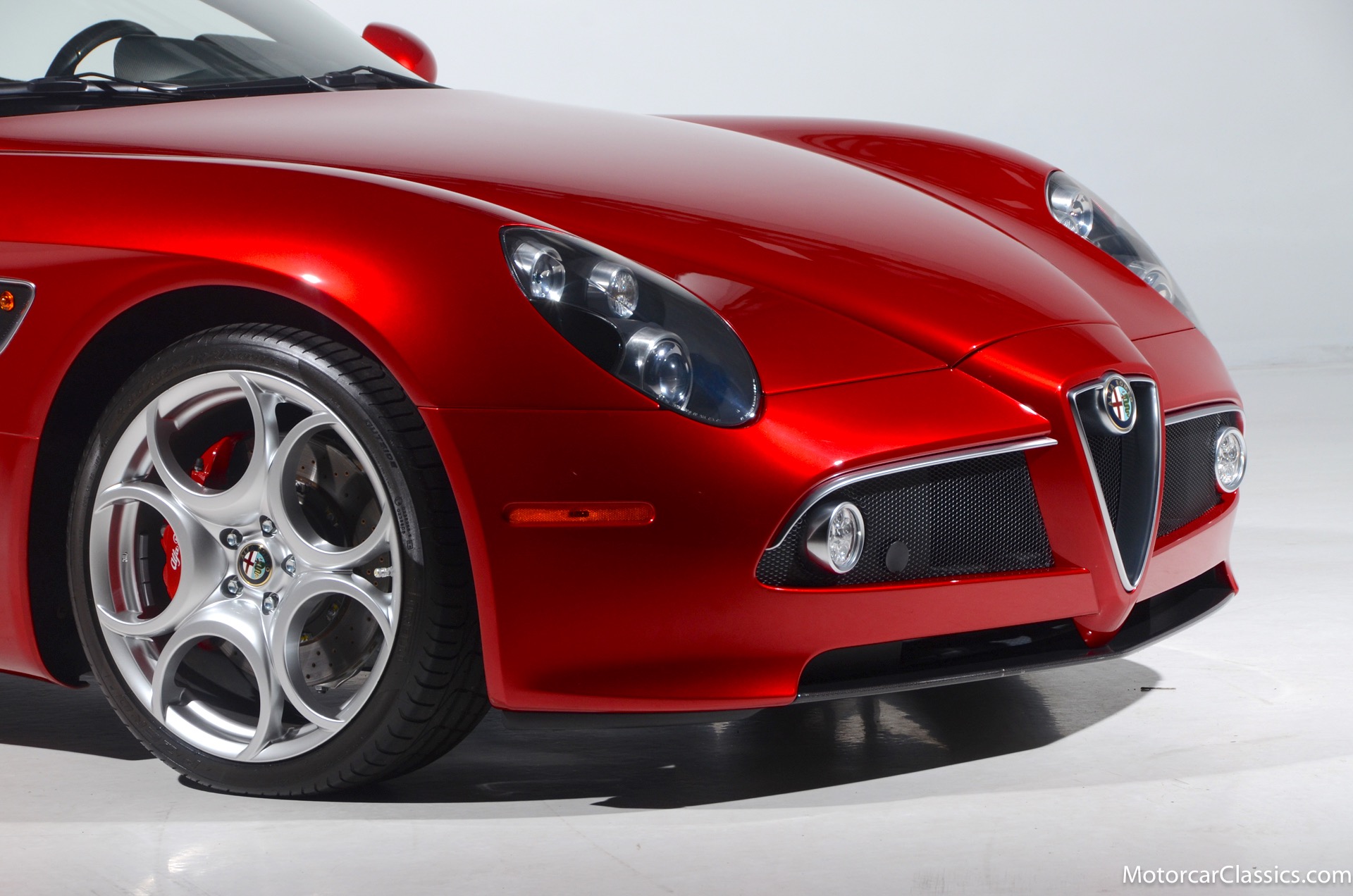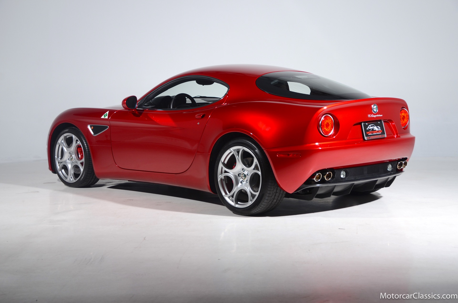 2008 Alfa Romeo 8C Competizione for sale! Motorcar Classics is proud to present this 2008 Alfa Romeo 8C Competizione, one of approximately 90 examples that were designated for the US market, and was delivered new to Ferrari of Long Island. It is a one-owner car that has been in a prominent collection since new and it has covered only 1,220 miles. The car is finished in Rosso 8C Competizione over Tan Alfa leather upholstery with Poltrona Frau basketweave accents, and power comes from a 4.7-liter F136 V8 mated to a six-speed semi-automatic transaxle with a limited-slip differential. Features include bi-xenon headlights, the Full Carbon kit, dual-zone climate control, navigation, a leather headliner, and a Bose Premium GT sound system with an iPod connection.The 8C Competizione was introduced at the 2006 Paris Motor Show and revived the 8C name originally used for Alfa Romeo's eight-cylinder racing cars of the 1930s. Styling cues from the company's post-war sporting cars can be seen in the carbon-fiber body panels, which are supported by a steel space frame.Designed by Ferrari and Maserati, the 4.7-liter F136 YC V8 featured a 90 bank angle and a cross-plane crankshaft. It produced 444 horsepower at 7,000 rpm and 354 lb-ft of torque at 4,750 rpm when new. This Alfa is pristine and unmarked in every respect.