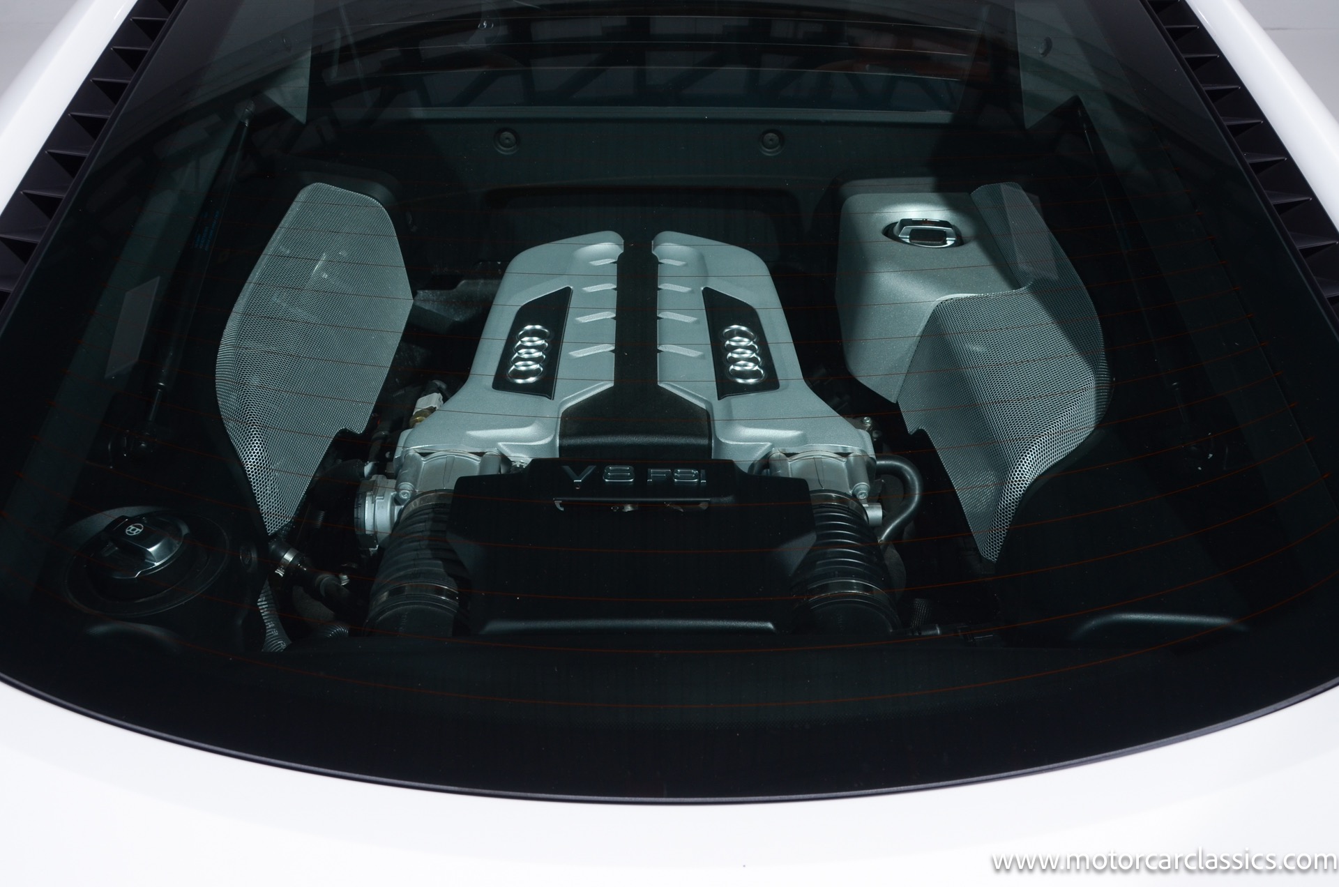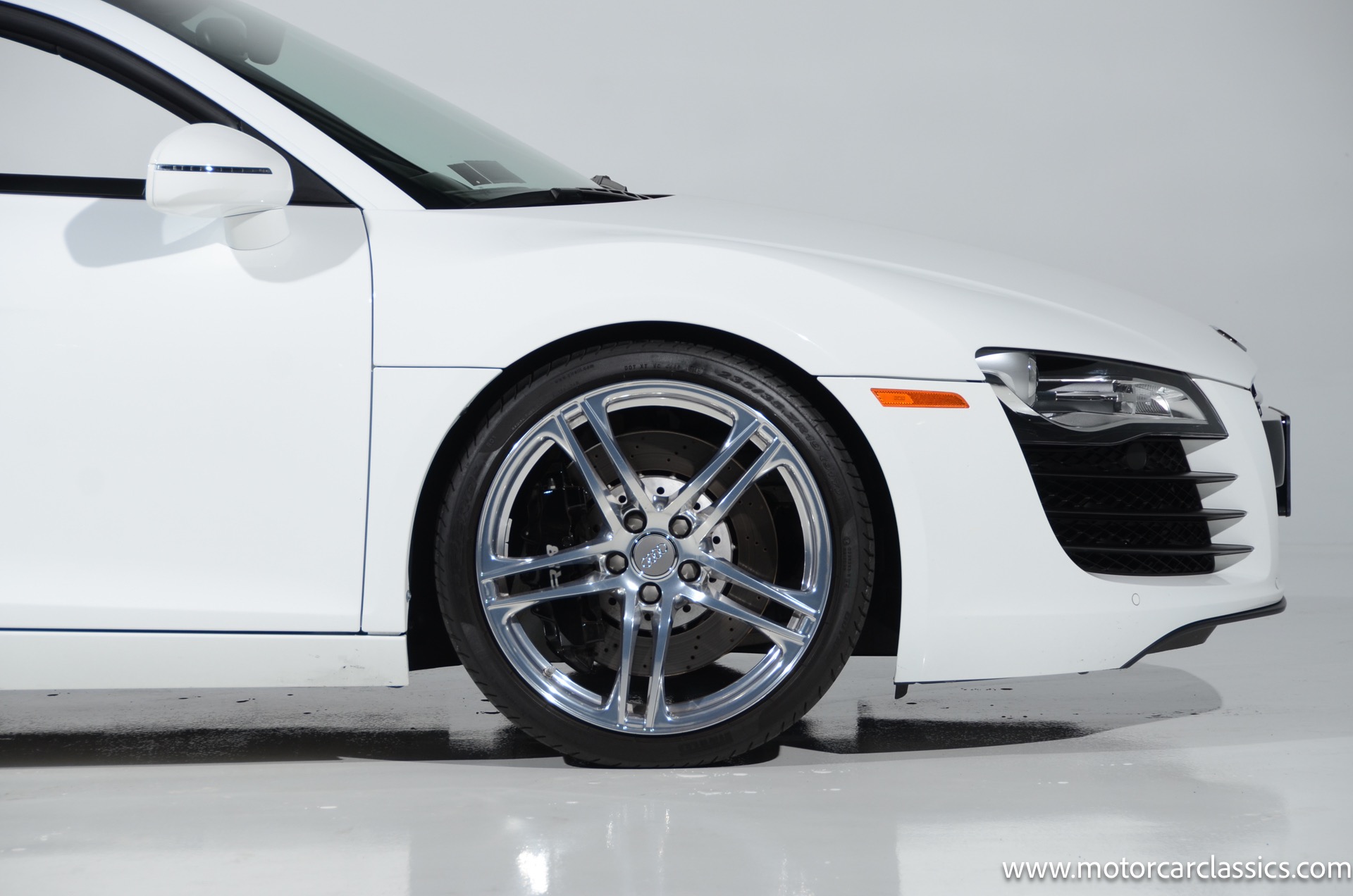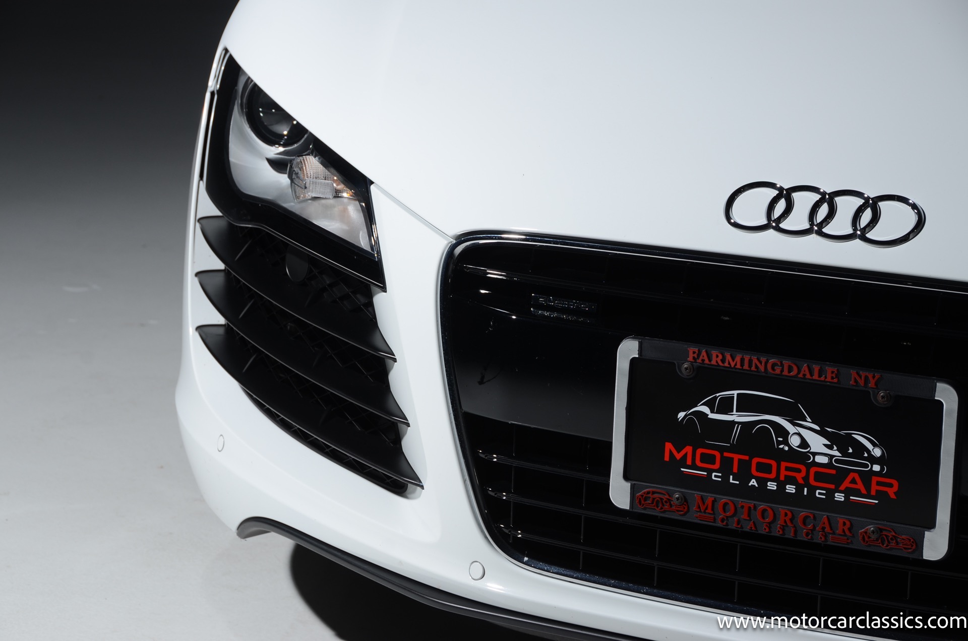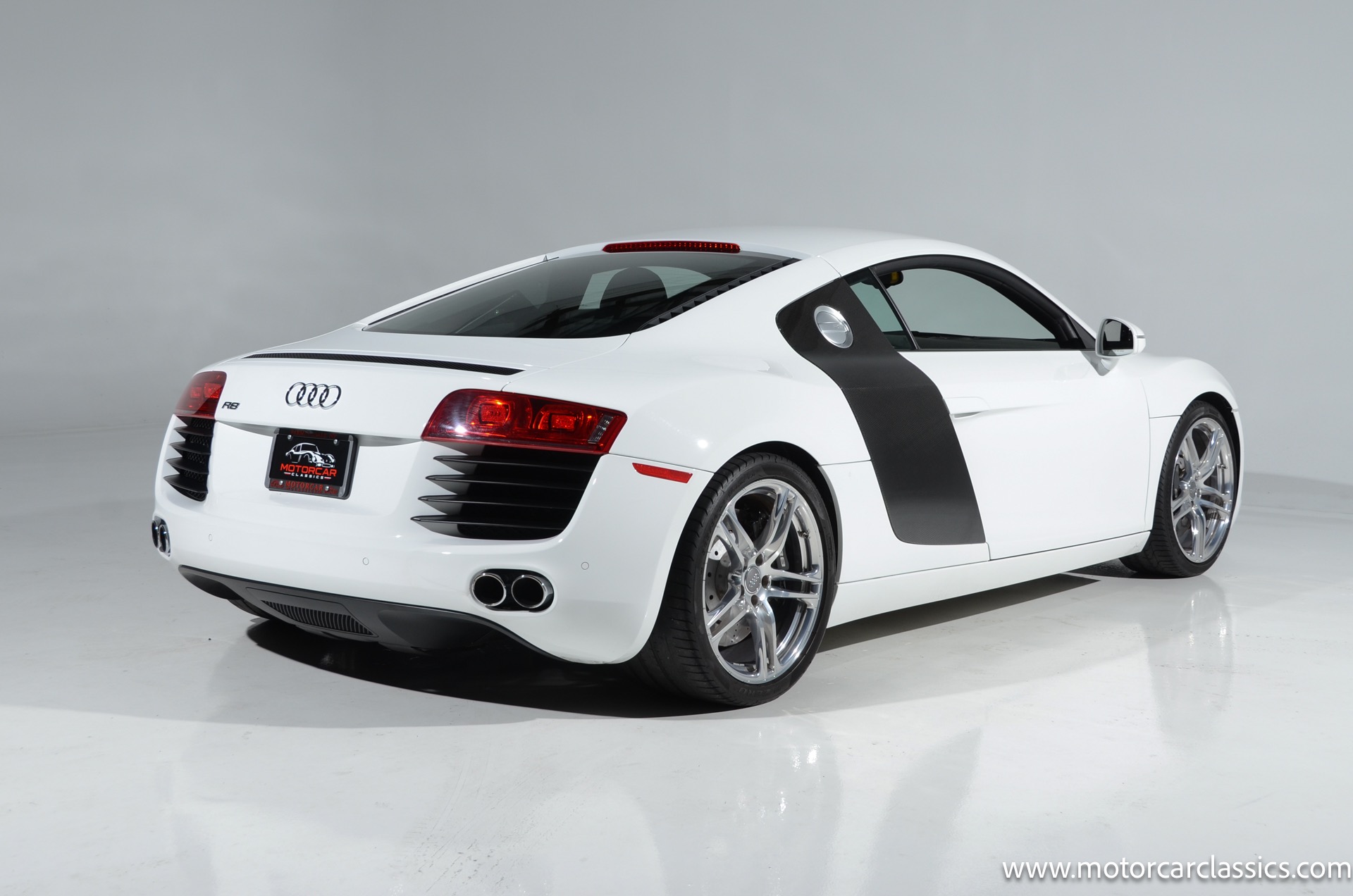 2009 Audi R8 Quattro for sale! Motorcar Classics invites you to experience the thrill of driving this stunning 2009 Audi R8, a renowned supercar that combines luxury with performance.Our R8 boasts a powerful 4.2L V8 engine, delivering an impressive 420 horsepower, backed by the very rare and desirable six-speed manual gearbox, ensuring exhilarating acceleration and a top-notch driving experience. With only 9,851 miles on the odometer, and an unblemished history, this R8 is in exceptional condition, showcasing its meticulous care and low usage. Dressed in an eye-catching Ibis White exterior, with luxurious Tuscan Brown Nappa leather interior, the car features a sleek and aerodynamic design that turns heads wherever it goes. The manual transmission enhances the driving experience, allowing enthusiasts to fully engage with the vehicle's capabilities. This 2009 Audi R8 is a user-friendly supercar combining Audi's incredible engineering and reliability, all-wheel Quattro drive, and sparkling performance. Don?t miss your chance to drive away in this iconic supercar that embodies the spirit of Audi's engineering prowess.