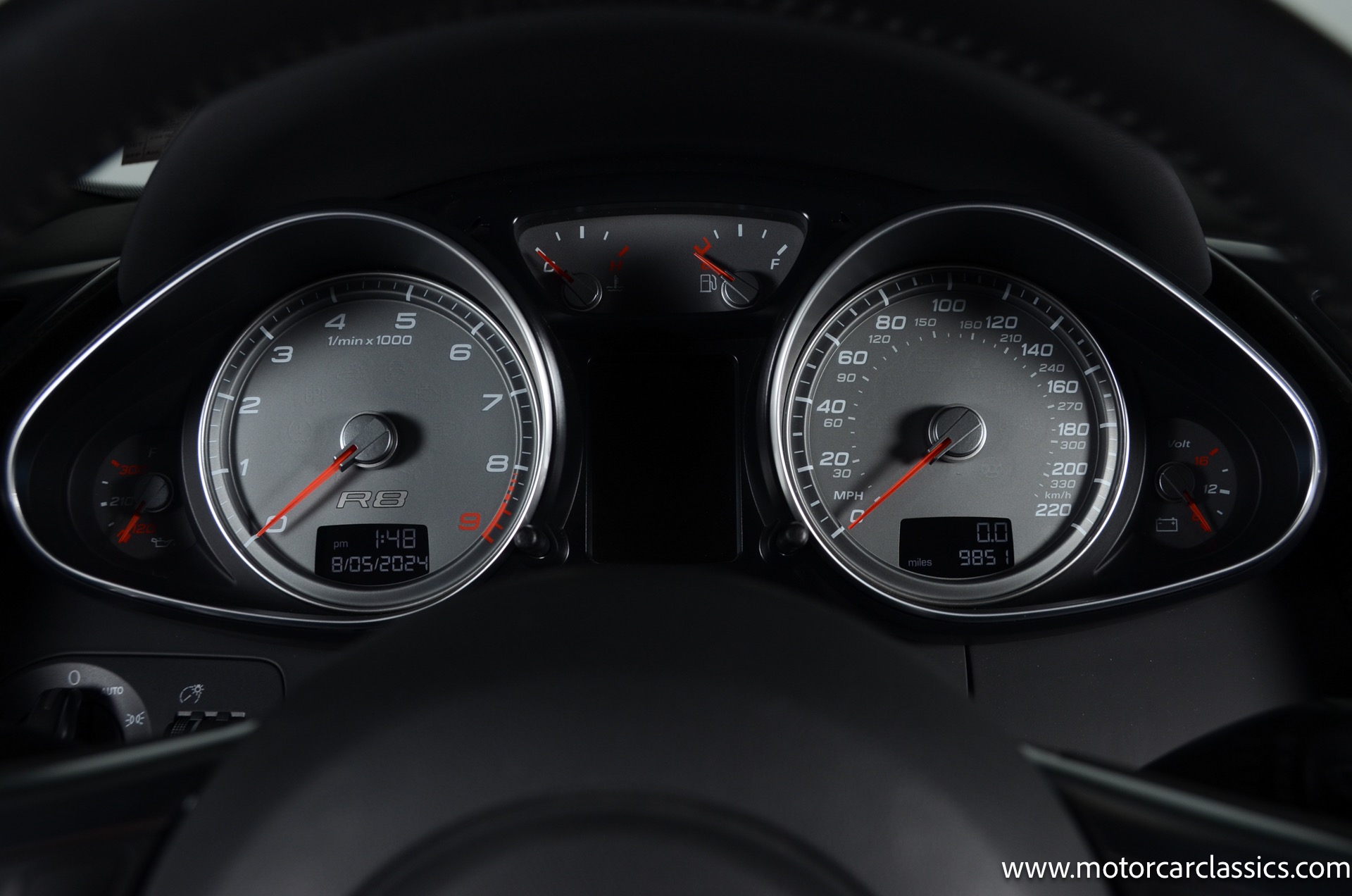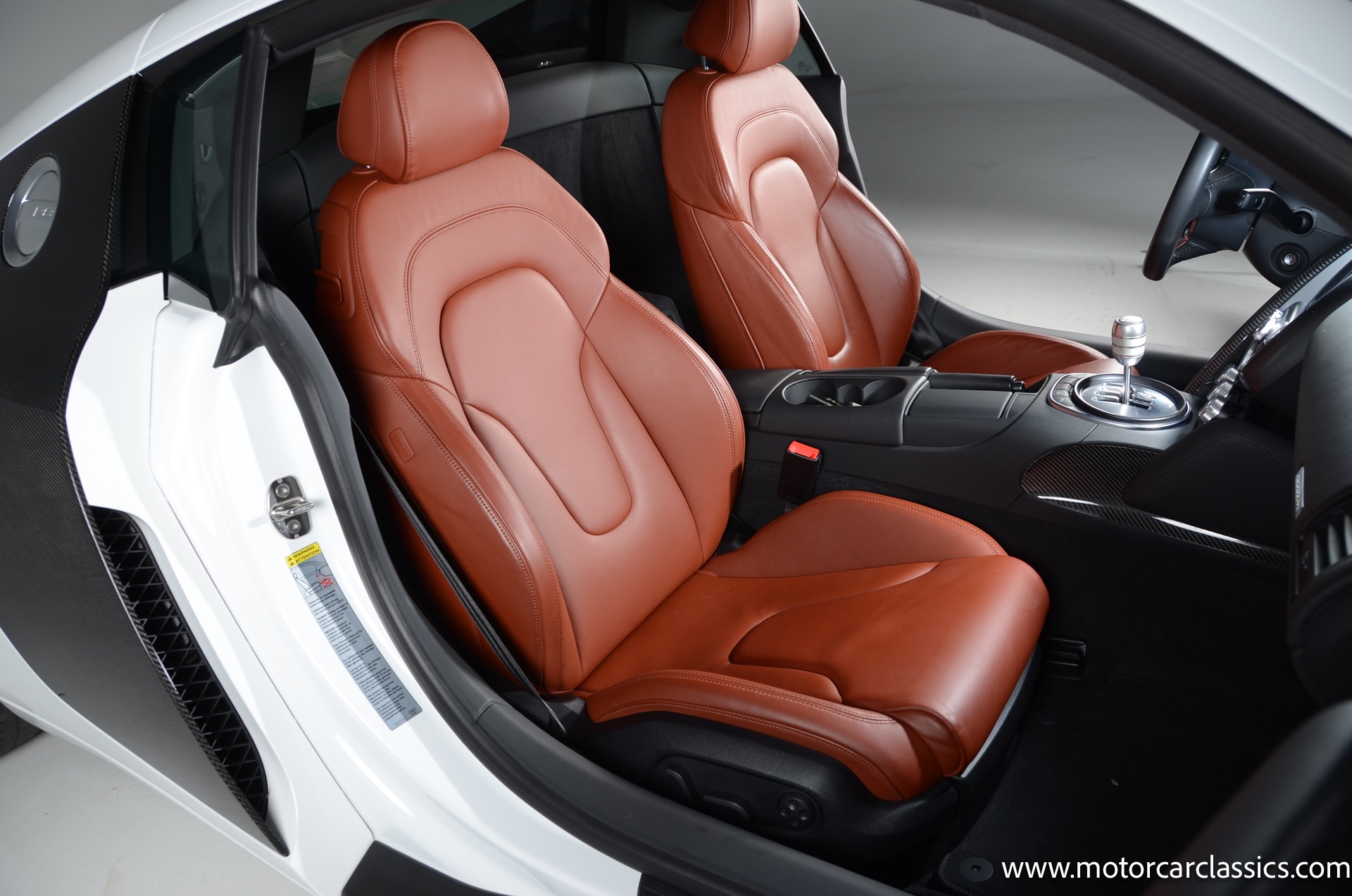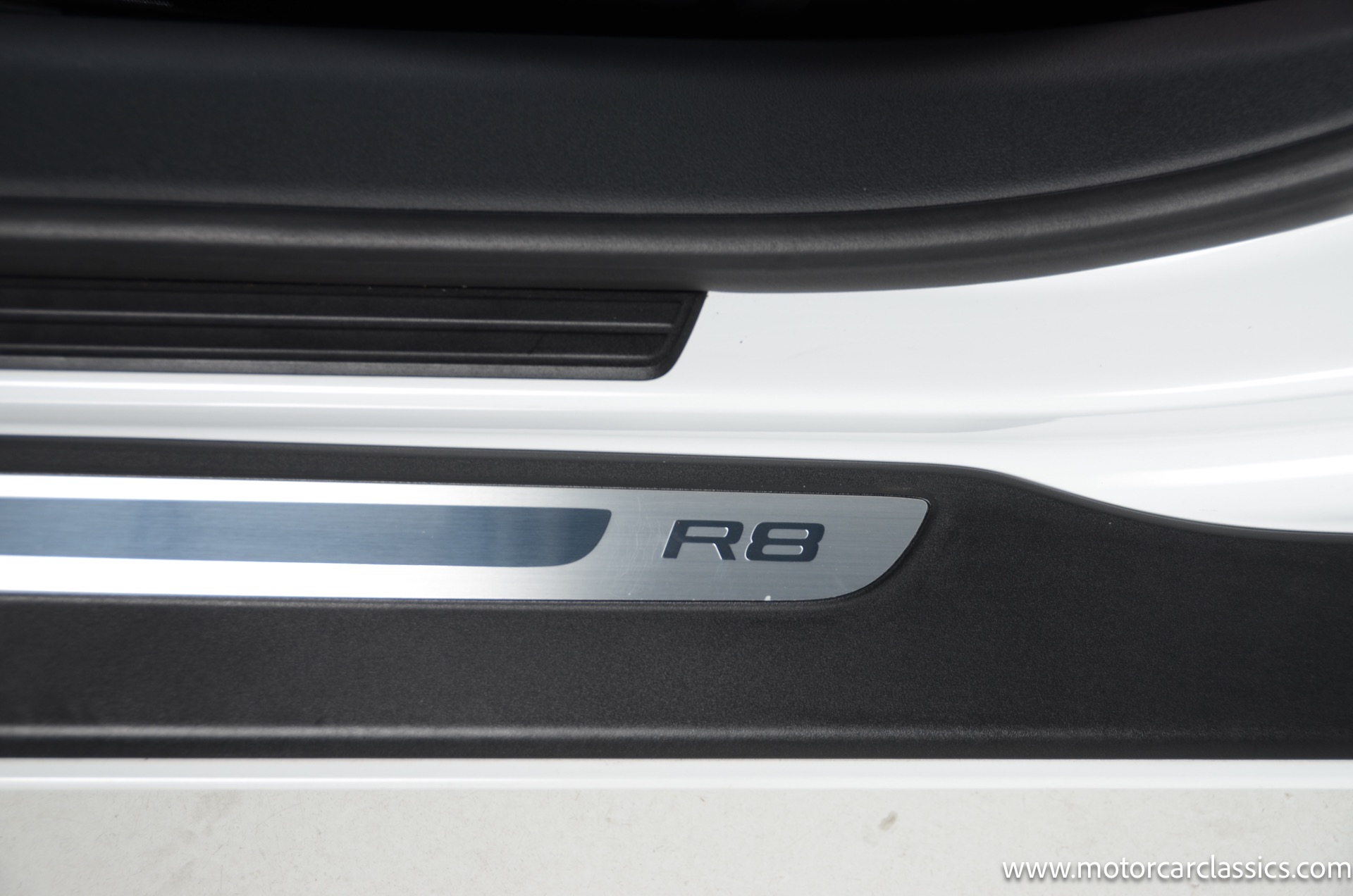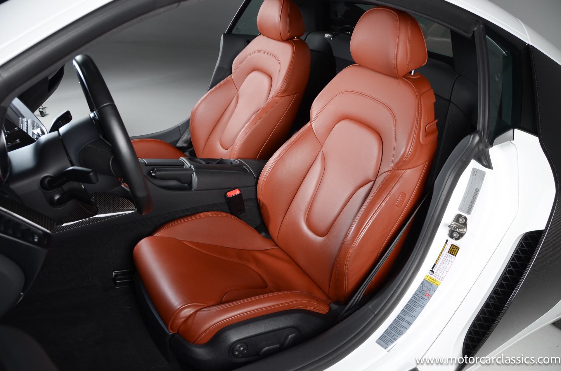 2009 Audi R8 Quattro for sale! Motorcar Classics invites you to experience the thrill of driving this stunning 2009 Audi R8, a renowned supercar that combines luxury with performance.Our R8 boasts a powerful 4.2L V8 engine, delivering an impressive 420 horsepower, backed by the very rare and desirable six-speed manual gearbox, ensuring exhilarating acceleration and a top-notch driving experience. With only 9,851 miles on the odometer, and an unblemished history, this R8 is in exceptional condition, showcasing its meticulous care and low usage. Dressed in an eye-catching Ibis White exterior, with luxurious Tuscan Brown Nappa leather interior, the car features a sleek and aerodynamic design that turns heads wherever it goes. The manual transmission enhances the driving experience, allowing enthusiasts to fully engage with the vehicle's capabilities. This 2009 Audi R8 is a user-friendly supercar combining Audi's incredible engineering and reliability, all-wheel Quattro drive, and sparkling performance. Don?t miss your chance to drive away in this iconic supercar that embodies the spirit of Audi's engineering prowess.