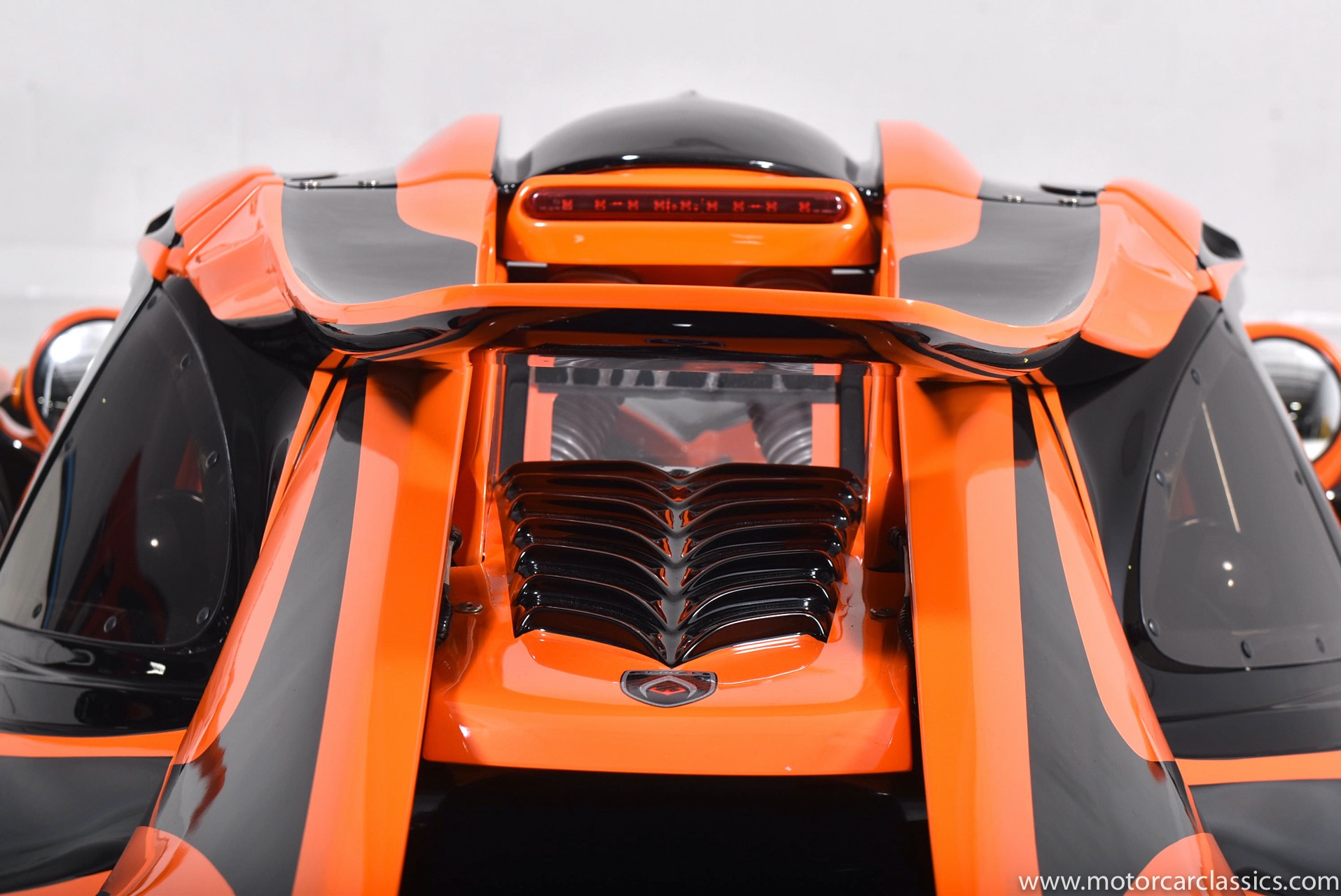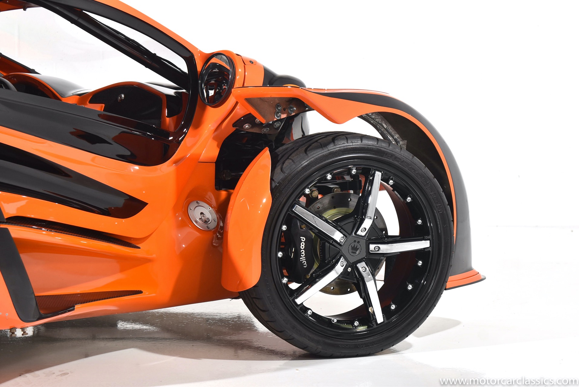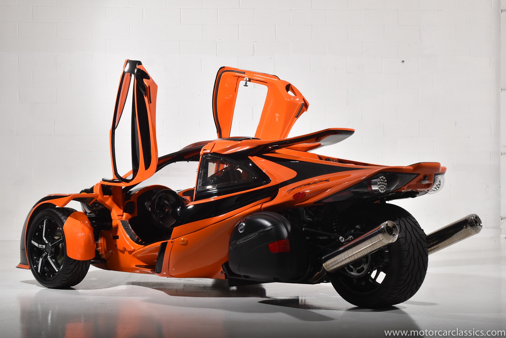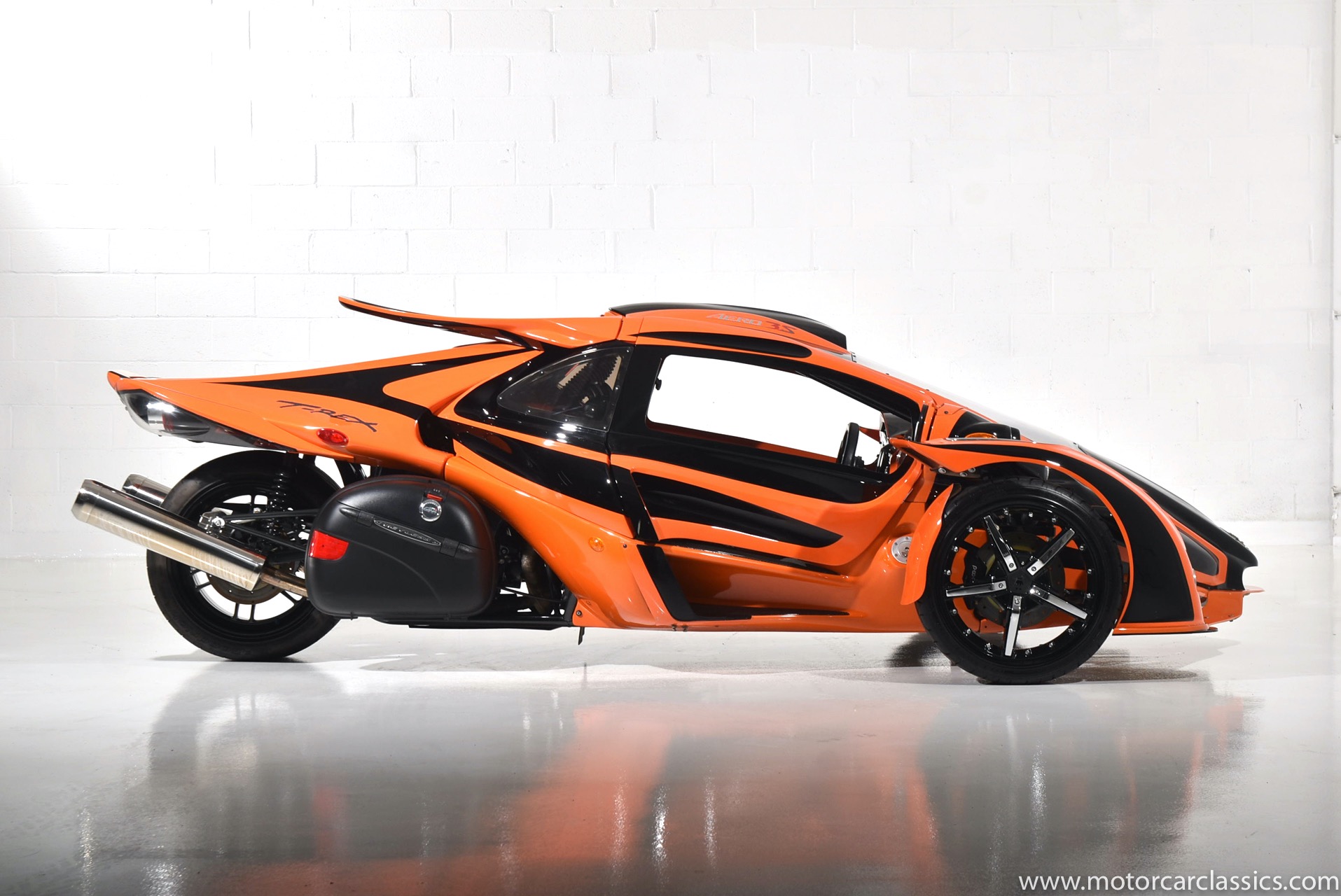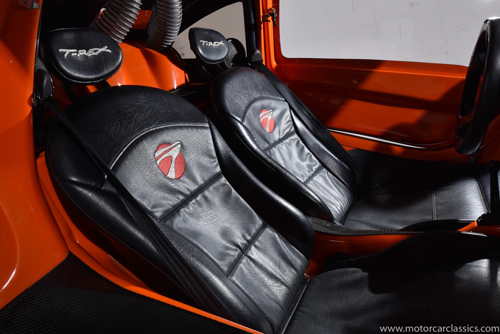 2009 Campagna T-Rex Aero 3S Scorpion for sale! Motorcar Classics is pleased to present this rare and exciting 2009 Campagna T-Rex Aero 3S Scorpion presented in Volcanic Orange Pearl with black interior. With only 6,400 miles, this custom-built trike is as new. The Campanga T-Rex is a true racing inspired machine. It has a 6-speed sequential gearbox with reverse, racing pedals and handling that will make you feel that you are on rails. All of the performance is wrapped in a nice package that allows two people side-by-side seating, like in a car.