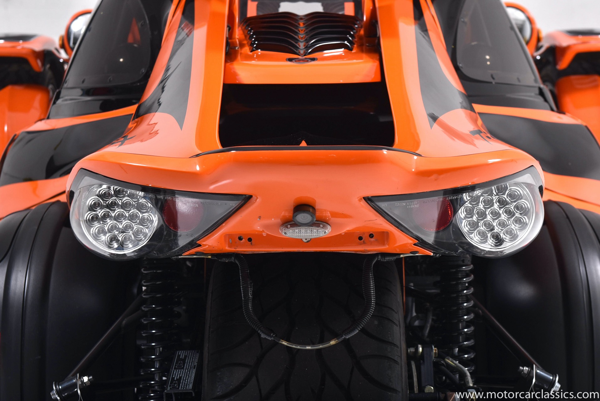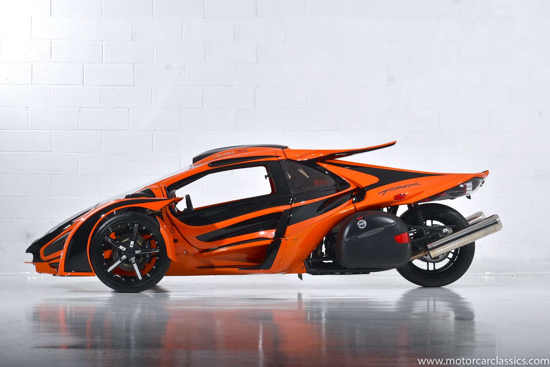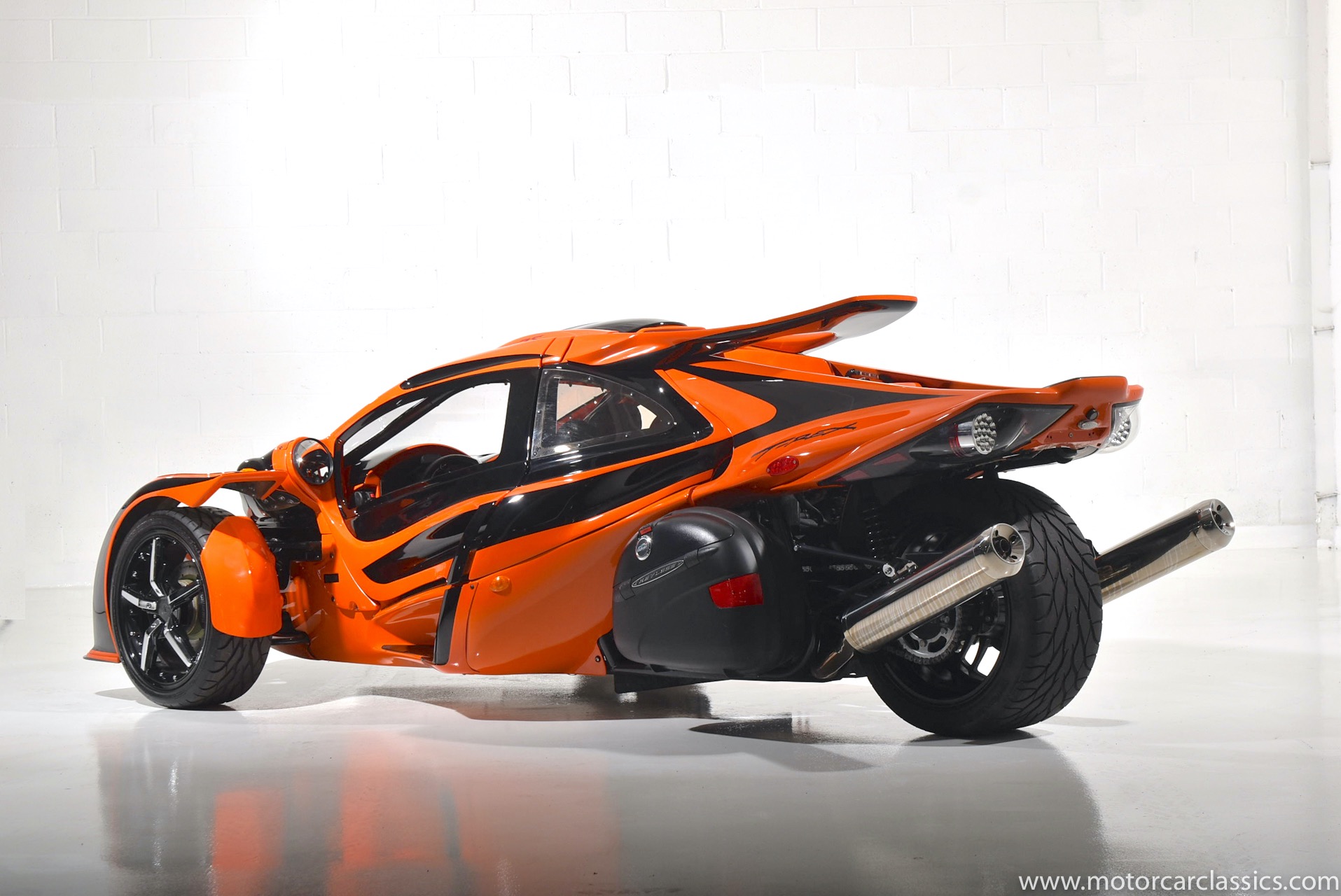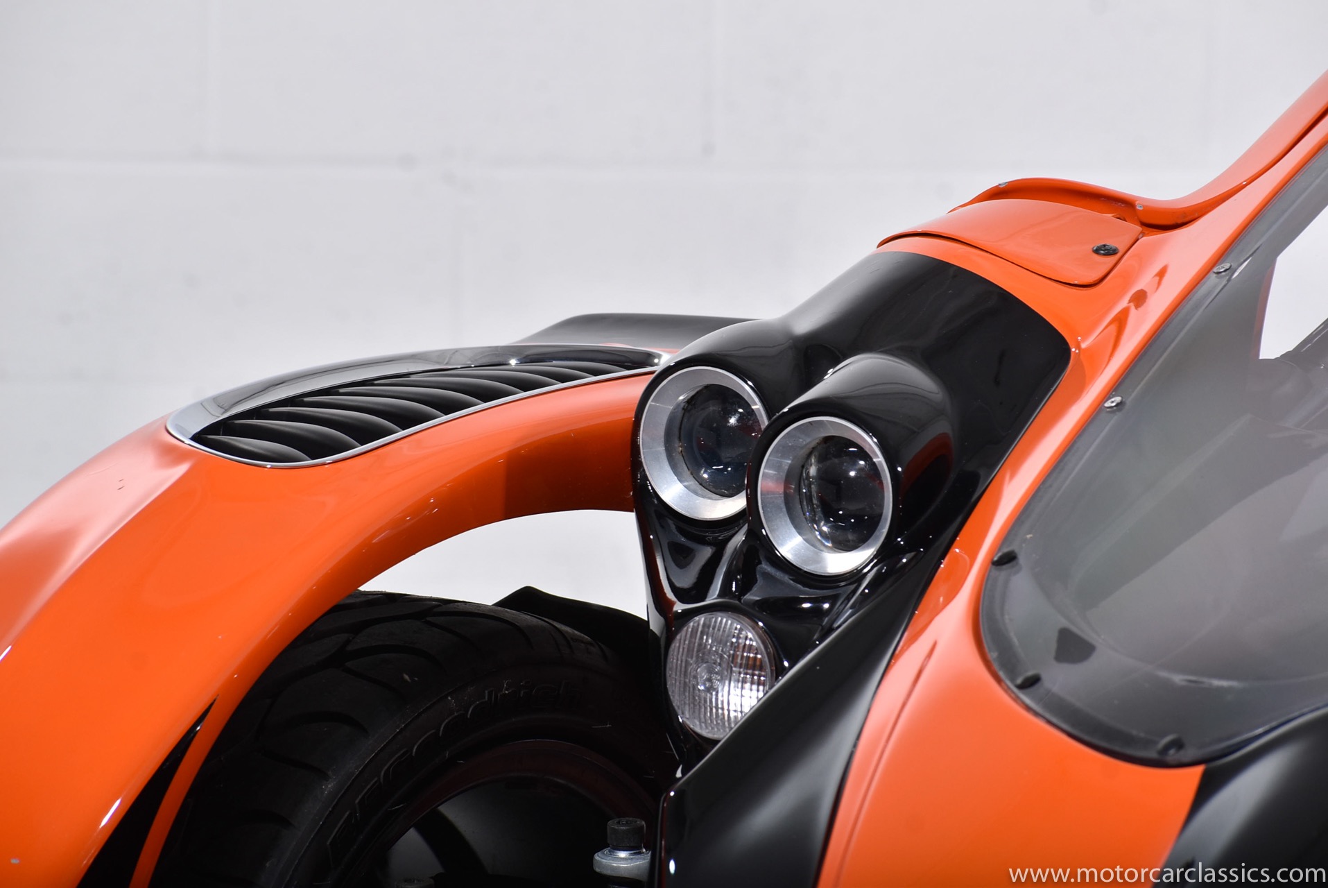 2009 Campagna T-Rex Aero 3S Scorpion for sale! Motorcar Classics is pleased to present this rare and exciting 2009 Campagna T-Rex Aero 3S Scorpion presented in Volcanic Orange Pearl with black interior. With only 6,400 miles, this custom-built trike is as new. The Campanga T-Rex is a true racing inspired machine. It has a 6-speed sequential gearbox with reverse, racing pedals and handling that will make you feel that you are on rails. All of the performance is wrapped in a nice package that allows two people side-by-side seating, like in a car.