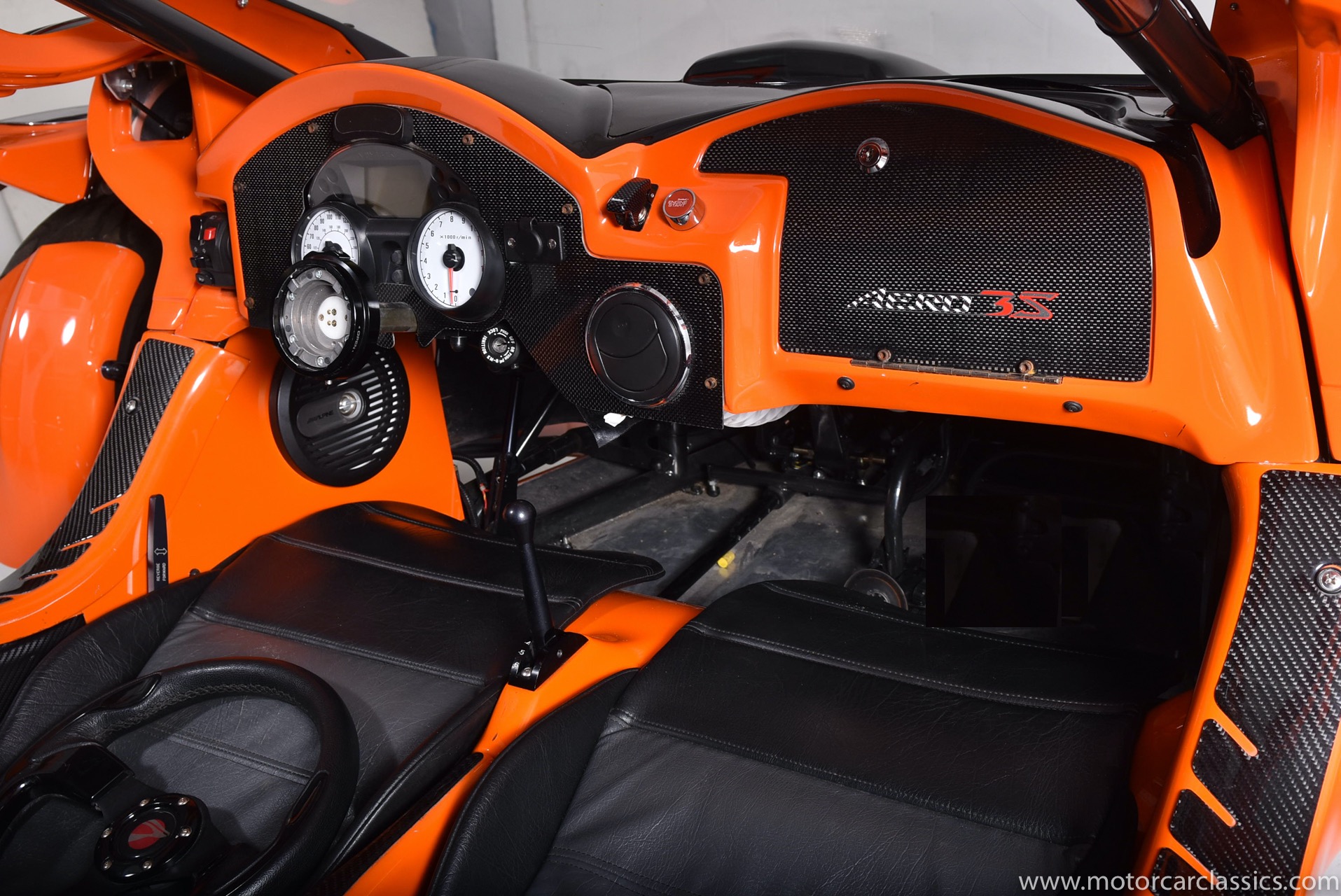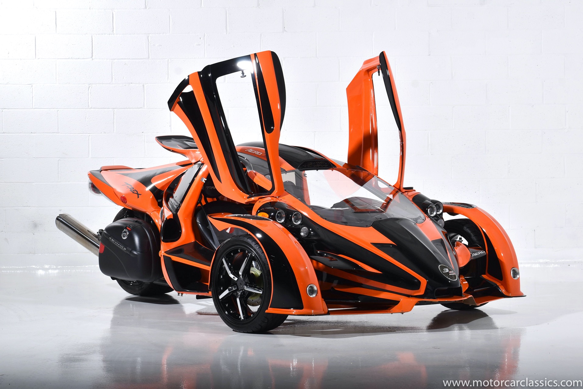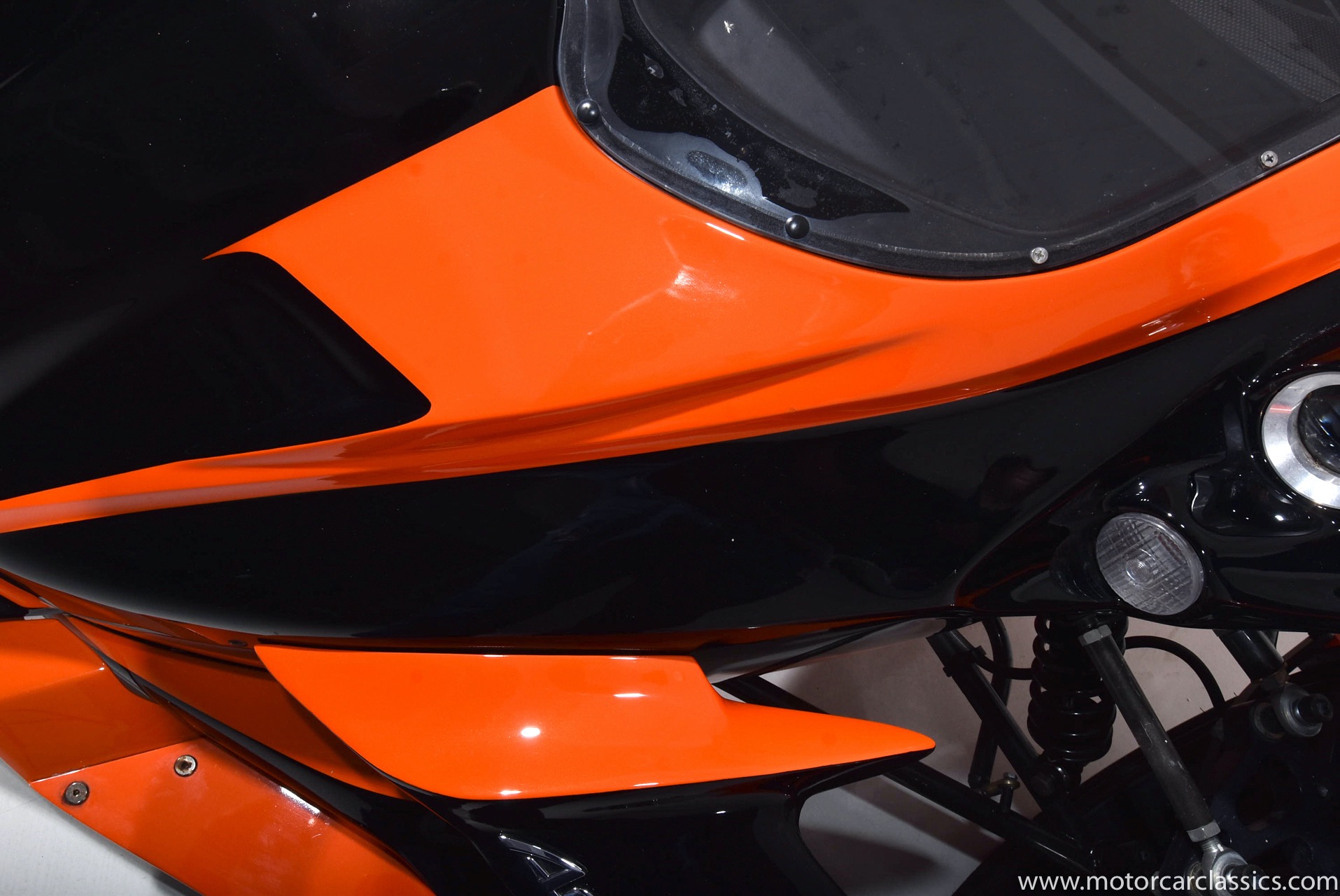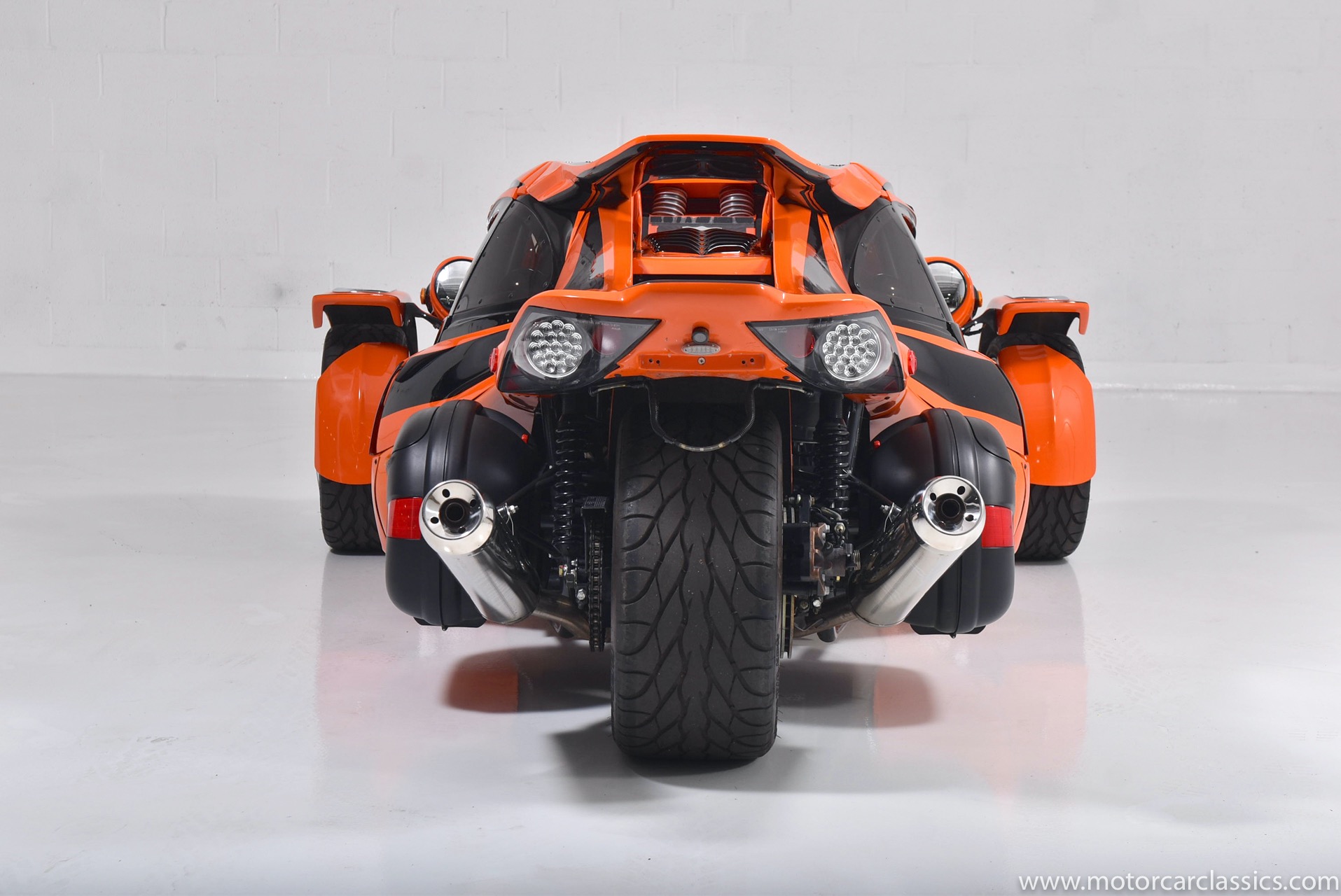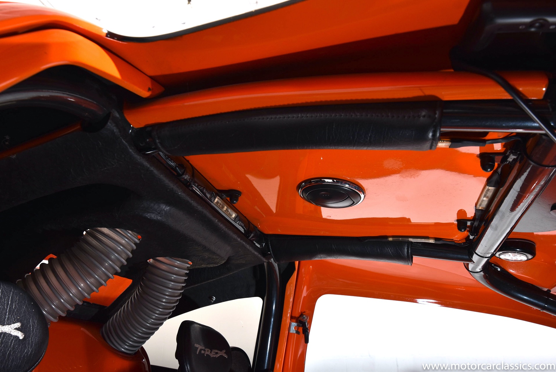 2009 Campagna T-Rex Aero 3S Scorpion for sale! Motorcar Classics is pleased to present this rare and exciting 2009 Campagna T-Rex Aero 3S Scorpion presented in Volcanic Orange Pearl with black interior. With only 6,400 miles, this custom-built trike is as new. The Campanga T-Rex is a true racing inspired machine. It has a 6-speed sequential gearbox with reverse, racing pedals and handling that will make you feel that you are on rails. All of the performance is wrapped in a nice package that allows two people side-by-side seating, like in a car.