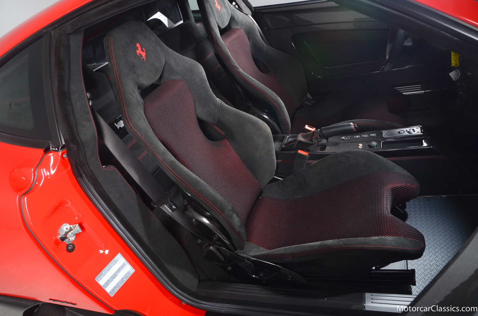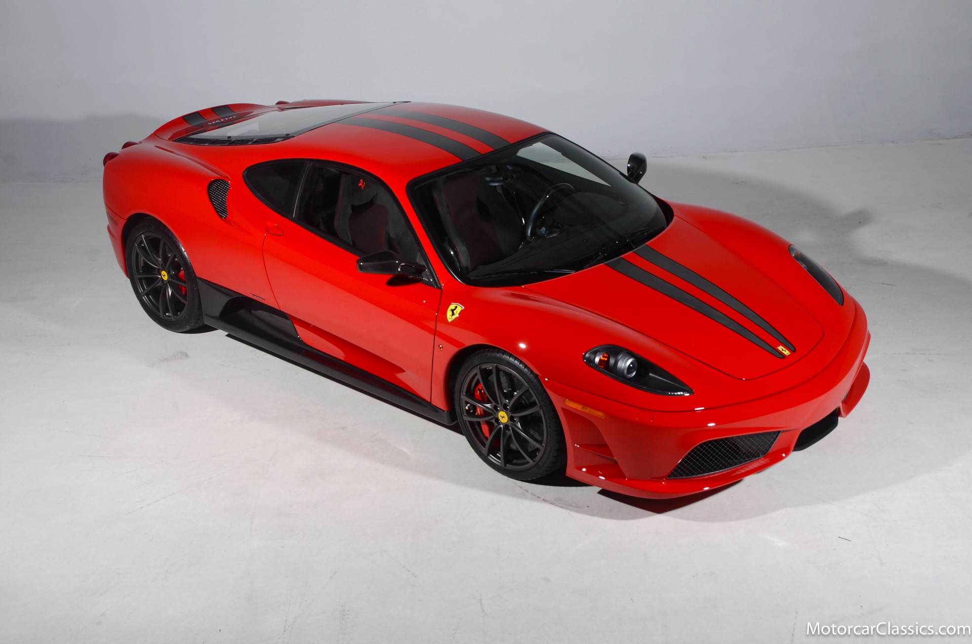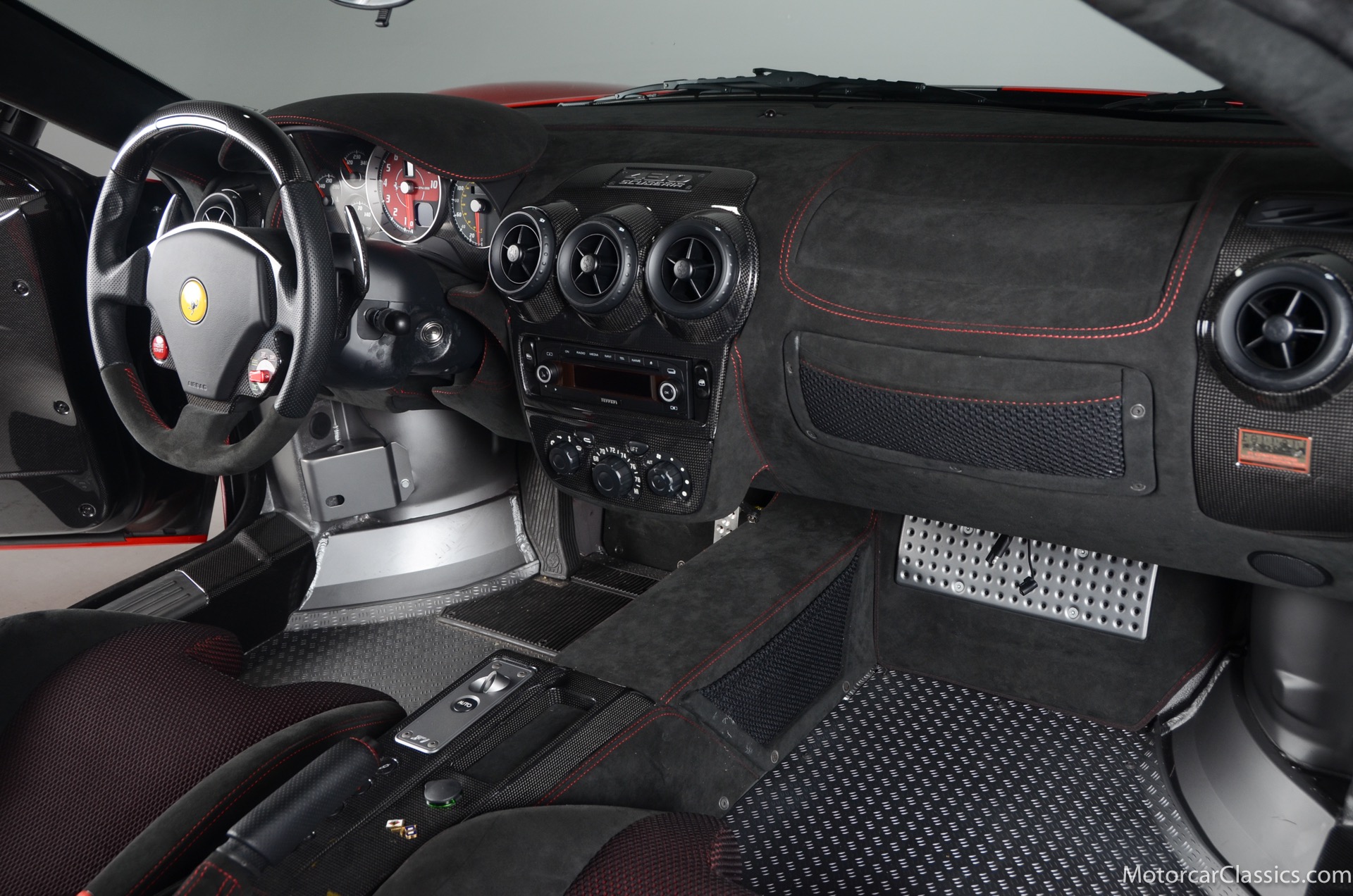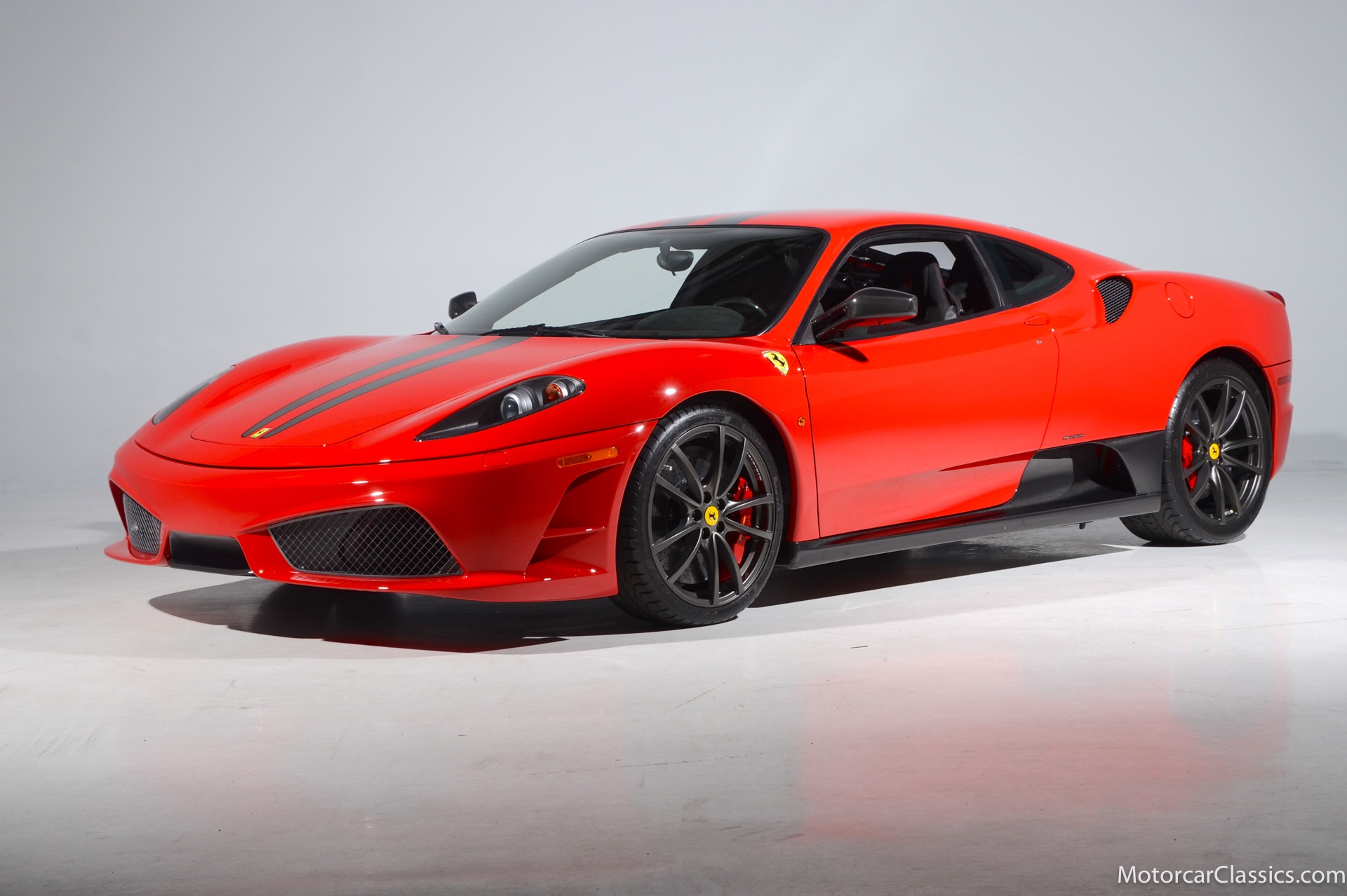 2009 Ferrari 430 Scuderia for sale! Motorcar Classics is pleased to offer this stunning 430 Scuderia presented in Rosso Corsa with black Alcantara interior and gray racing stripe. 1-owner car from new with only 1200 miles! Clean Carfax and title. 4.3L V8 503HP with a 6-speed manual electric gear box. This car has been meticulously maintained and is in near mint condition. Options include: Carbon ceramic brakes, power windows, carbon fiber steering wheel with LEDS, radio nav system + Bluetooth, red brake calipers, dedication plate in silver, Alcantara upholstery, Ferrari ipod, racing stipe and more!