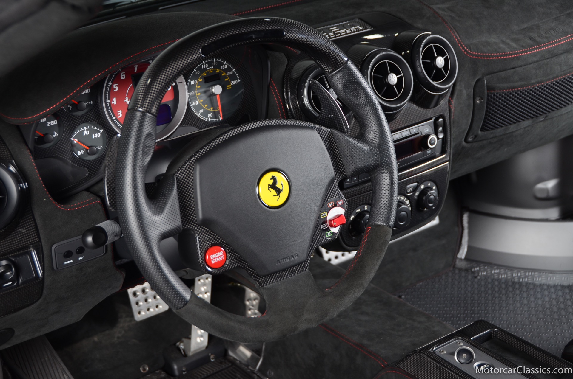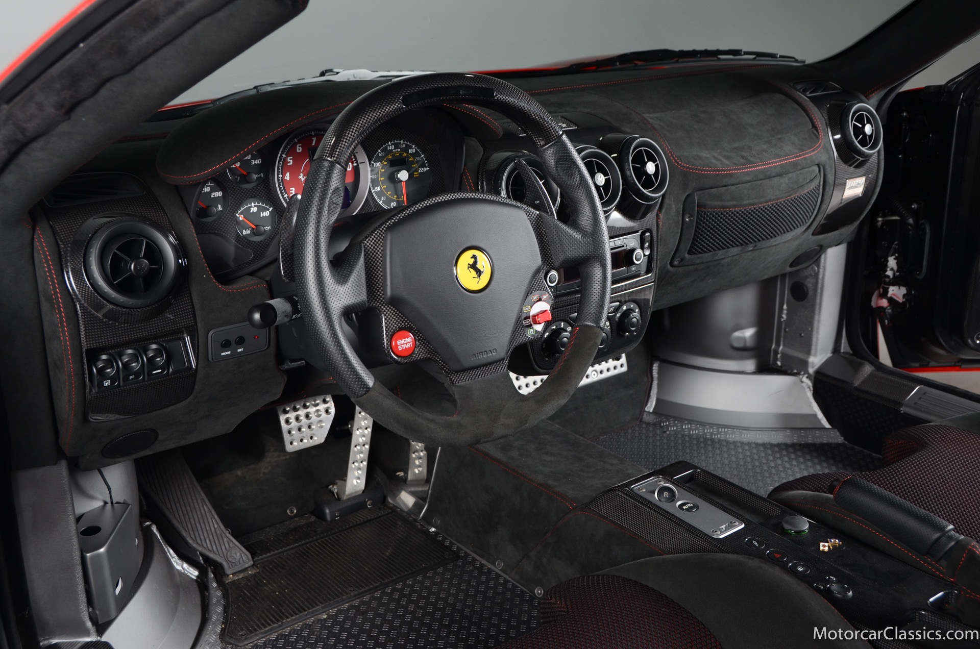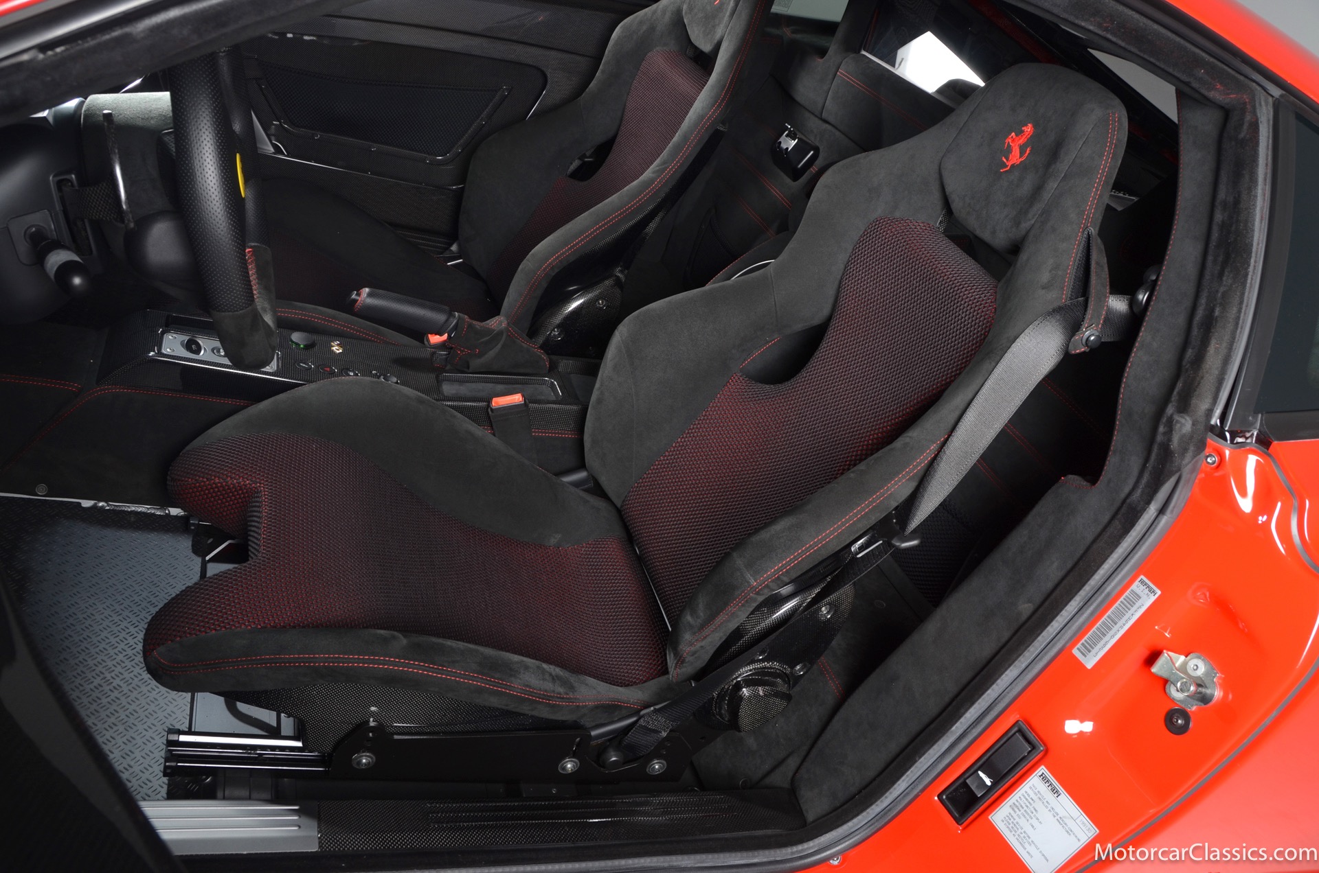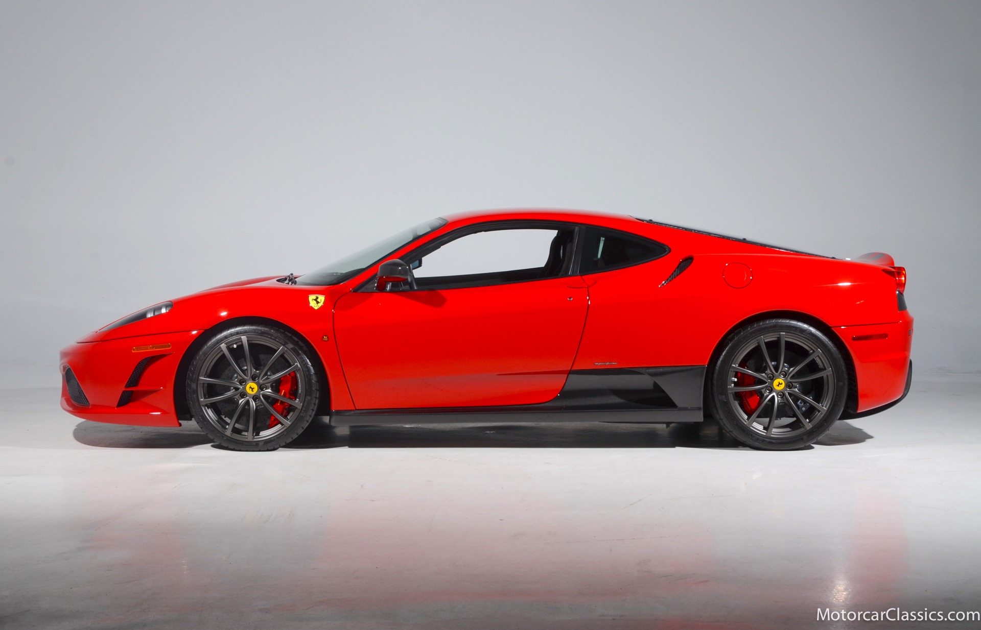 2009 Ferrari 430 Scuderia for sale! Motorcar Classics is pleased to offer this stunning 430 Scuderia presented in Rosso Corsa with black Alcantara interior and gray racing stripe. 1-owner car from new with only 1200 miles! Clean Carfax and title. 4.3L V8 503HP with a 6-speed manual electric gear box. This car has been meticulously maintained and is in near mint condition. Options include: Carbon ceramic brakes, power windows, carbon fiber steering wheel with LEDS, radio nav system + Bluetooth, red brake calipers, dedication plate in silver, Alcantara upholstery, Ferrari ipod, racing stipe and more!