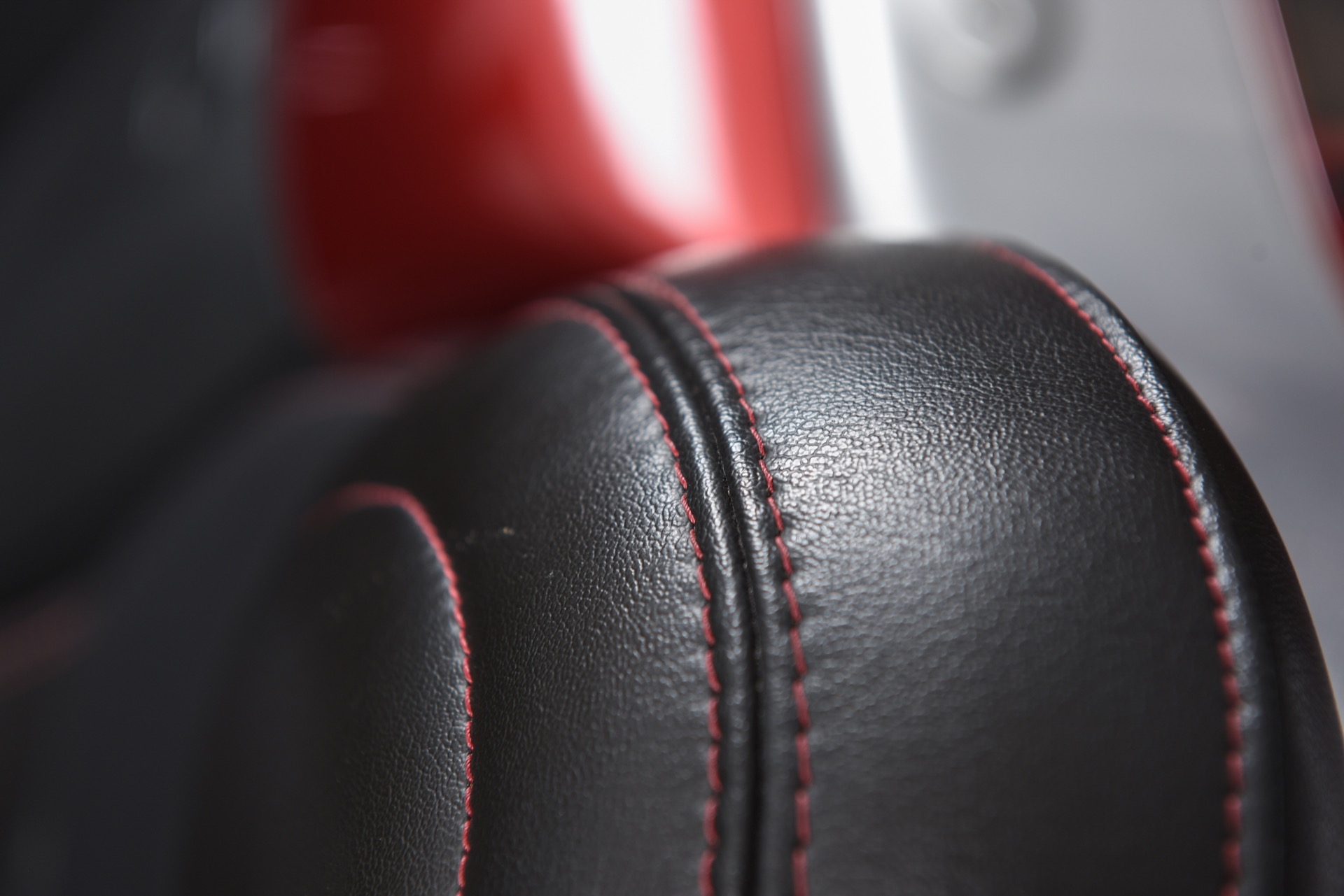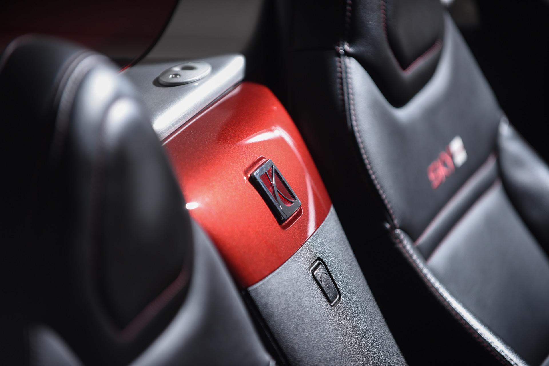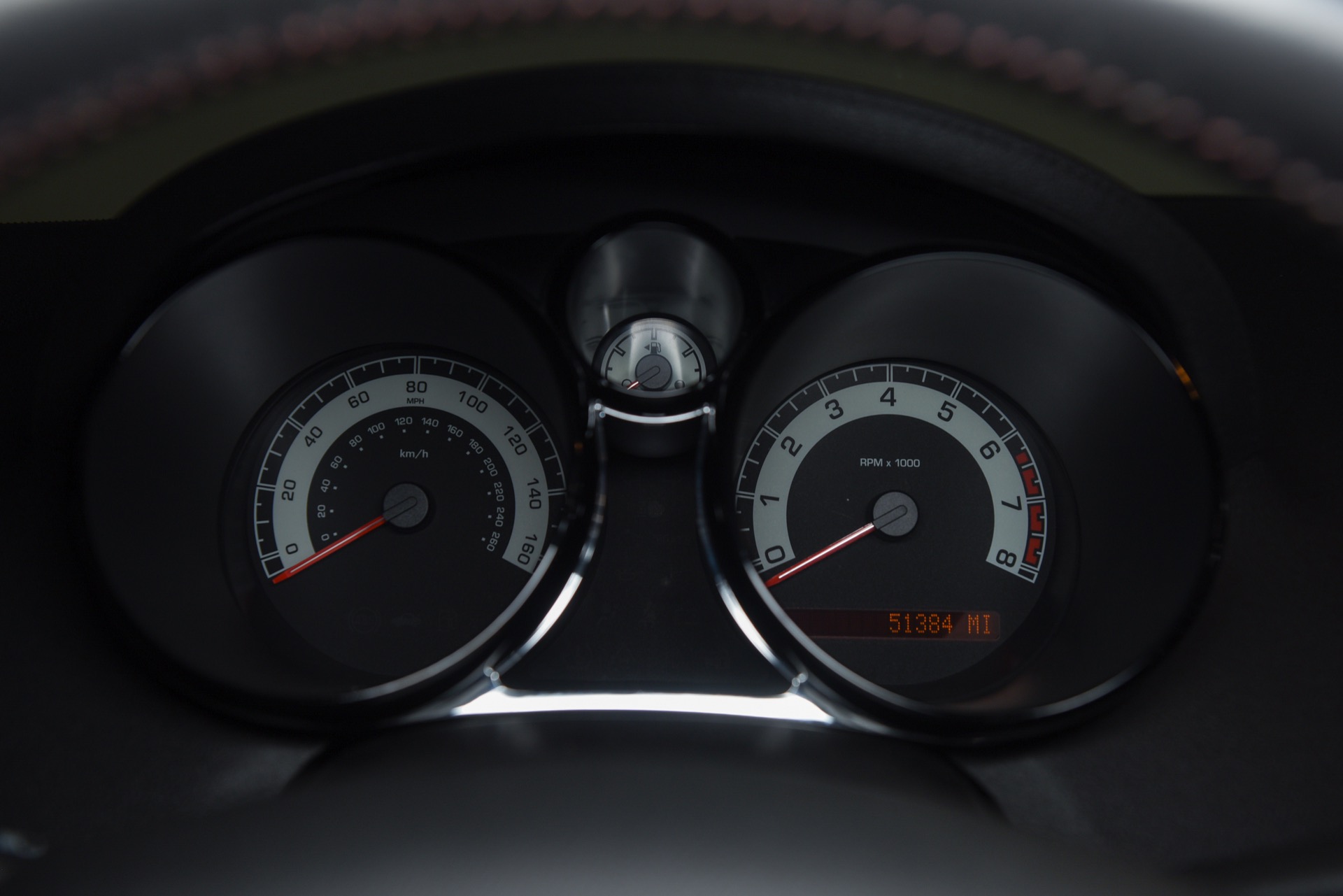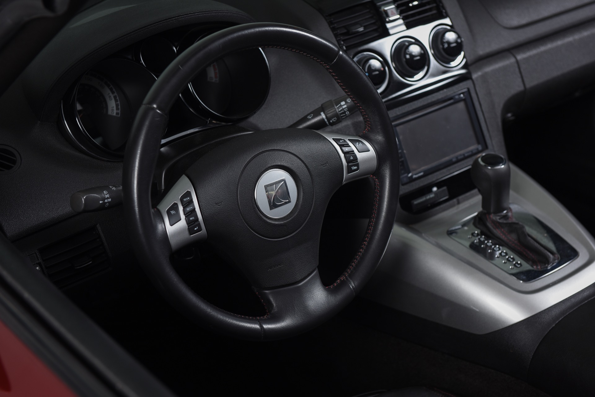 While the standard Sky makes do with a 2.4-liter four-cylinder delivering 177 horsepower, the Red Line is powered by the optional 2.0-liter turbocharged four cylinder that pumps out a screaming 260 horsepower with very little turbo lag. Our car features the user-friendly 5-speed automatic gearbox which is well-suited to the added Turbo power. The Red Line model also features a firmer suspension setting, dual chrome-tipped exhaust, as well as its own interior enhancements, such as Red Line-specific instruments (including a digital boost gauge), metallic sill plates, and stainless steel trim. Our car, however, is the range-topping Ruby Red Limited Edition car which perfectly describes the distinctive interior color and adds new split-spoke sport wheels and a sport stripe. Contemporary road tests show 0-60 times in the 5.5 to 5.8 second range, and the Red Line is rated at 19 mpg city and 26 mpg highway with the automatic transmission.