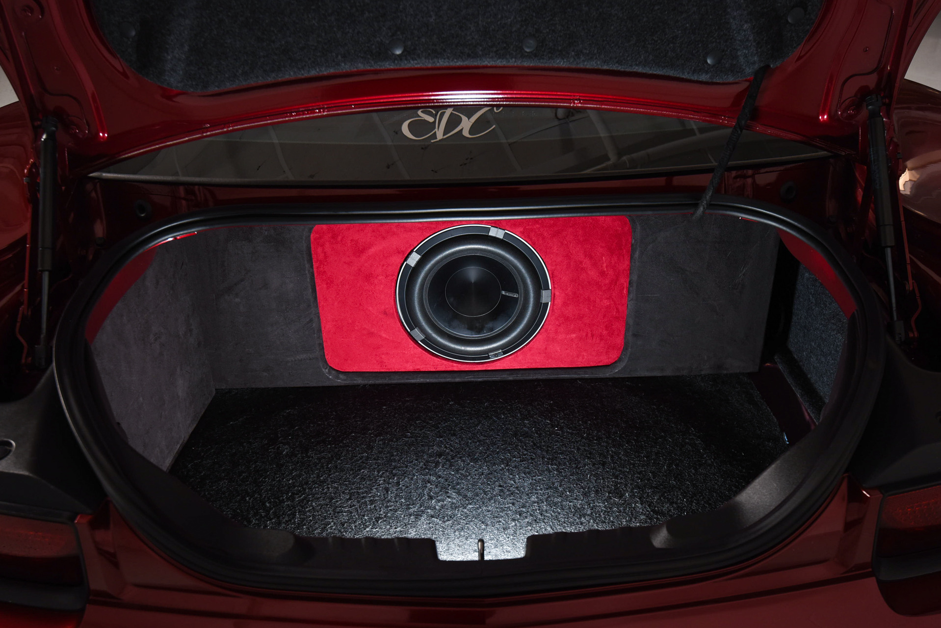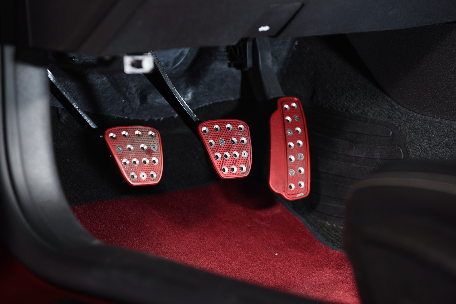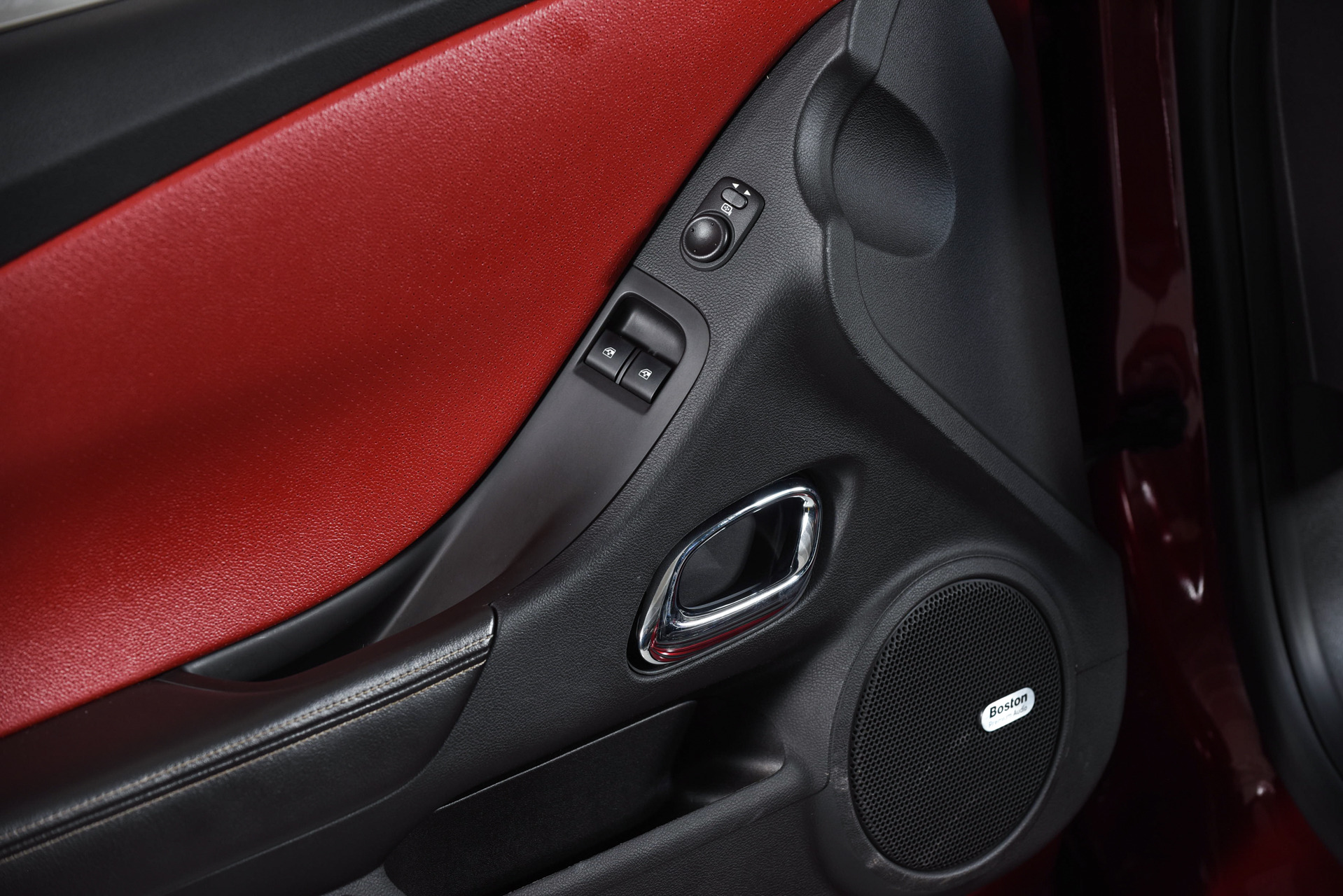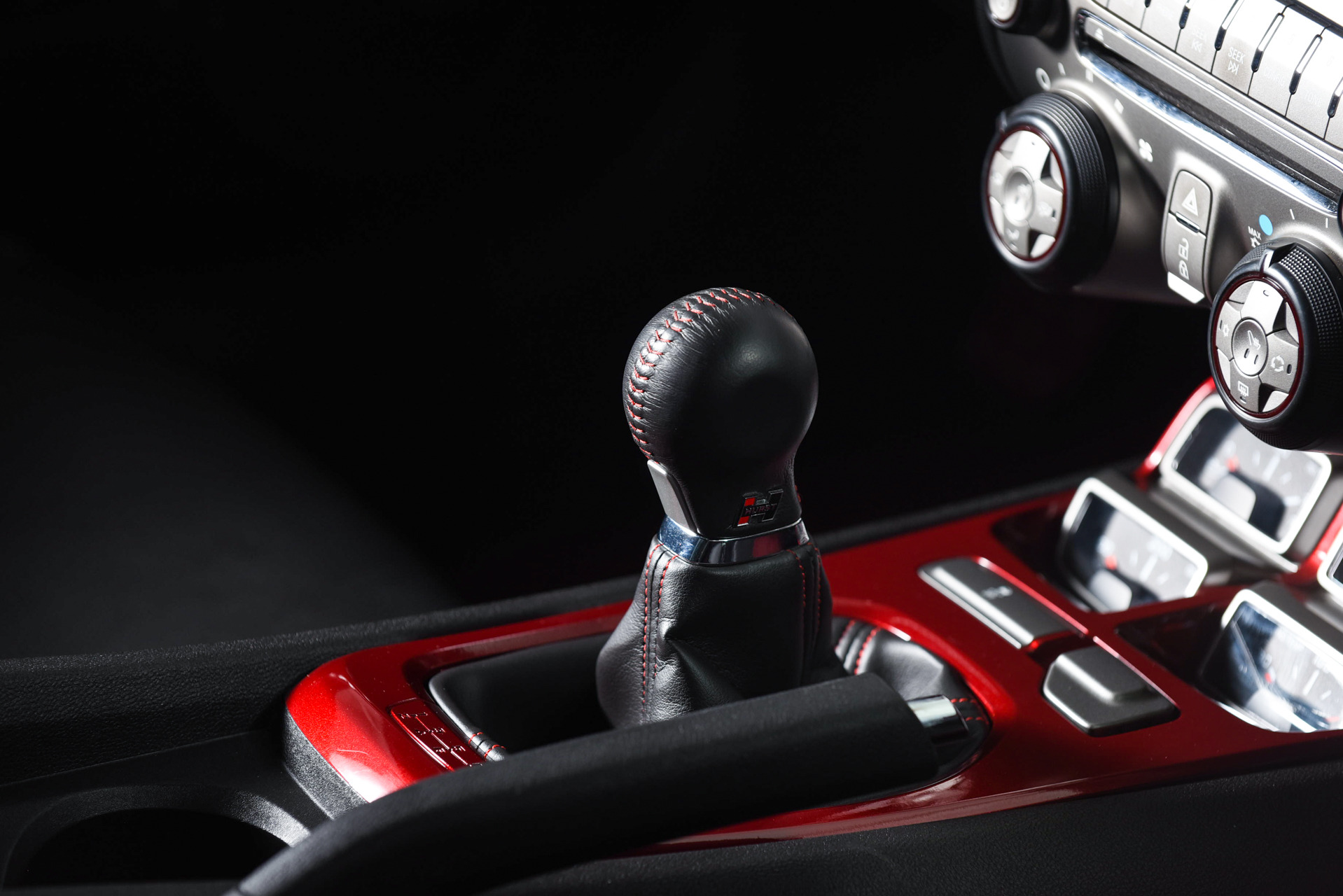 Custom red leather perforated interior accents