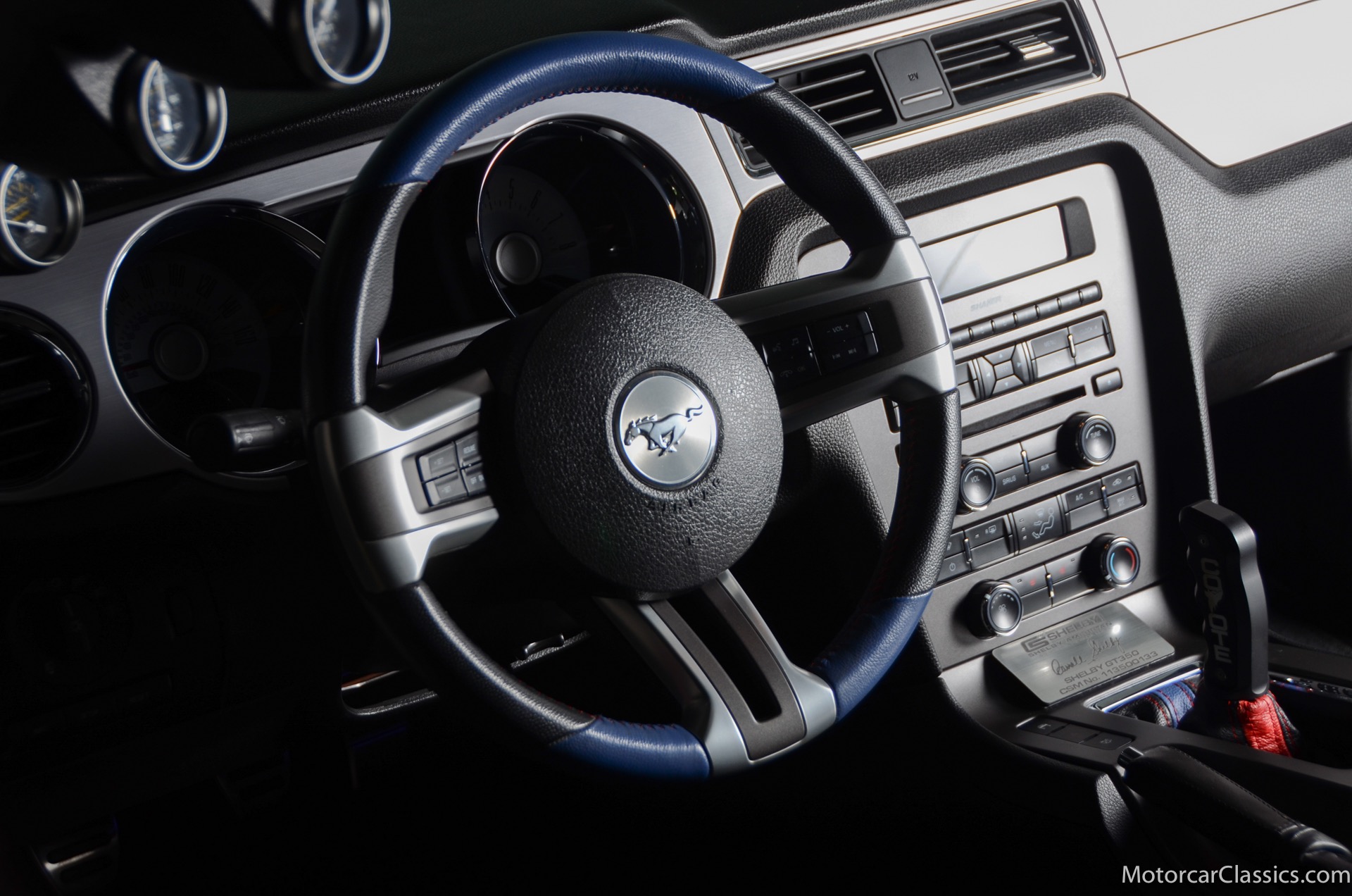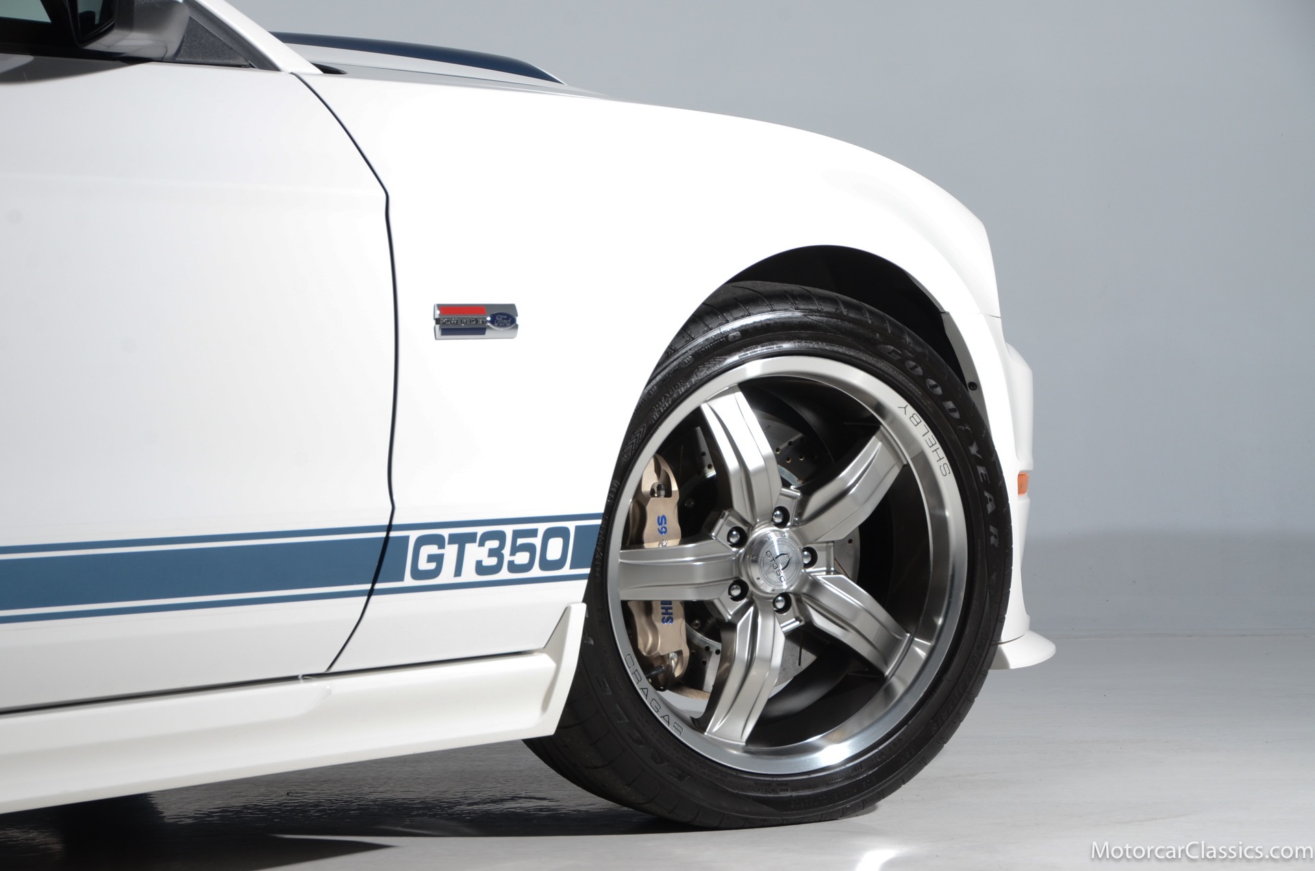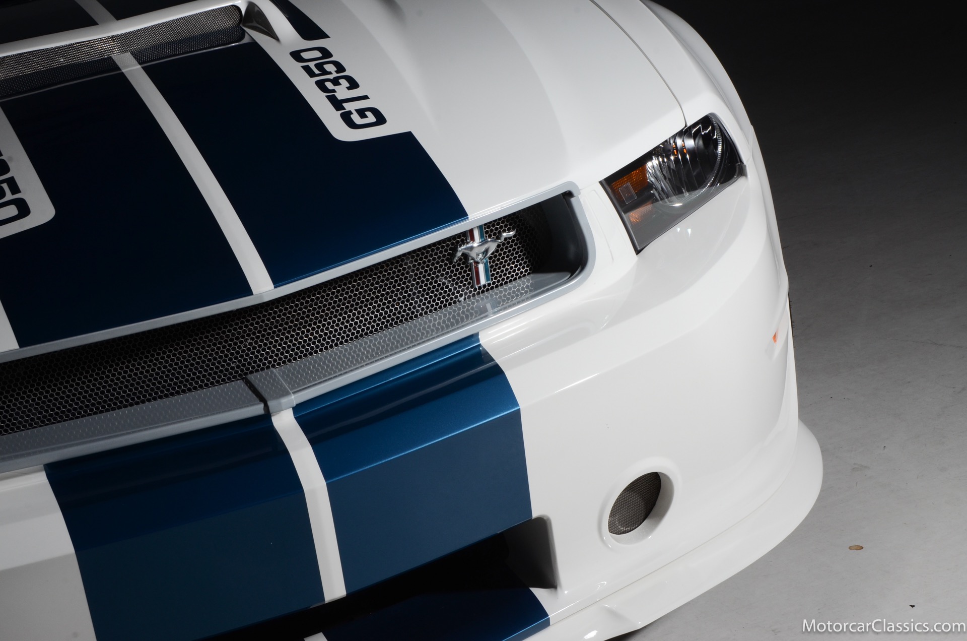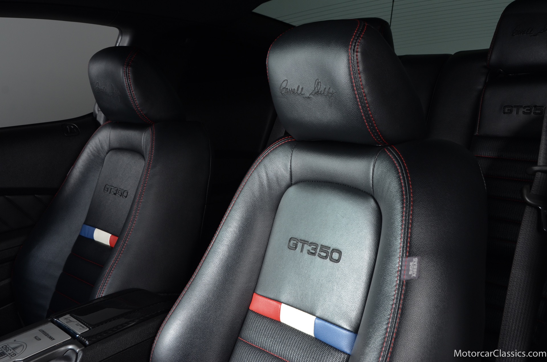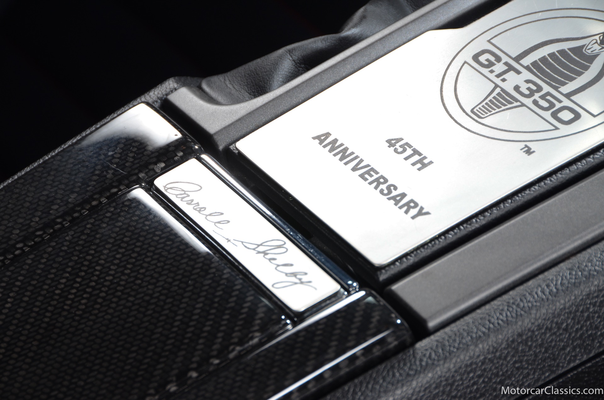 2011 45th Anniversary Shelby GT350 for sale! Finished in beautiful Performance white with painted Guardsman Blue over-the-top and side stripes and custom interior upgrades from Shelby. The upgrades are more than skin deep, power comes from a Whipple supercharged 5.0 liter V-8 with 3 power levels available, 420HP, 525HP and 545HP. Driven just 6,092 miles from new, this beautifully preserved example is now available for sale at Motorcar Classics. Additional upgrades from Shelby over the standard 45th Anniversary GT350's are as follows: Shelby/Ford Racing Polished Whipple supercharger, Shelby/Baer 6 piston rear brake kit, Watts link rear suspension, Shelby/Kicker premium sound system, Painted racing stripes(Full), Customer interior Upgrade.