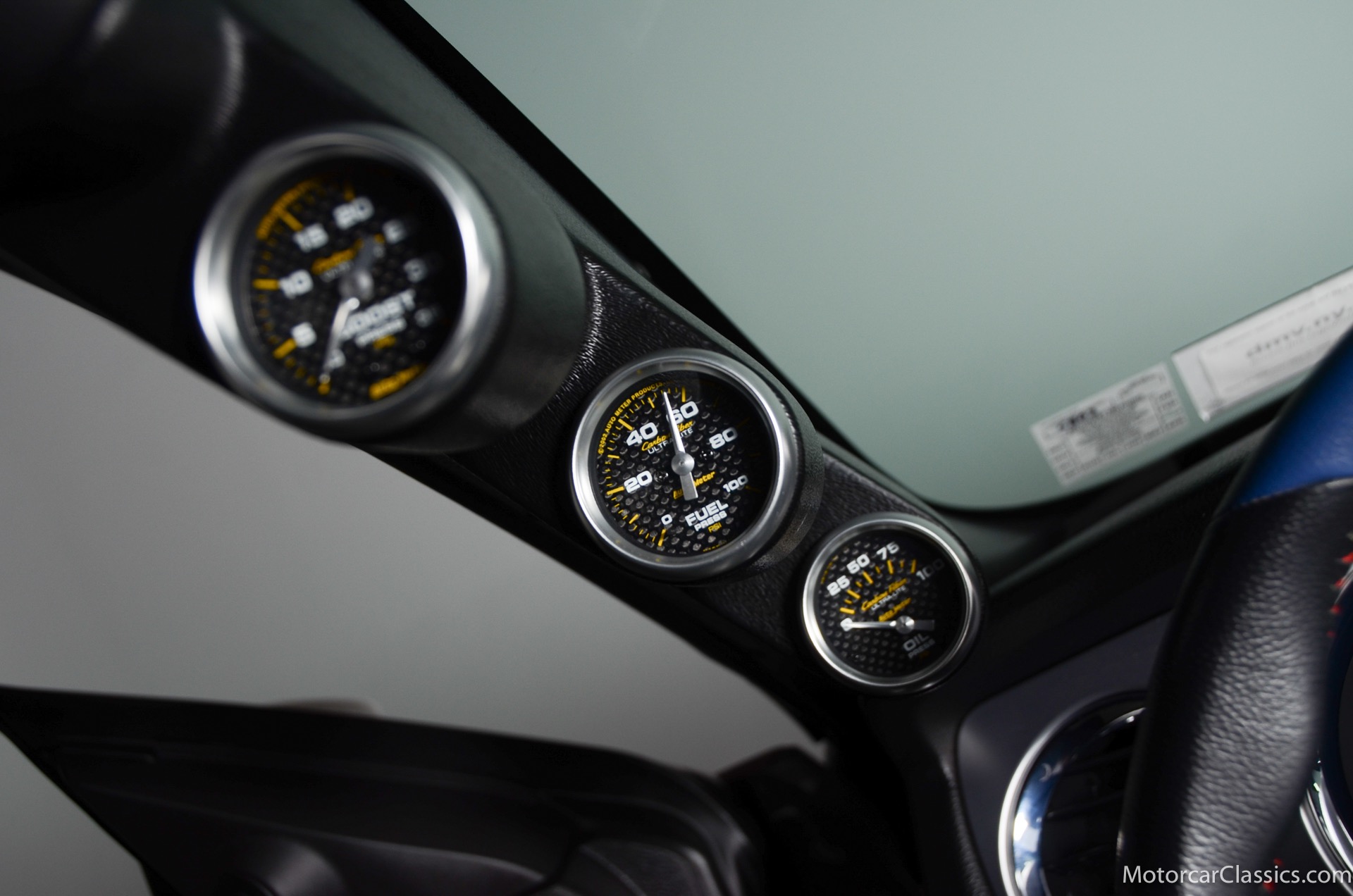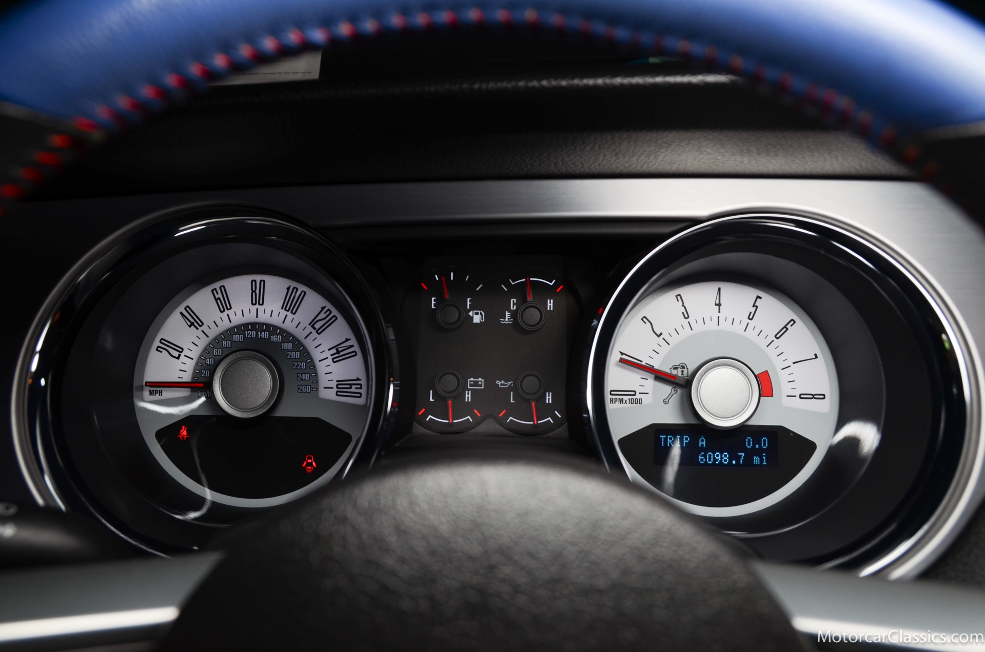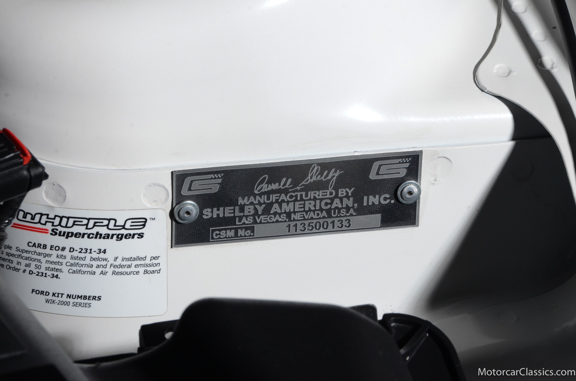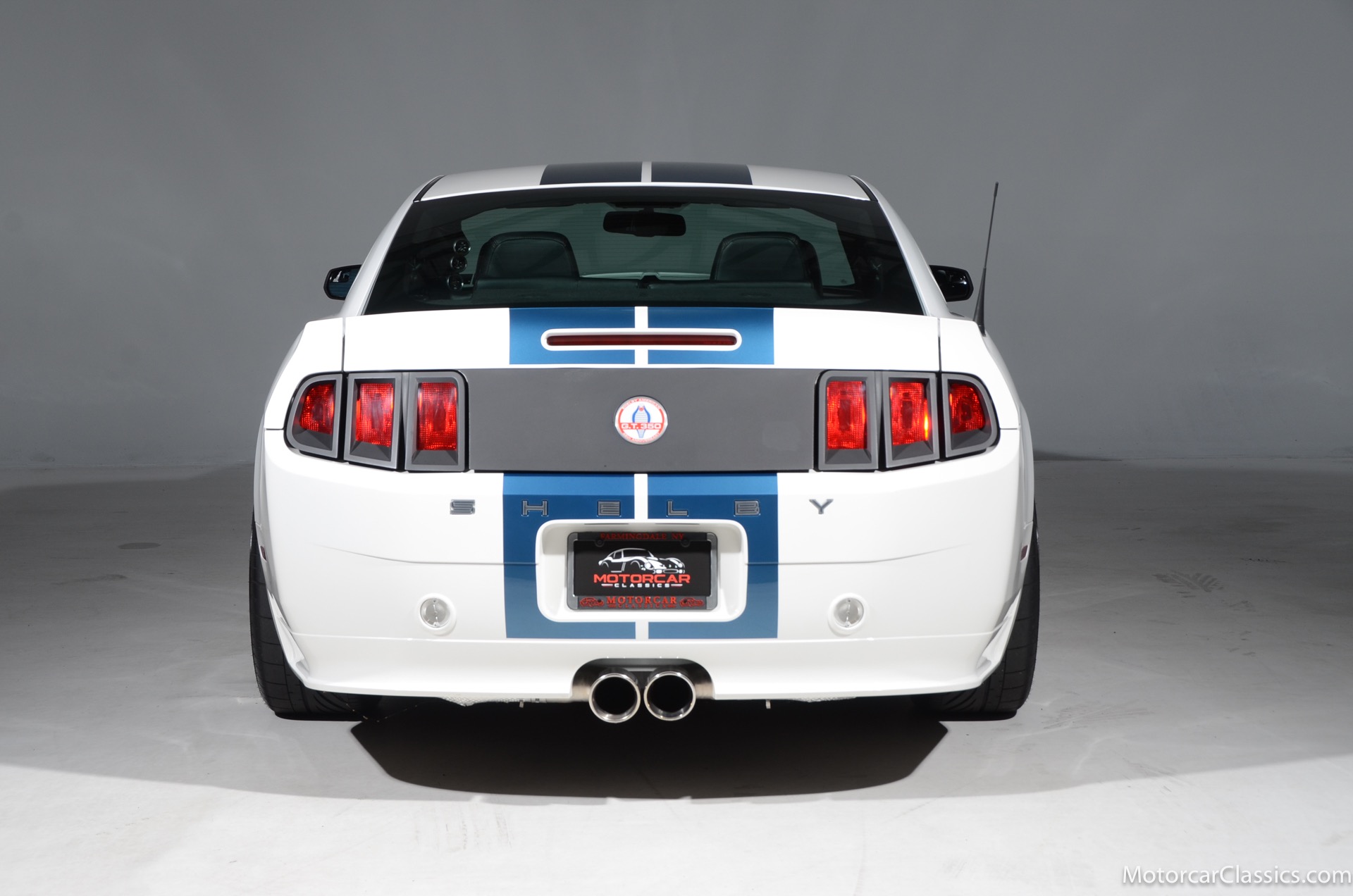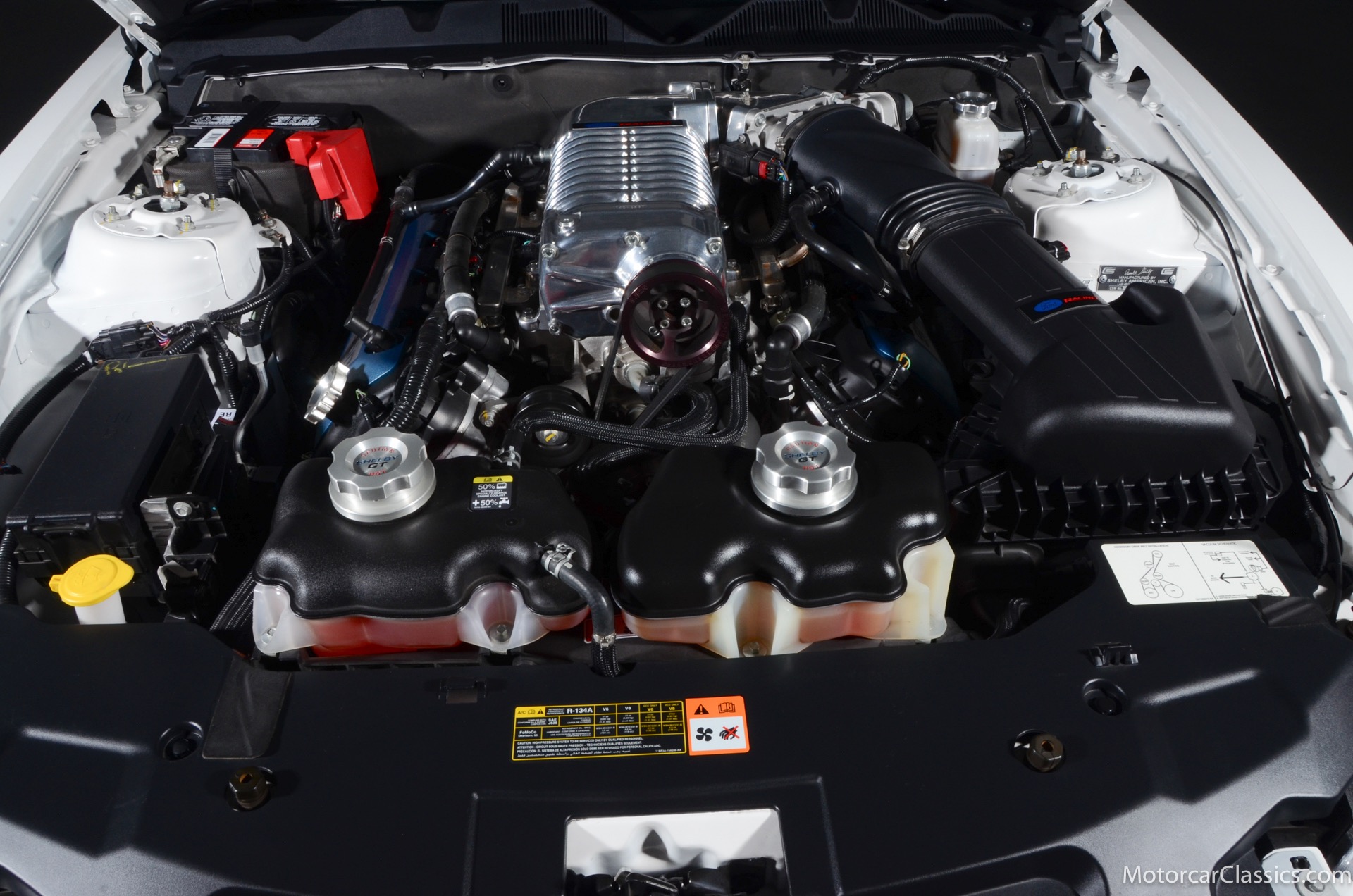 2011 45th Anniversary Shelby GT350 for sale! Finished in beautiful Performance white with painted Guardsman Blue over-the-top and side stripes and custom interior upgrades from Shelby. The upgrades are more than skin deep, power comes from a Whipple supercharged 5.0 liter V-8 with 3 power levels available, 420HP, 525HP and 545HP. Driven just 6,092 miles from new, this beautifully preserved example is now available for sale at Motorcar Classics. Additional upgrades from Shelby over the standard 45th Anniversary GT350's are as follows: Shelby/Ford Racing Polished Whipple supercharger, Shelby/Baer 6 piston rear brake kit, Watts link rear suspension, Shelby/Kicker premium sound system, Painted racing stripes(Full), Customer interior Upgrade.