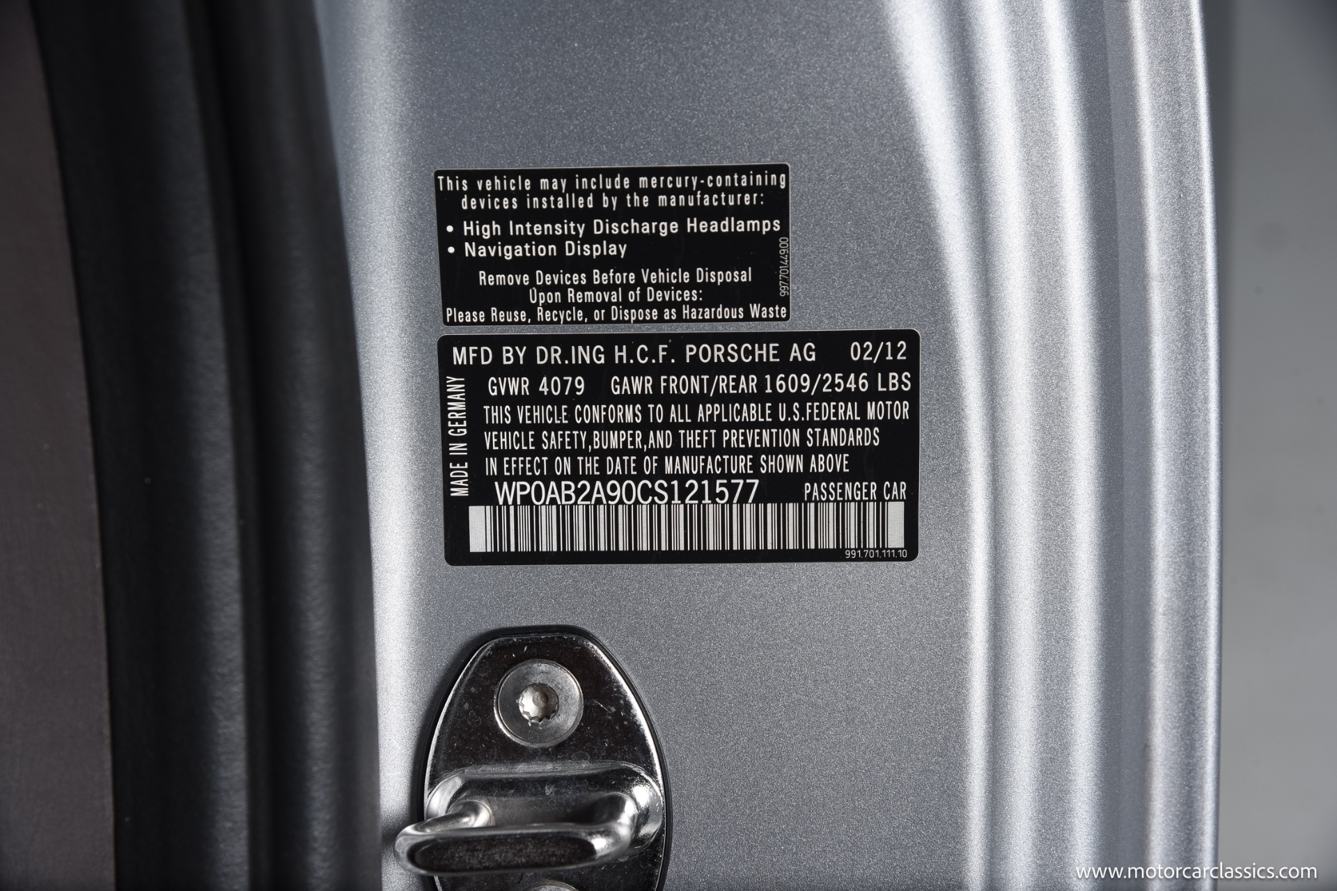 2012 Porsche 911 Carrera S for sale! Motorcar Classics is pleased to present this stunning 911 Carrera S presented in GT Silver Metallic with Espresso Natural leather interior. 54,241 4-owner miles. Clean Carfax. 3.8L engine with automatic PDK transmission. Options include: PDCC w/ PASM sport suspension, sport exhaust, dimming mirrors, adaptive sports seats, heated front seats, 20inch Carrera Classic wheels, wheel cap color Porsche crest, front seat ventilation, PDLS, light design package, parkassist front and rear, sport chrono package, electric sunroof, power steering plus, Burmester sound system, Sirius XM radio, 6-disc CD, electric folding mirrors, multi-function steering wheel, sport chrono guards red, premium package with 18 way seats, Porschec crests on headrests, headlamp cleaner exterior and more! $136,710 MSRP.
