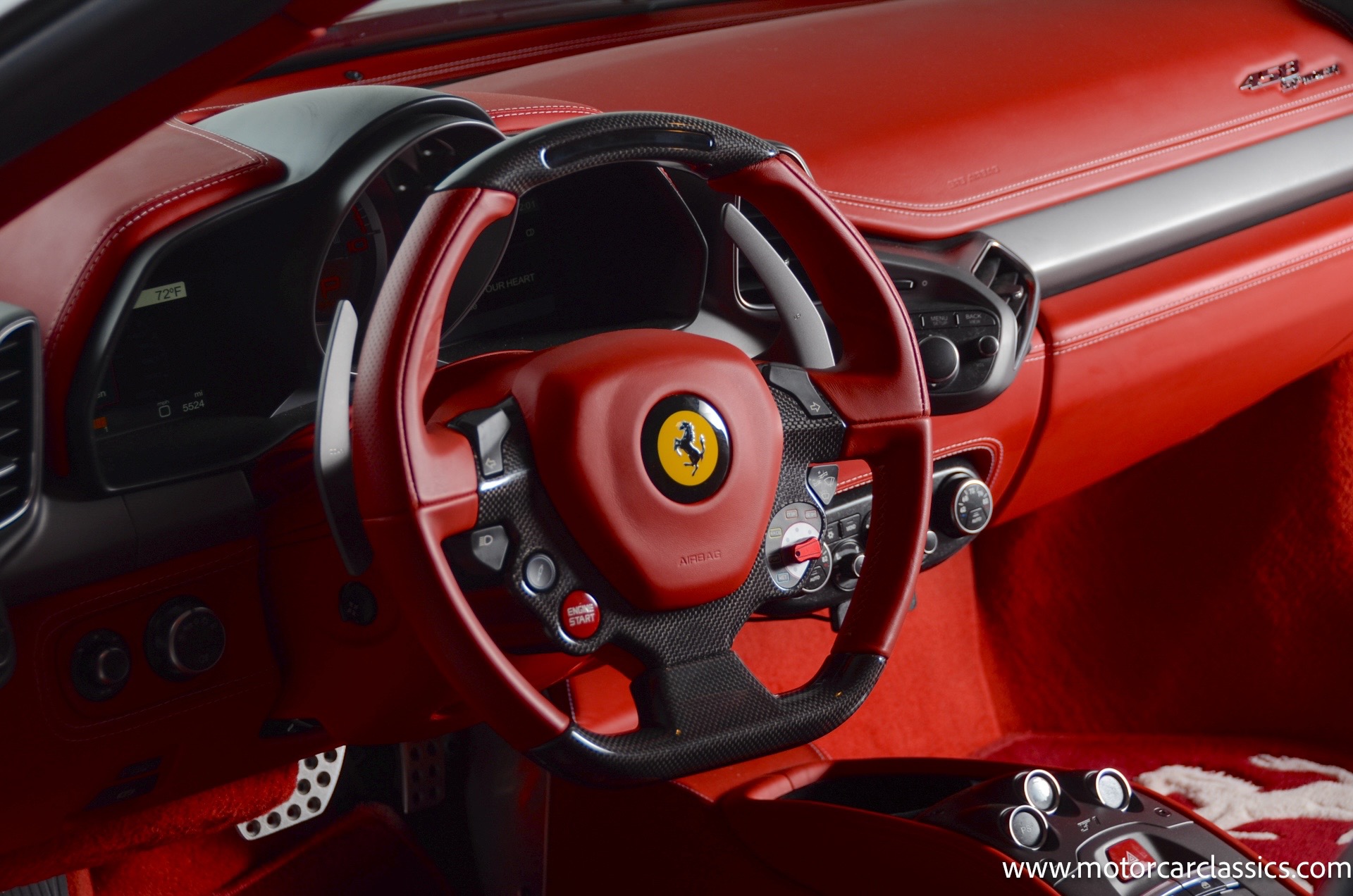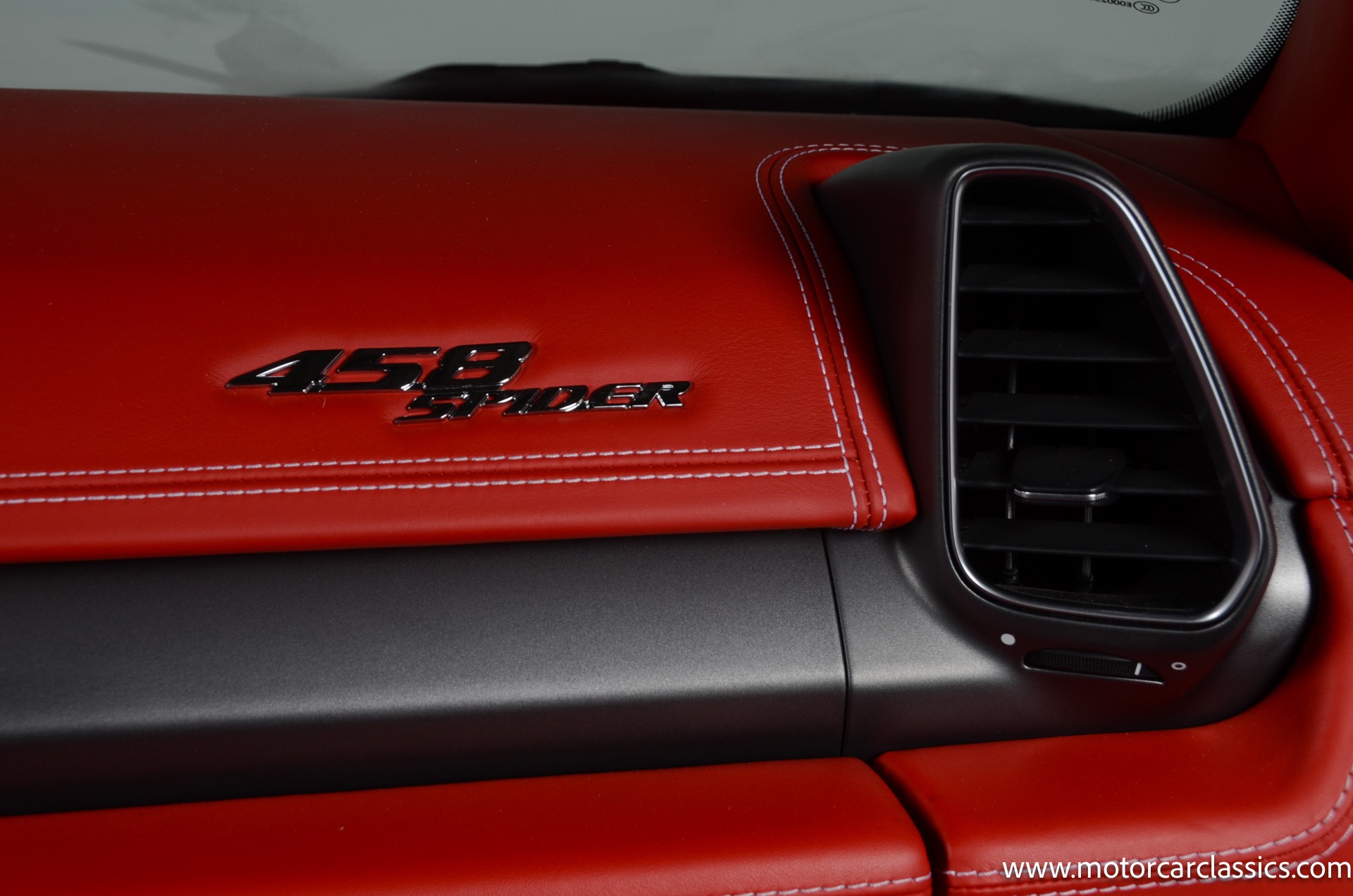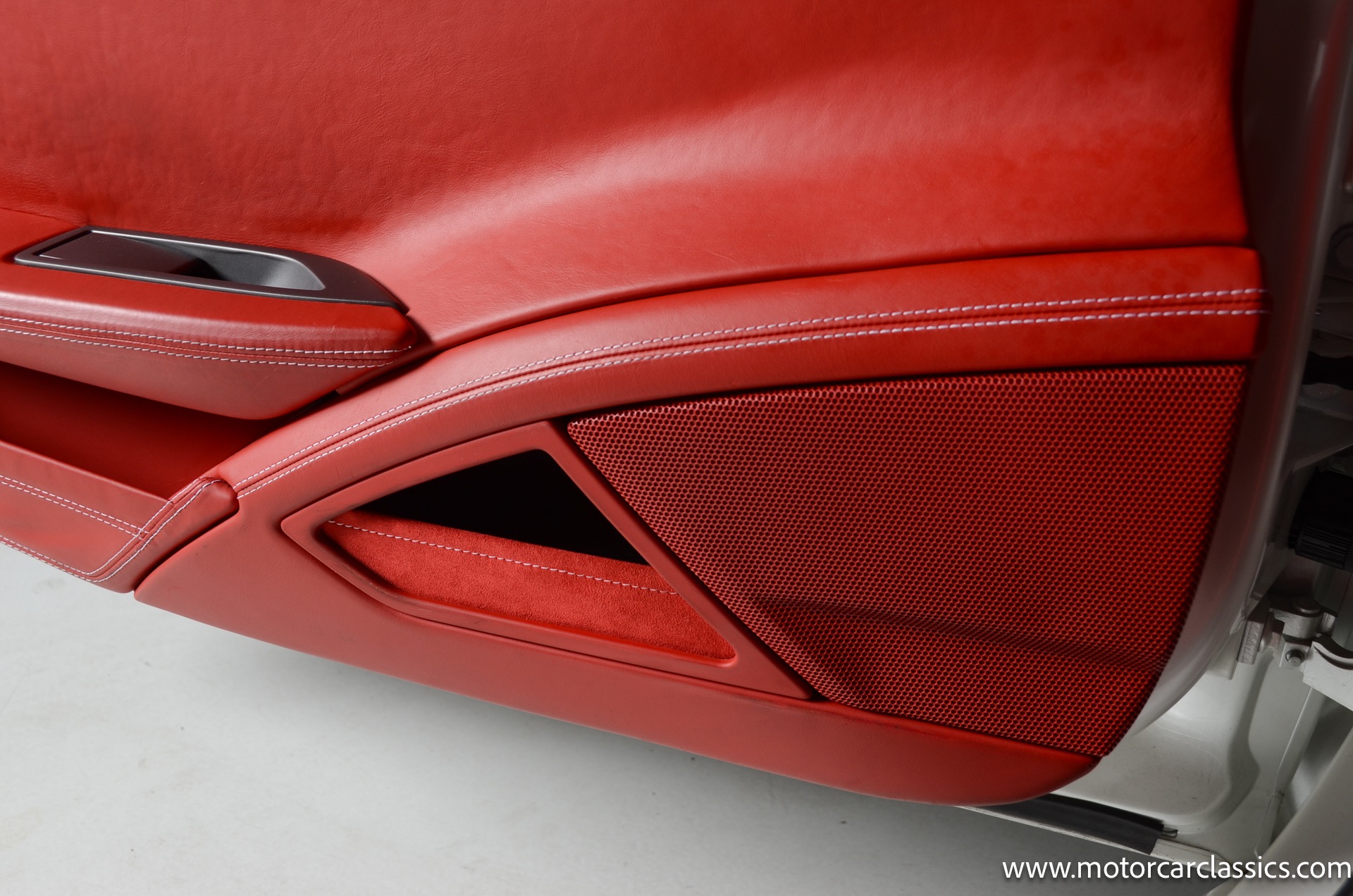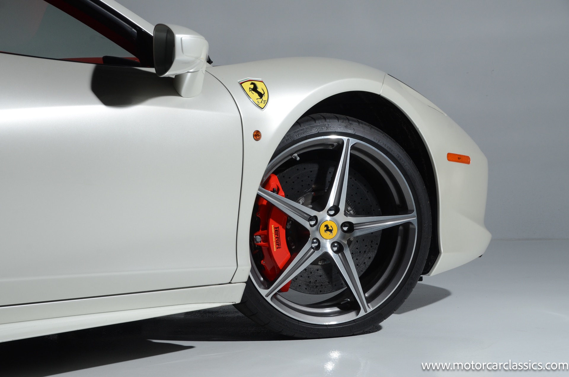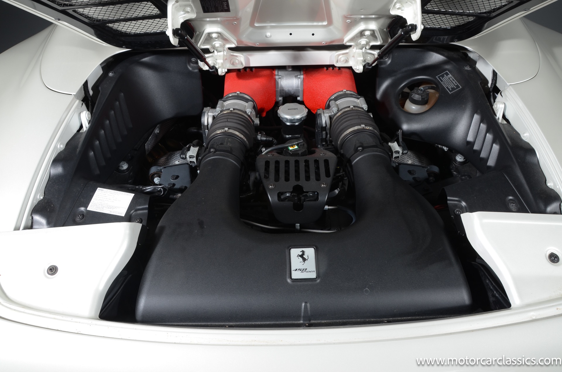 The 2013 Ferrari 458 Spider for sale! Motorcar Classics is pleased to offer this 458 Spider, a stunning example of Ferrari's engineering and design prowess. This particular model is finished in a rare and expensive Bianco Fuji (Pearl White) exterior, complemented by a luxurious Rosso (Red) interior. The car is powered by a 4.5-liter V8 engine that produces an impressive 570 horsepower at 9,000 rpm, allowing it to accelerate from 0 to 62 mph in just 3.4 seconds and reach a top speed of 202 mph