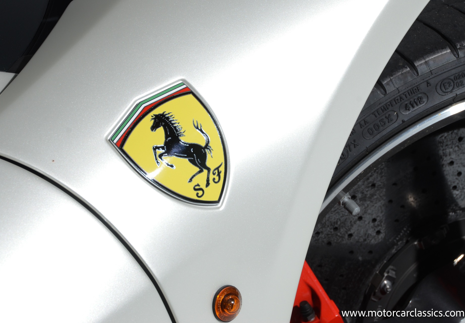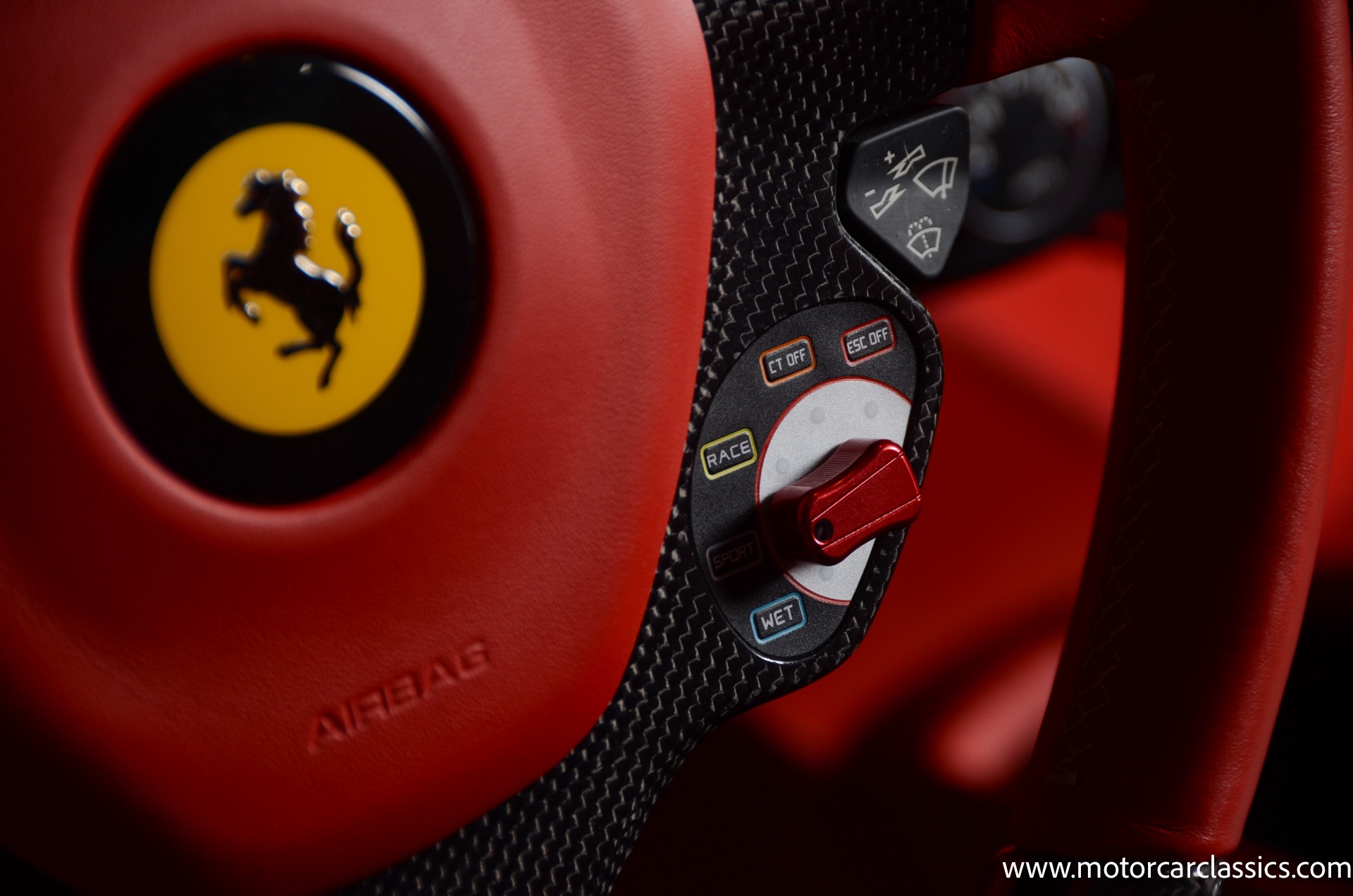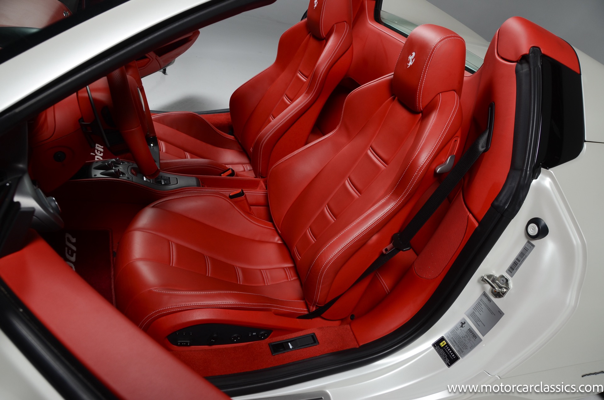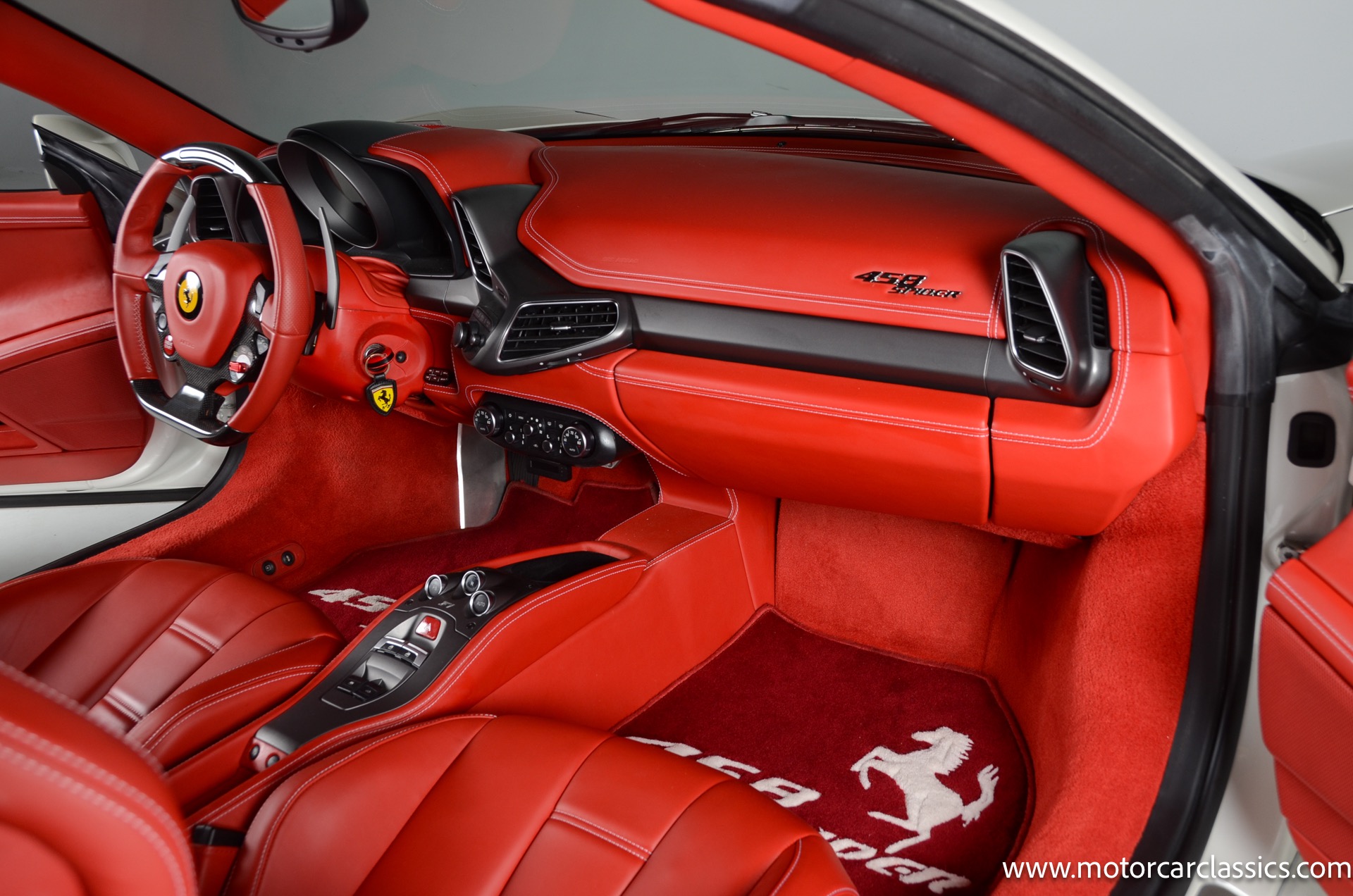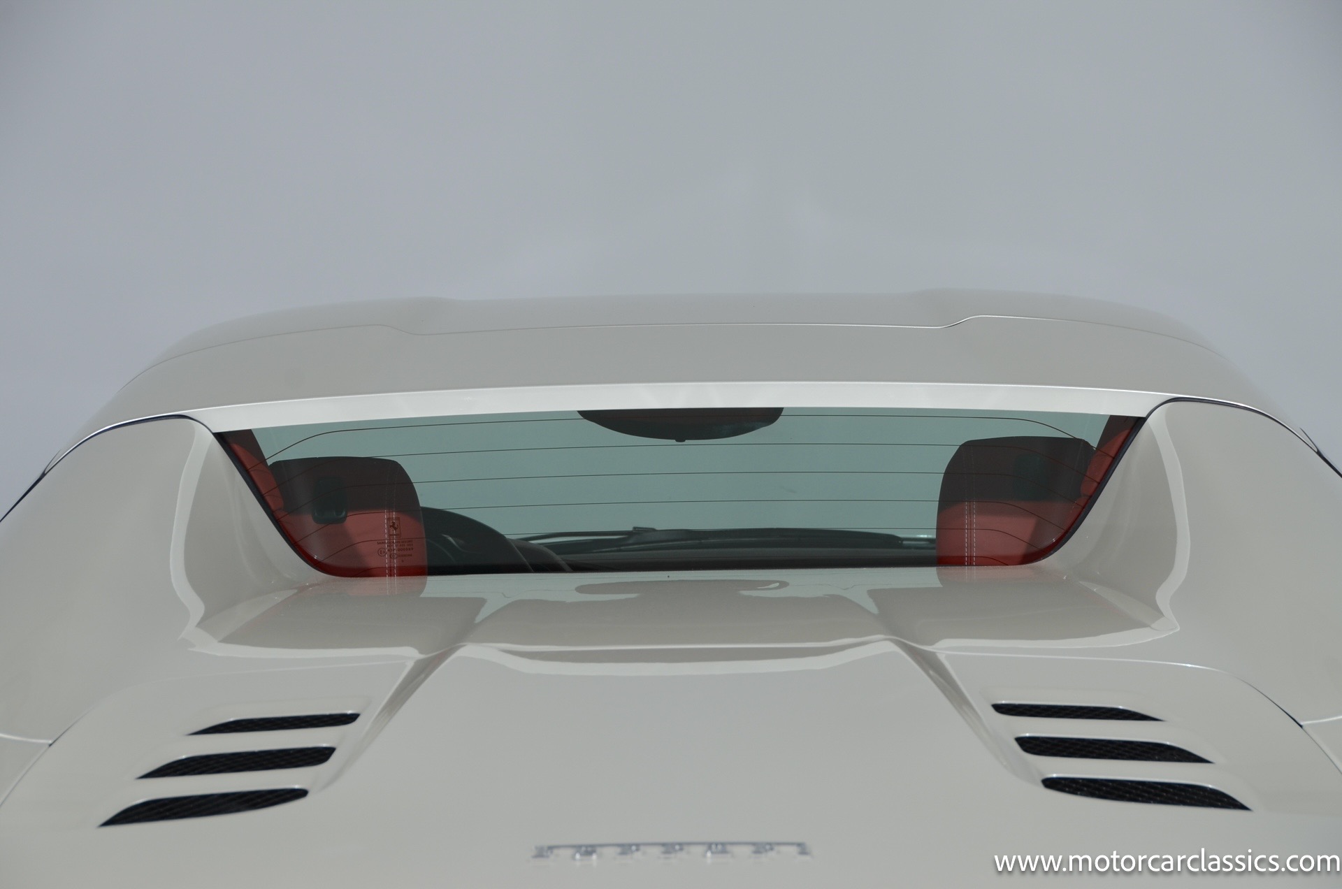 The 2013 Ferrari 458 Spider for sale! Motorcar Classics is pleased to offer this 458 Spider, a stunning example of Ferrari's engineering and design prowess. This particular model is finished in a rare and expensive Bianco Fuji (Pearl White) exterior, complemented by a luxurious Rosso (Red) interior. The car is powered by a 4.5-liter V8 engine that produces an impressive 570 horsepower at 9,000 rpm, allowing it to accelerate from 0 to 62 mph in just 3.4 seconds and reach a top speed of 202 mph
